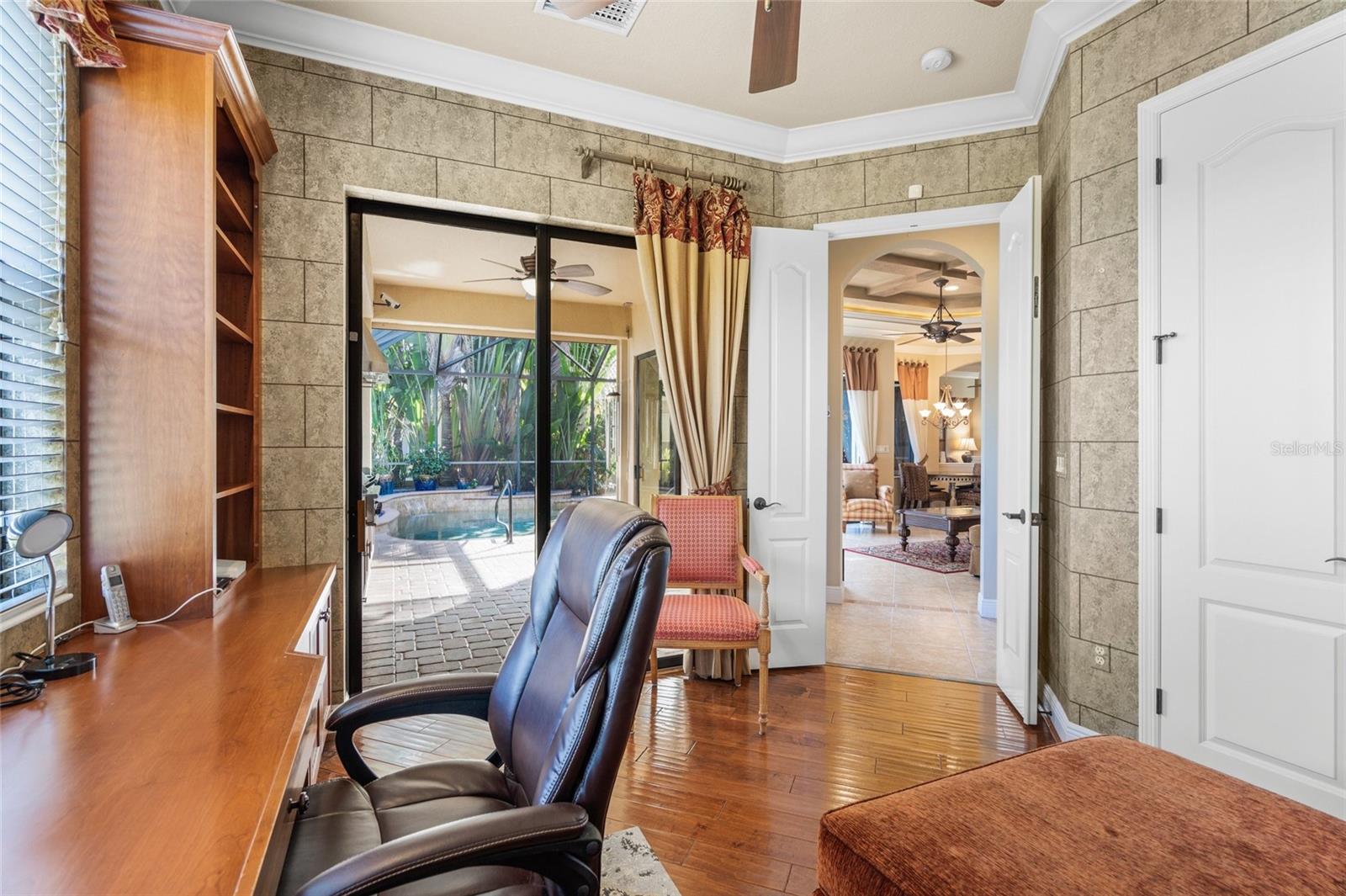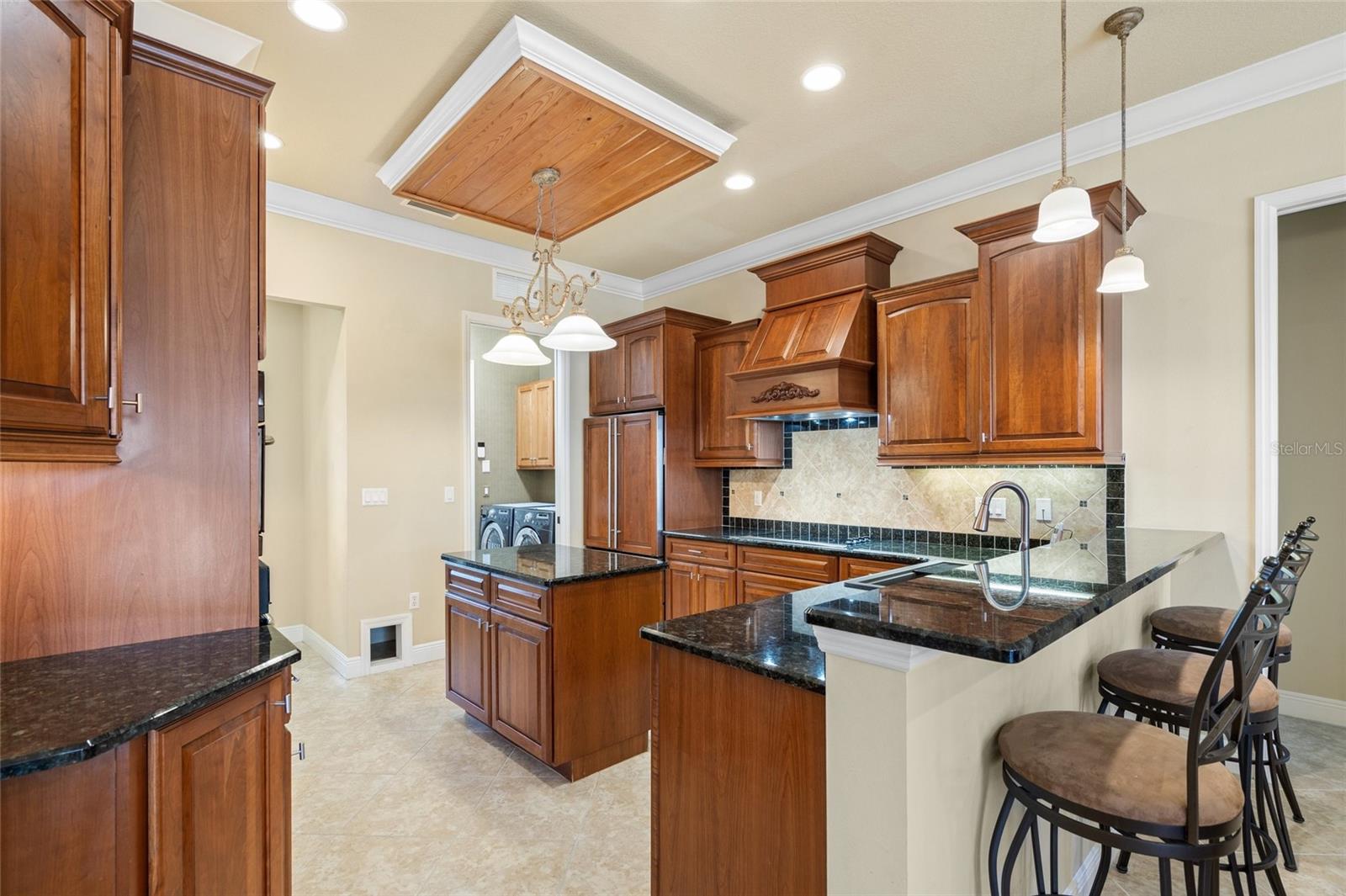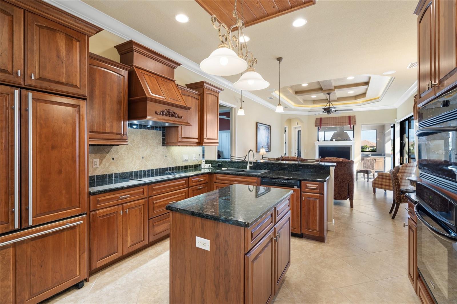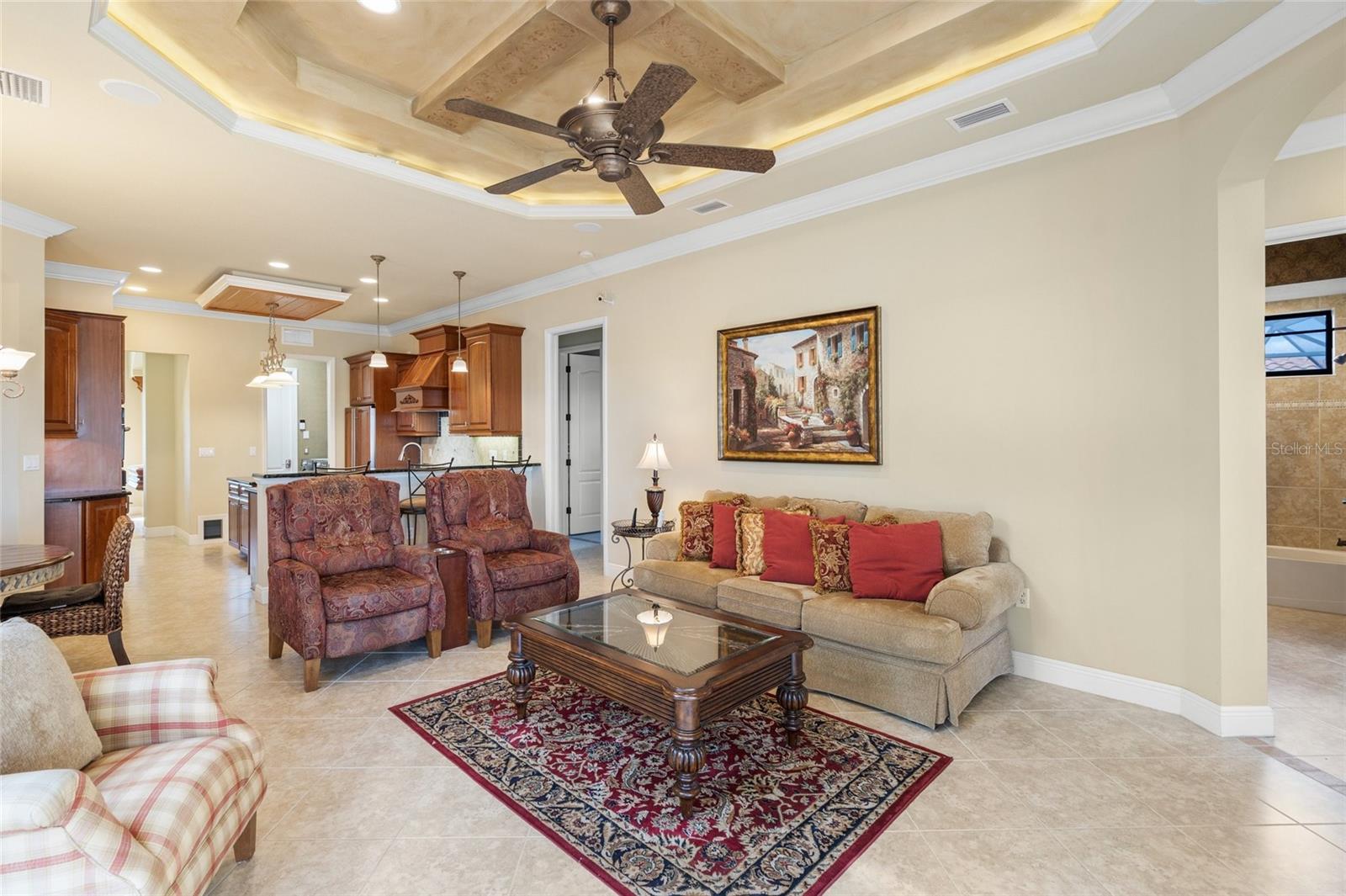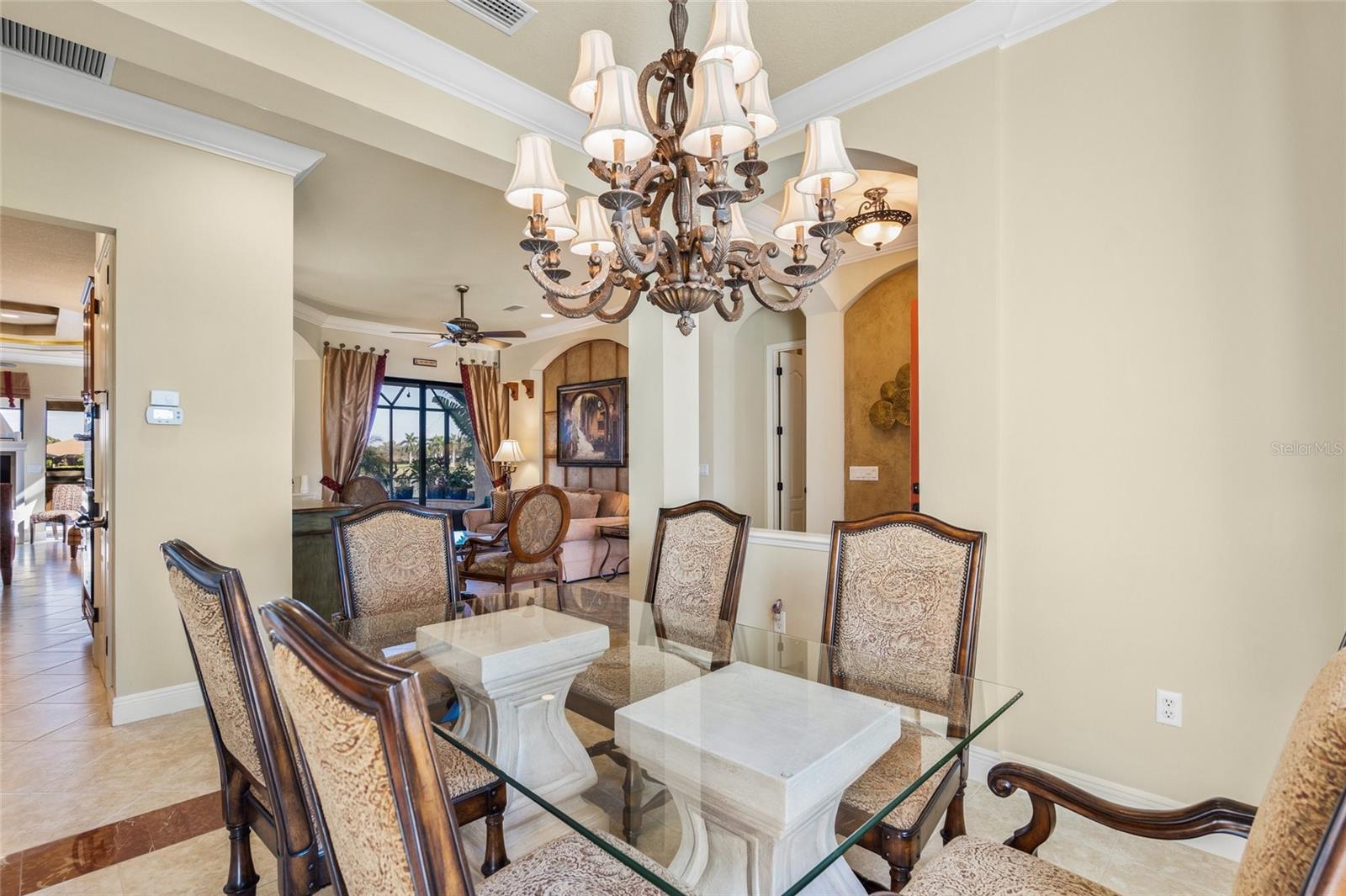 Welcome Home to the beautiful gated community of Gran Paradiso, located just south of Venice in Wellen Park. This stunning, well-built estate home is a former model built by Lee Wetherington, and is one of only a handful of custom Lee Wetherington homes built in Gran Paradiso. This property has a unique setting with a water view both in front and in the rear of the home. Lee Wetherington's Ariel model was built for the buyer who appreciates quality. Step inside and you are greeted with a spectacular marble inlay design on the floor that is truly a work of art. The gourmet kitchen holds top-of-the line appliances, granite countertops, and cherry wood cabinets. This model has four bedrooms, one of which features custom designed cabinetry which could transform the bedroom into a den or home office. The primary bedroom is spacious with a sitting area to hide away, read or just relax. The primary bedroom closets have been custom designed to maximize the space efficiently. The bedrooms all feature wood flooring with the rest of the home featuring porcelain tile. The primary bath has a glass block Roman shower (which is one of the Lee Wetherington signatures), dual sinks with a vanity and chair, and a large whirlpool tub. The split floor plan of this home is a great feature, especially when family and guests come to visit, offering privacy for all. One of the beautiful, custom designed bathrooms features a Bidet Commode. The lanai and pool area have a built-in kitchen, with teakwood cabinetry in a tropical setting that offers total privacy. The custom saltwater pool and spa have a brand new AquaCal heater. As a bonus, you'll have a perfect view of the fireworks from Atlanta Braves Stadium in Wellen Park! This fully furnished home has a new hot water heater, a whole-house water system, Simply Safe alarm system on windows and doors, and impact windows in the front of the home. For peace of mind there is a 20 KW whole-house propane gas Kohler generator with an auto transfer switch and a buried 500 lb. supply tank. In addition, you will find Storm Smart roll-down fabric hurricane screens (some motorized) at all other openings, including a motorized metal roll-down panel for the beveled glass front door. The seller has graciously paid off the CDD bonds. This beautiful home is within walking distance of the community clubhouse and all amenities.