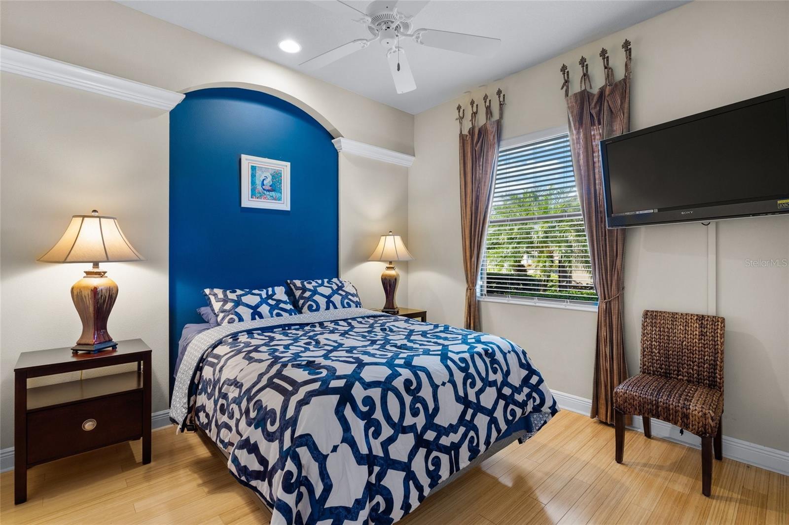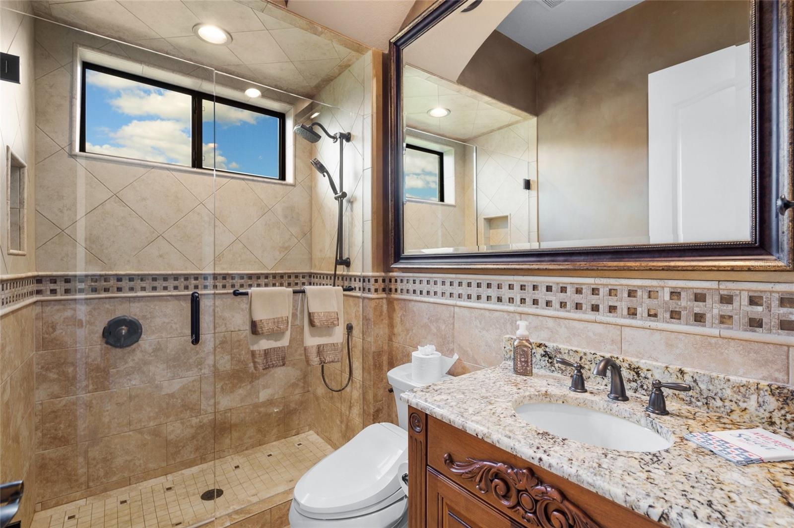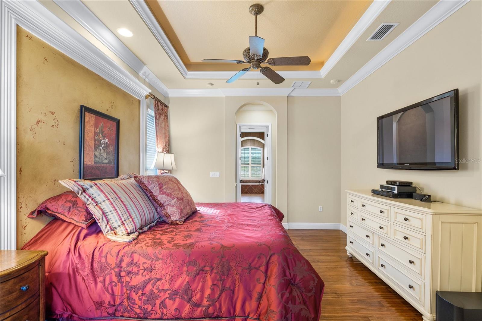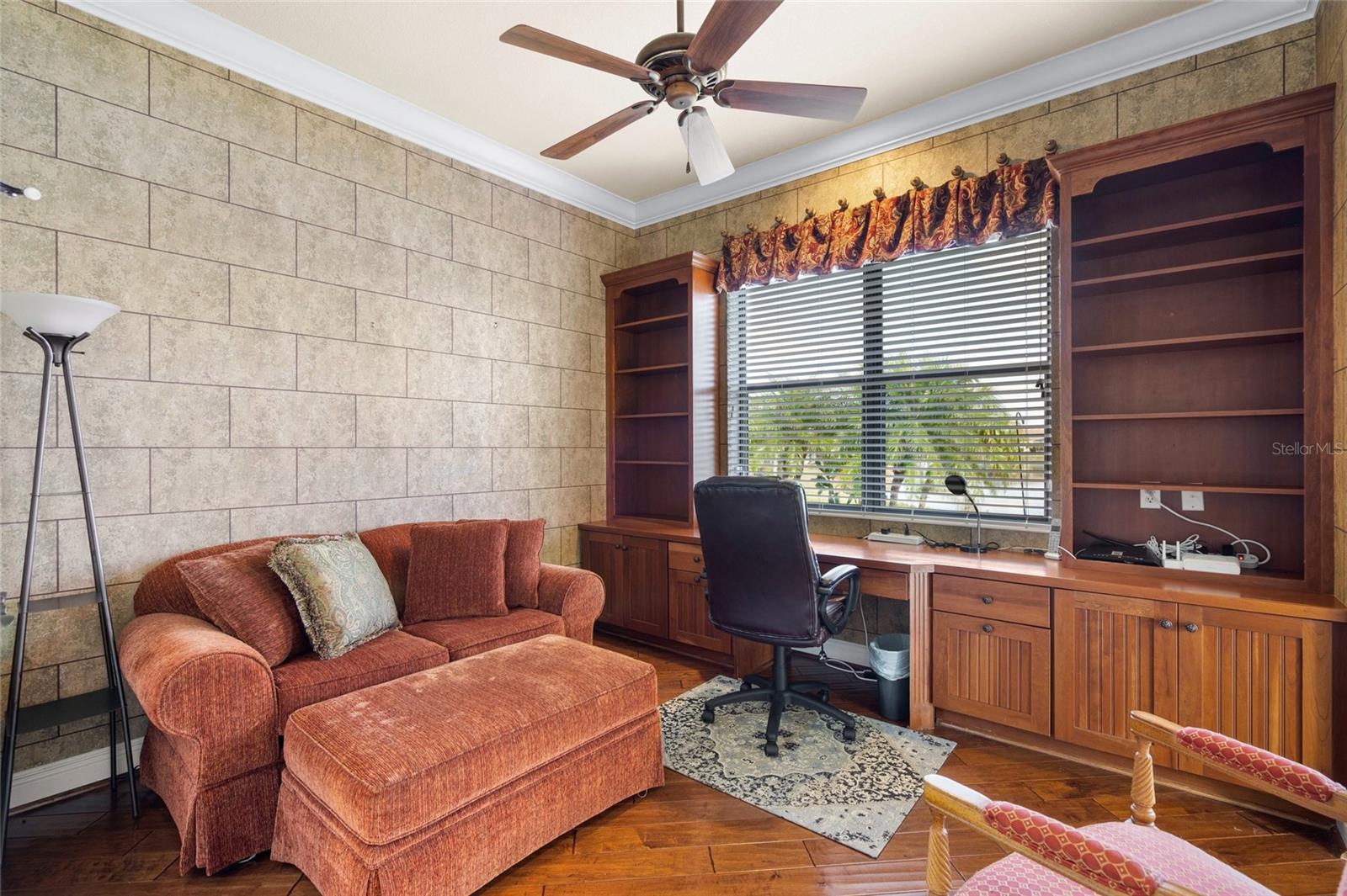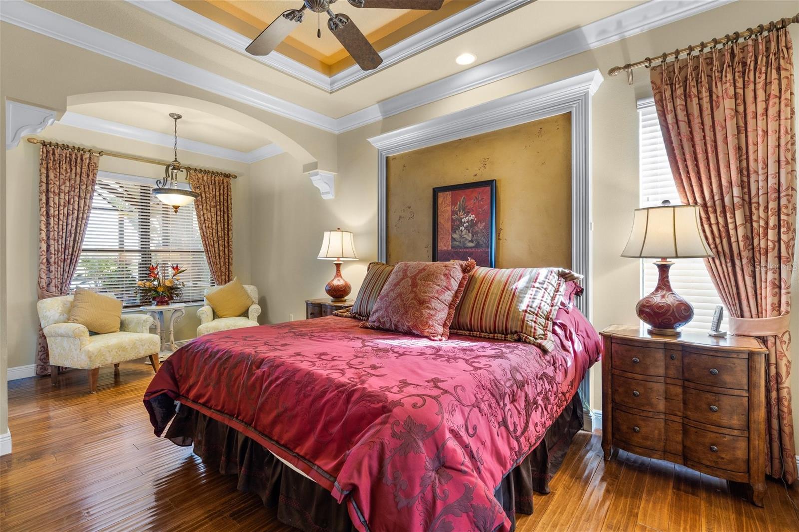 Welcome Home to the beautiful gated community of Gran Paradiso, located just south of Venice in Wellen Park. This stunning, well-built estate home is a former model built by Lee Wetherington, and is one of only a handful of custom Lee Wetherington homes built in Gran Paradiso. This property has a unique setting with a water view both in front and in the rear of the home. Lee Wetherington's Ariel model was built for the buyer who appreciates quality. Step inside and you are greeted with a spectacular marble inlay design on the floor that is truly a work of art. The gourmet kitchen holds top-of-the line appliances, granite countertops, and cherry wood cabinets. This model has four bedrooms, one of which features custom designed cabinetry which could transform the bedroom into a den or home office. The primary bedroom is spacious with a sitting area to hide away, read or just relax. The primary bedroom closets have been custom designed to maximize the space efficiently. The bedrooms all feature wood flooring with the rest of the home featuring porcelain tile. The primary bath has a glass block Roman shower (which is one of the Lee Wetherington signatures), dual sinks with a vanity and chair, and a large whirlpool tub. The split floor plan of this home is a great feature, especially when family and guests come to visit, offering privacy for all. One of the beautiful, custom designed bathrooms features a Bidet Commode. The lanai and pool area have a built-in kitchen, with teakwood cabinetry in a tropical setting that offers total privacy. The custom saltwater pool and spa have a brand new AquaCal heater. As a bonus, you'll have a perfect view of the fireworks from Atlanta Braves Stadium in Wellen Park! This fully furnished home has a new hot water heater, a whole-house water system, Simply Safe alarm system on windows and doors, and impact windows in the front of the home. For peace of mind there is a 20 KW whole-house propane gas Kohler generator with an auto transfer switch and a buried 500 lb. supply tank. In addition, you will find Storm Smart roll-down fabric hurricane screens (some motorized) at all other openings, including a motorized metal roll-down panel for the beveled glass front door. The seller has graciously paid off the CDD bonds. This beautiful home is within walking distance of the community clubhouse and all amenities.