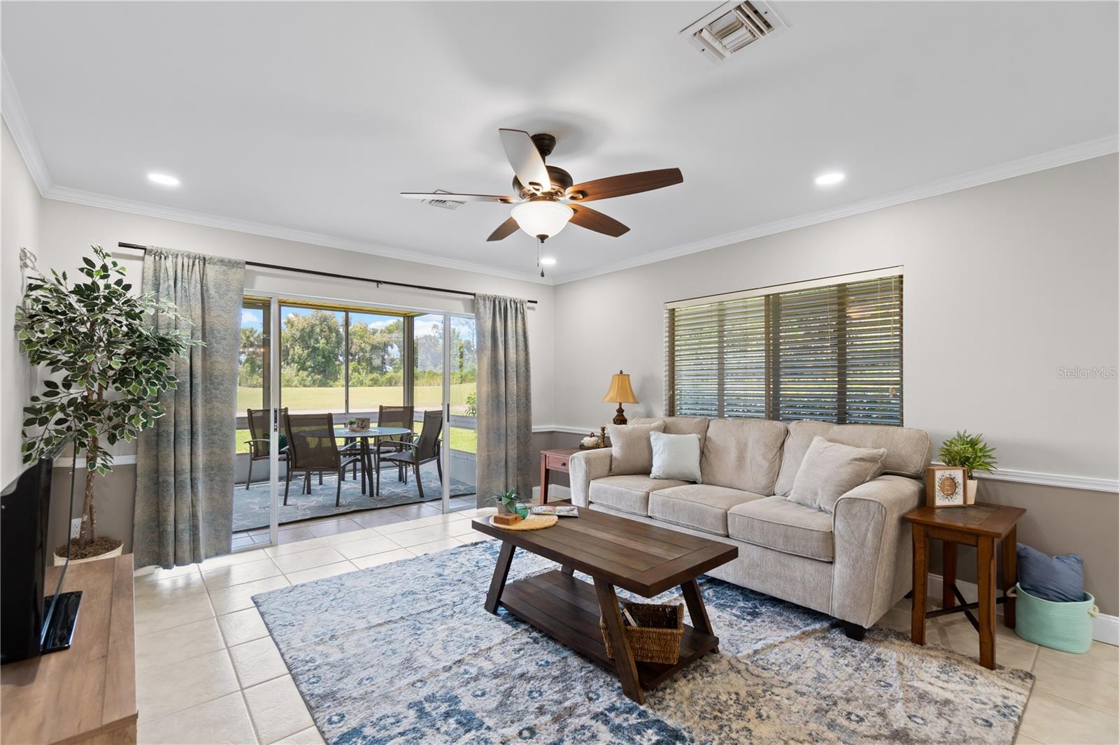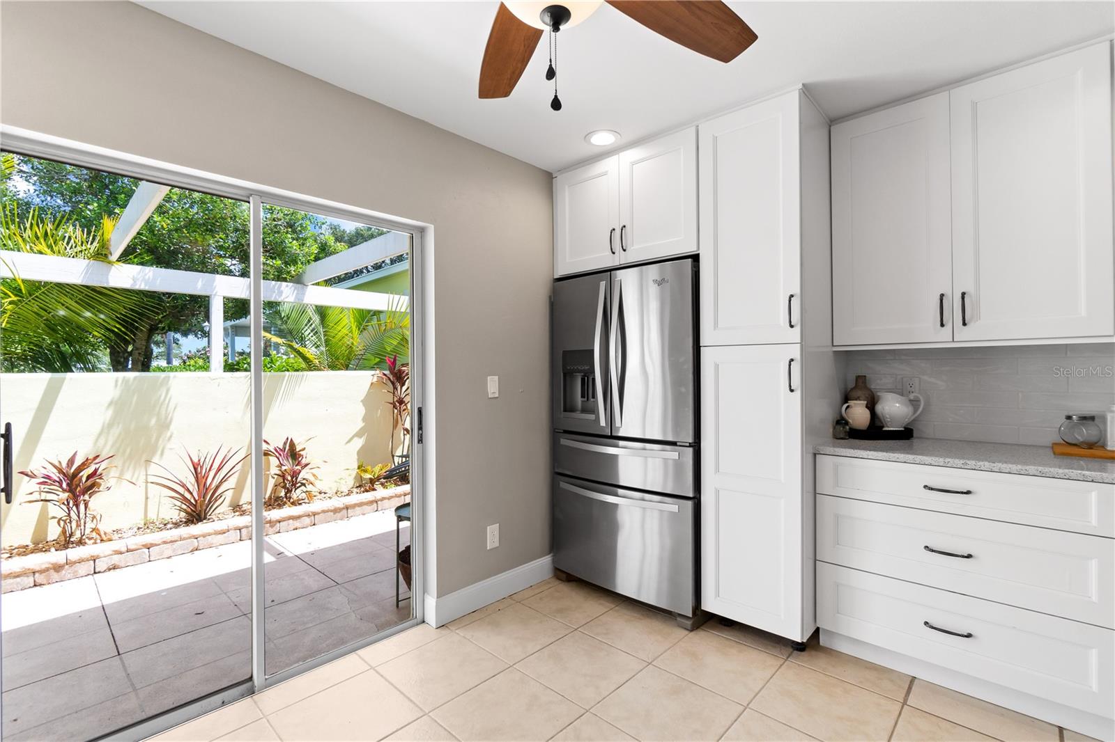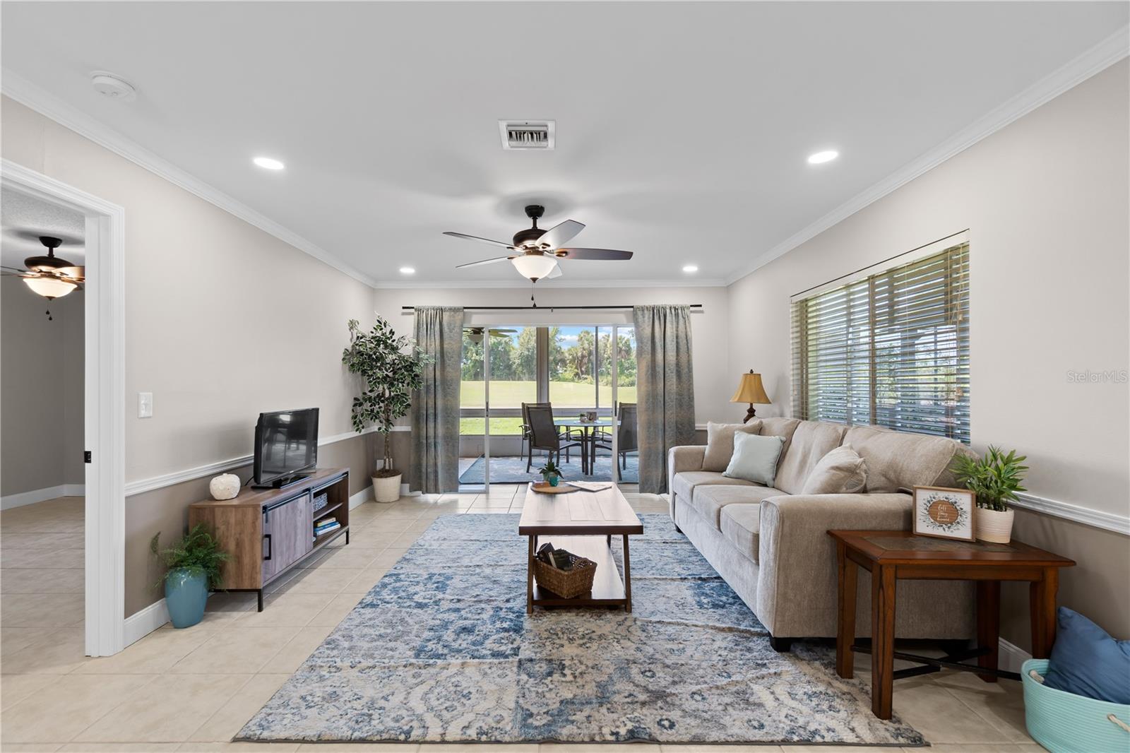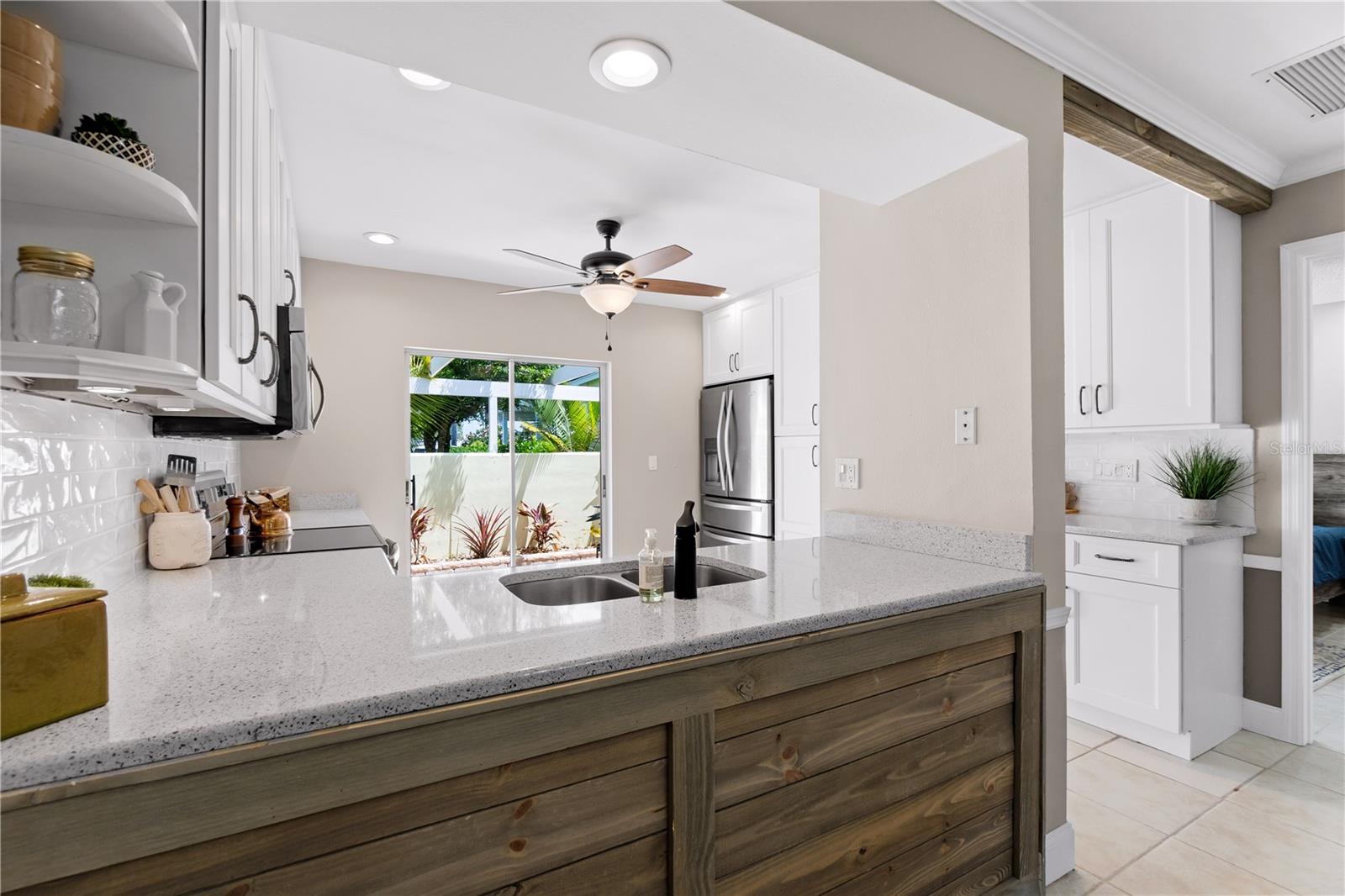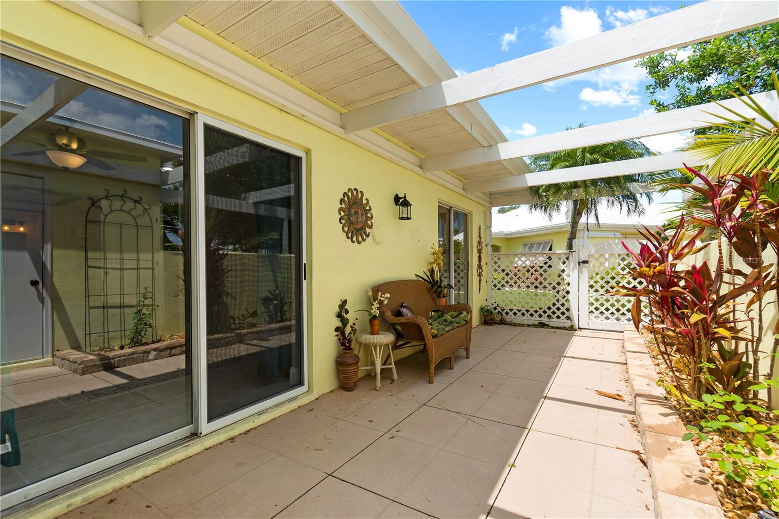 Renovated Augusta Villa ready for the new owner. And now partially furnished! Perfectly located at the end of the cul-de-sac over looking the golf course. All assessments paid for the new roof and carport. This Villa features newer kitchen with all Whirlpool Stainless Steel appliances, cabinets including a pantry cabinet with pull out shelves. Quartz counters and new tile backsplash. The kitchen and master bedroom have sliders that open to a wonderful courtyard perfect for morning coffee, grilling in the evenings or just hanging out with friends. All new plumbing features and water heater. New master shower, vanity's in both bathrooms, and light fixtures. Master bathroom has new stylish barn door. New recessed lighting in the living and bedrooms. Crown molding, chair rail and new paint throughout. Florida room with wood ceiling and new fans throughout.