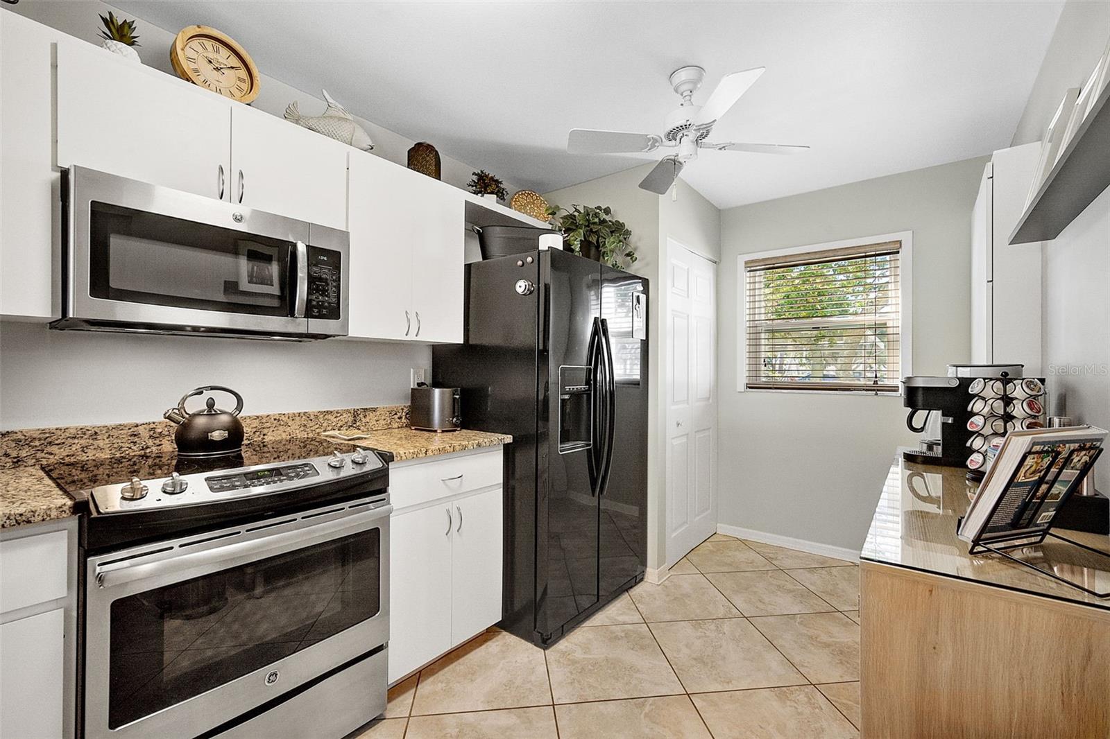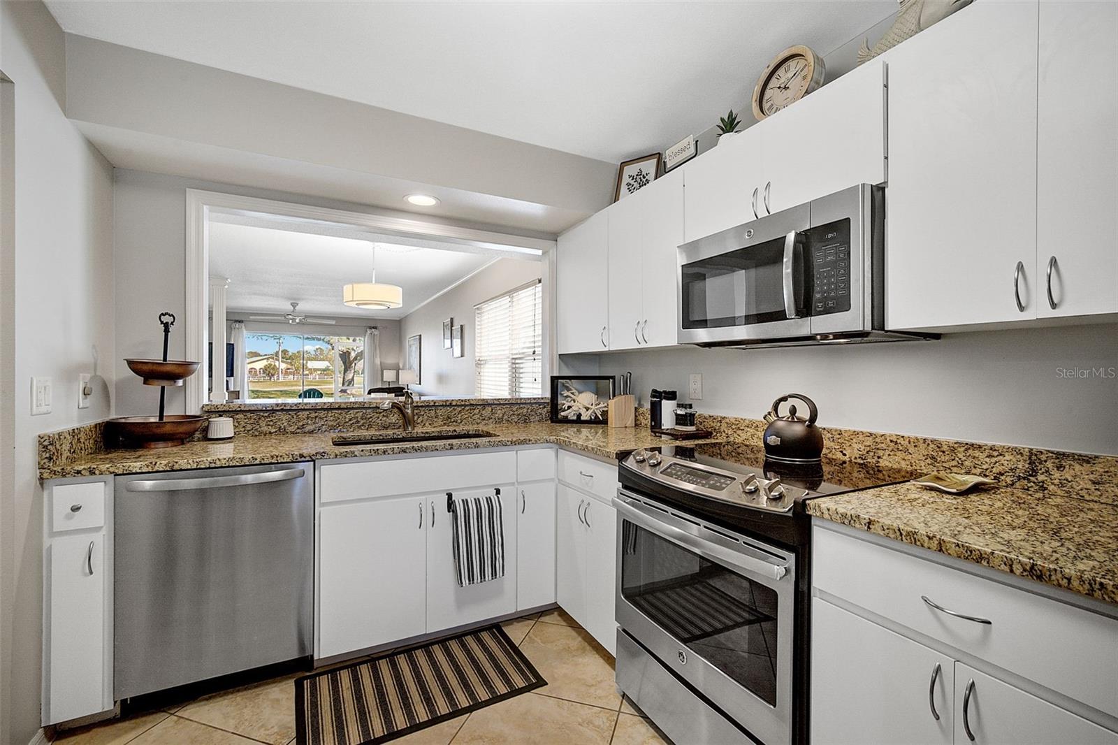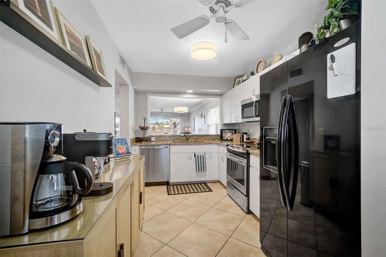 Absolutely beautiful move in ready condo with a relaxing view. Updated kitchen with granite counter tops, stainless steel dishwasher, range and microwave. NEW AC October of 2023!!! Nice bar stool area with an open concept to the dining room and living room. Love the updated luxury vinyl plank floors in the bedrooms, updated bathrooms and the built in closet is very nice. Yes, you even have your own washer and dryer inside the condo! Sit out back on your covered screened in porch and enjoy the beautiful golf course view. Only 3.8 miles to Venice Beach, 9.6 miles to Manasota Key Beach and about 17 miles to Siesta Key Beach!