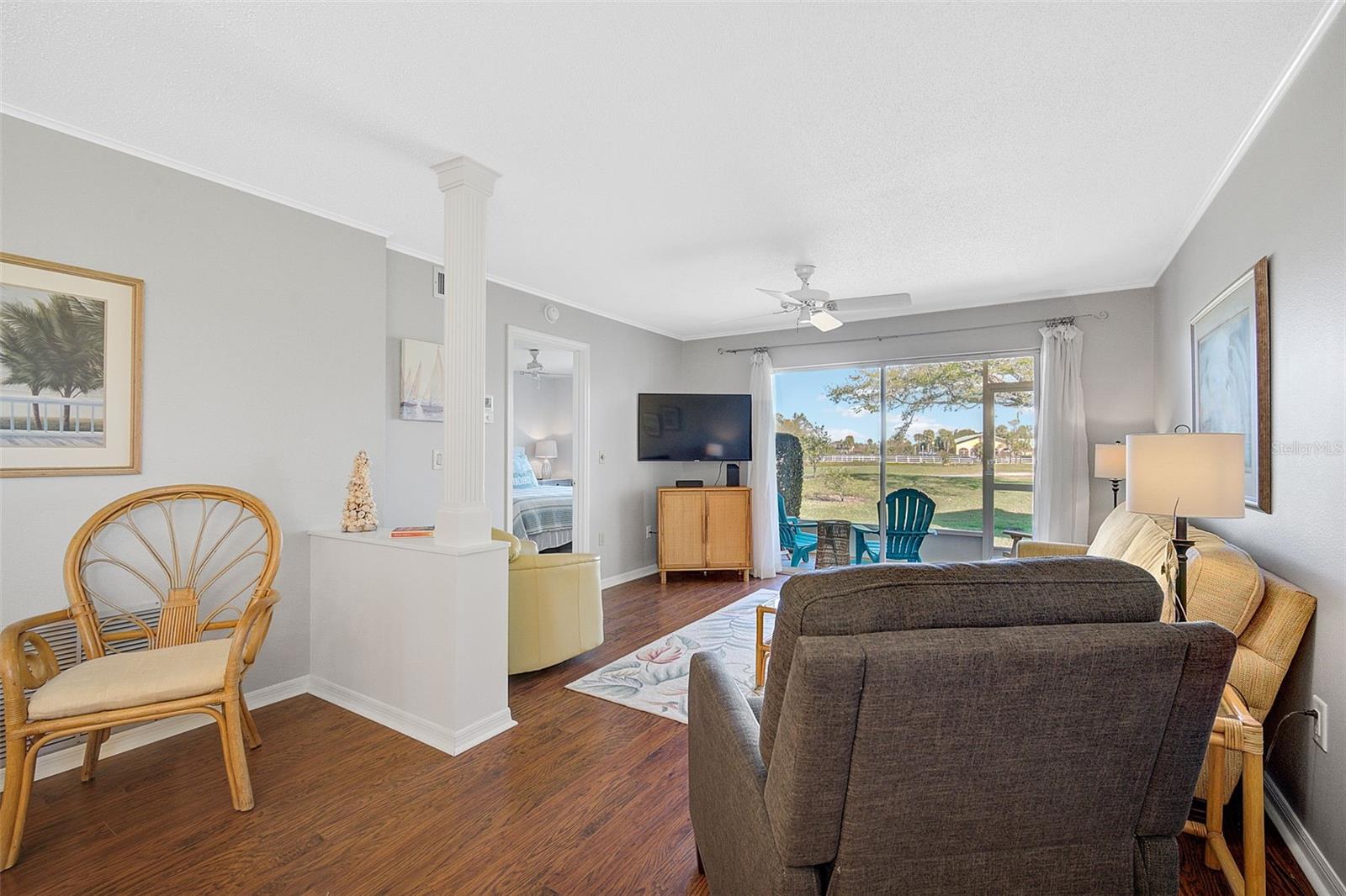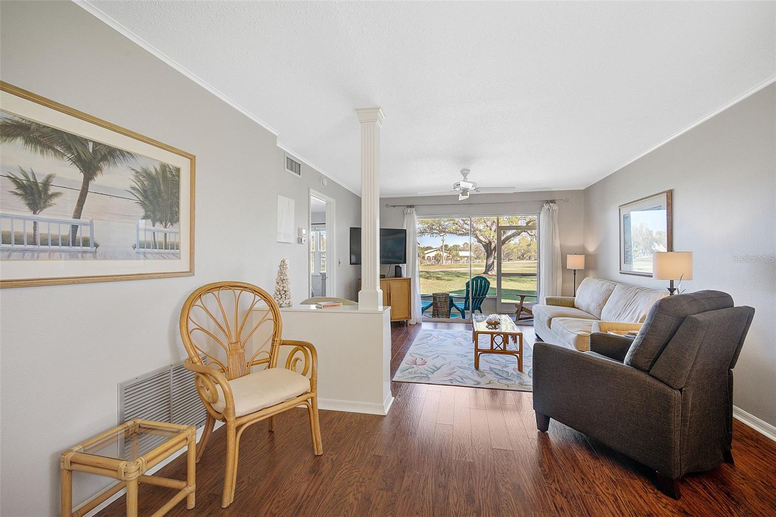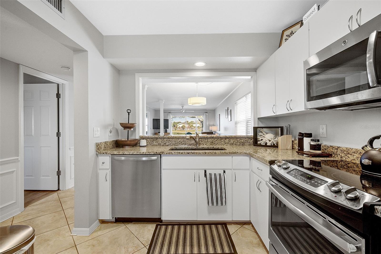 Absolutely beautiful move in ready condo with a relaxing view. Updated kitchen with granite counter tops, stainless steel dishwasher, range and microwave. NEW AC October of 2023!!! Nice bar stool area with an open concept to the dining room and living room. Love the updated luxury vinyl plank floors in the bedrooms, updated bathrooms and the built in closet is very nice. Yes, you even have your own washer and dryer inside the condo! Sit out back on your covered screened in porch and enjoy the beautiful golf course view. Only 3.8 miles to Venice Beach, 9.6 miles to Manasota Key Beach and about 17 miles to Siesta Key Beach!