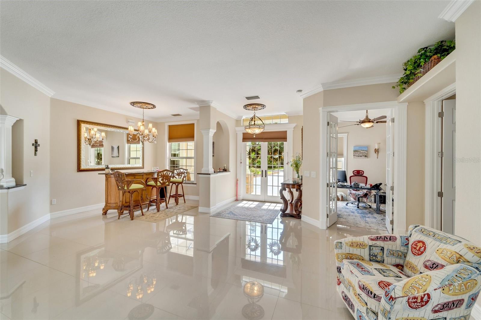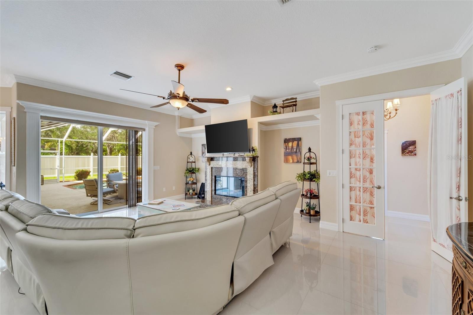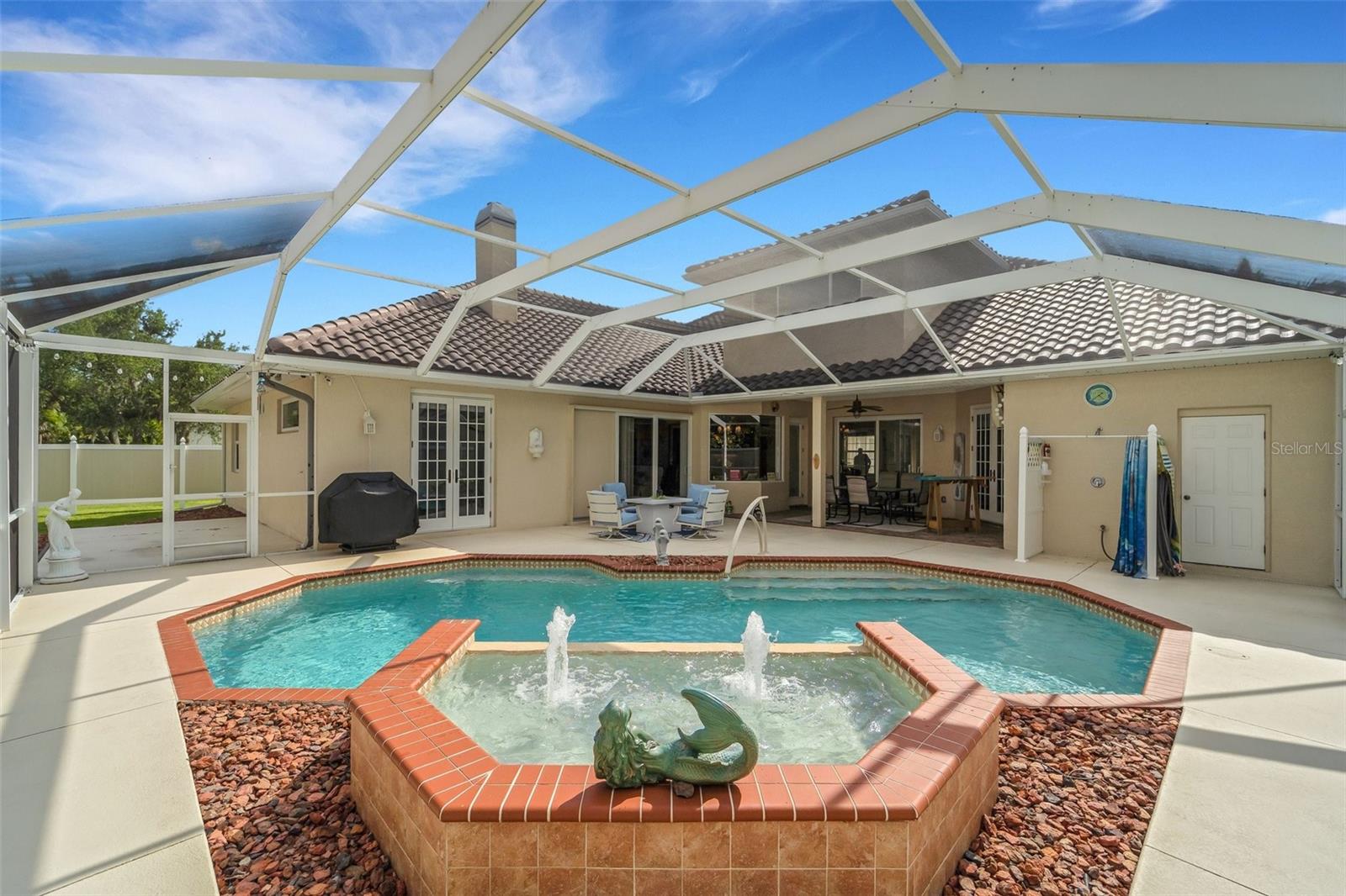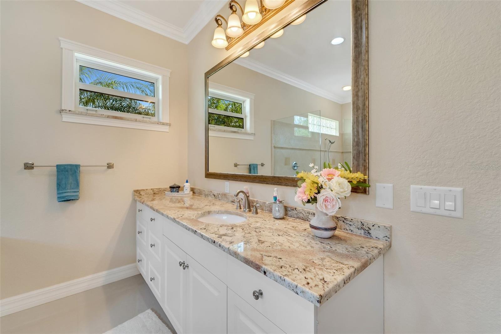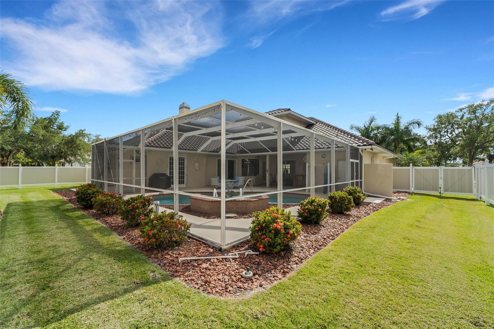 Elegant stunning custom home located in the lovely gated community of the Hidden Lakes Club only minutes to the Famous Venice Island, Sarasota Memorial Hospital and Interstate 75. Spacious Home offers SIX bedrooms with an office/den, 4.5 baths and a three car garage with new insulated doors. Master Suite has an incredibly large walk-in closet and French doors leading out to your lanai. Master bath features a jetted tub, large walk-in shower, and two separate vanities. Gourmet kitchen makes cooking and entertaining a joy with newer appliances, butler's pantry, oversized island with a range and prep sink, breakfast bar, granite tops, solid wood cabinetry, and two stoves all updated in 2018. Laundry room and tub with lots of extra space. Beautiful newer Porcelain floors. Two NEW (2023) A/C units with 6 zones thru-out the home to accommodate everyone's needs, fireplace in family room, all interior custom crown molding, granite window sills throughout the home. Second floor bedroom has its own full bath, lots of closet space and could be used as a second master suite/in-law suite or a great media room. Stunning pool and fountain, outside shower and 1/2 bath, screened pool cage. Rest easy with Hurricane windows and a 22K GENERAC GENERATOR with a 500 gallon tank. NEW ROOF AND GUTTERS installed in late 2023. Home is fully fenced in for your privacy. Hidden Lakes Club is a gated community with lush mature landscaping, a clubhouse with a kitchen, billiard table, gym, pool, spa, tennis or pickleball court and basketball court. This elegant and meticulously kept home has pride of ownership and is move-in ready.