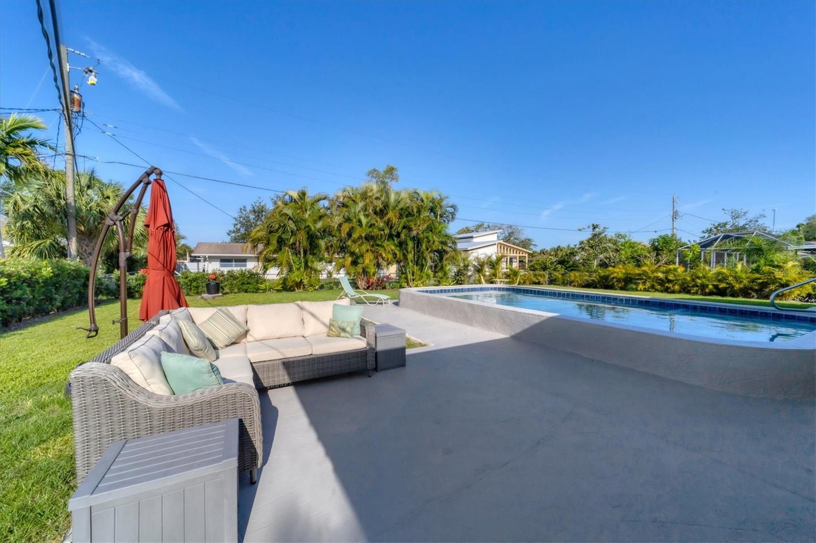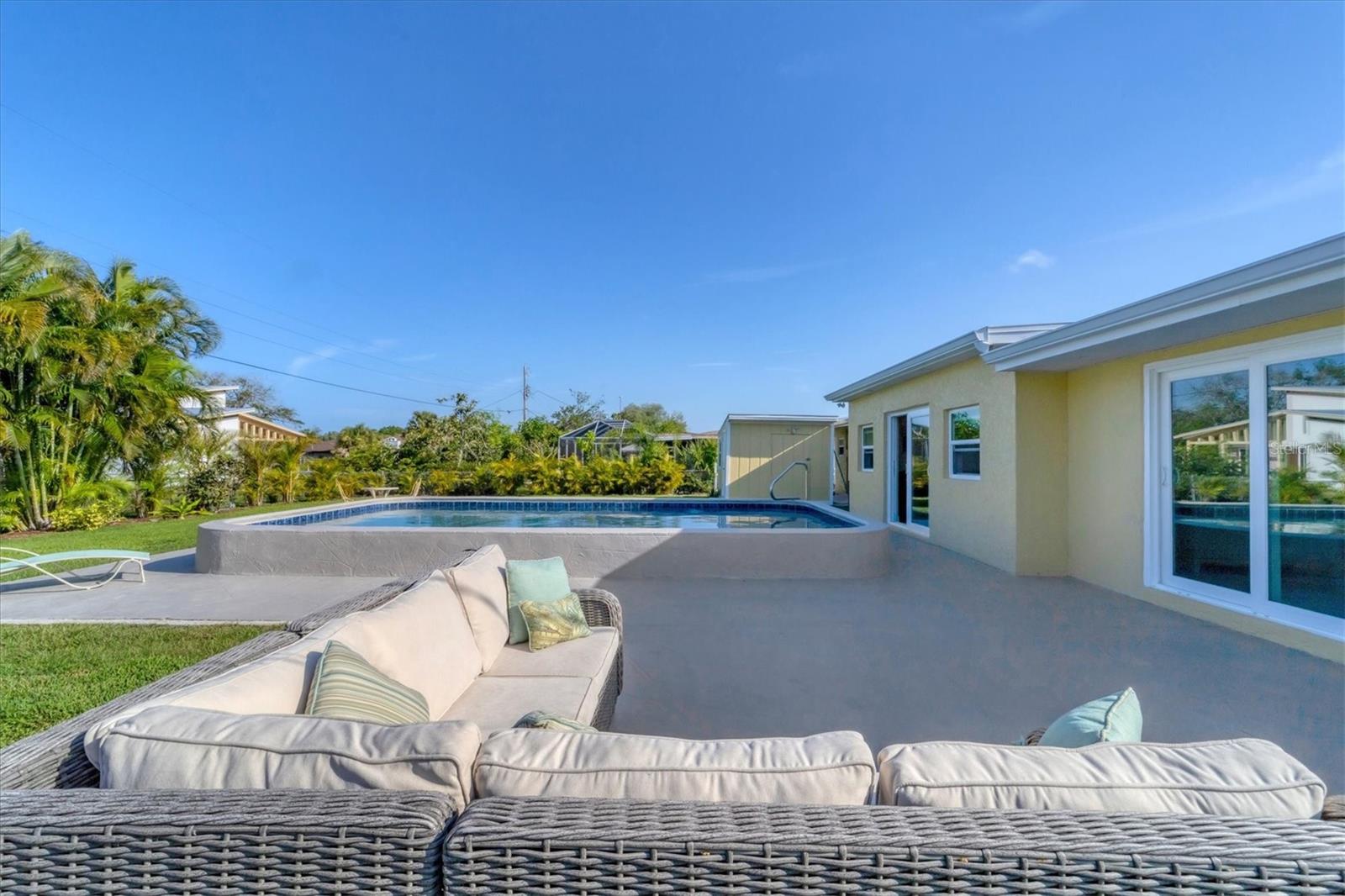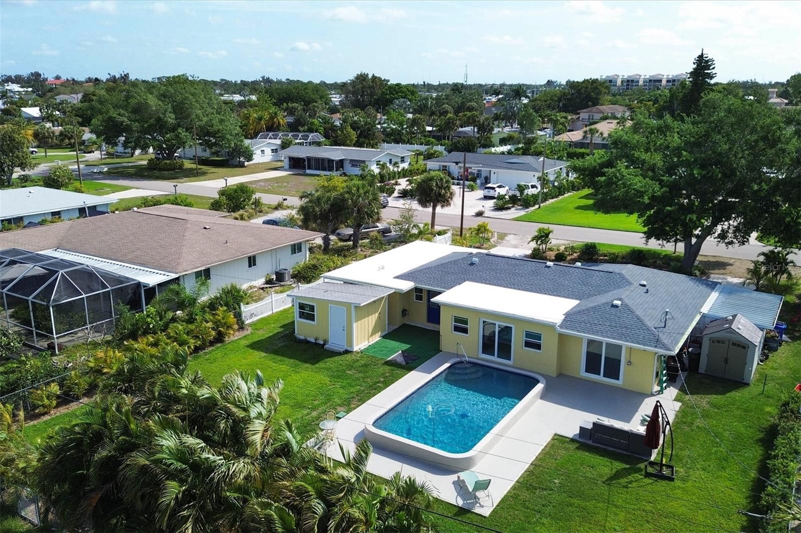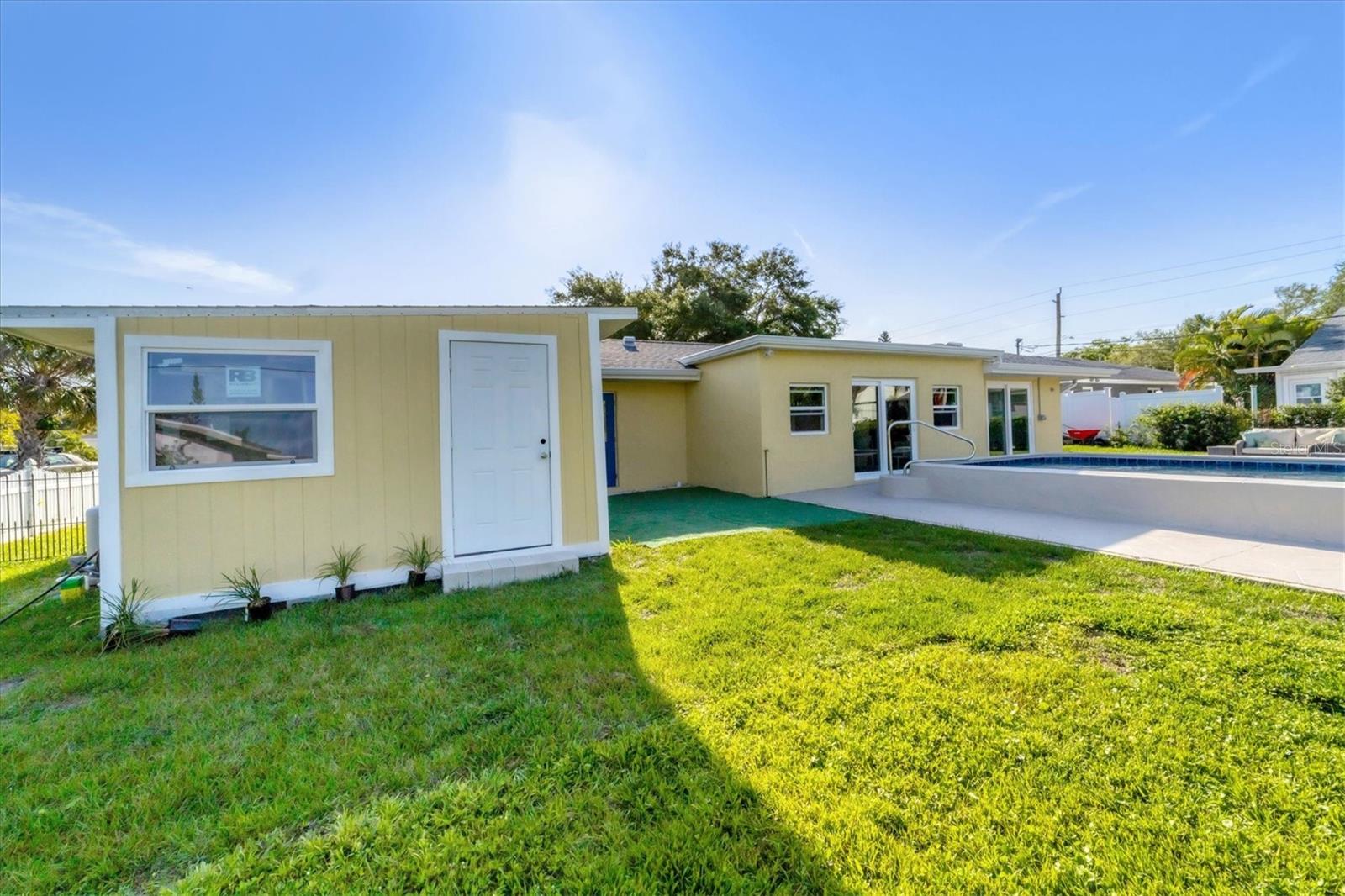 One or more photo(s) has been virtually staged. WOW! RARE OPPORTUNITY! INVESTOR ALERT!! This home has been COMPLETELY RENOVATED from top to bottom. The owner intended to retire in this home and it was renovated accordingly. The main house has 2 bedrooms and 1 1/2 baths. The studio apartment has a full kitchen and full bath. Allowing lots of light, the large high-impact windows will make you appreciate living in paradise. Some of the renovations are a beautiful kitchen with stone counters, abundant cabinetry with a large pantry you will love, updated bathrooms, attractive specialty ceilings, updated electrical services including wiring, A/C in the main house, apartment A/C in 2019, roof with commercial grade membrane, high-impact windows and doors, and resurfaced salt water pool. Plus the original terrazzo floors have been beautifully refinished. The bonus room in the main house was totally redone structurally as well as cosmetically. House was just painted and fresh landscaping installed. There is also a storage shed for your outdoor "things" plus a storage building behind the legal apartment that can be used by you or offered to your tenant.The apartment can be used as a mother-in-law suite or rented out for income seasonally or annually.. The main house would make a wonderful full time or part time residence.. There are separate utilities for both sides except for water. Please ask for the itemized list of improvements. Being within steps to Venice beach and charming downtown Venice, your dream of resort living can come true..
