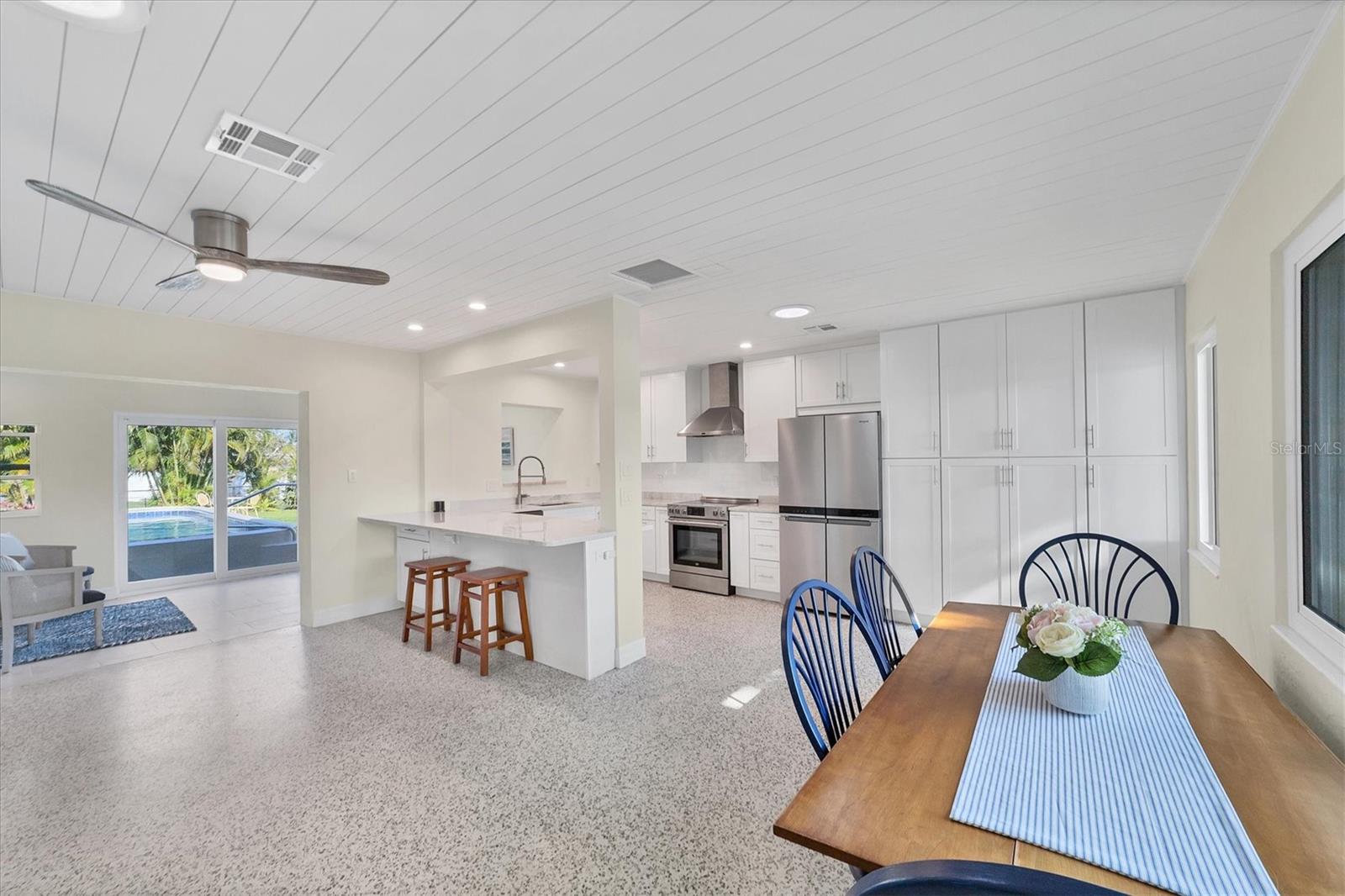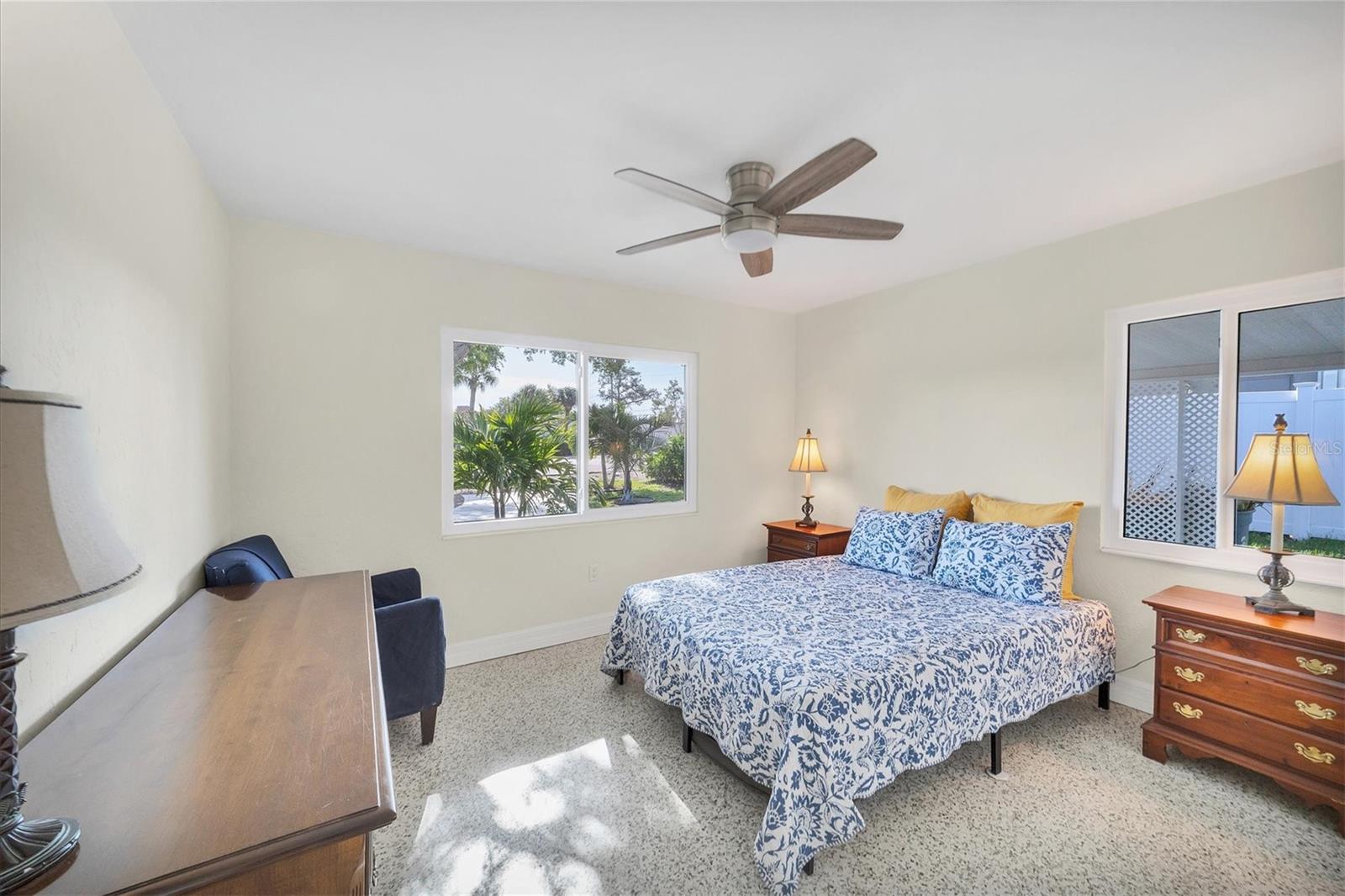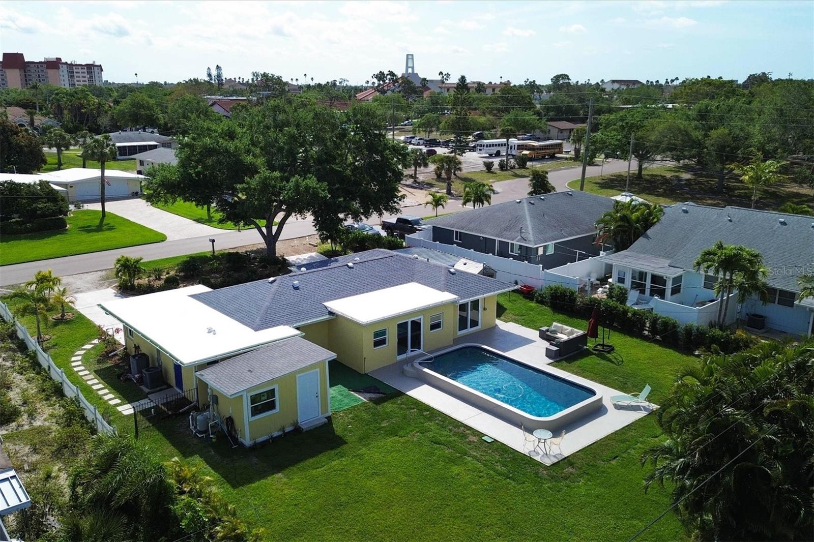 One or more photo(s) has been virtually staged. WOW! RARE OPPORTUNITY! INVESTOR ALERT!! This home has been COMPLETELY RENOVATED from top to bottom. The owner intended to retire in this home and it was renovated accordingly. The main house has 2 bedrooms and 1 1/2 baths. The studio apartment has a full kitchen and full bath. Allowing lots of light, the large high-impact windows will make you appreciate living in paradise. Some of the renovations are a beautiful kitchen with stone counters, abundant cabinetry with a large pantry you will love, updated bathrooms, attractive specialty ceilings, updated electrical services including wiring, A/C in the main house, apartment A/C in 2019, roof with commercial grade membrane, high-impact windows and doors, and resurfaced salt water pool. Plus the original terrazzo floors have been beautifully refinished. The bonus room in the main house was totally redone structurally as well as cosmetically. House was just painted and fresh landscaping installed. There is also a storage shed for your outdoor "things" plus a storage building behind the legal apartment that can be used by you or offered to your tenant.The apartment can be used as a mother-in-law suite or rented out for income seasonally or annually.. The main house would make a wonderful full time or part time residence.. There are separate utilities for both sides except for water. Please ask for the itemized list of improvements. Being within steps to Venice beach and charming downtown Venice, your dream of resort living can come true..