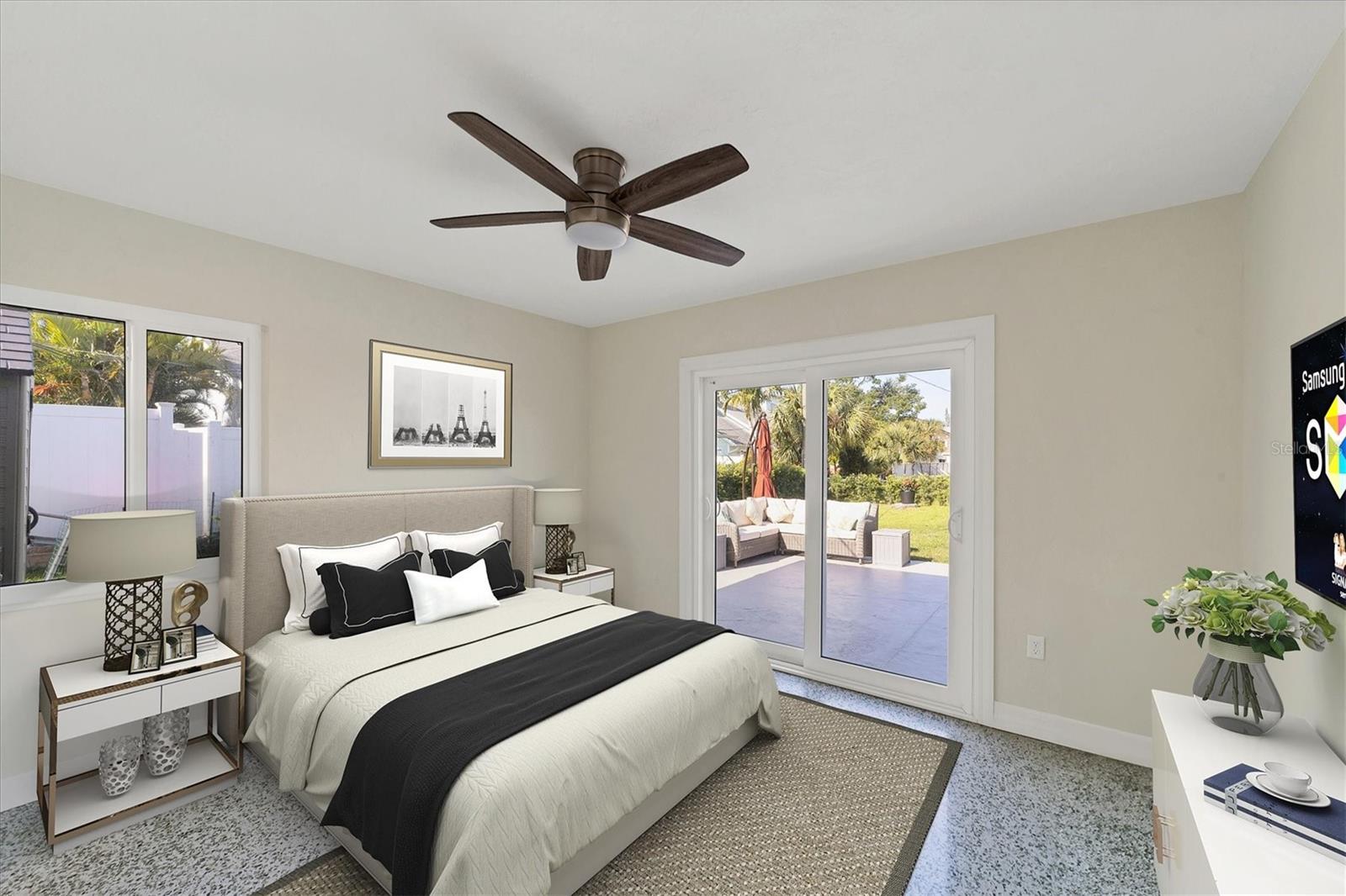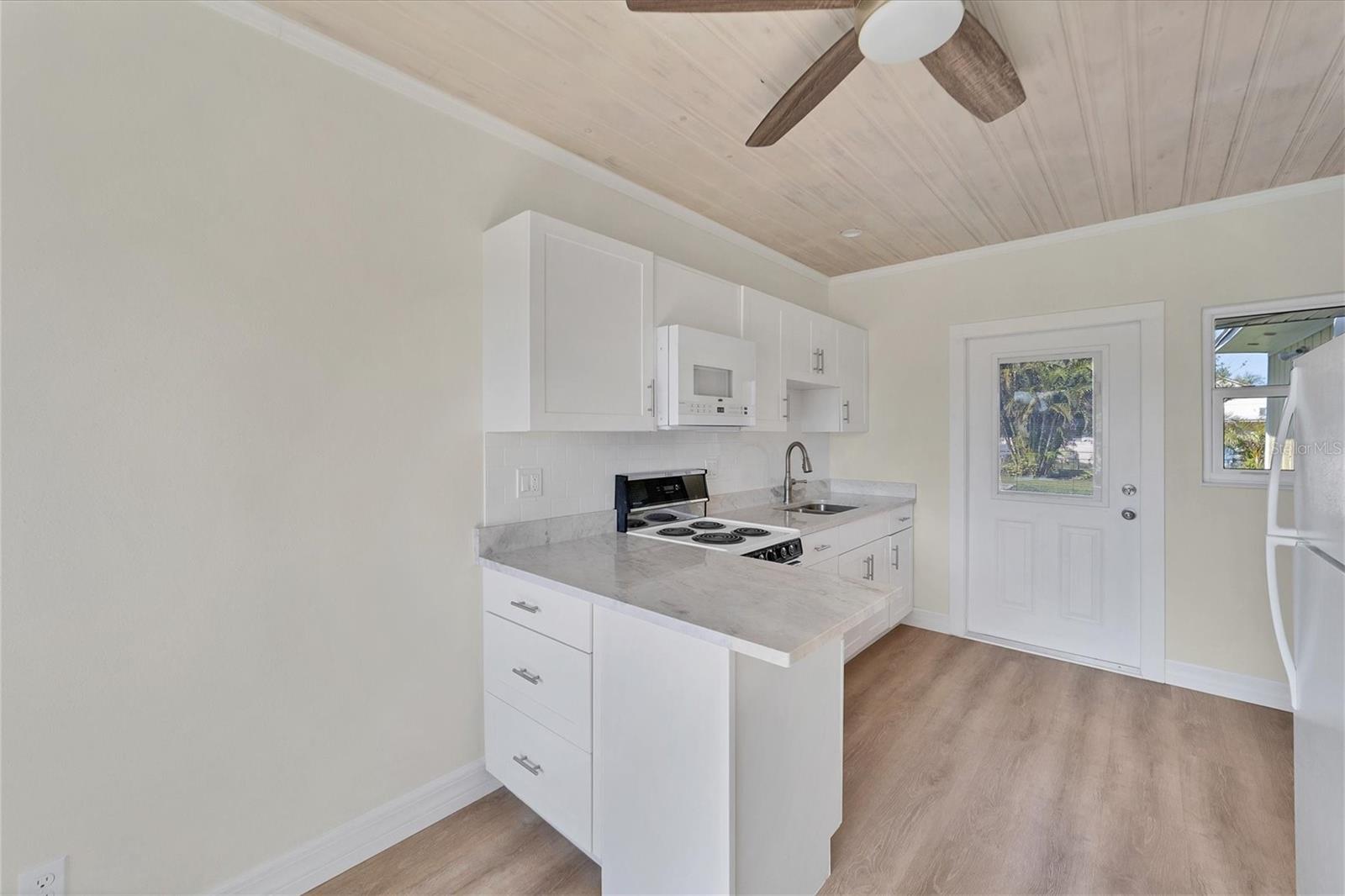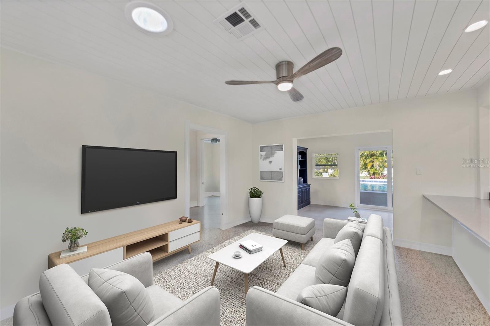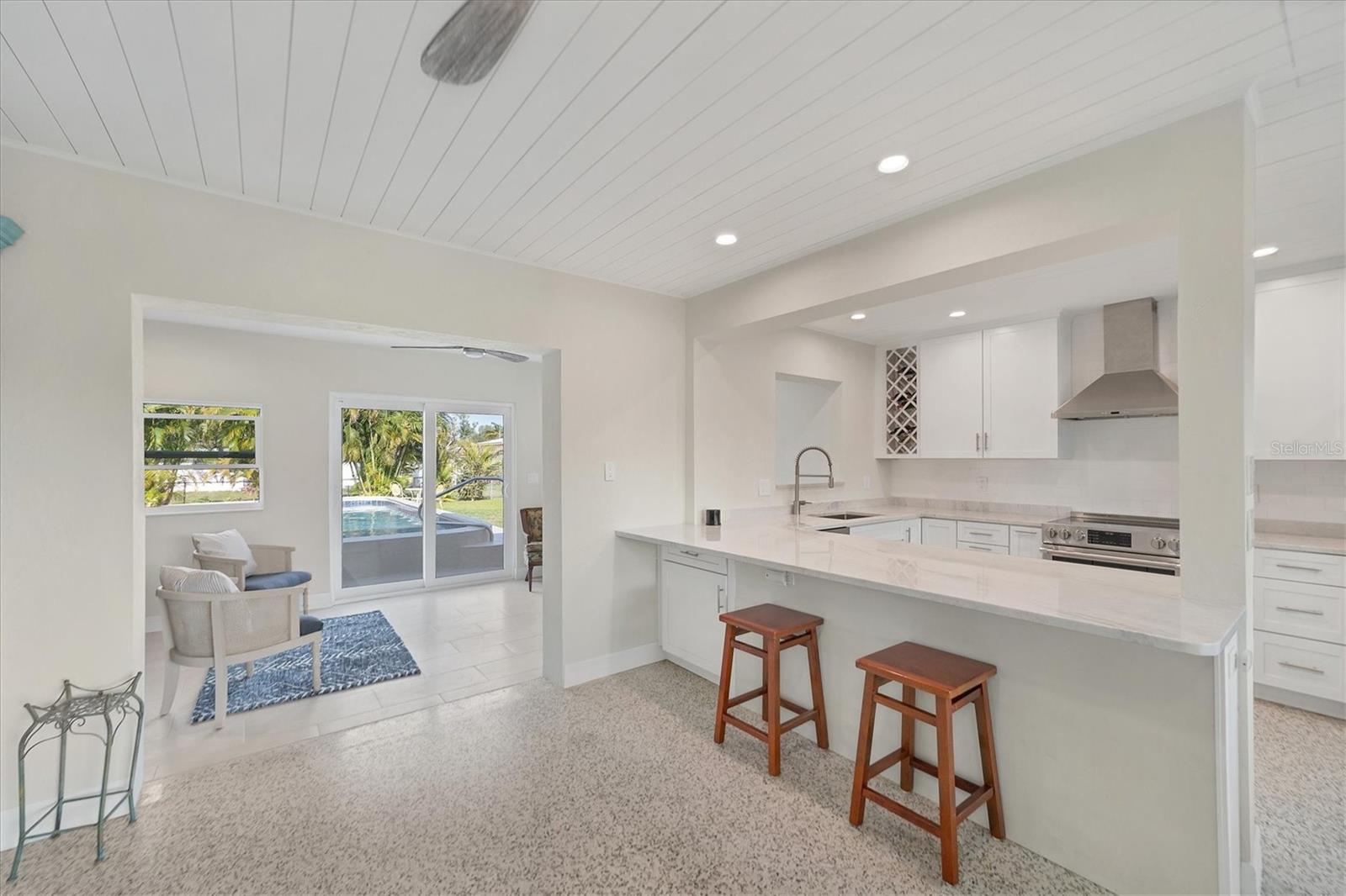 One or more photo(s) has been virtually staged. WOW! RARE OPPORTUNITY! INVESTOR ALERT!! This home has been COMPLETELY RENOVATED from top to bottom. The owner intended to retire in this home and it was renovated accordingly. The main house has 2 bedrooms and 1 1/2 baths. The studio apartment has a full kitchen and full bath. Allowing lots of light, the large high-impact windows will make you appreciate living in paradise. Some of the renovations are a beautiful kitchen with stone counters, abundant cabinetry with a large pantry you will love, updated bathrooms, attractive specialty ceilings, updated electrical services including wiring, A/C in the main house, apartment A/C in 2019, roof with commercial grade membrane, high-impact windows and doors, and resurfaced salt water pool. Plus the original terrazzo floors have been beautifully refinished. The bonus room in the main house was totally redone structurally as well as cosmetically. House was just painted and fresh landscaping installed. There is also a storage shed for your outdoor "things" plus a storage building behind the legal apartment that can be used by you or offered to your tenant.The apartment can be used as a mother-in-law suite or rented out for income seasonally or annually.. The main house would make a wonderful full time or part time residence.. There are separate utilities for both sides except for water. Please ask for the itemized list of improvements. Being within steps to Venice beach and charming downtown Venice, your dream of resort living can come true..