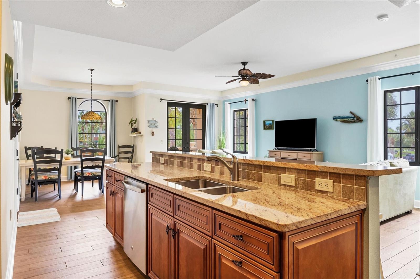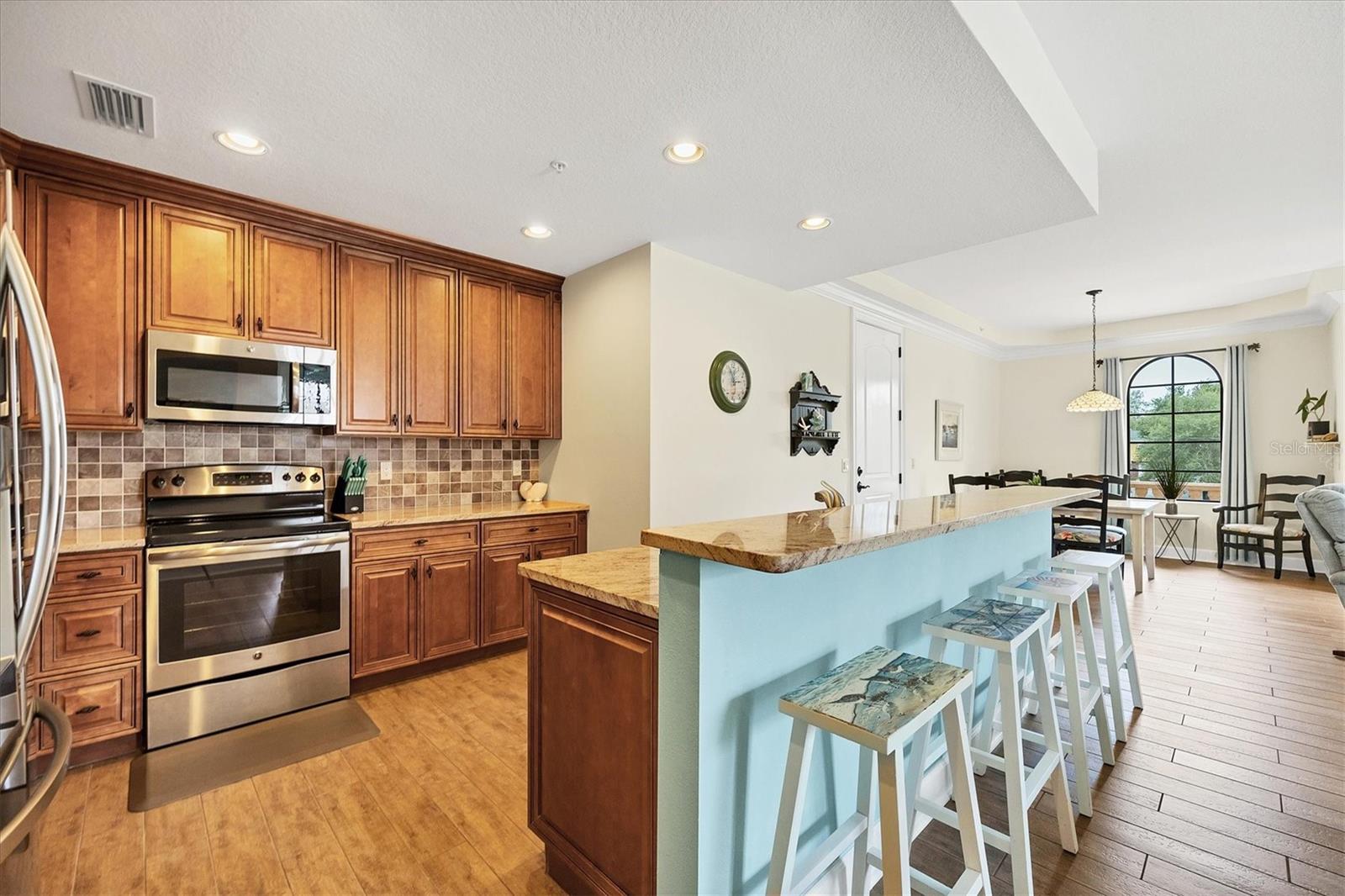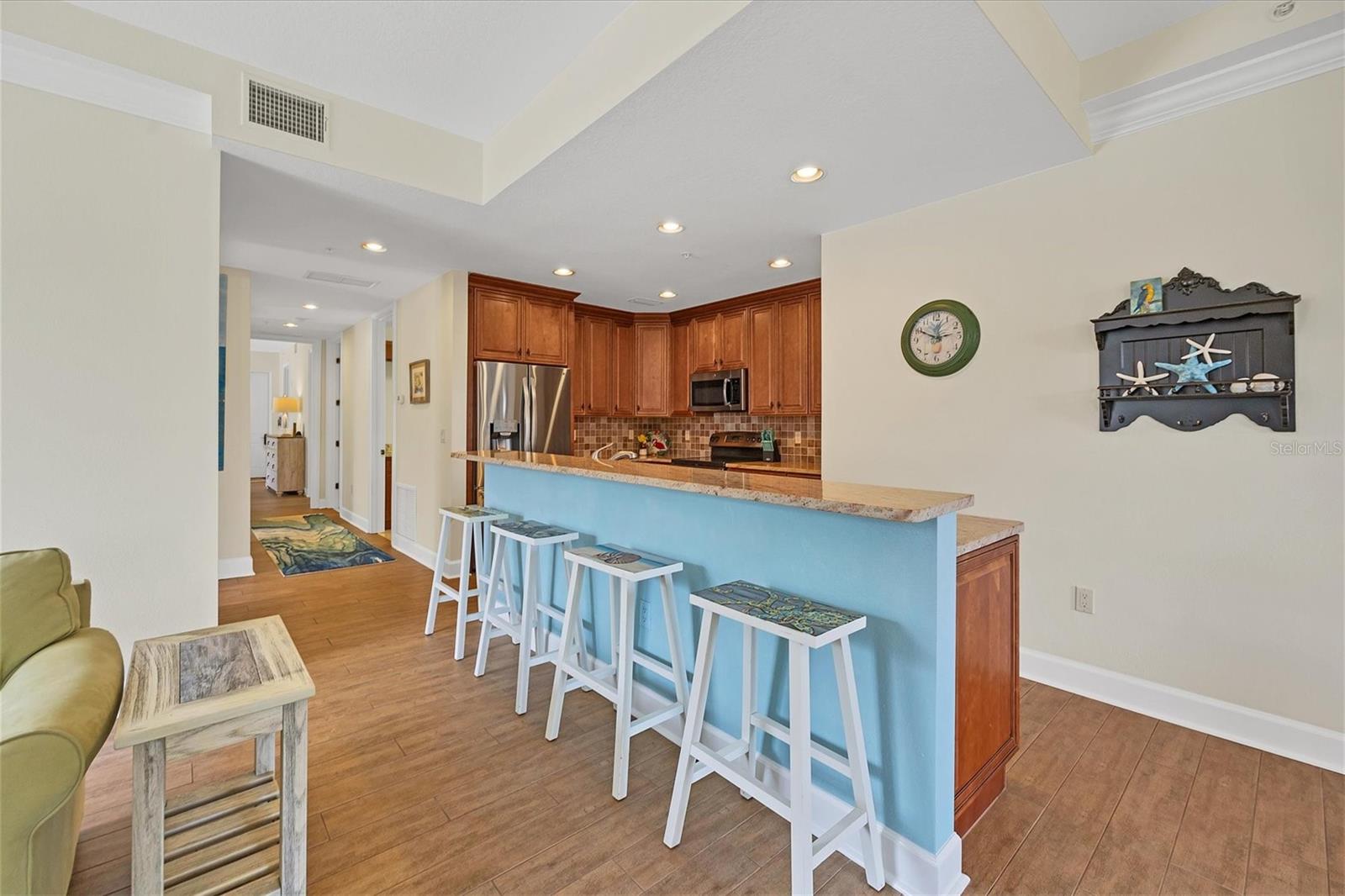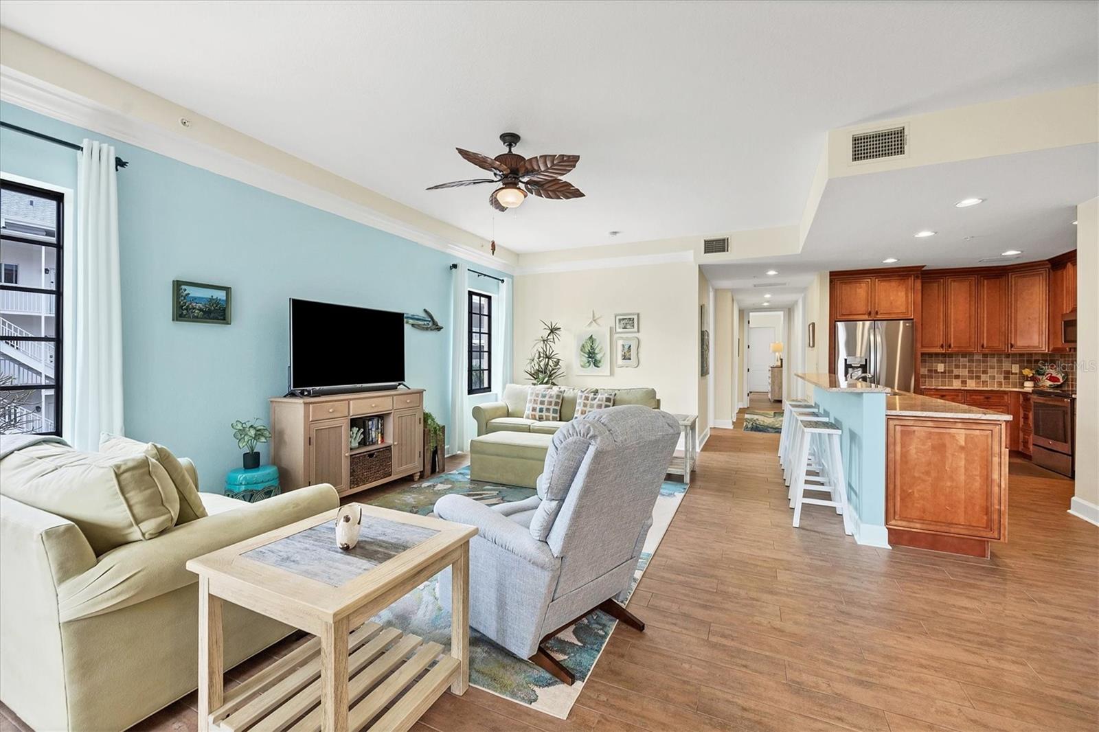Welcome to your fully furnished dream condo on Venice Island!! This exquist residence contrusted in 2015, is situated on the second floor and boasts a generous living space of 1,558 square feet. With remarkable features and unparralled location is a 1/2 block from Venice Beach/ Gulf of Mexico. As you step off the elevator, the ambiance of sophistication surrounds you! The chef inspired kitchen is a culinary dream featuring quarts countertops, stainless steel appliances and wood cabinetry. The generous bar stool seating area compliments the dining space, making it perfect for entertaining. The owners suite adornded with a niche wall offers a private exit, inviting bathroom and a spacious walk in closet. The additional bedrooms are nice sized with a well-appointed guest bathroom near by. Step out onto the balcony and enjoy the beautiful tree lined street and Heritage Park! BRING ALL OFFERS!! has impressive views of Heritage Park from your balcony! walking distance to downtown Venice and the Gulf of Mexico!