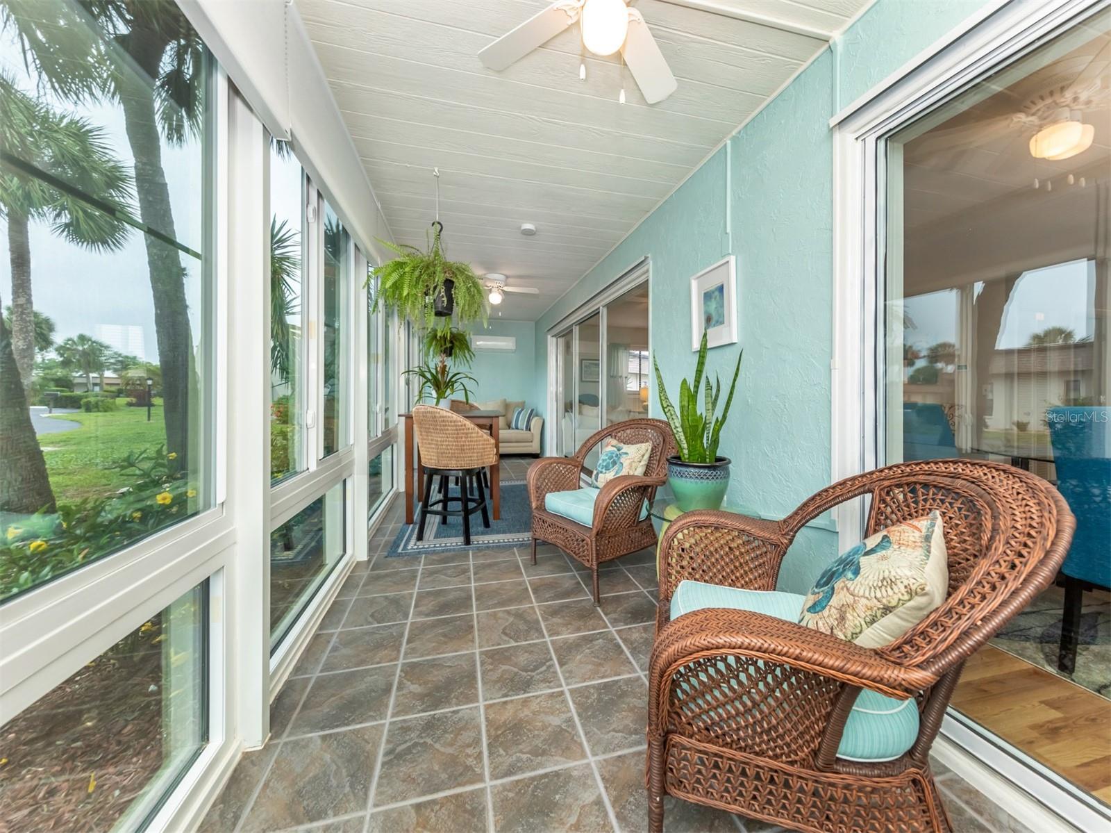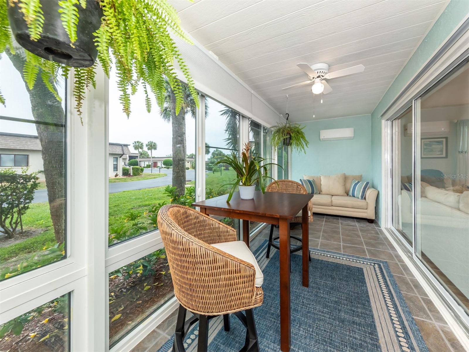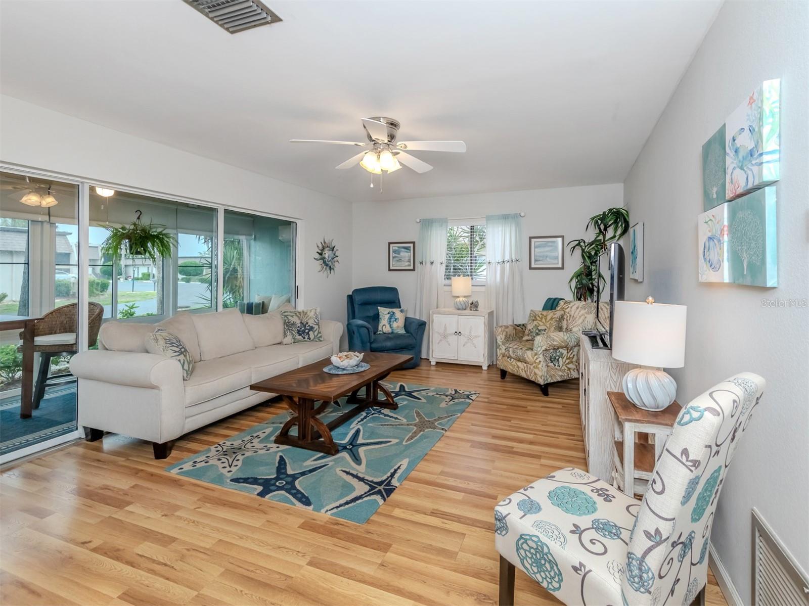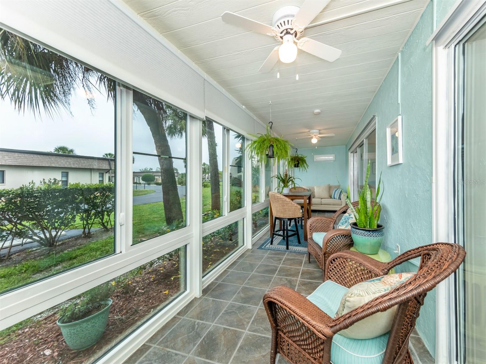 Move-in ready, 55+, recently renovated two-bedroom, two-bath residence beautifully accentuates a perfect blend of style, comfort, and location. Situated in the heart of Venice, this property provides the ideal backdrop for creating lasting memories within the Floridian lifestyle. This home is a must-see with one of the largest square feet condos in Nova Villa and boasting numerous upgrades. The spacious lanai is enclosed with a newer mini-split air conditioner/heater, Pella hurricane-impact windows, and electric remote blinds. Additionally, the home features a high-efficiency variable-speed AC unit with a Wi-Fi thermostat. The kitchen showcases stone countertops, stainless steel appliances, a custom recessed lighted ceiling with trim work, newer soft-close light wood cabinets, custom tile backsplash, under-sink water filtration, and more. Throughout the home, newer floors, window treatments, and light fixtures enhance the ambiance. The primary bedroom is generously sized with a walk-in closet and a separate linen closet. The primary bath is exceptional, featuring a custom subway tile shower with an inlay accent complemented by a pebble tile floor, a custom wood designer vanity with a stone counter, a fogless mirror, and neutral plank tile flooring, completing this restful retreat. The second bedroom is sure to delight any guest or can be utilized as an office/den. The second bath features a custom vanity with a stone counter and a fogless mirror, along with an elegant light fixture. An oversized laundry room with a full-size washer, dryer, and laundry tub doubles as a bonus storage room. A new carport was installed in 2020. Villa Nova is a 55-plus community conveniently located close to shopping, restaurants, golf courses, airports, theaters, cultural events, and the world-renowned city on the Island of Venice, boasting fourteen miles of open coastline and treasured beaches. Whether you are seeking a peaceful haven to call home or a place to vacation in the sunshine, do not hesitate to see this exceptionally well-presented move-in-ready property. Schedule an appointment today and be inspired to make this stunning home your very own. Look no further!