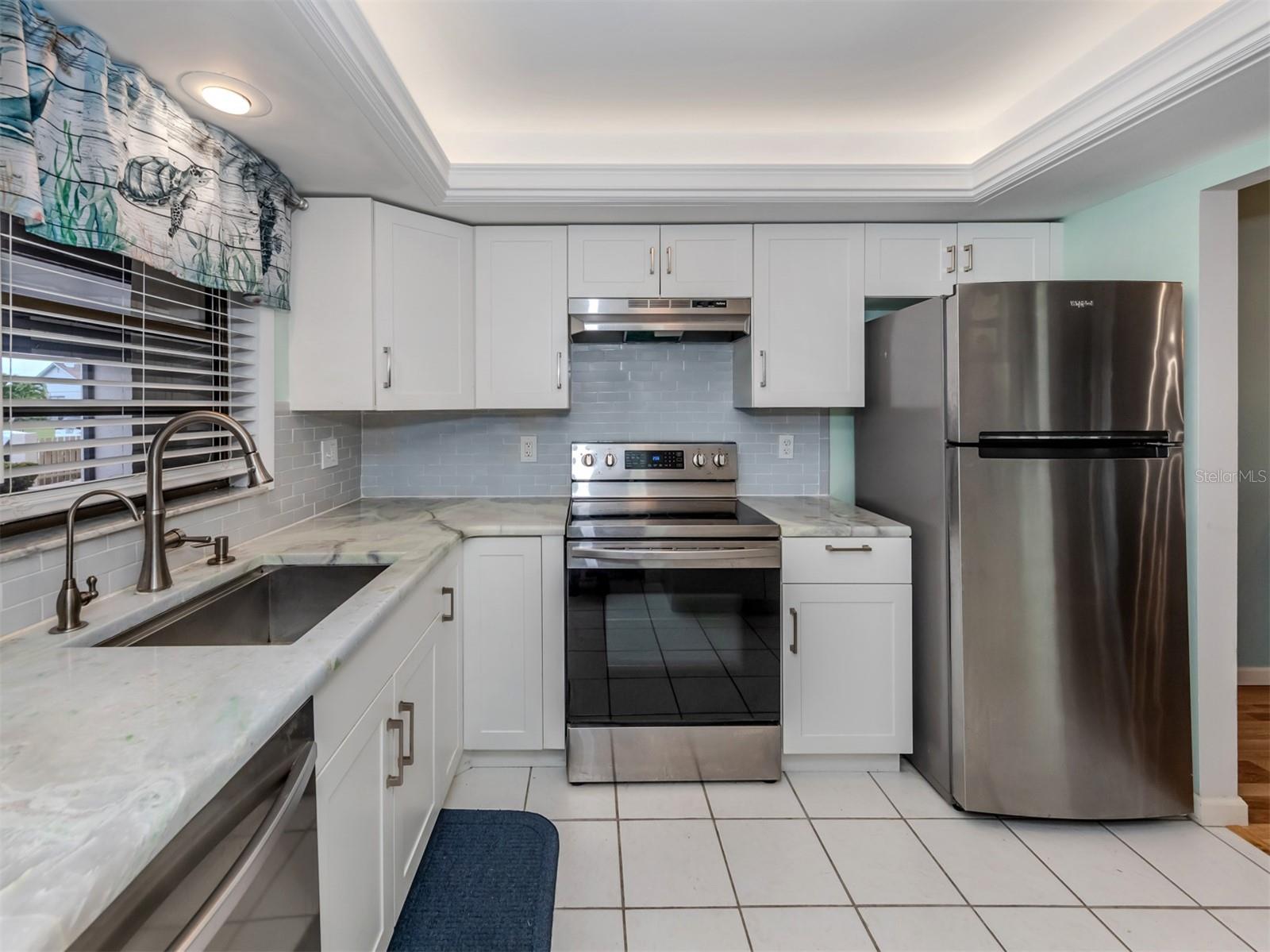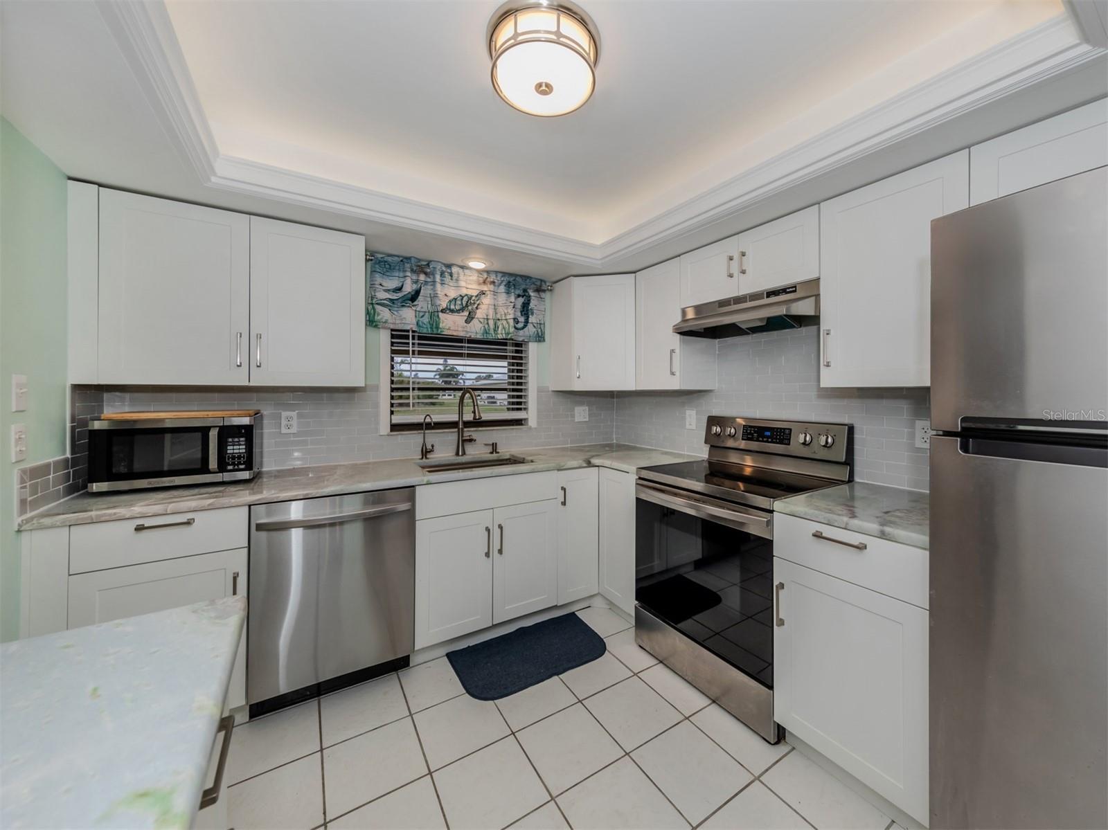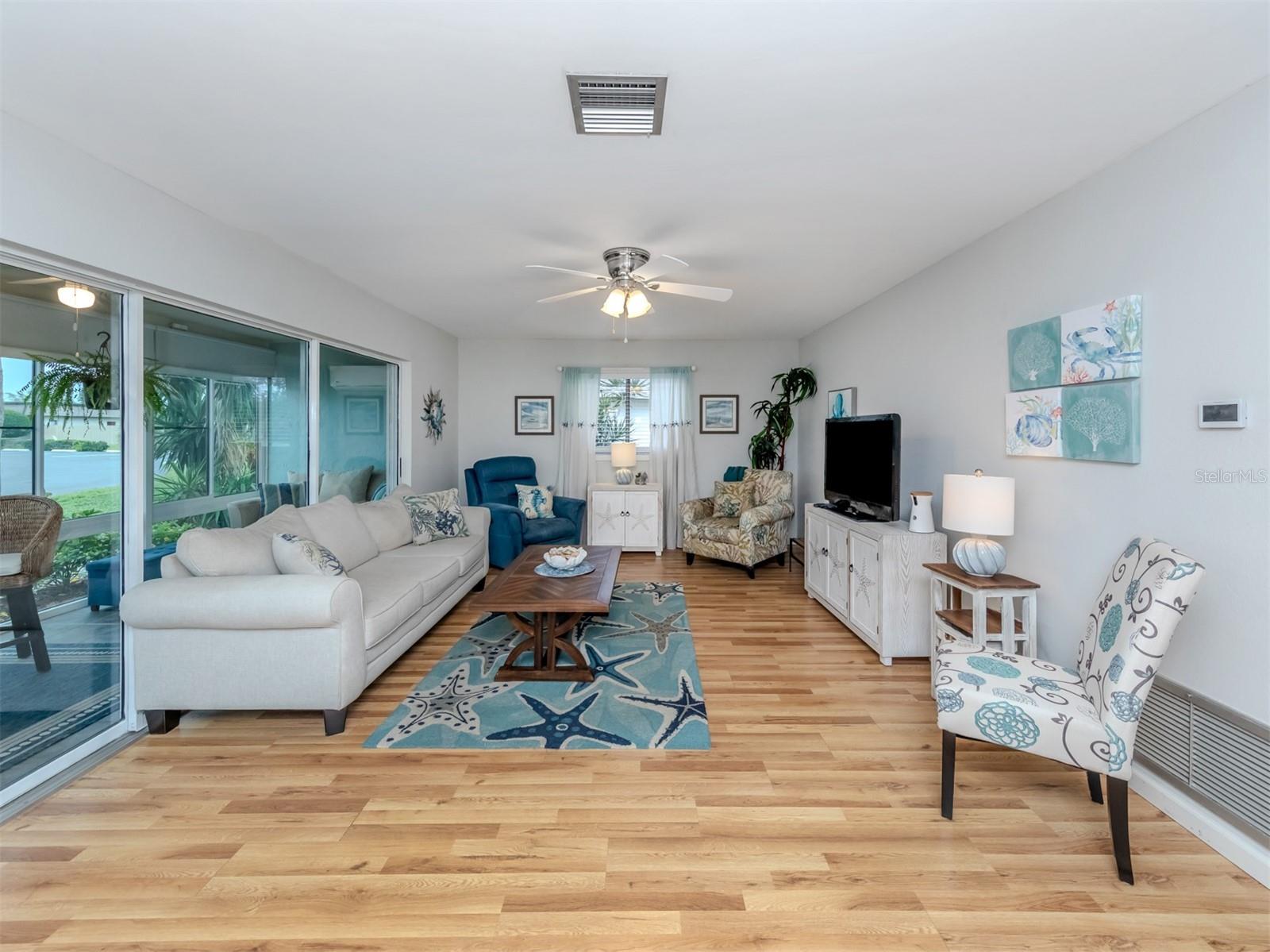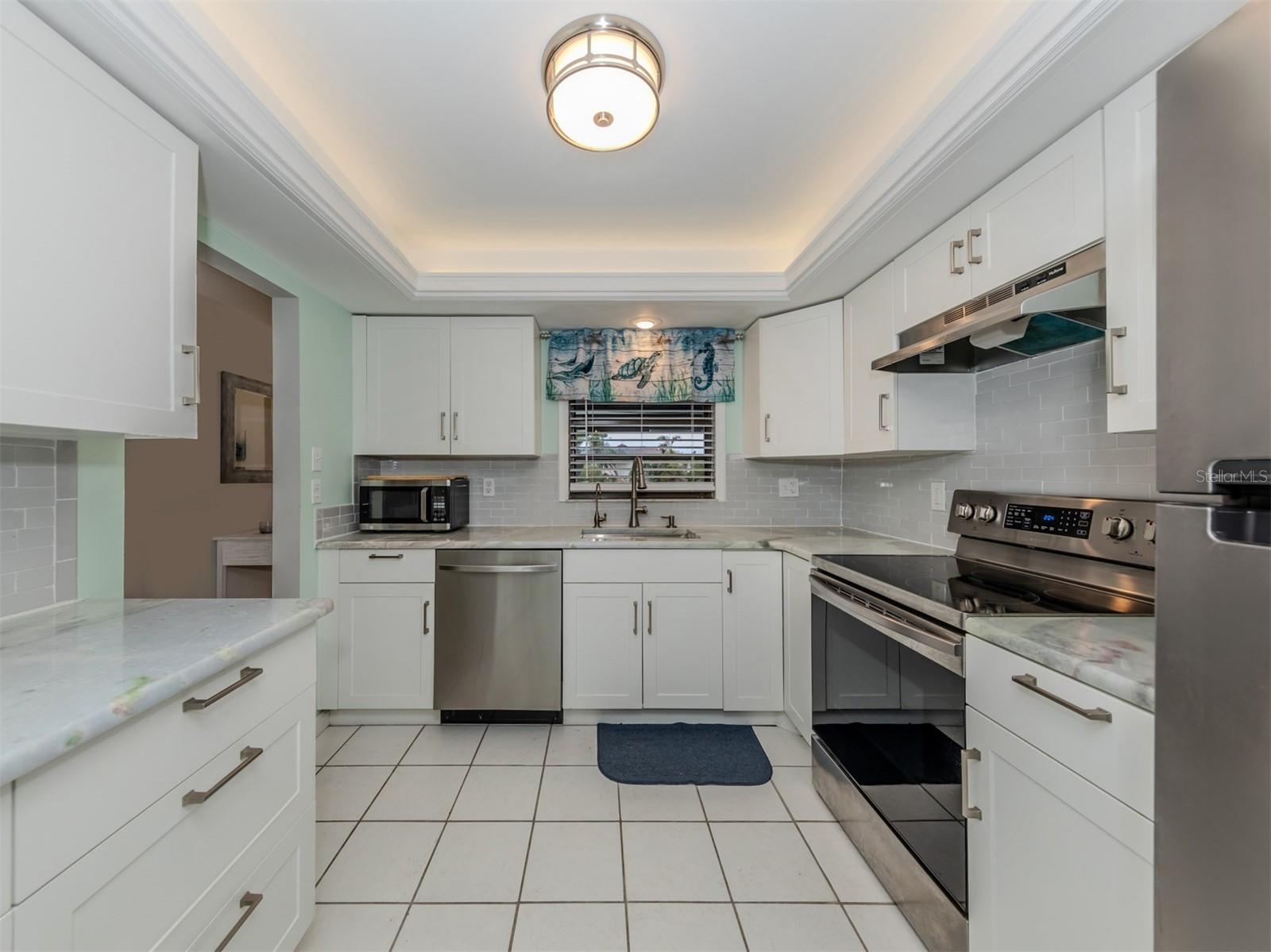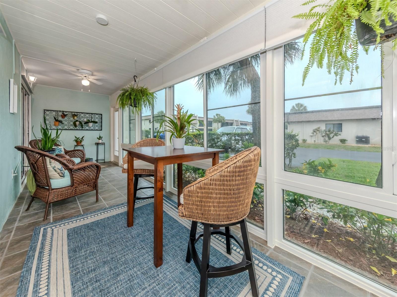 Move-in ready, 55+, recently renovated two-bedroom, two-bath residence beautifully accentuates a perfect blend of style, comfort, and location. Situated in the heart of Venice, this property provides the ideal backdrop for creating lasting memories within the Floridian lifestyle. This home is a must-see with one of the largest square feet condos in Nova Villa and boasting numerous upgrades. The spacious lanai is enclosed with a newer mini-split air conditioner/heater, Pella hurricane-impact windows, and electric remote blinds. Additionally, the home features a high-efficiency variable-speed AC unit with a Wi-Fi thermostat. The kitchen showcases stone countertops, stainless steel appliances, a custom recessed lighted ceiling with trim work, newer soft-close light wood cabinets, custom tile backsplash, under-sink water filtration, and more. Throughout the home, newer floors, window treatments, and light fixtures enhance the ambiance. The primary bedroom is generously sized with a walk-in closet and a separate linen closet. The primary bath is exceptional, featuring a custom subway tile shower with an inlay accent complemented by a pebble tile floor, a custom wood designer vanity with a stone counter, a fogless mirror, and neutral plank tile flooring, completing this restful retreat. The second bedroom is sure to delight any guest or can be utilized as an office/den. The second bath features a custom vanity with a stone counter and a fogless mirror, along with an elegant light fixture. An oversized laundry room with a full-size washer, dryer, and laundry tub doubles as a bonus storage room. A new carport was installed in 2020. Villa Nova is a 55-plus community conveniently located close to shopping, restaurants, golf courses, airports, theaters, cultural events, and the world-renowned city on the Island of Venice, boasting fourteen miles of open coastline and treasured beaches. Whether you are seeking a peaceful haven to call home or a place to vacation in the sunshine, do not hesitate to see this exceptionally well-presented move-in-ready property. Schedule an appointment today and be inspired to make this stunning home your very own. Look no further!