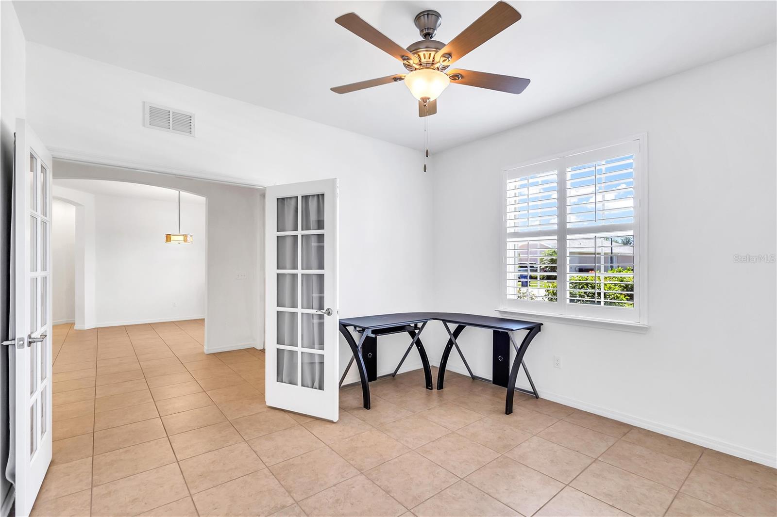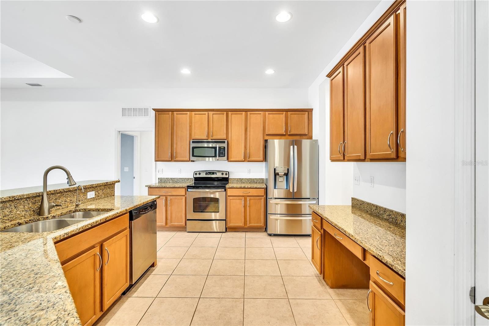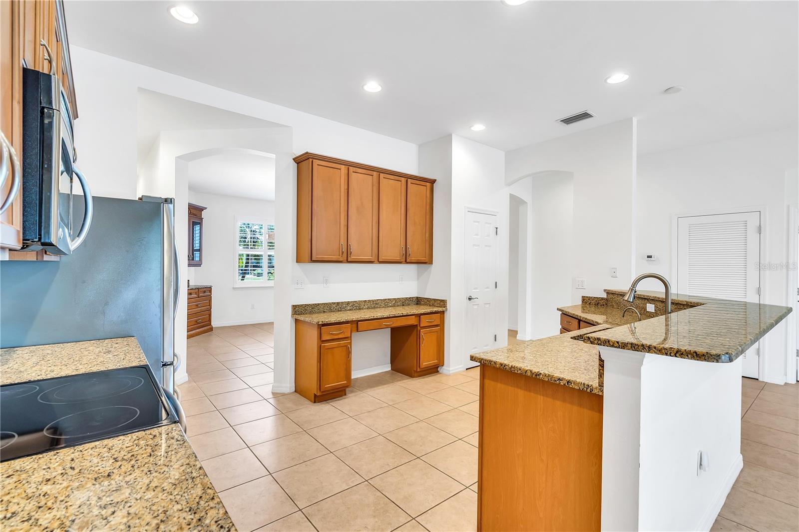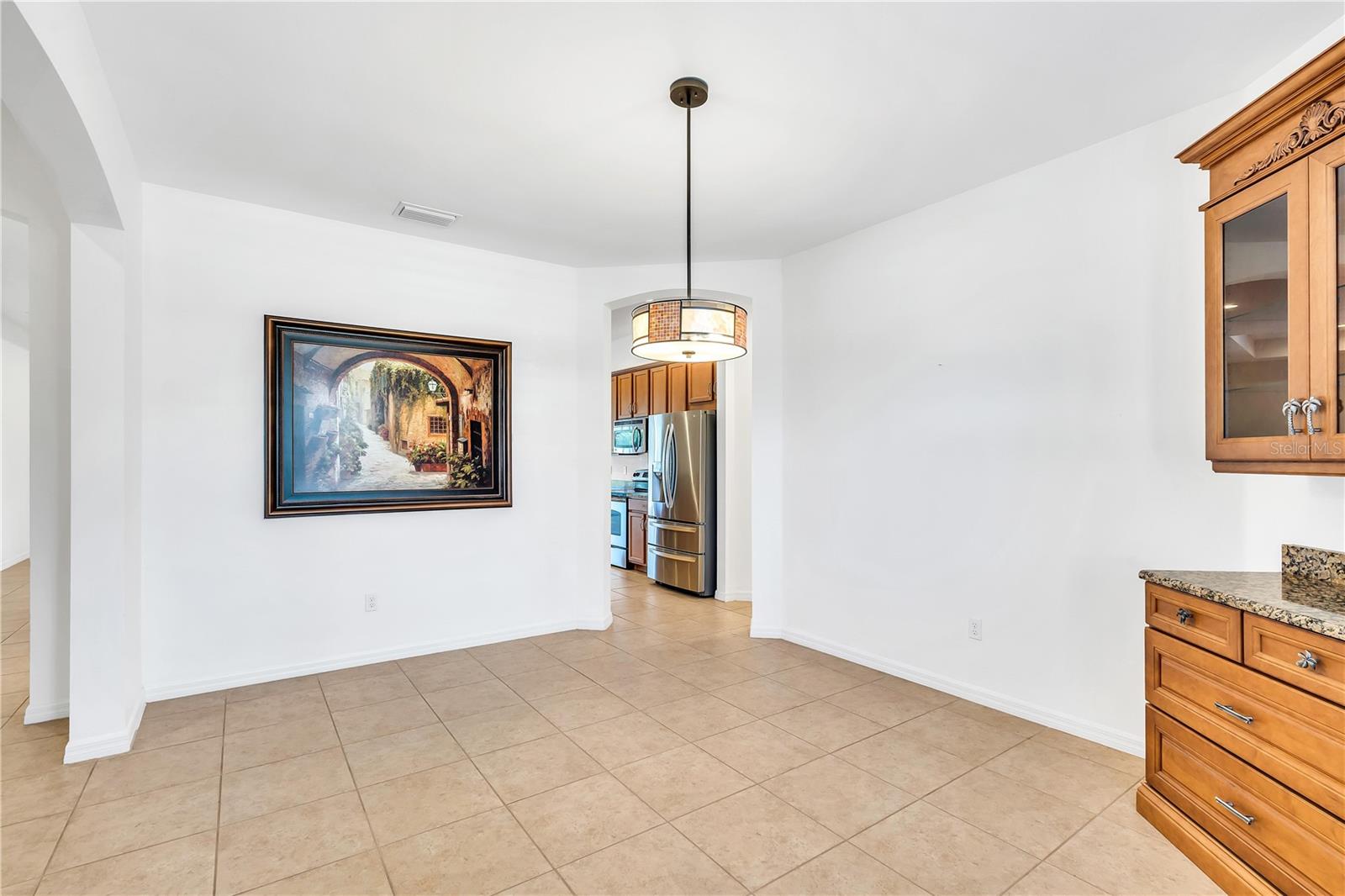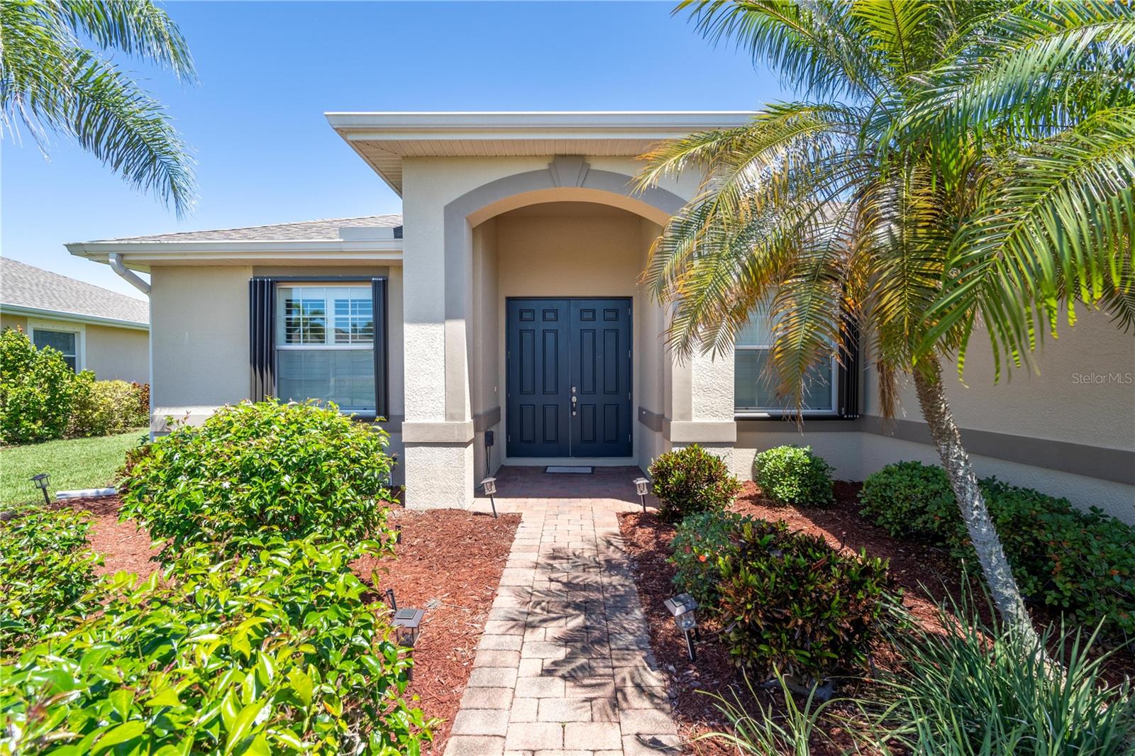 This home shows like new. Charming home has three bedrooms, two baths and two-car garage with over 2,250 square feet of heated and cooled living space is located conveniently in the gated community of Ventura Village. Ceramic tile is throughout the formal dining, great room/kitchen and over sized den with French doors. The great room opens to the kitchen with stainless steel appliances, granite counter tops, and a large breakfast bar. Primary Bedroom opens up the the lanai. Primary bath has a garden tube, dual sinks and a roman shower. The spacious paver screened lanai is 17 x 28 and has lake views, plus an open, under covered open air patio. Yes , there is room for a pool too.
