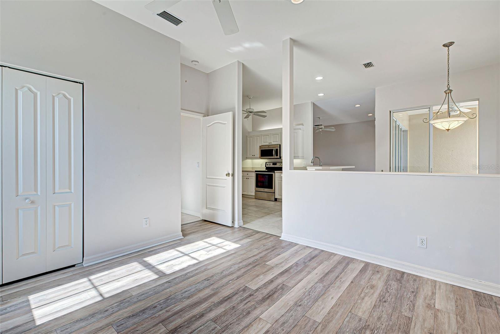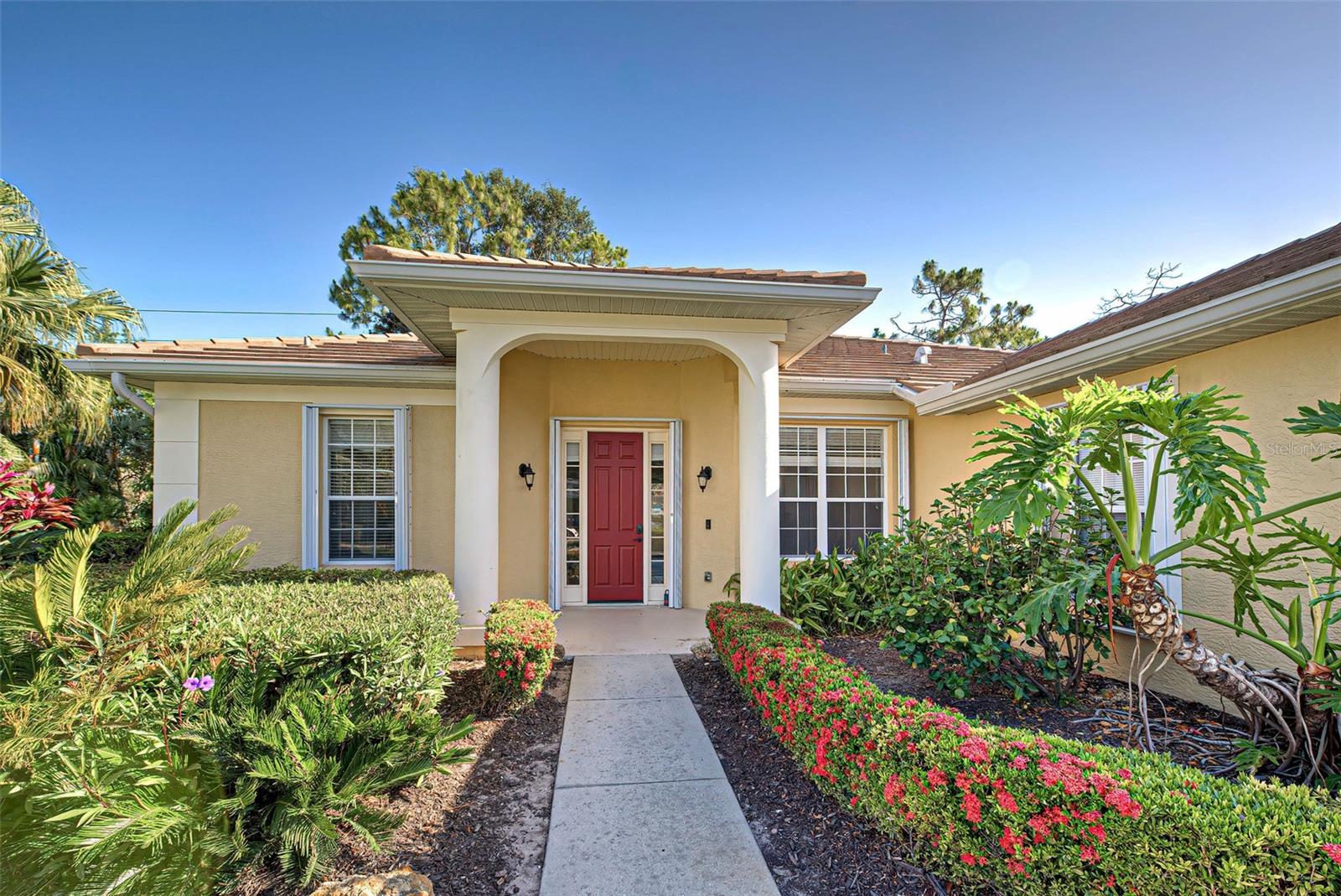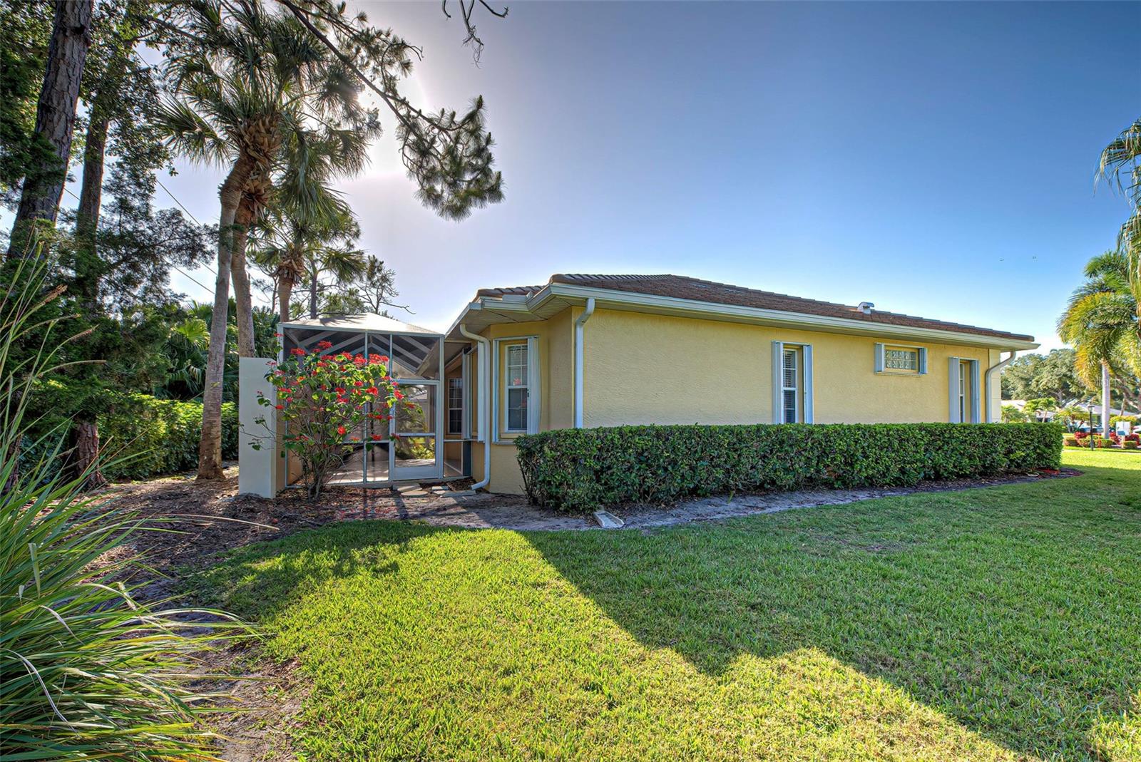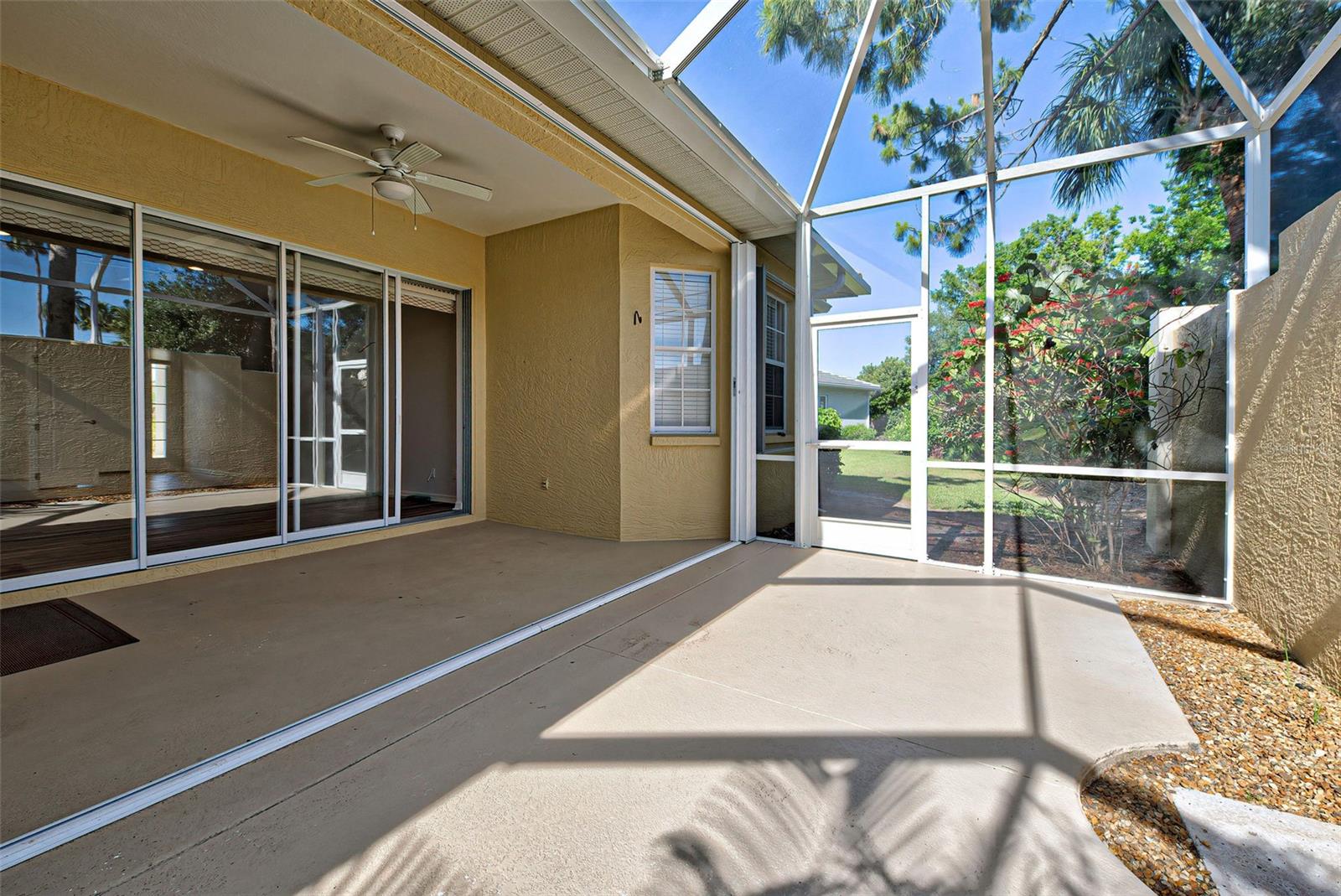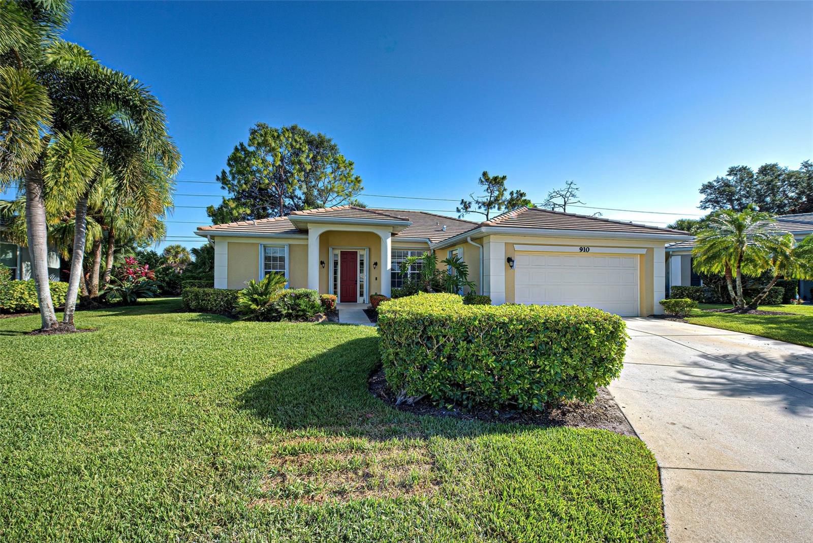 Brand New ROOF! Just installed April 2024! This unique Terrace Home is a condominium! Gracious floor plan features a large master suite, great room plan, brunch area off of kitchen and a flex room with closet off kitchen. Another lovely bedroom and bath area as a split plan. Inside utility room and 2 car garage with ceiling storage units! Total hurricane shitter package. Lovely walled patio area perfect for an outdoors water feature to enjoy the fresh air! Lovely kitchen with newer appliances and built in desk and pantry. Small cul-de-sac street in Plantation Golf and Country Club! There is no requirement to join the club but there are several levels of membership to choose from.