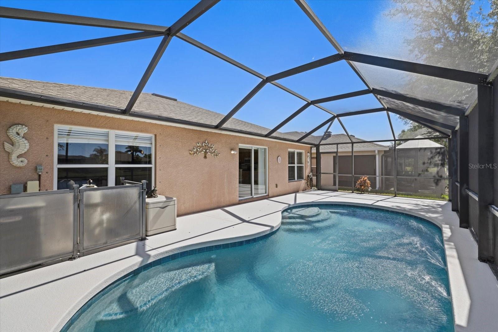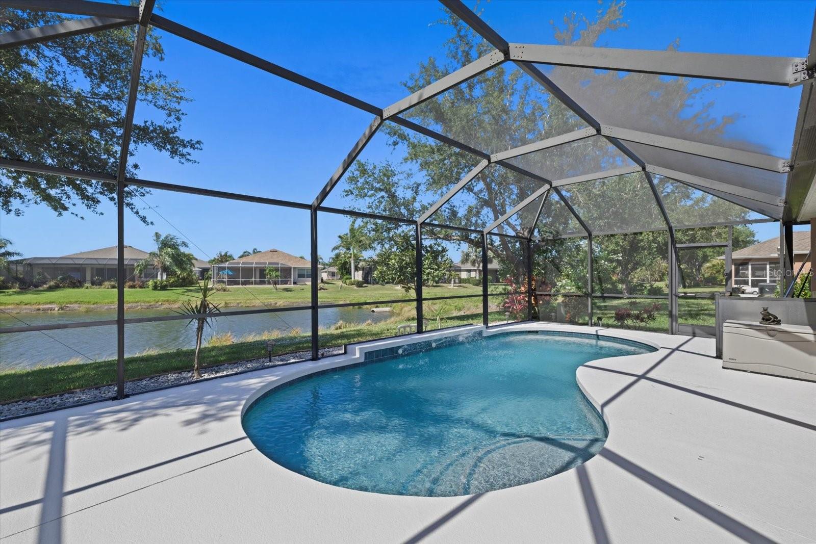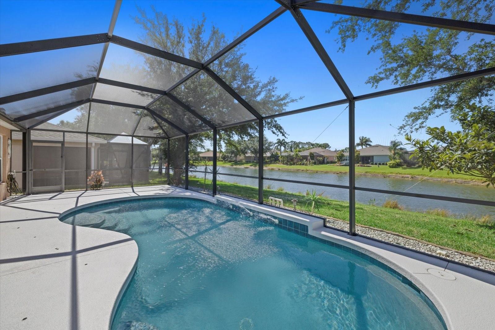 Live the Florida dream! This LAKEFRONT, POOL home is located 2 MILES FROM THE GULF OF MEXICO BEACH in the sought-after gated community of Ventura Village. NOT IN A FLOOD ZONE! NO CDD FEE. TAXES ARE PAID TO COUNTY ONLY. With over 1760 sq feet, NEW ROOF, 4 bedrooms, 2 baths, 2 car garage, formal dining room, eat-in kitchen, and great room, this home checks all the boxes. The vaulted ceilings, tiled floors, and granite countertops are just a few of the bonuses. The master bedroom has views over the lake and pool area, with a large master bath with dual vanities, a garden tub, a shower, and a large walk-in closet. There are 3 good-sized bedrooms, one of which has French doors and can be used as a den/office if preferred. The screened-in private pool area has plenty of space for a grill and outdoor furniture which overlooks the tranquil lake views. Beautifully landscaped with a community-controlled irrigation system. The heated community pool and clubhouse are just down the street, and with low HOA fees. There are many “A” rated schools to choose from in the area. Easy access to Englewood, Venice, Wellen Park, Manasota Beach, shopping, dining, and entertainment.