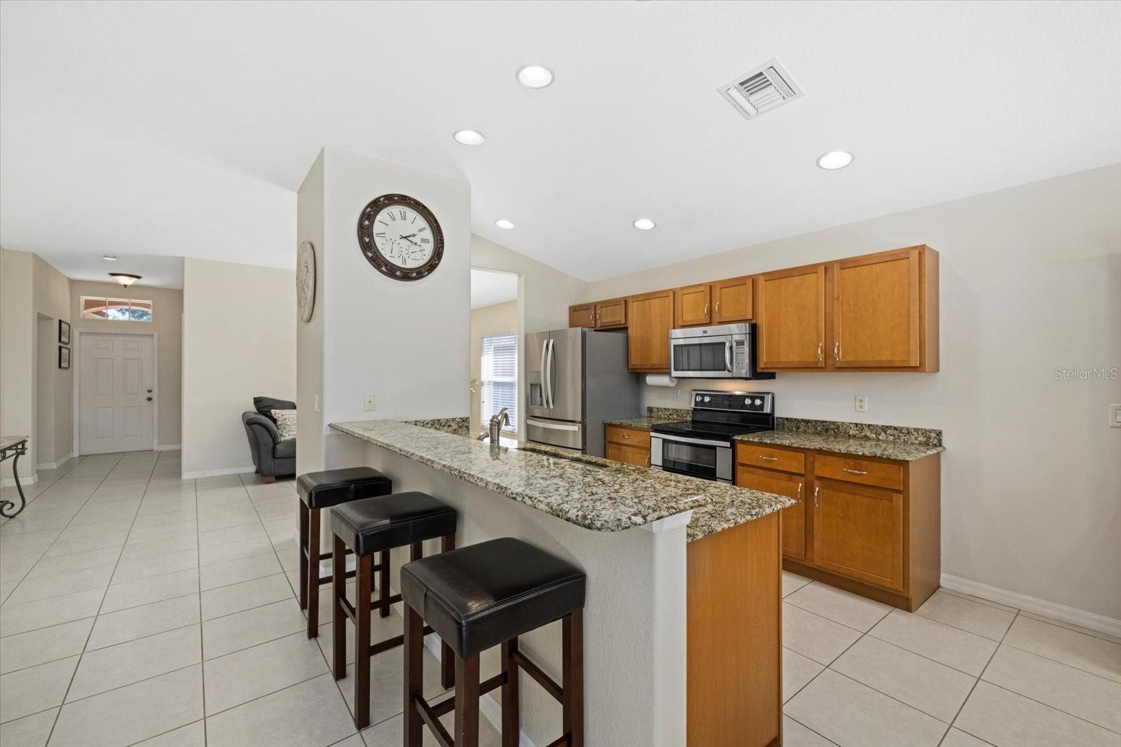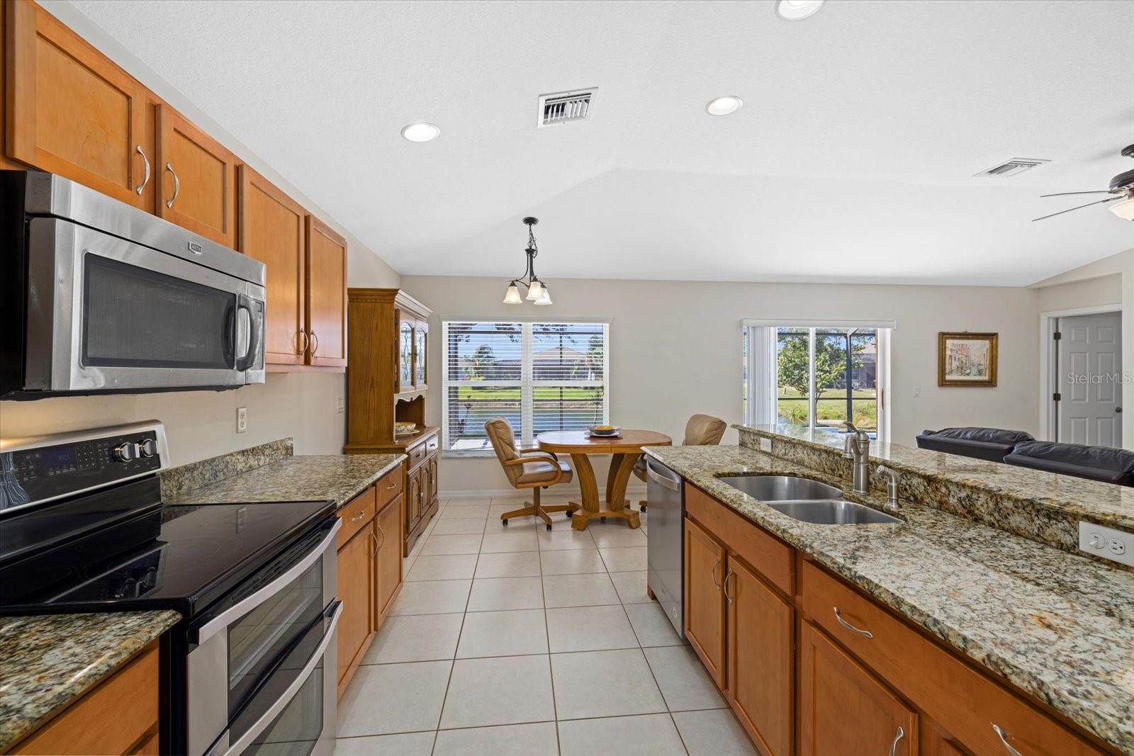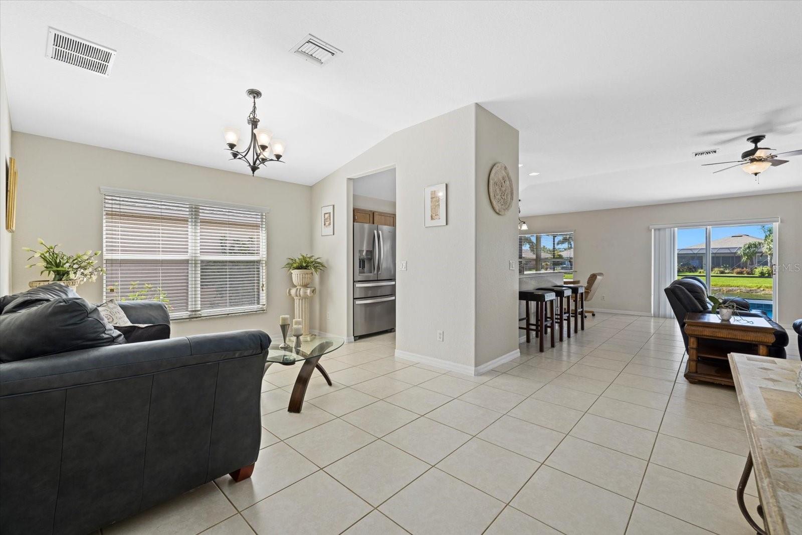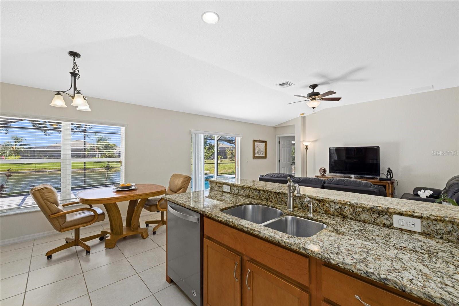 Live the Florida dream! This LAKEFRONT, POOL home is located 2 MILES FROM THE GULF OF MEXICO BEACH in the sought-after gated community of Ventura Village. NOT IN A FLOOD ZONE! NO CDD FEE. TAXES ARE PAID TO COUNTY ONLY. With over 1760 sq feet, NEW ROOF, 4 bedrooms, 2 baths, 2 car garage, formal dining room, eat-in kitchen, and great room, this home checks all the boxes. The vaulted ceilings, tiled floors, and granite countertops are just a few of the bonuses. The master bedroom has views over the lake and pool area, with a large master bath with dual vanities, a garden tub, a shower, and a large walk-in closet. There are 3 good-sized bedrooms, one of which has French doors and can be used as a den/office if preferred. The screened-in private pool area has plenty of space for a grill and outdoor furniture which overlooks the tranquil lake views. Beautifully landscaped with a community-controlled irrigation system. The heated community pool and clubhouse are just down the street, and with low HOA fees. There are many “A” rated schools to choose from in the area. Easy access to Englewood, Venice, Wellen Park, Manasota Beach, shopping, dining, and entertainment.