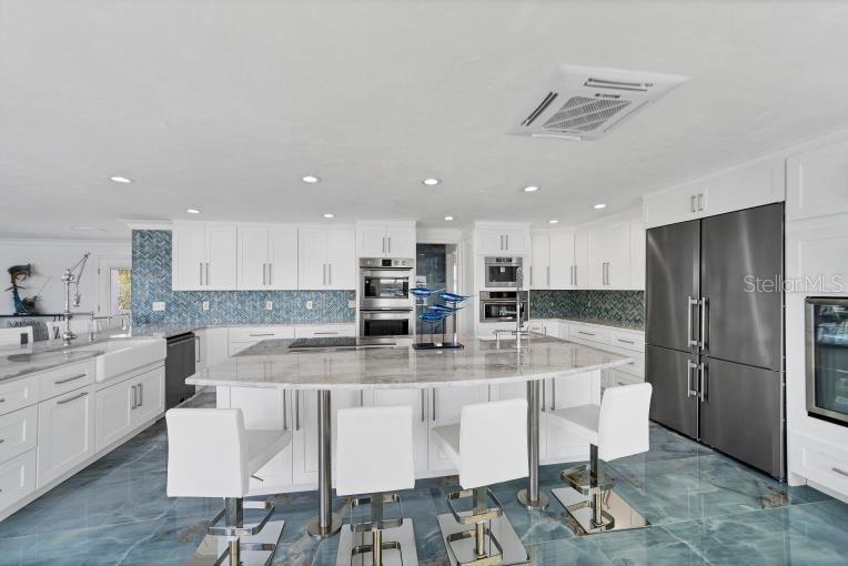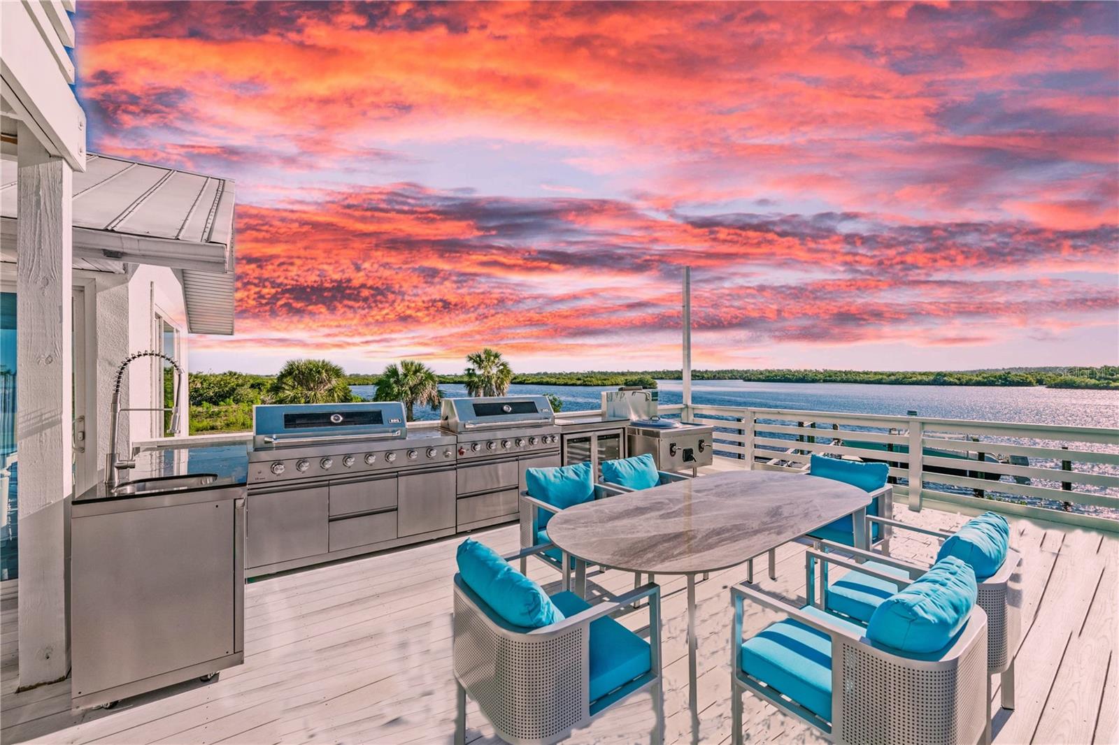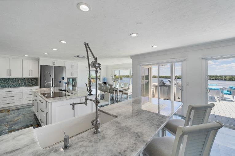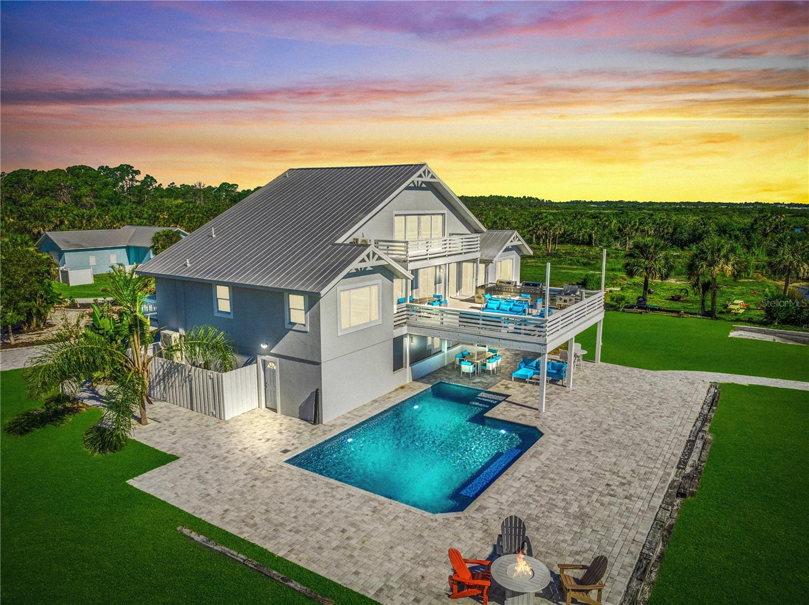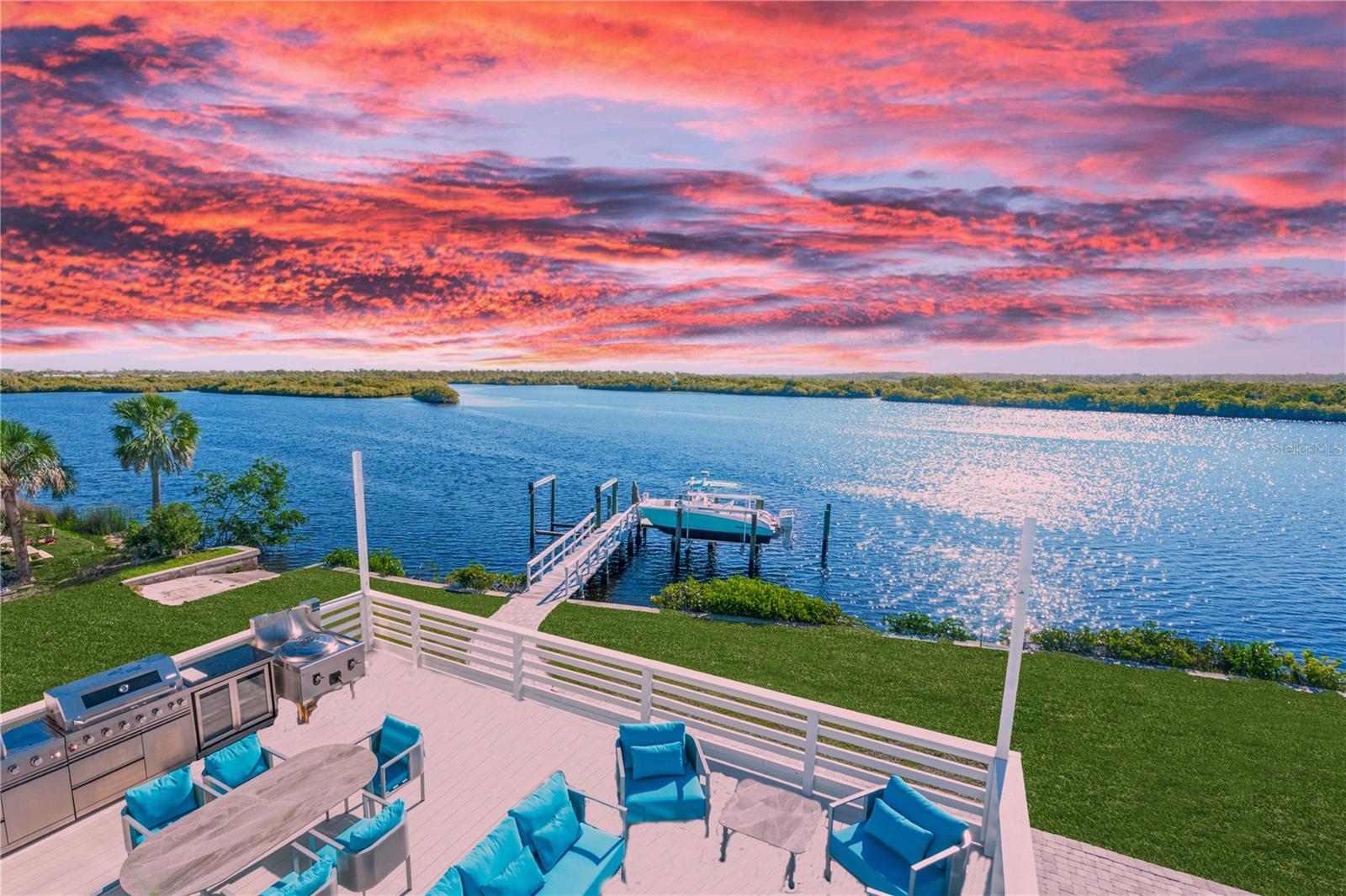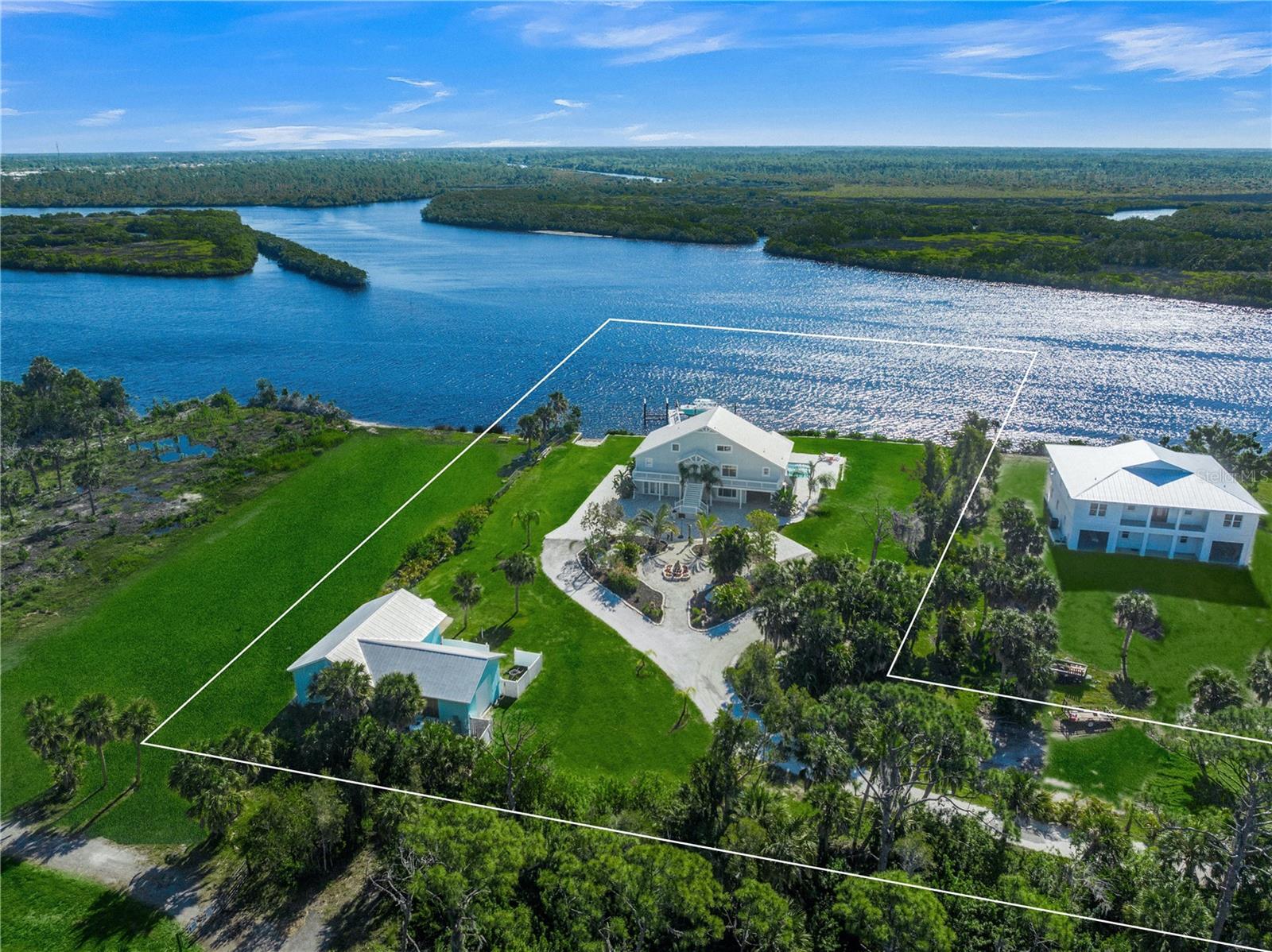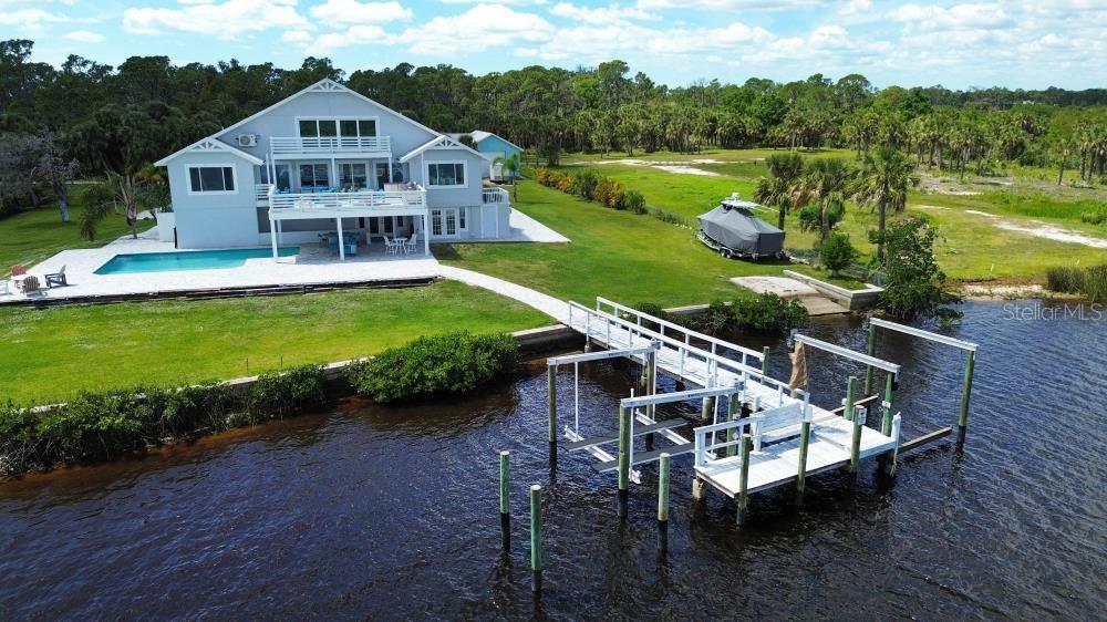 Introducing luxury coastal living on this splendid lush 1.2 acre riverfront estate, showcasing a true blend of elegance and that “Old Florida” feeling! With an impressive 155 feet of river frontage offering captivating panoramic views from almost every room of the Historic Myakka River looking across to an unspoiled protected estuary preserve! With a large dock, two boat lifts, plus a private boat ramp on this estate, you have the opportunity to embrace nature, boating, fishing, water sports, access to the Intracoastal Waterway, Charlotte Harbor, and the Gulf of Mexico offering priceless family adventures! All of this is just minutes to Wellen Park and modern conveniences including world-class medical facilities, esteemed schools, upscale dining, entertainment venues hosting concerts and more, plus the Atlanta Braves Spring Training facility! The residence has been renovated to custom impeccable standards expected in today’s contemporary…. The main level great room is stylish and practical with stunning porcelain flooring, an incredible gourmet kitchen featuring high-end appliances which include Liebherr refrigerator, wine refrigerator, Bosch built-in coffee maker, a Fulgor Malina 6-burner stove with dual ovens plus a large center island, custom cabinetry and marble countertops which are only eclipsed by the stunning views of the river and preserve! However; you may be beckoned to the fabulous main deck for entertaining and grilling in a grand way with a remarkable outdoor kitchen offering two grills, a wok/fryer, sink, refrigerator and dining area for large groups overlooking the Myakka River and Preserve! The entire third floor is a VIP Master Suite with a private balcony offering breathtaking views, custom designed imported carpeting, a luxurious Master Bathroom featuring gorgeous custom-made imported sinks, a large walk-in rain shower and soaking tub, plus his and hers walk-in closets. The residence also has three additional private suites as well as private suite on the first floor with mini kitchen, two more bedrooms, living room and a separate entrance creating a wonderful opportunity for making this a Mother-in-Law generational home or privacy for your guests. The large custom salt-water heated pool includes LED lighting, a swim-up bar and seating, surrounded by a large paver deck with unobstructed views of the Myakka River! This estate is completed by the large detached garage for housing an RV, golf carts, all your water toys and a workshop! Outdoor enthusiasts will love the easy walk or bike ride to the Myakka State Forest which offers endless experiences of a natural and unspoiled Florida which includes hiking trails, fishing and unforgettable wildlife encounters! Create a lifetime of memories with your family and friends with this remarkable paradise in Venice Florida!