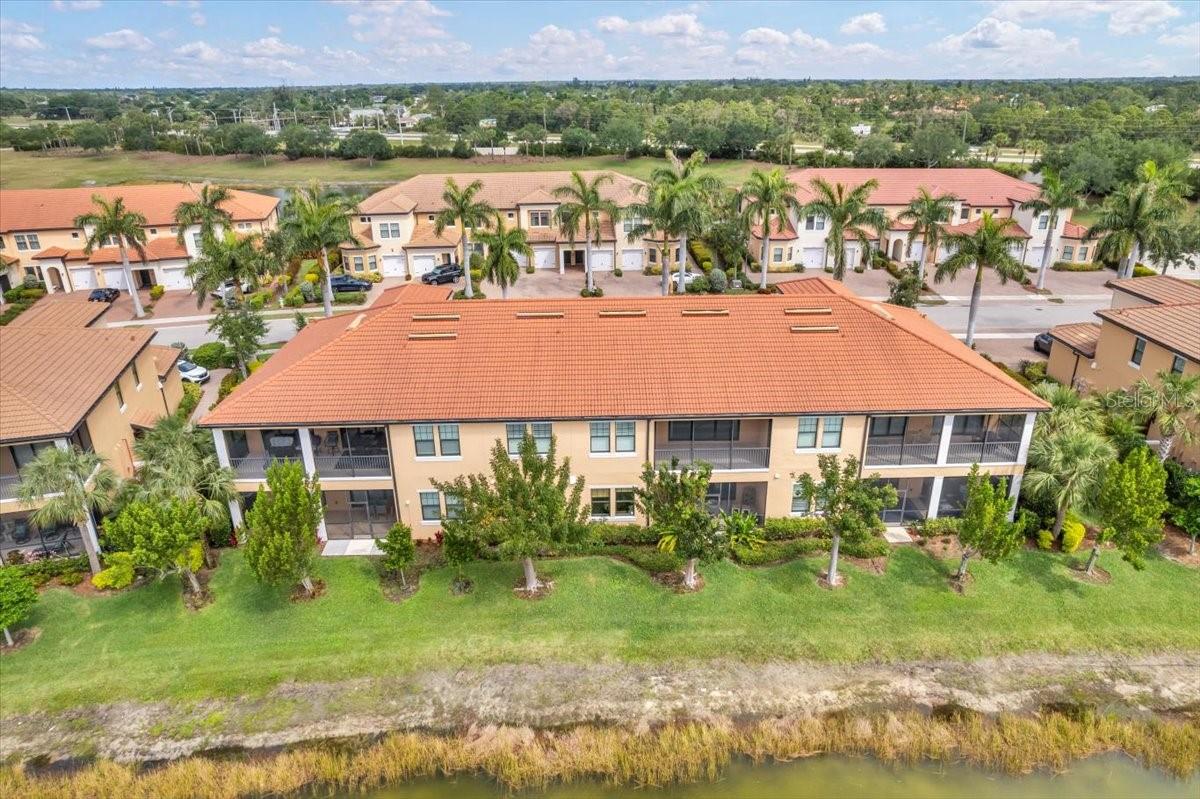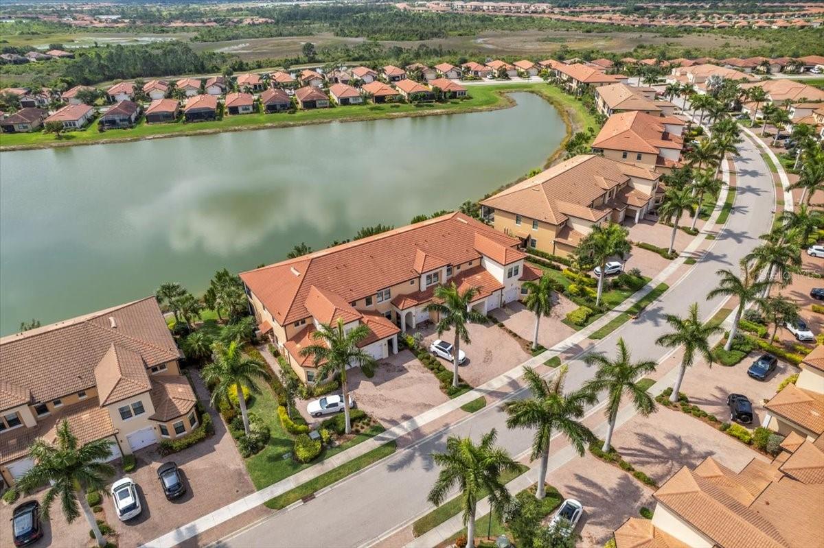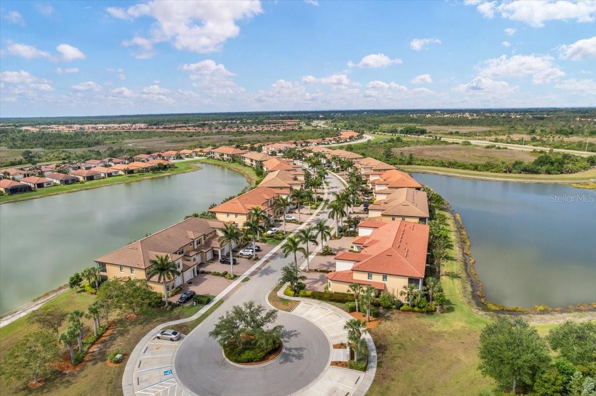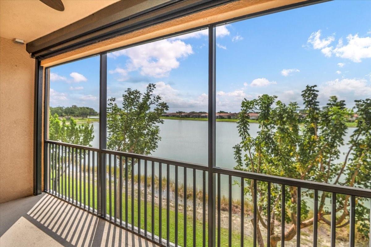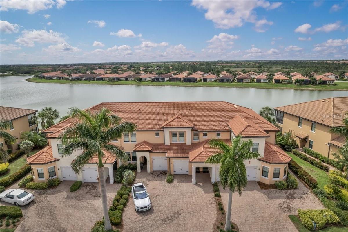 One or more photo(s) has been virtually staged. Stunning water views are everywhere from your 2nd floor condo in the beautiful community of Sarasota National. This WCI built home features 2 bedrooms, 2 bathrooms, dining room, flex room/office, laundry room, and a one-car garage. The natural flow of this home is perfect for daily living and entertaining friends and family. The spacious and inviting great room is convenient to the kitchen and dining area, offering gorgeous lake views from every angle. You definitely have your choice of dining options over looking the spectacular lake when friends and family come to visit. The light and bright kitchen is beautifully appointed with 42 inch wood cabinetry with soft closing doors and drawers, sparkling quartz counters, a walk-in pantry, an oversized island offering plenty of seating, designer pendant lighting, eye catching backsplash, and stainless appliances. The office/flex room offers ample space, and allows for plenty of natural light. This area of the home is separate from the bedrooms, and is perfect for an overnight guest, hobby room or work-out area. The owner's retreat is oversized with a view of the lake, and includes a huge walk-in closet, an ensuite spa like bathroom with dual vanities, and walk-in shower. Your guests will appreciate the roomy second bedroom, with a large walk-in closet. There is also a separate laundry room with cabinets for extra storage space. Impact windows round out this lovely unit, along with Kevlar roll down hurricane screens on the oversized lanai that is great for relaxing on with cold drink. Live like you are on a 5 star vacation with a 30,000 sq ft clubhouse with Amenities Director, resort style pool, hot tub, poolside tiki bar serving food and drinks daily, coffee lounge, fine dining restaurant, a 7,000 sq ft fitness center with top of the line equipment and exercise classes, day spa, card room, bocce ball, pickle ball, tennis courts, dog park, playground, and event lawn. Sarasota National is a guard gated community that is surrounded by a 2400 acre International Audubon Sanctuary. There is no other community in all of Venice that has what Sarasota National offers. This home is just minutes to the Atlanta Brave's Spring Training Camp at the CoolToday Park Stadium, as well as the Town Center of Wellen Park. Beaches, historic downtown Venice, restaurants, shopping and Churches are all just minutes away! If you have dreamed of owning a piece of Florida's paradise, look no further than Sarasota National... one of Venice's Premiere Communities!
