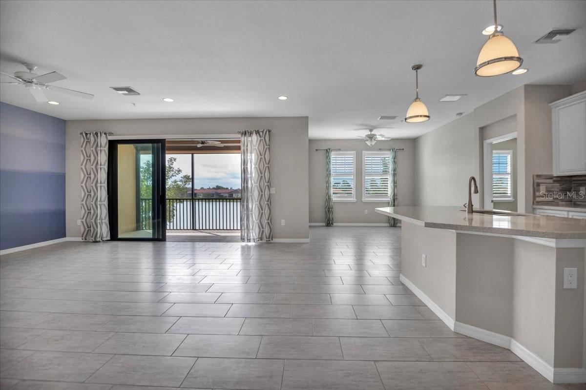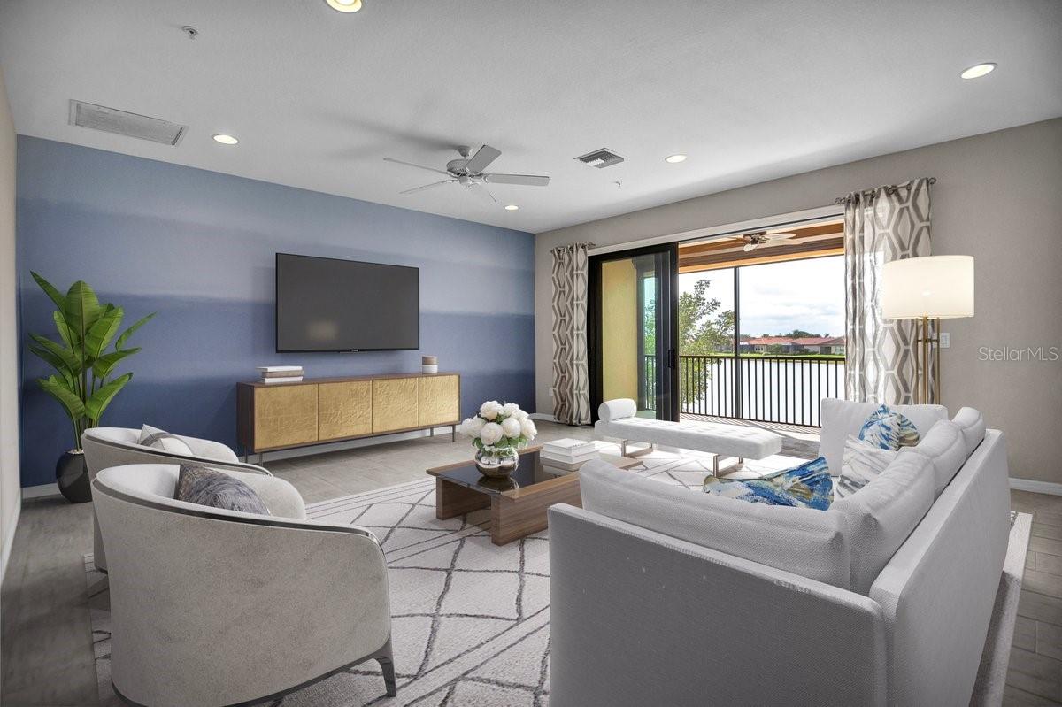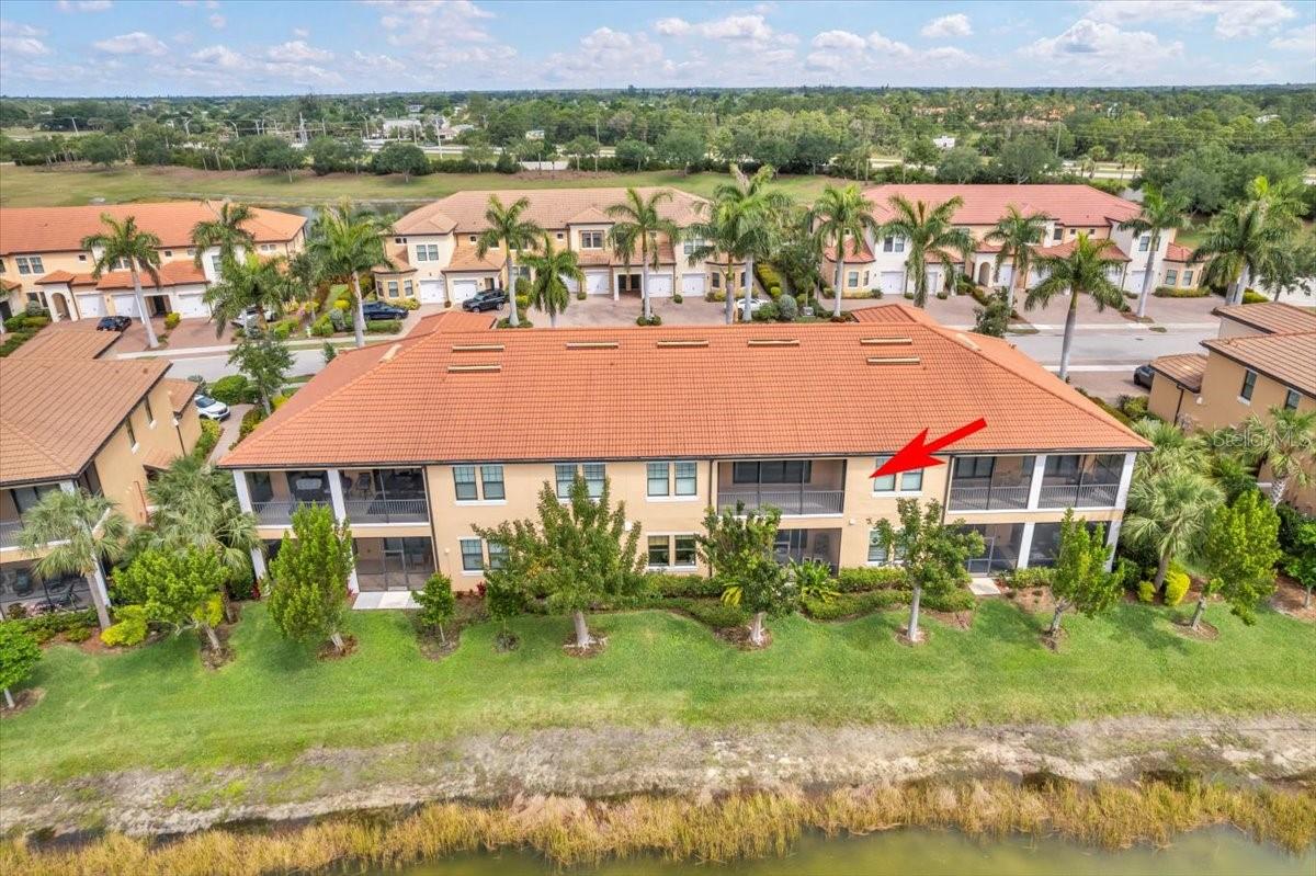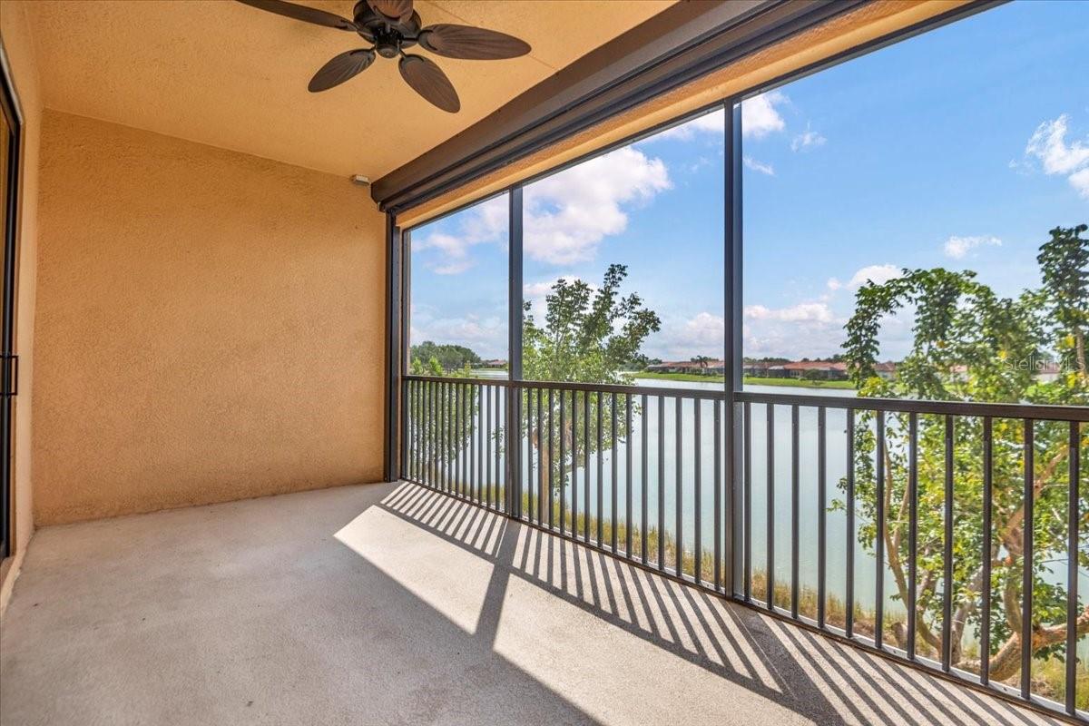 One or more photo(s) has been virtually staged. Stunning water views are everywhere from your 2nd floor condo in the beautiful community of Sarasota National. This WCI built home features 2 bedrooms, 2 bathrooms, dining room, flex room/office, laundry room, and a one-car garage. The natural flow of this home is perfect for daily living and entertaining friends and family. The spacious and inviting great room is convenient to the kitchen and dining area, offering gorgeous lake views from every angle. You definitely have your choice of dining options over looking the spectacular lake when friends and family come to visit. The light and bright kitchen is beautifully appointed with 42 inch wood cabinetry with soft closing doors and drawers, sparkling quartz counters, a walk-in pantry, an oversized island offering plenty of seating, designer pendant lighting, eye catching backsplash, and stainless appliances. The office/flex room offers ample space, and allows for plenty of natural light. This area of the home is separate from the bedrooms, and is perfect for an overnight guest, hobby room or work-out area. The owner's retreat is oversized with a view of the lake, and includes a huge walk-in closet, an ensuite spa like bathroom with dual vanities, and walk-in shower. Your guests will appreciate the roomy second bedroom, with a large walk-in closet. There is also a separate laundry room with cabinets for extra storage space. Impact windows round out this lovely unit, along with Kevlar roll down hurricane screens on the oversized lanai that is great for relaxing on with cold drink. Live like you are on a 5 star vacation with a 30,000 sq ft clubhouse with Amenities Director, resort style pool, hot tub, poolside tiki bar serving food and drinks daily, coffee lounge, fine dining restaurant, a 7,000 sq ft fitness center with top of the line equipment and exercise classes, day spa, card room, bocce ball, pickle ball, tennis courts, dog park, playground, and event lawn. Sarasota National is a guard gated community that is surrounded by a 2400 acre International Audubon Sanctuary. There is no other community in all of Venice that has what Sarasota National offers. This home is just minutes to the Atlanta Brave's Spring Training Camp at the CoolToday Park Stadium, as well as the Town Center of Wellen Park. Beaches, historic downtown Venice, restaurants, shopping and Churches are all just minutes away! If you have dreamed of owning a piece of Florida's paradise, look no further than Sarasota National... one of Venice's Premiere Communities!