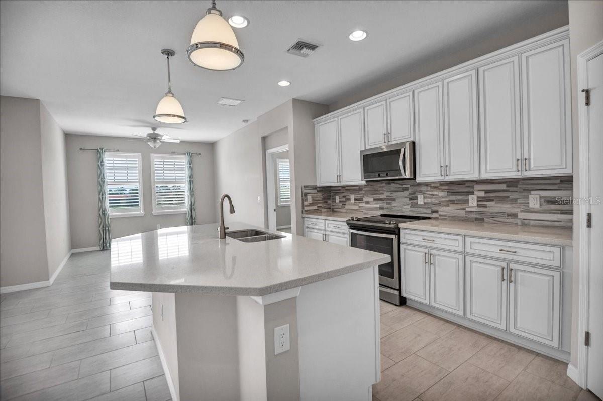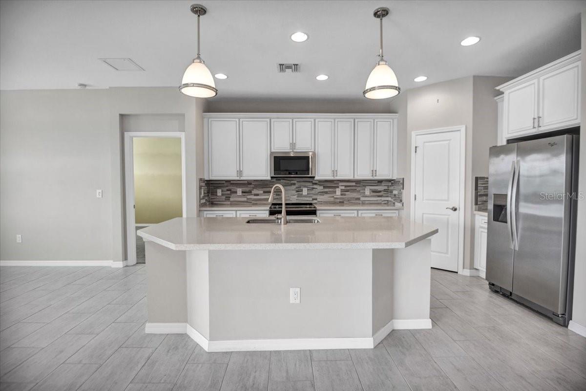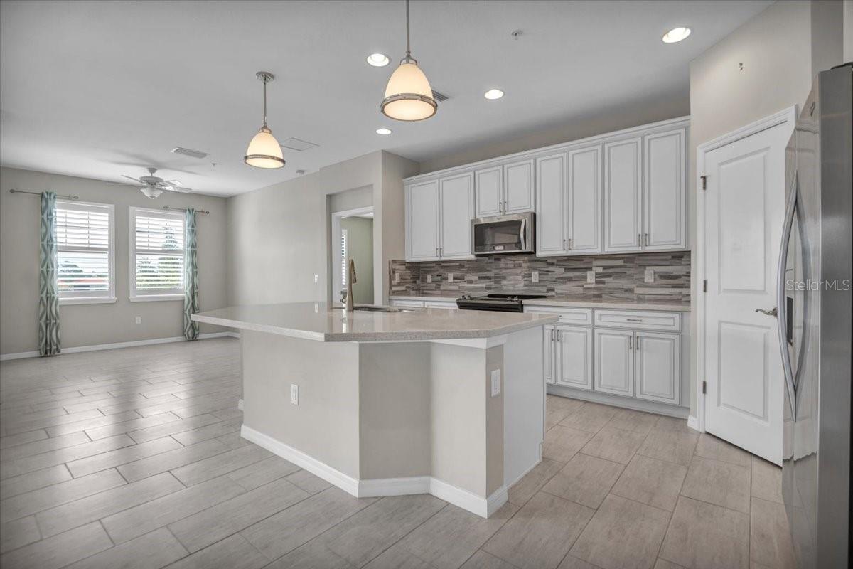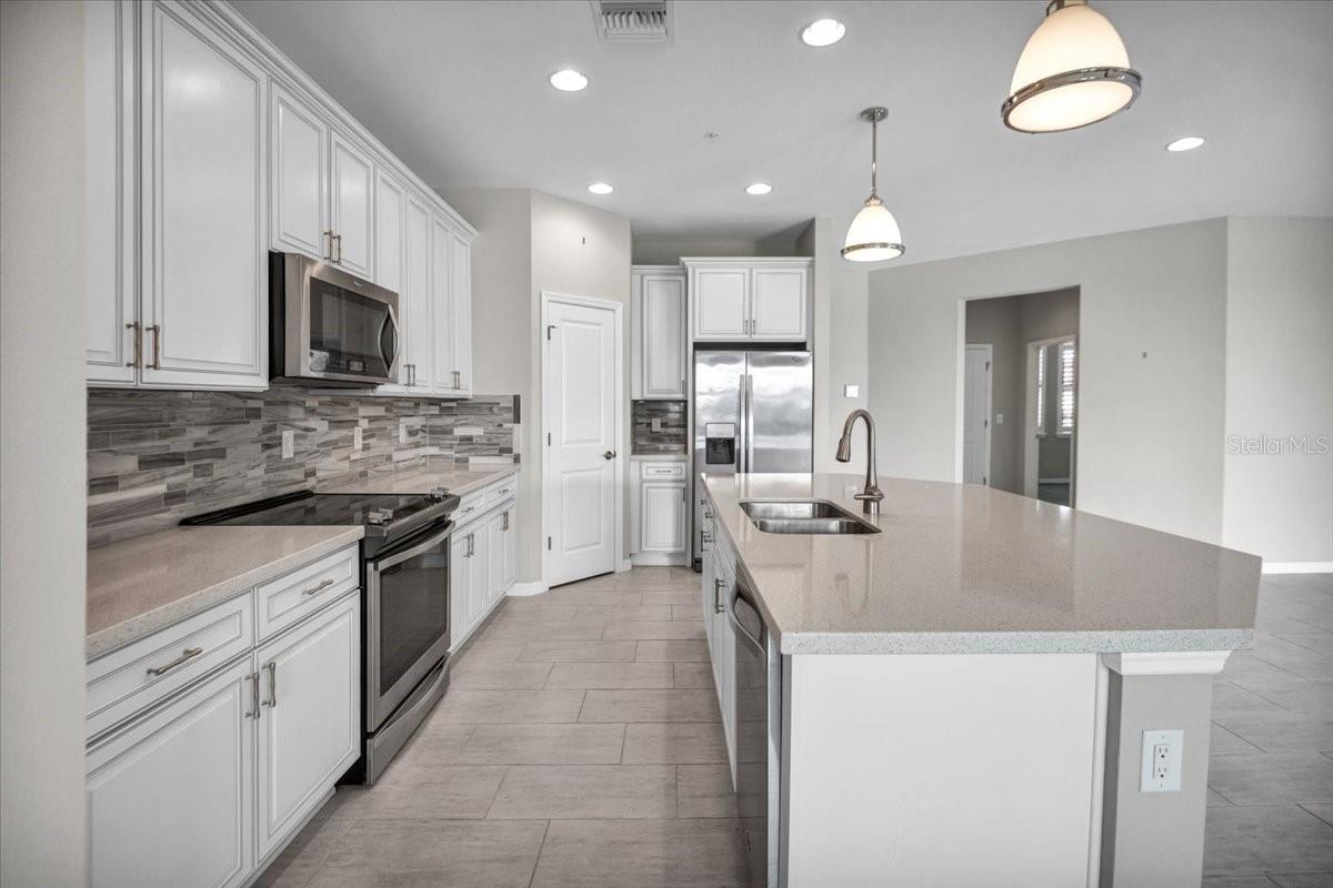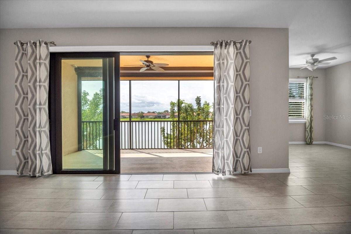 One or more photo(s) has been virtually staged. Stunning water views are everywhere from your 2nd floor condo in the beautiful community of Sarasota National. This WCI built home features 2 bedrooms, 2 bathrooms, dining room, flex room/office, laundry room, and a one-car garage. The natural flow of this home is perfect for daily living and entertaining friends and family. The spacious and inviting great room is convenient to the kitchen and dining area, offering gorgeous lake views from every angle. You definitely have your choice of dining options over looking the spectacular lake when friends and family come to visit. The light and bright kitchen is beautifully appointed with 42 inch wood cabinetry with soft closing doors and drawers, sparkling quartz counters, a walk-in pantry, an oversized island offering plenty of seating, designer pendant lighting, eye catching backsplash, and stainless appliances. The office/flex room offers ample space, and allows for plenty of natural light. This area of the home is separate from the bedrooms, and is perfect for an overnight guest, hobby room or work-out area. The owner's retreat is oversized with a view of the lake, and includes a huge walk-in closet, an ensuite spa like bathroom with dual vanities, and walk-in shower. Your guests will appreciate the roomy second bedroom, with a large walk-in closet. There is also a separate laundry room with cabinets for extra storage space. Impact windows round out this lovely unit, along with Kevlar roll down hurricane screens on the oversized lanai that is great for relaxing on with cold drink. Live like you are on a 5 star vacation with a 30,000 sq ft clubhouse with Amenities Director, resort style pool, hot tub, poolside tiki bar serving food and drinks daily, coffee lounge, fine dining restaurant, a 7,000 sq ft fitness center with top of the line equipment and exercise classes, day spa, card room, bocce ball, pickle ball, tennis courts, dog park, playground, and event lawn. Sarasota National is a guard gated community that is surrounded by a 2400 acre International Audubon Sanctuary. There is no other community in all of Venice that has what Sarasota National offers. This home is just minutes to the Atlanta Brave's Spring Training Camp at the CoolToday Park Stadium, as well as the Town Center of Wellen Park. Beaches, historic downtown Venice, restaurants, shopping and Churches are all just minutes away! If you have dreamed of owning a piece of Florida's paradise, look no further than Sarasota National... one of Venice's Premiere Communities!