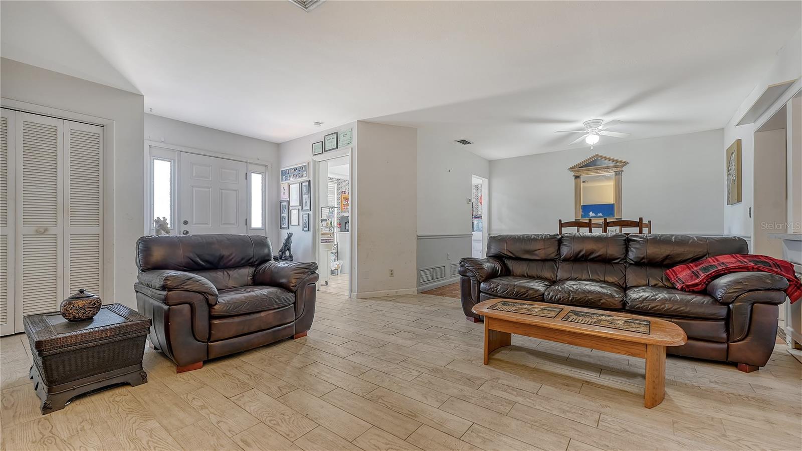 Welcome to your ideal home— a spacious four-bedroom, two-bath gem with a split-floor plan and 1,745 square feet of heated living space, designed for both comfort and privacy. Whether you're accommodating a large family or hosting guests, everyone will find their own space to relax. The extended 50-foot driveway is ideal for a family with multiple Cars, RV, or a Boat and it leads to a well-maintained home. This home boasts four bedrooms, with the fourth bedroom spanning 20 feet in length and offering two exterior doors, creating private entrances for everyone to enjoy their own personal space. Enjoy the newly updated kitchen and bath countertops and the new walk-in shower. The entire house features tile flooring throughout. NEED EXTRA SPACE? The 20-by-30-foot building behind the main house, equipped with electrical and an AC wall unit, is perfect for a workshop, studio, mancave, she shed or office. With new underground electrical wiring from the pole to the meter, a new electrical box, and updated plumbing, this home is move-in ready. Enjoy community amenities like the pool for just $165 a year for the whole family or take advantage of the nearby YMCA. Plus, you're just approximately 3.2 miles to Downtown Venice, Sharky’s on the Pier (The Shark Tooth Capital of the World) or unwind and enjoy the stunning beaches at Venice Beach or Caspersen Beach. You’re close to everything and NO HOA and NO CDD !!! What are you waiting for? “Start the next chapter of your life in paradise today!”