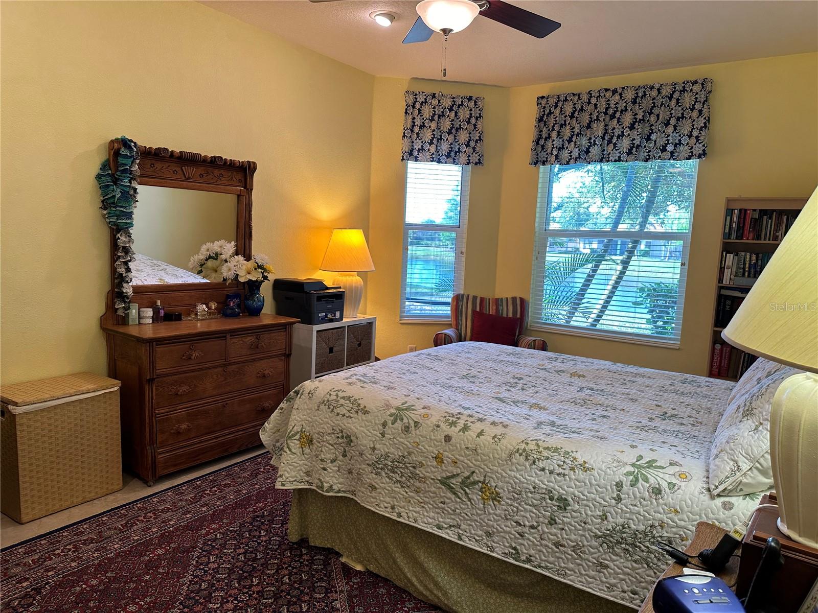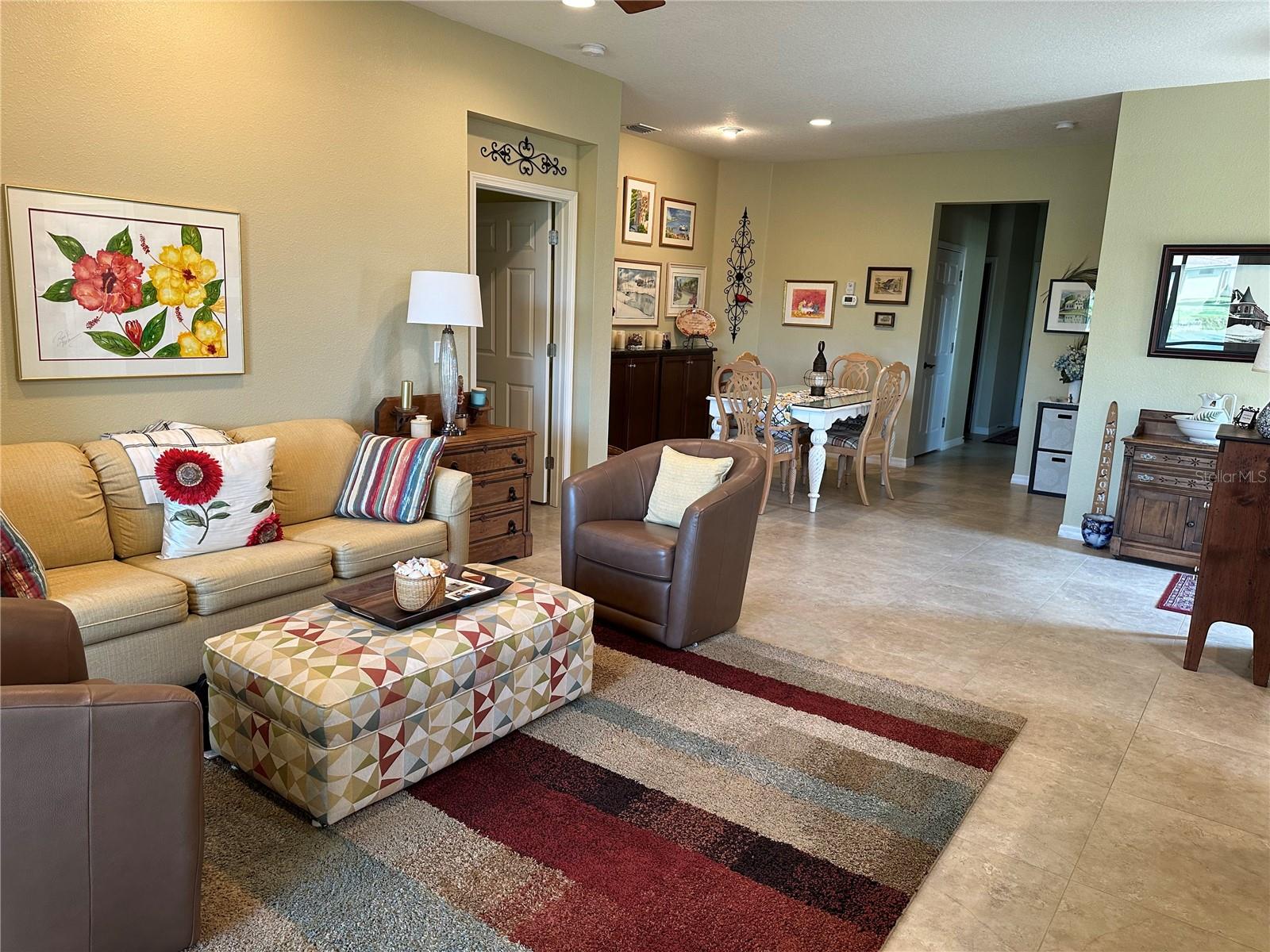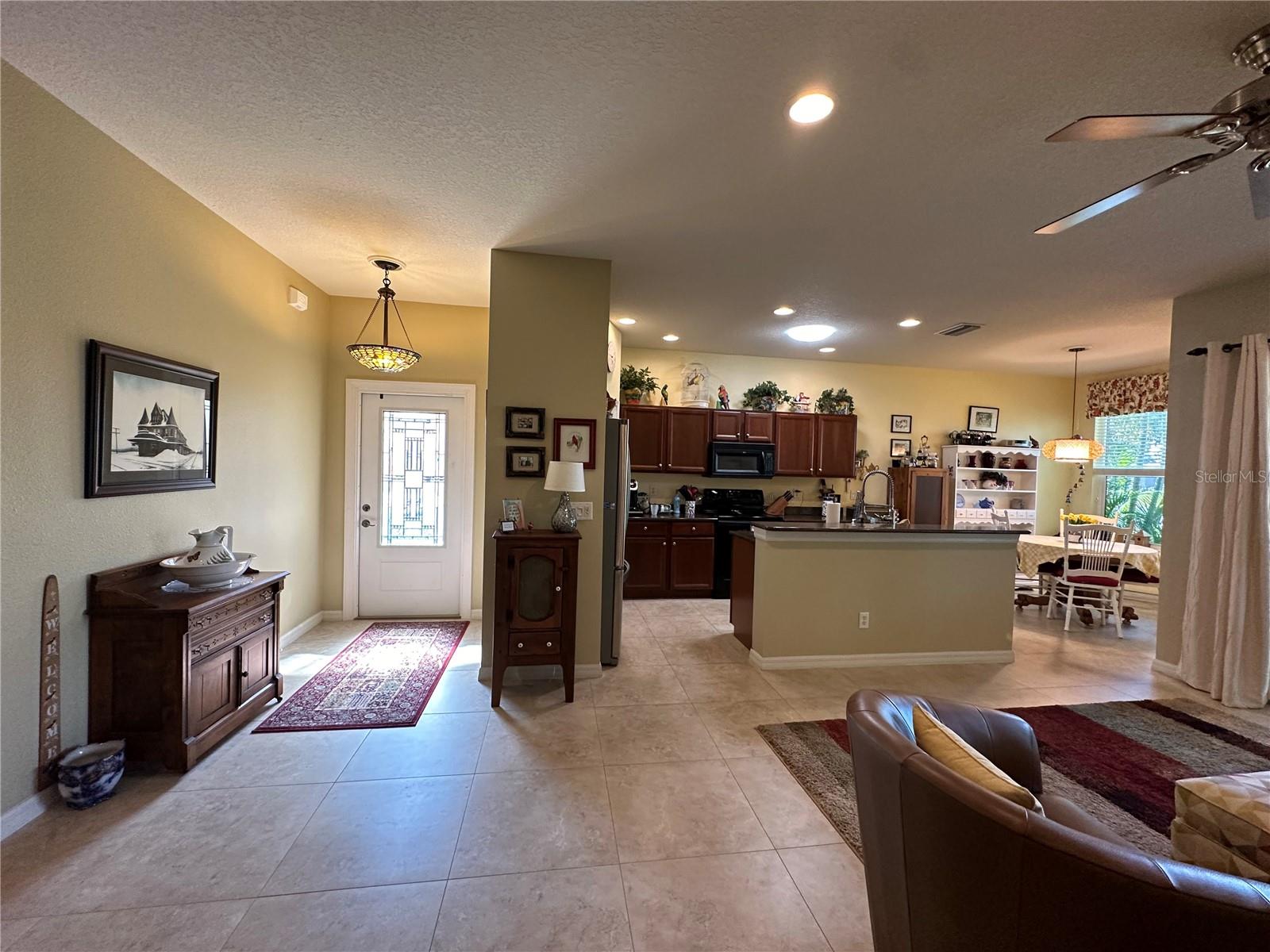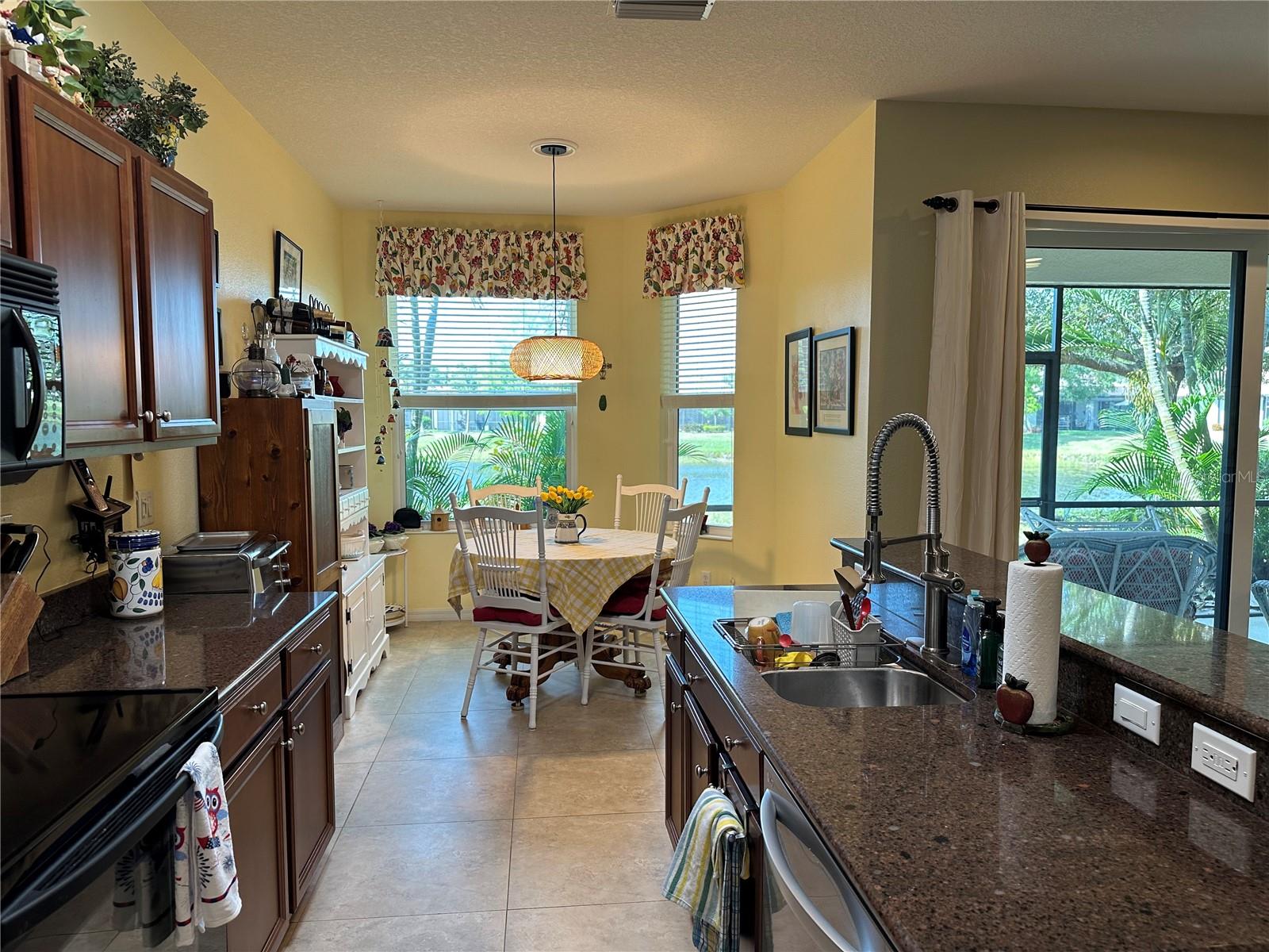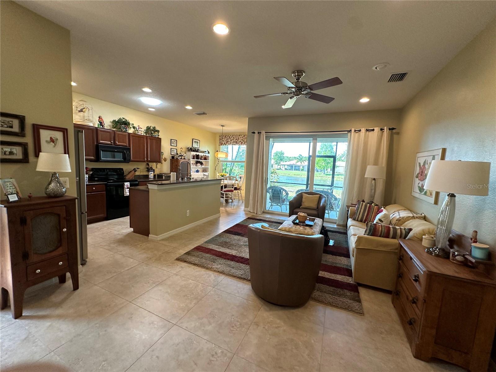 Price adjustment! Enjoy your maintenance free resort life style in the popular 55+ Venetian Falls community – NO CDD. This home has a 2-car garage, 2 bedrooms, 2 bathrooms and a den with tile floors throughout for easy care. You will see the peaceful environment and glittering lake view with trees from your kitchen, breakfast bar, dinette, dining & living room, and your primary bedroom. All windows, sliding glass door and front door are new with 150 mph wind resistance. There are 2 solar tube skylights- in the kitchen and primary bathroom to save energy & reduce your electric bill. It has an easy access walk-in shower in the En Suite bathroom. Shelving and cabinets in the laundry room and garage for storage. The kitchen has a walk-in pantry. HOA fees include Cable TV, internet, road, lawn mowing, weeding, edging, mulching & irrigation service. Tree & shrubs trimming which were installed by the builder. Roof washing on a four-year rotation. Exterior painting on an eight-year rotation. Onsite HOA management & activity director. Luxury resort clubhouse with heated pool, spa & resistance pool, fitness center with strength & weight training equipment. Ballroom for banquet, dancing etc. Billiards & card room. Putting green, bocce ball. If you prefer to swim in the ocean, Venice Beach is about 15 minutes away.