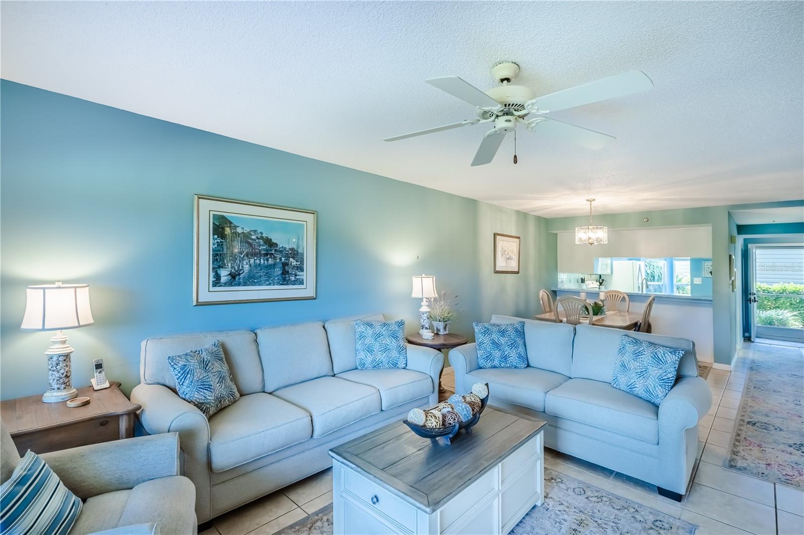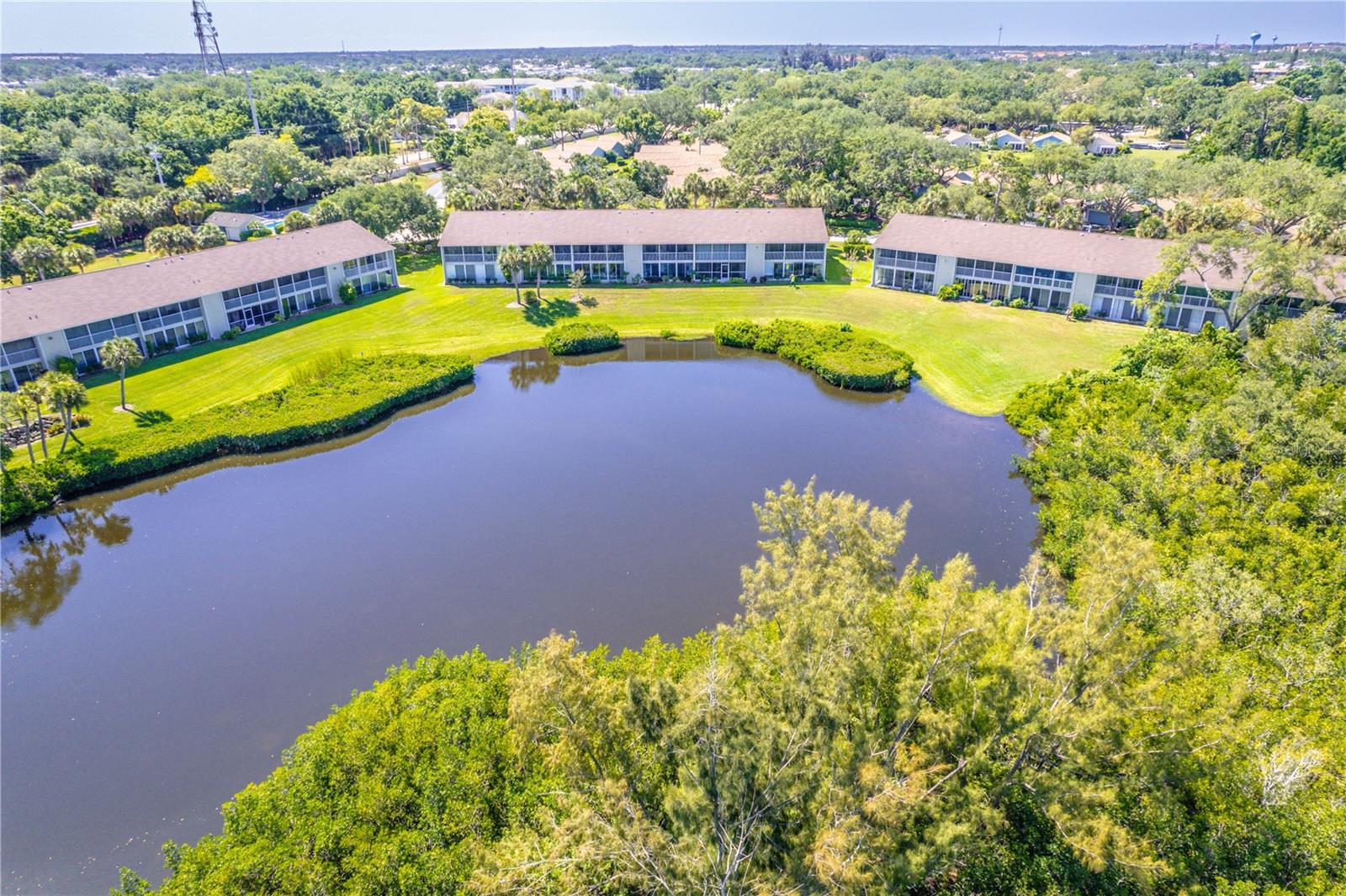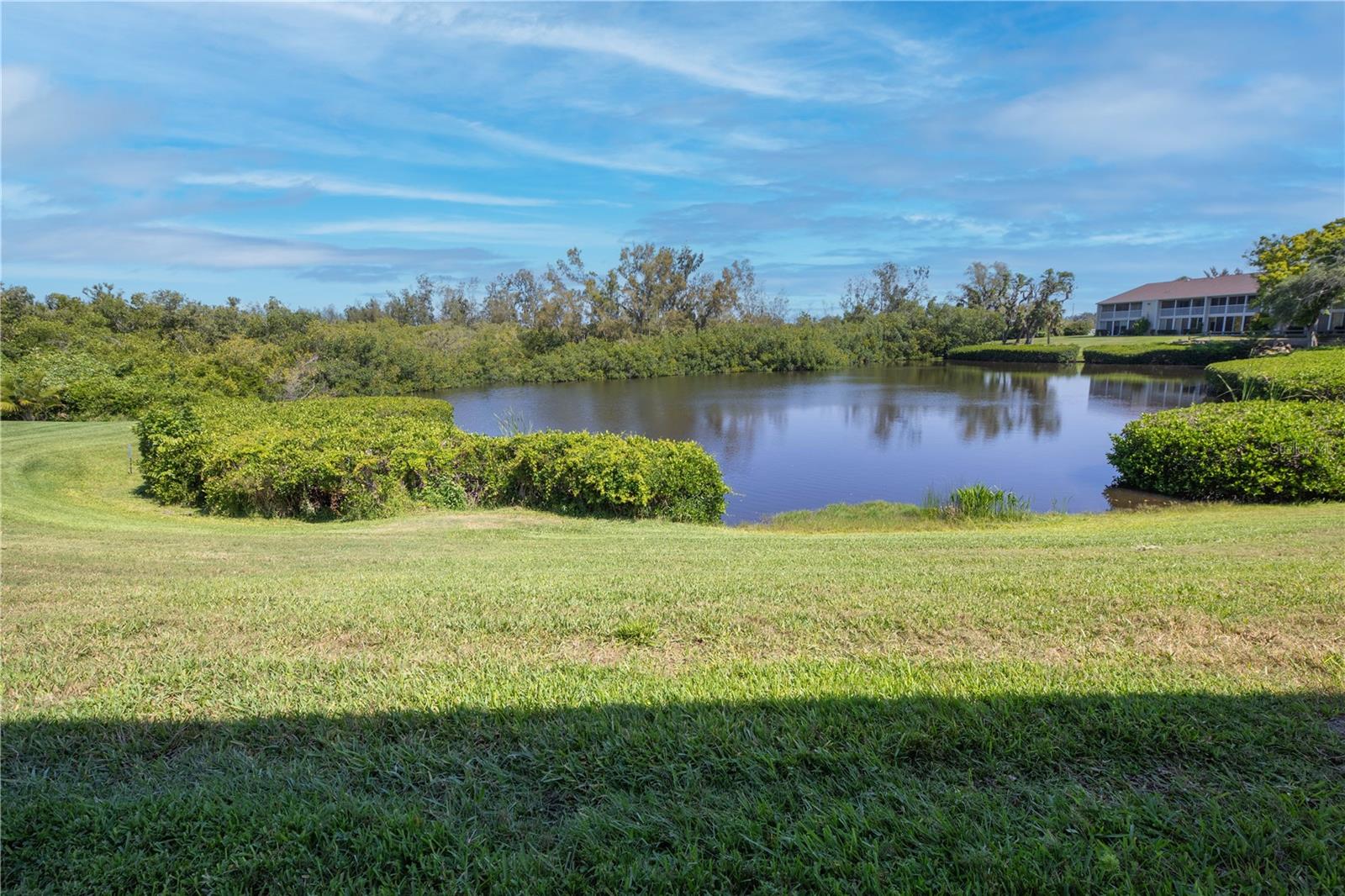 Embrace the epitome of Florida living in this exquisite, turnkey-furnished condo at Waterside in Bird Bay Village—where luxury meets comfort and tranquility greets you at every turn. This charming ground floor WATERVIEW condo is ready for your arrival. Upon entering, you are greeted by a spacious open floor plan, framed by picturesque views of a serene pond. The well-appointed kitchen features modern white appliances, a breakfast nook overlooking lush Florida landscaping, and a built-in pantry. The dining area seamlessly transitions into a generous living room. A split bedroom layout offers privacy and comfort for friends and family visits. Enjoy the ceramic tiled lanai, an ideal setting for hosting gatherings, or simply relaxing with your morning coffee or an evening cocktail. The vibrant pond attracts native Florida birds and aquatic life. Enjoy one of the lowest HOA fees in Bird Bay Village, which includes access to two community pools, exterior insurance, grounds and exterior maintenance, management, pest control, sewer, trash services, a fitness center, a clubhouse with a full kitchen, a library, tennis and pickleball courts, and shuffleboard. Experience maintenance-free living at its finest in Waterside at Bird Bay, the newest addition to this delightful community. This home is constructed with sturdy block and stucco, features a new Square D electric panel, and a recently installed AC unit from 2020. Don’t miss the chance to live in paradise, whether you’re searching for a permanent residence, a seasonal getaway, or a profitable rental property, your search ends here. NO FLOOD INSURANCE REQUIRED!