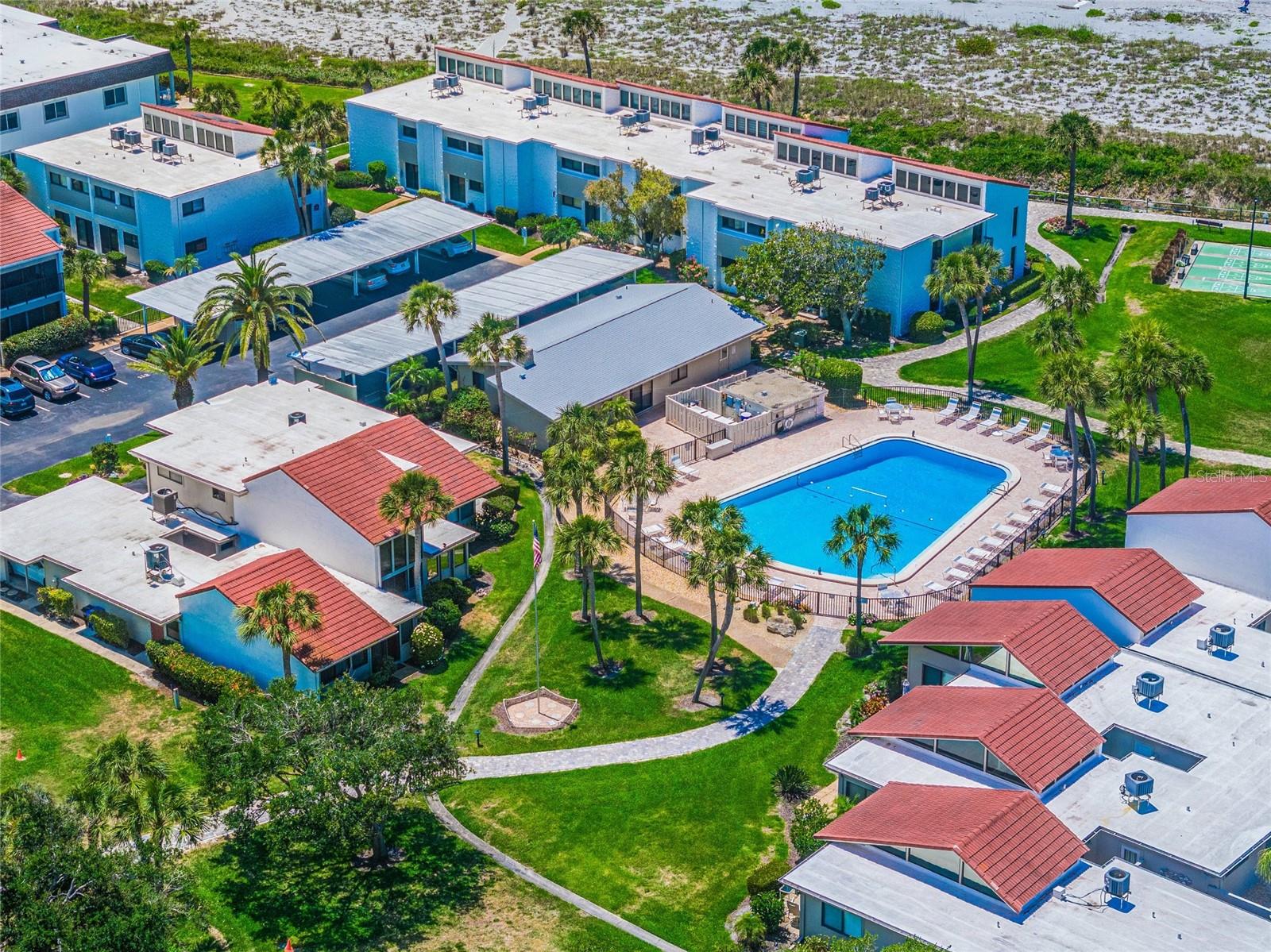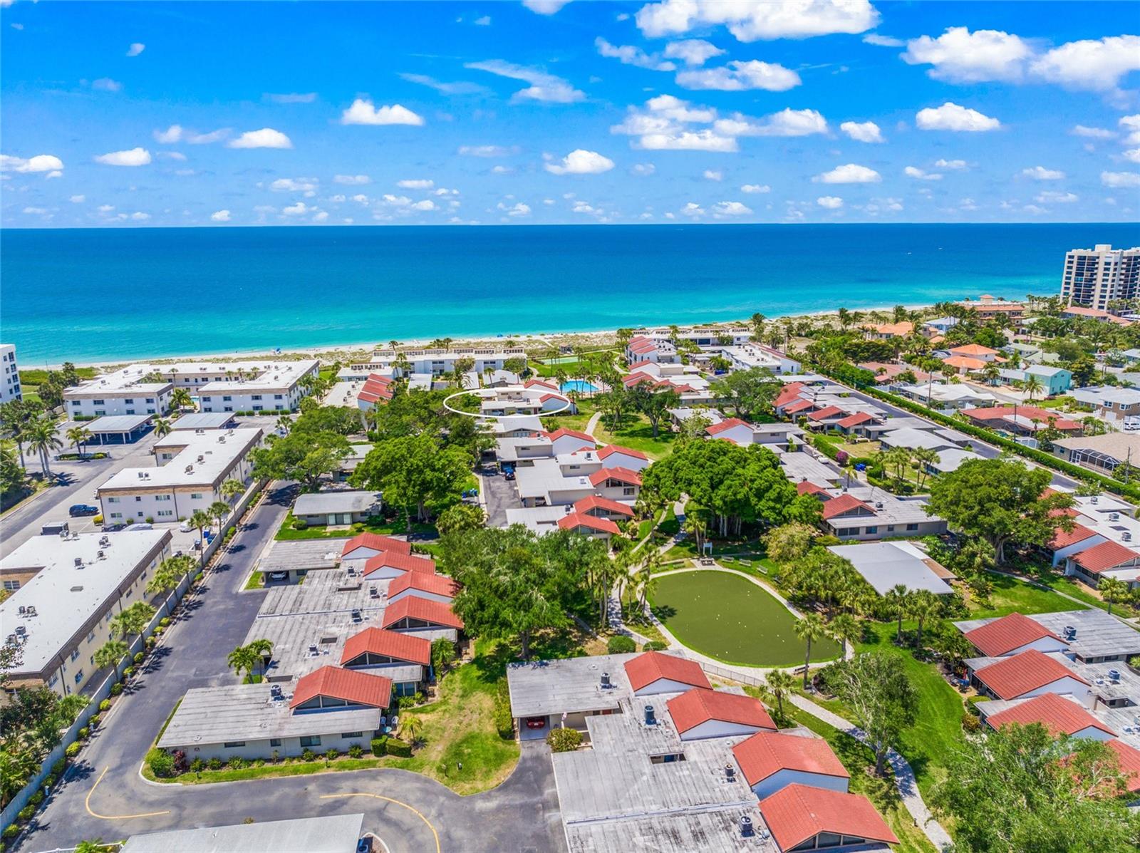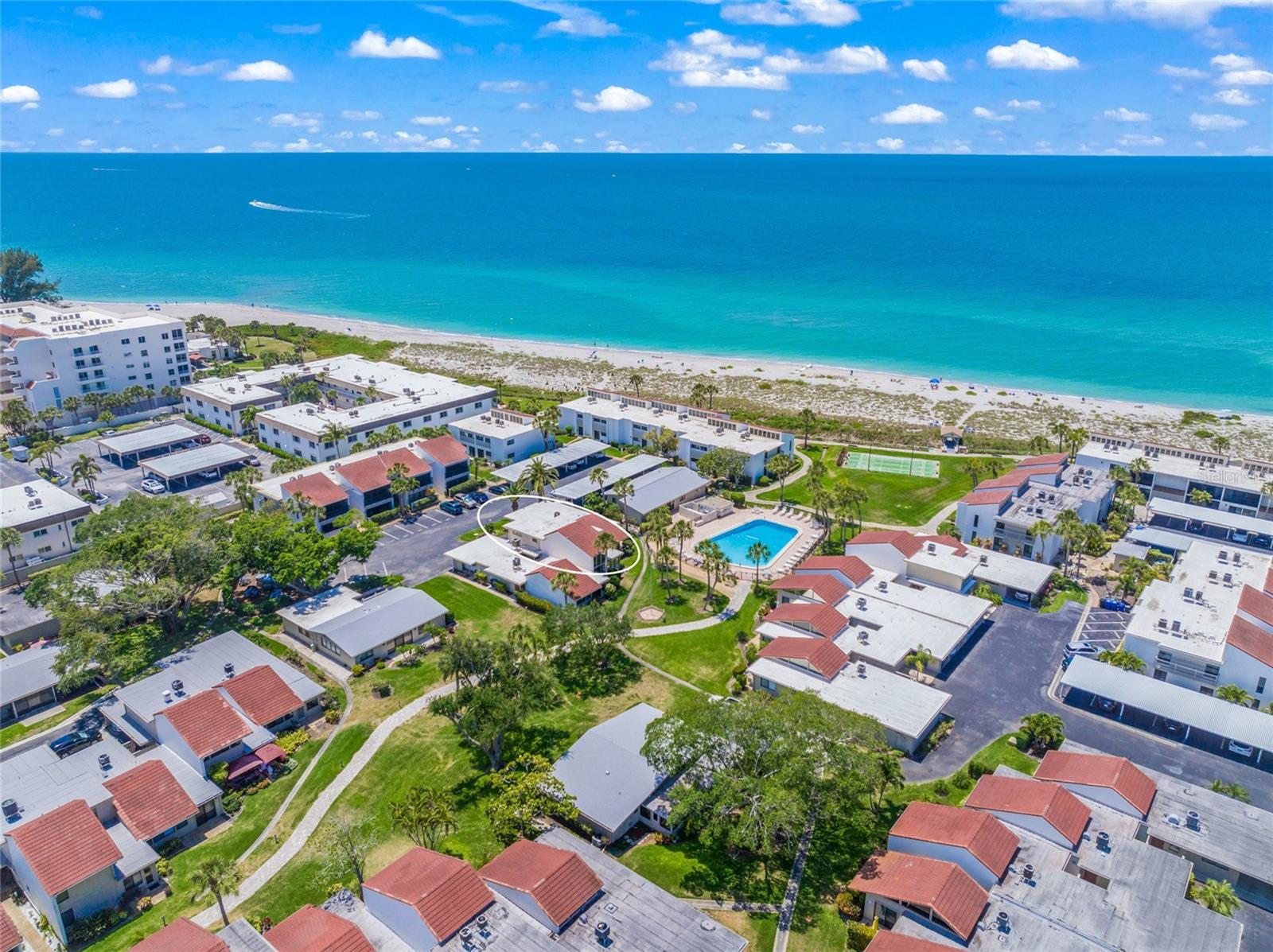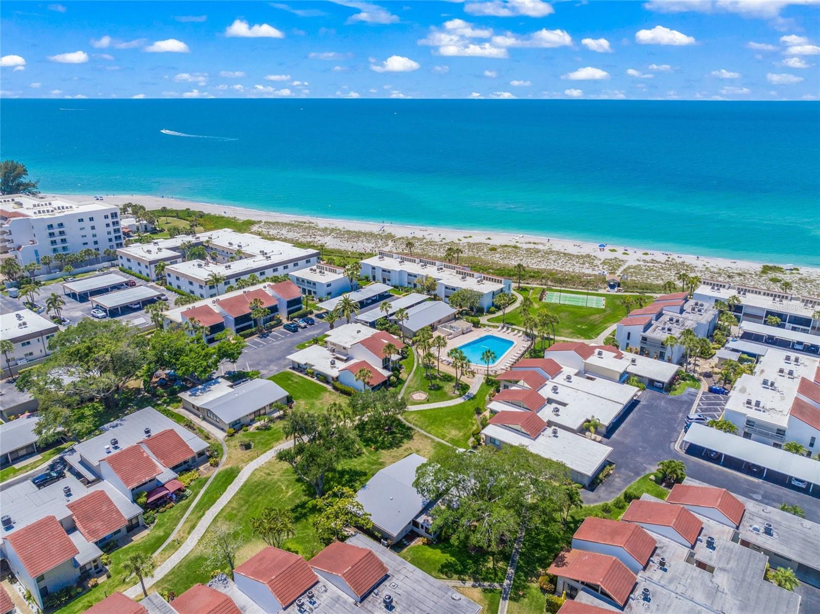 Welcome to Aldea Mar, a "village by the sea." This complex and condominium are very unique. Aldea Mar is located at the south end of Venice Beach, a tranquil spot in beautiful Venice. A private entrance with a cute courtyard will always feel like home. Step inside and you are greeted with a very special property. This residence has wonderful natural light coming in the expansive windows and a great room to entertain or just relax in. The space has been designed with great flow from room to room. There is a European-style kitchen with plenty of space to try out your culinary skills and entertain a crowd, and the kitchen flows into the dining room with loads of light. A door in the dining room leads out to the courtyard and the pool area. Just a few more steps and you are on Venice Beach; stay awhile, catch an exquisite sunset, or maybe you are lucky enough to watch the playful dolphin put on a water aerobics show as only they can do. This condo has a very different floor plan with a second floor that is the perfect place to end the day, with an office with views of the beach, the Gulf of Mexico, and the courtyard while you work. Did I tell you there are three bedrooms upstairs as well as two baths? Bring your family and friends – room for all. Aldea Mar is just a short walk or bike ride to a wonderful downtown. This time of year is the perfect time to explore Venice. Restaurants are bustling, shopping, art festivals, and the Venice Theatre is still in full swing. The sidewalks are still full and fun, a great way to meet new people or just relax. There is always an empty bench to sit for a while, maybe just take in the unique "city on the Gulf."