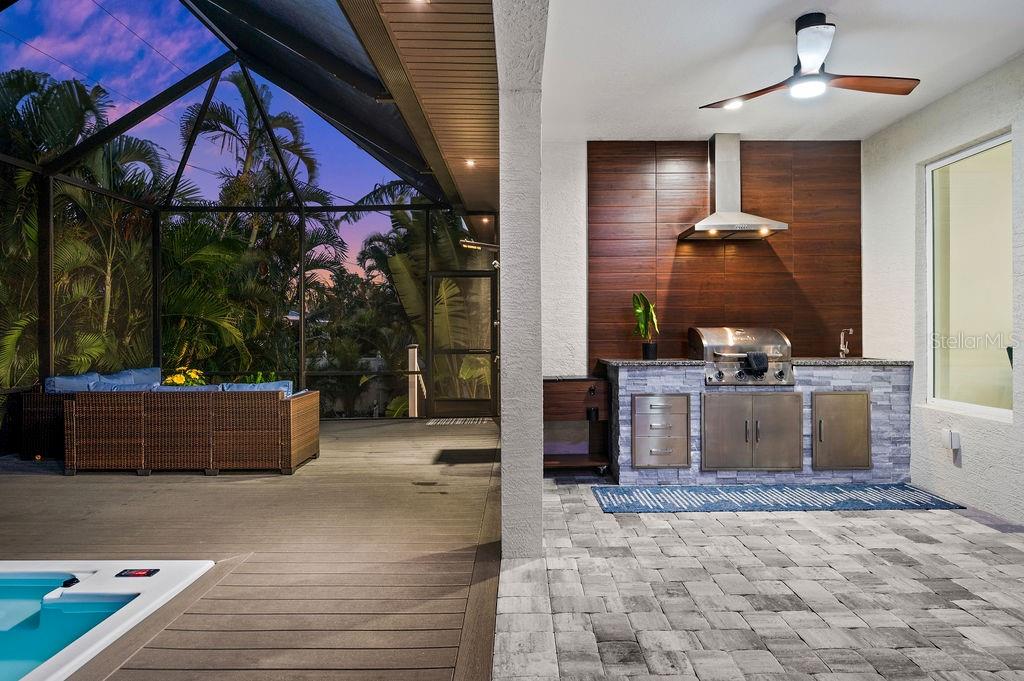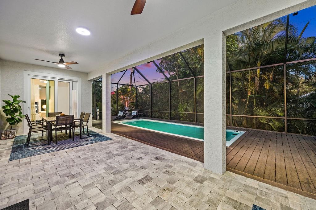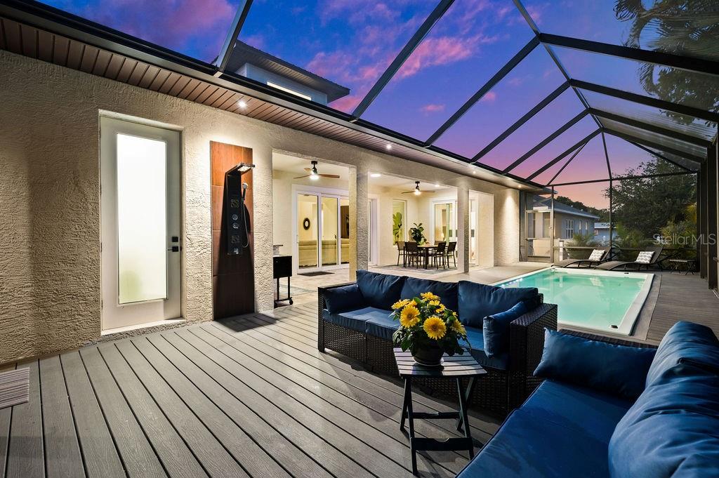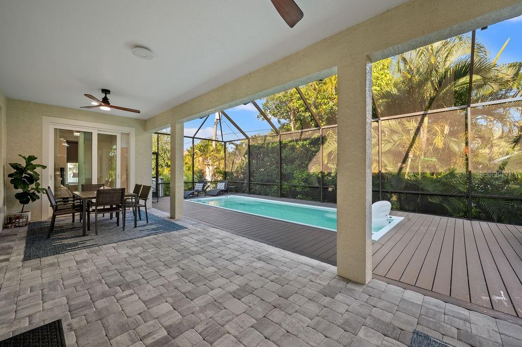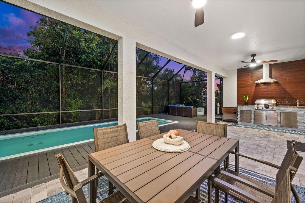 Move into this exquisite, completed in 2023 custom built home with a pool! Embrace the exclusive Floridian lifestyle in this outstanding residence located just 10 minutes from both Venice Beach and Downtown. Nestled at the end of a street for optimal privacy and convenience, this stunning, nearly 3,400 sqft home boasts a modern open floor plan featuring 3 spacious bedrooms, 3 baths and an expansive 780 sqft. garage. Built on a 7-course stem wall, it offers Hurricane Impact windows and doors for added security. Step into the 14' high exterior foyer and discover the primary suite with 2 generous walk-in closets and an ensuite bathroom featuring a walk-in shower and freestanding tub. The sleek chef’s kitchen showcases a large island, granite blue pearl countertops, and modern high gloss cabinetry with lighting. Porcelain high-quality tiles adorn the main floor. Premium building materials include floors, appliances, metal roof, a 50x18 feet Trex deck with railings and a paved driveway. Entertain effortlessly in the spacious 800 sqft. living room, or venture outside to the expansive lanai with a summer kitchen and a magnificent 24 x 9 feet modern heated swim spa pool. Revel in the lush backyard adorned with palm trees and exotic mature plants. Consider purchasing an annual ferry pass to a private beach or an access to the boat ramp. This home is also located near to Alligator Creek and the South Venice Yacht Club for an easy kayak launch! Enjoy a short bike ride to the Shamrock Park with Legacy Trail (1 mile) as well as South Venice Ferry Beach (1.5 miles). Schedule a showing today!
