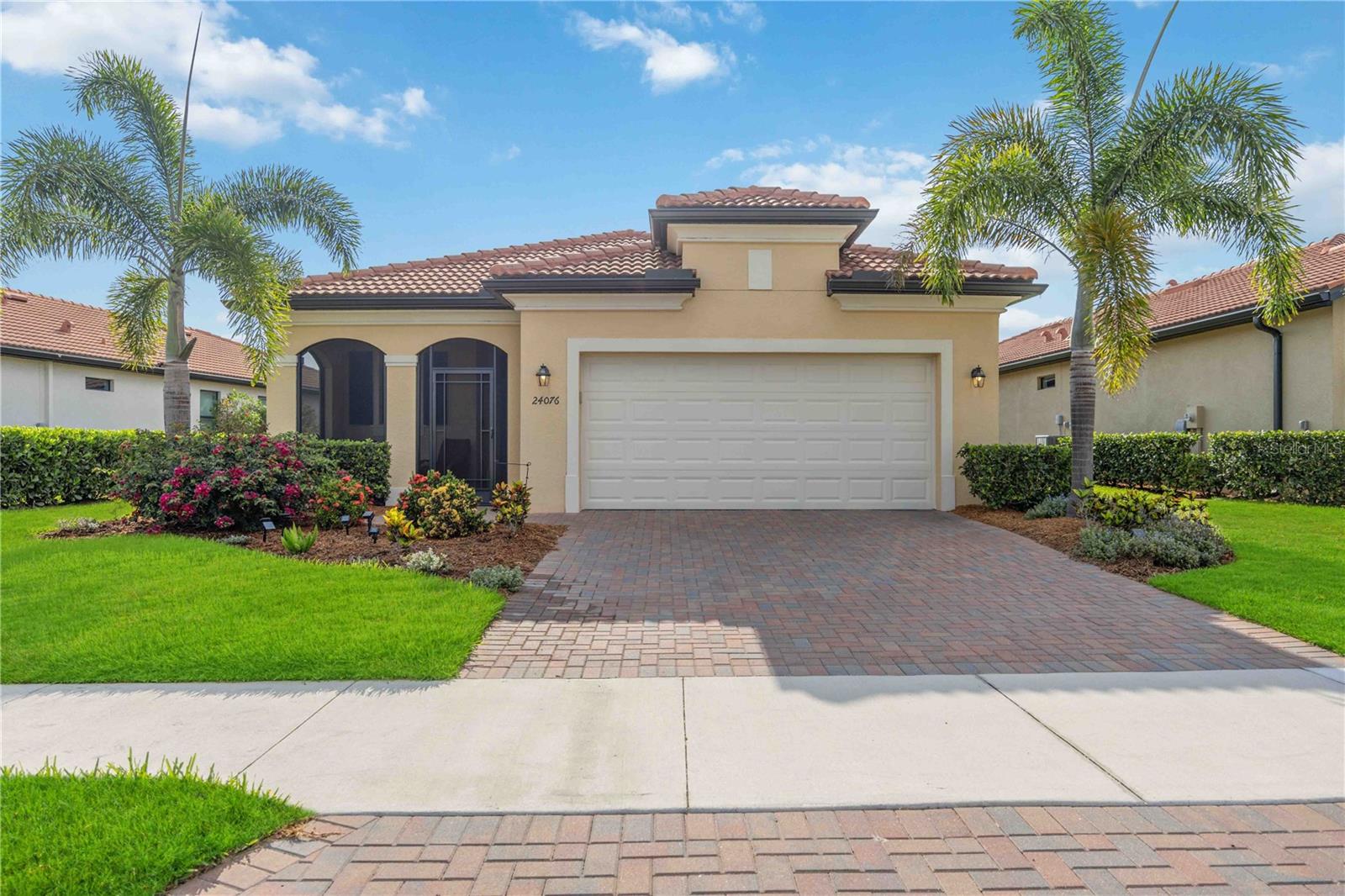 No damage from Hurricane Milton. Property is NOT in a FEMA declared Flood Zone. Motivated Seller - Make an offer! This is the LOWEST PRICED SINGLE FAMILY RESIDENCE in the Golf Village of Sarasota National and it comes complete with 2 Golf Memberships. Welcome to 24076 Spartina Drive, a stunning home nestled in the exclusive Golf Village of Sarasota National. This exceptional residence offers the perfect blend of elegance and comfort, featuring two bedrooms, two bathrooms, and a versatile flex room. The open-concept living area boasts upgraded tile flooring and ample natural light, creating an inviting and stylish space for gatherings and relaxation. The gourmet kitchen is designed for both functionality and aesthetics, with modern appliances, plenty of counter space, and a dedicated dining area perfect for family meals and entertaining. The master bedroom provides a serene retreat with a spacious layout, a walk-in closet, and an en suite bathroom with premium fixtures. A well-appointed second bedroom and full bathroom offer comfort and privacy for guests or family members. Additionally, the extended lanai with Travertine flooring allows you to enjoy the Florida lifestyle, offering stunning preserve and partial water views—perfect for alfresco dining and lounging. This home comes with a two-car garage and includes two golf memberships to the prestigious Sarasota National Golf Course, designed by Gordon Lewis. The course is a certified Audubon International Signature Sanctuary, emphasizing habitat preservation, water conservation, and sustainable resource management. Community amenities are boundless and include the Palm Club Restaurant and Bar, a Tiki Bar, resort-style pool, lap pool, bocce, tennis, and pickleball courts (with two additional courts recently added), a 7,000 sq ft state-of-the-art fitness center, and a dog park. Sarasota National is conveniently located near beautiful Downtown Venice, Downtown Wellen Park areas and an array of stunning Gulf beaches, offering endless opportunities for shopping, dining, entertainment, and outdoor activities. Start living like others vacation! This extraordinary home in the Golf Village of Sarasota National is an opportunity not to be missed. Schedule a showing today to experience the luxury and lifestyle of 24076 Spartina Drive.