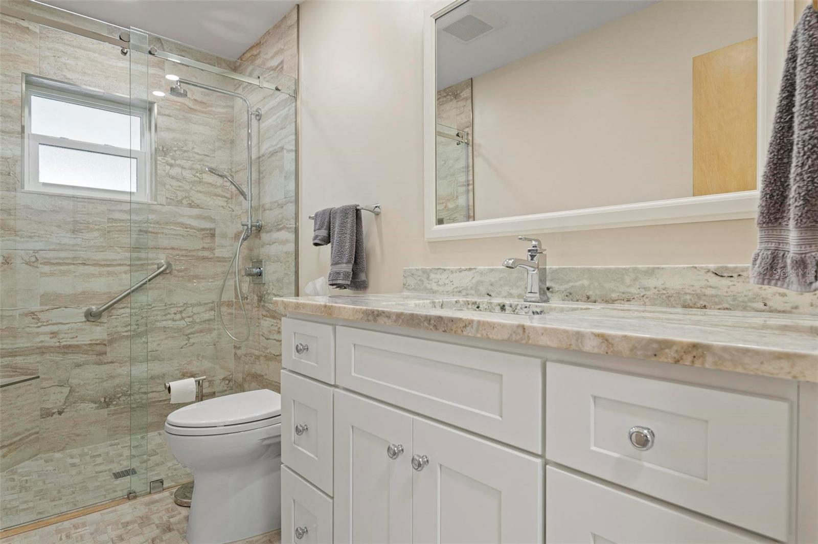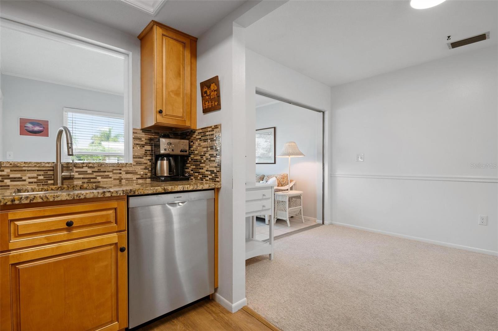 DO NOT MISS this newly bargain-priced villa! Price is slashed to sell NOW! This was already a stand-out with luxury kitchen updates including granite countertops, wood cabinetry stainless appliances and updated lighting and a fully renovated and contemporary-style bathroom. The kitchen and dining areas flow together as one easy space. The welcoming living room is on one side of the villa and the comfy enclosed Florida Room on the other. There are 2 airy bedrooms, one with oversize closet, and both with new ceiling light and fan combos. The attached carport is where you'll find the cleverly disguised full-sized washer and dryer and a sturdy storage building. Beach Manor Villas is friendly and cordial, where you'll probably get to meet some of your new best friends. Located so conveniently to Sharky's, Maxine Barret gulf front park, Venice's beloved dog beach and only a short way to all that Venice's main streets have to offer. Hurry to see this incredibly priced villa ASAP.
