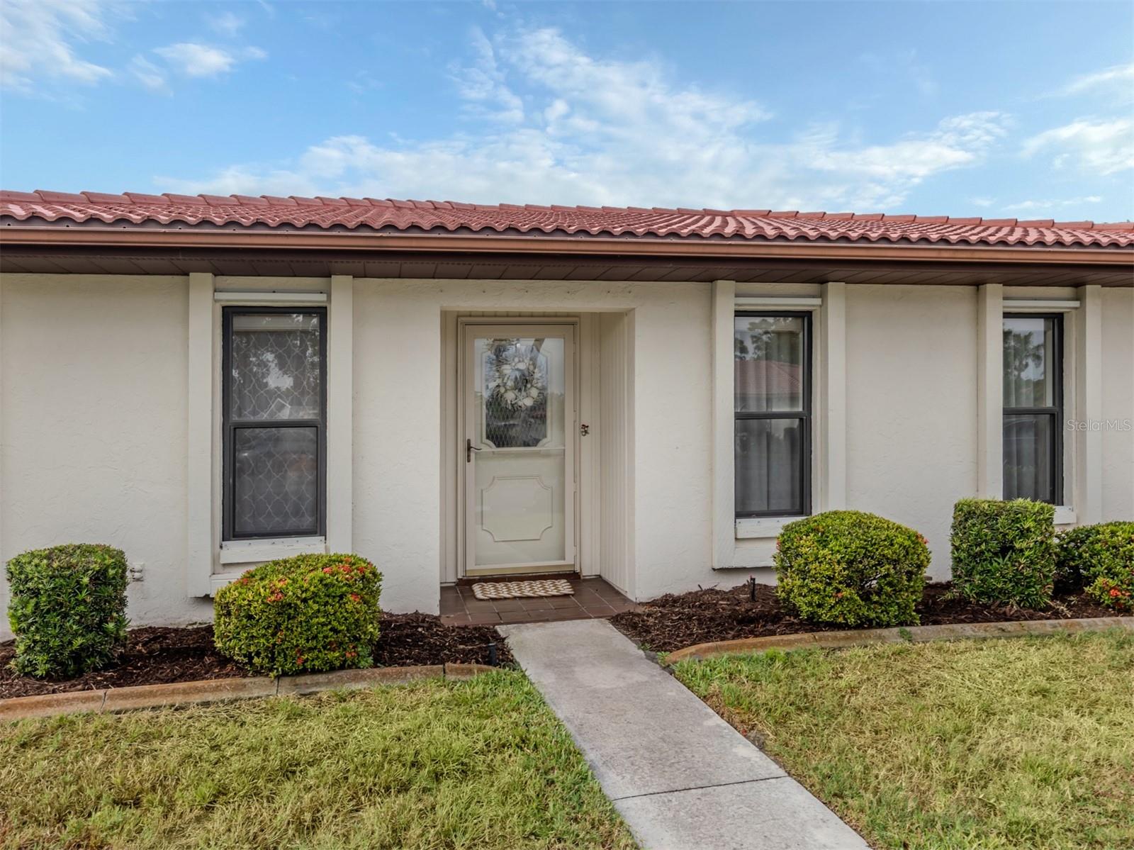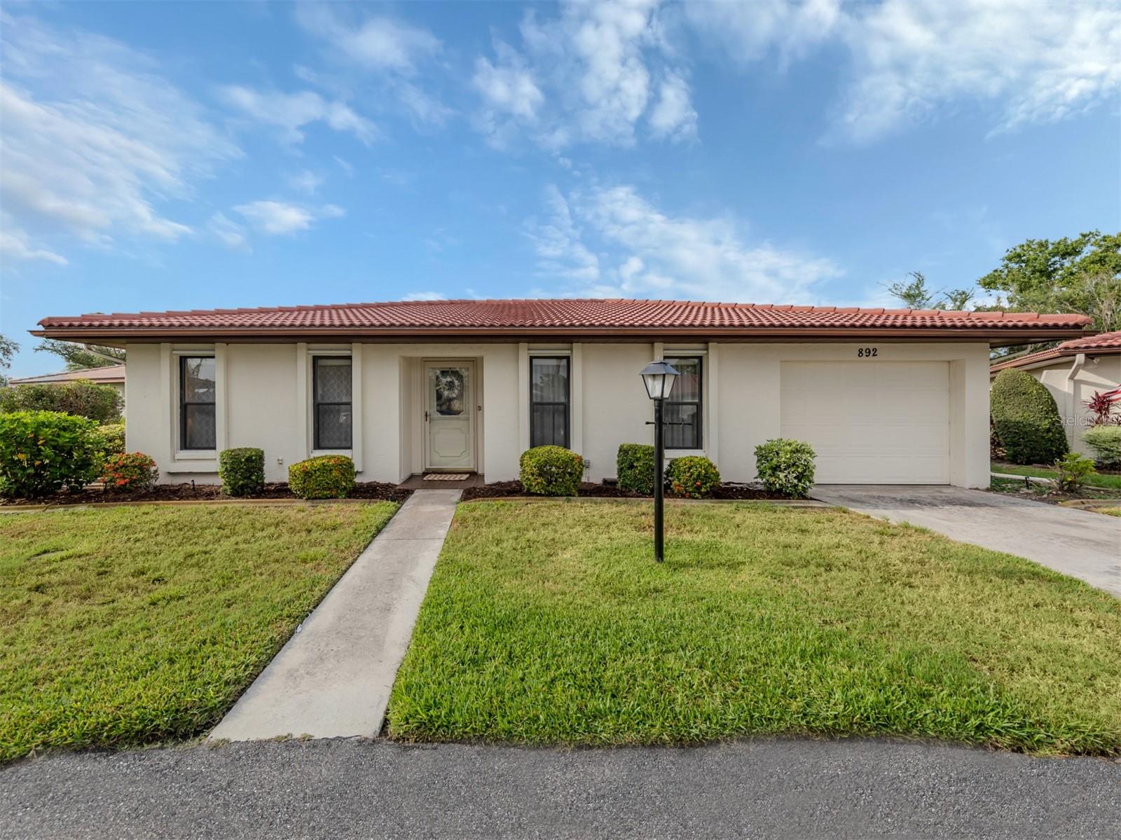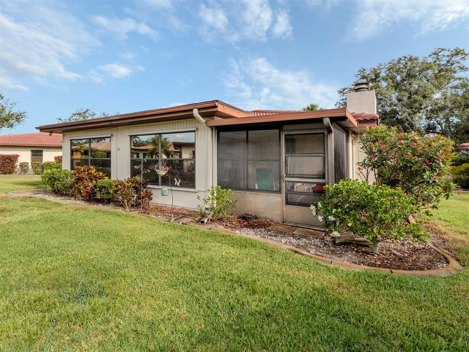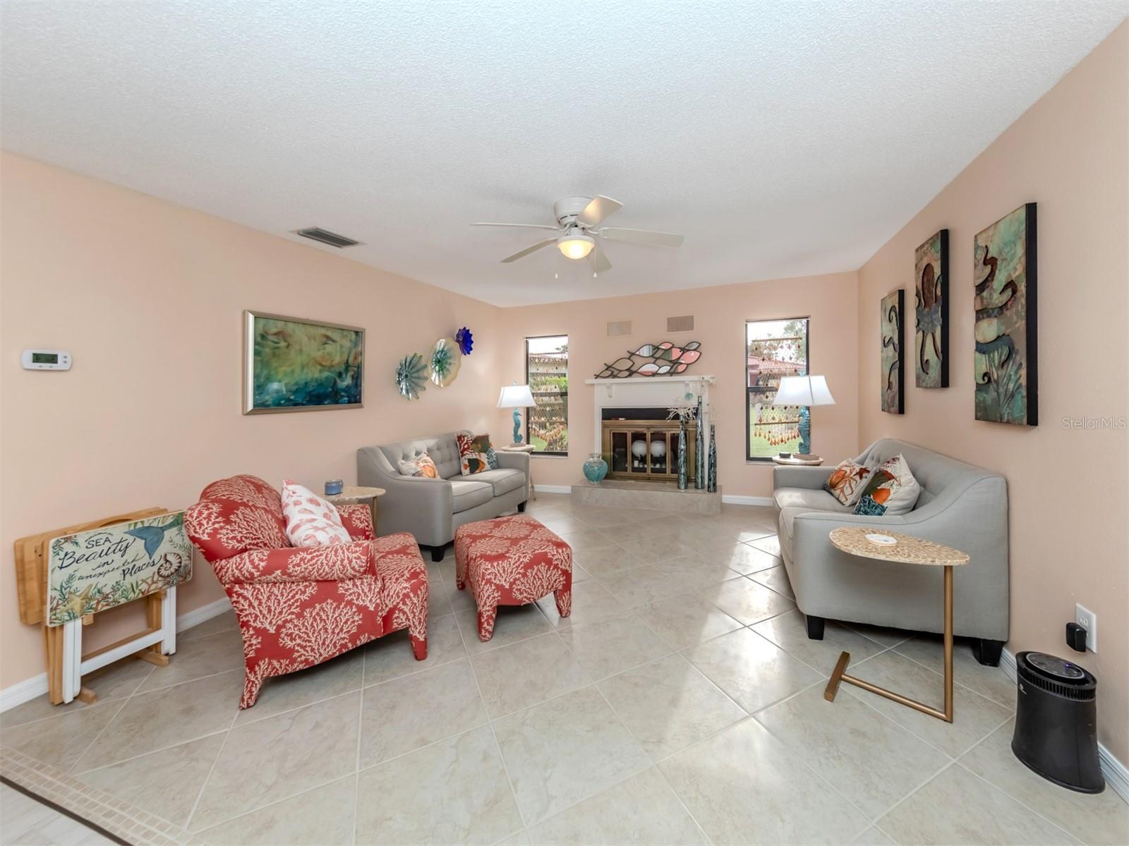 Welcome to Vivienda, an exclusive 27-unit enclave designed for 55+ living, located just moments from downtown Venice's shopping, dining, and beautiful beaches. Nestled on a quiet cul-de-sac, this stand-alone condo unit with an attached garage offers both privacy and convenience. Step inside to a light and bright coastal ambiance, with tile flooring throughout. The living room features a cozy fireplace, perfect for relaxing evenings. The spacious kitchen boasts a stainless steel sink, a new backsplash, solid surface counters, updated cabinets, and a pantry. This home includes two en-suite bedrooms, each with remodeled bathrooms. One suite features a walk-in closet and a high-end mirror/medicine cabinet with interior outlets, along with a walk-in shower. The second suite offers dual sinks and another walk-in shower. A versatile den/office includes an interior laundry closet with a sink. Enjoy the Florida lifestyle in the large Florida room with a garden view, featuring glass windows and sliders at each end—one leading to the enclosed lanai and the other to a patio area perfect for grilling. Additional updates include new garage, exterior, laundry, and interior doors with lever handles, whole-house hurricane panels, a new A/C and hot water heater (replaced in 2023), and a replumbed system (completed in 2015). The tile roof was installed in 2011. Roof and exterior stucco are covered in the monthly HOA fee. Just steps away from the community pool, this home offers the perfect blend of comfort, style, and convenience. Discover your new coastal retreat at Vivienda.