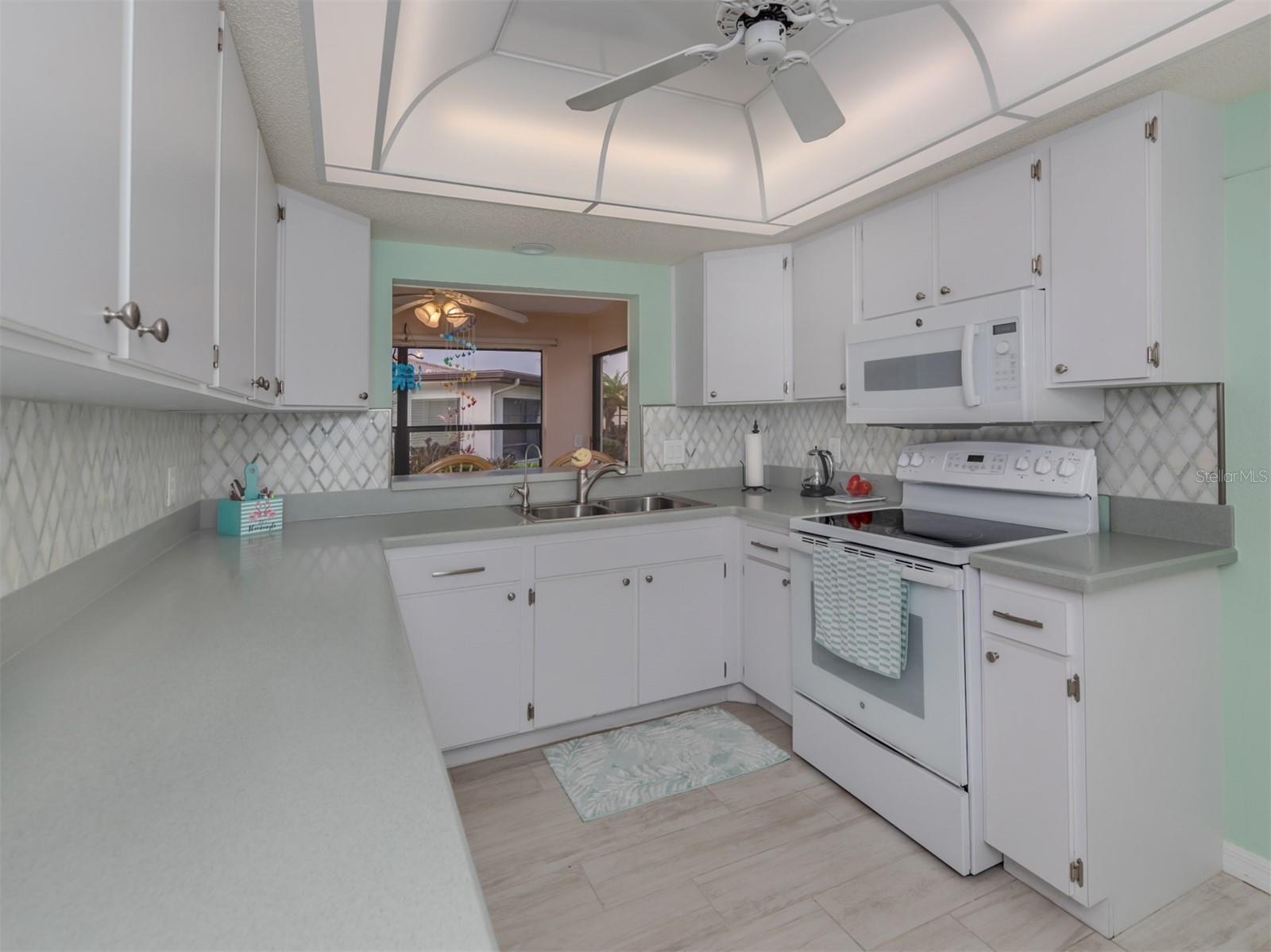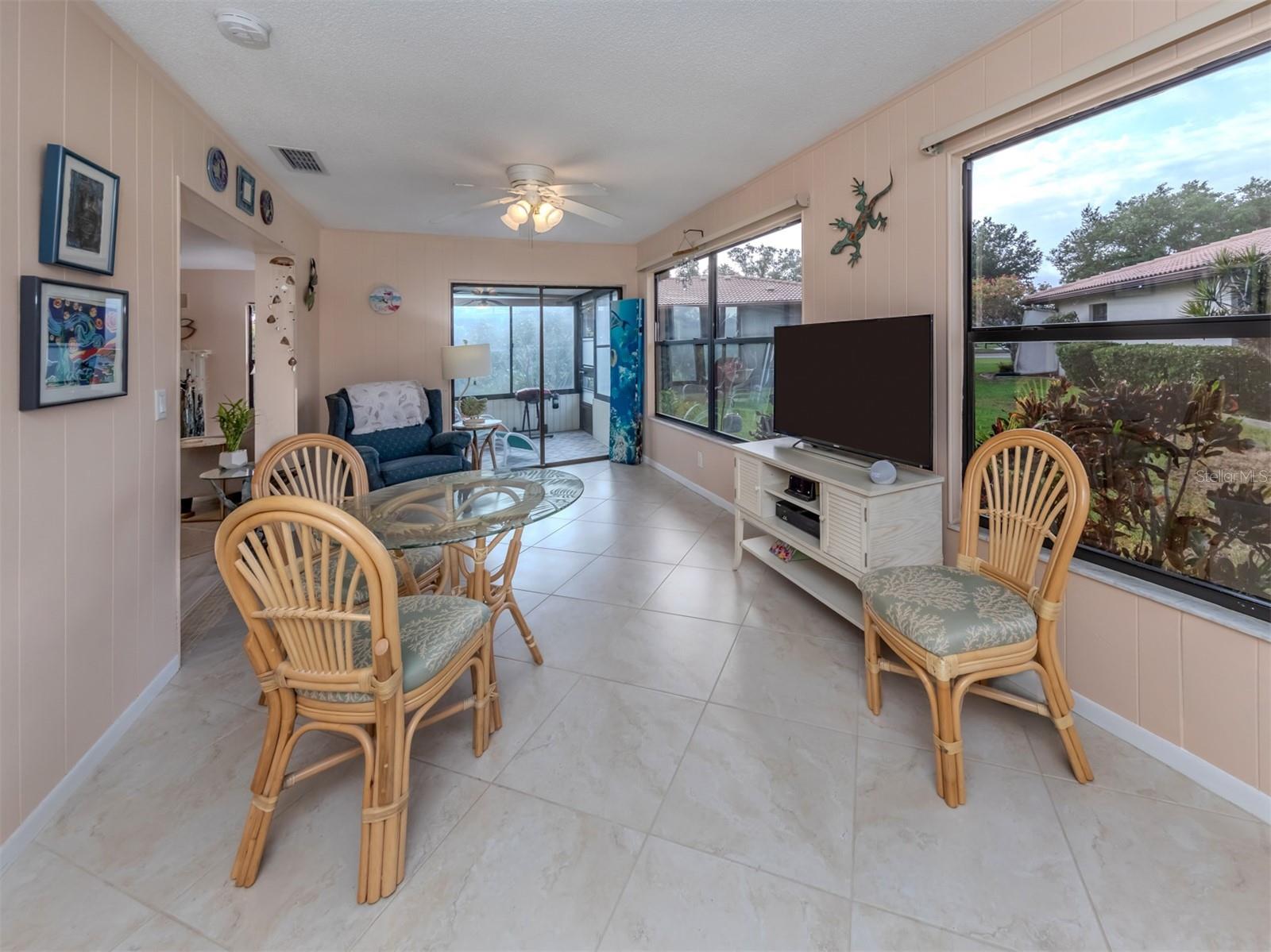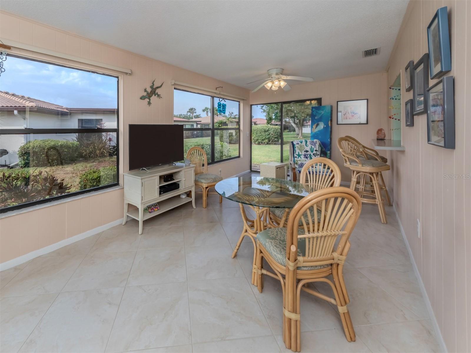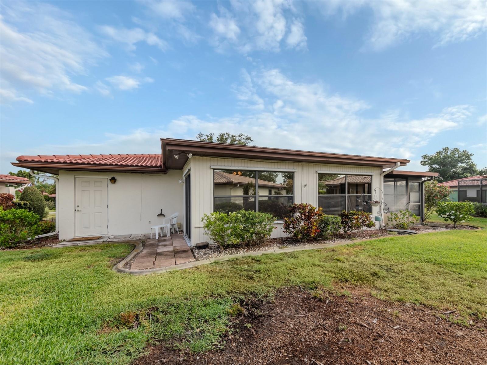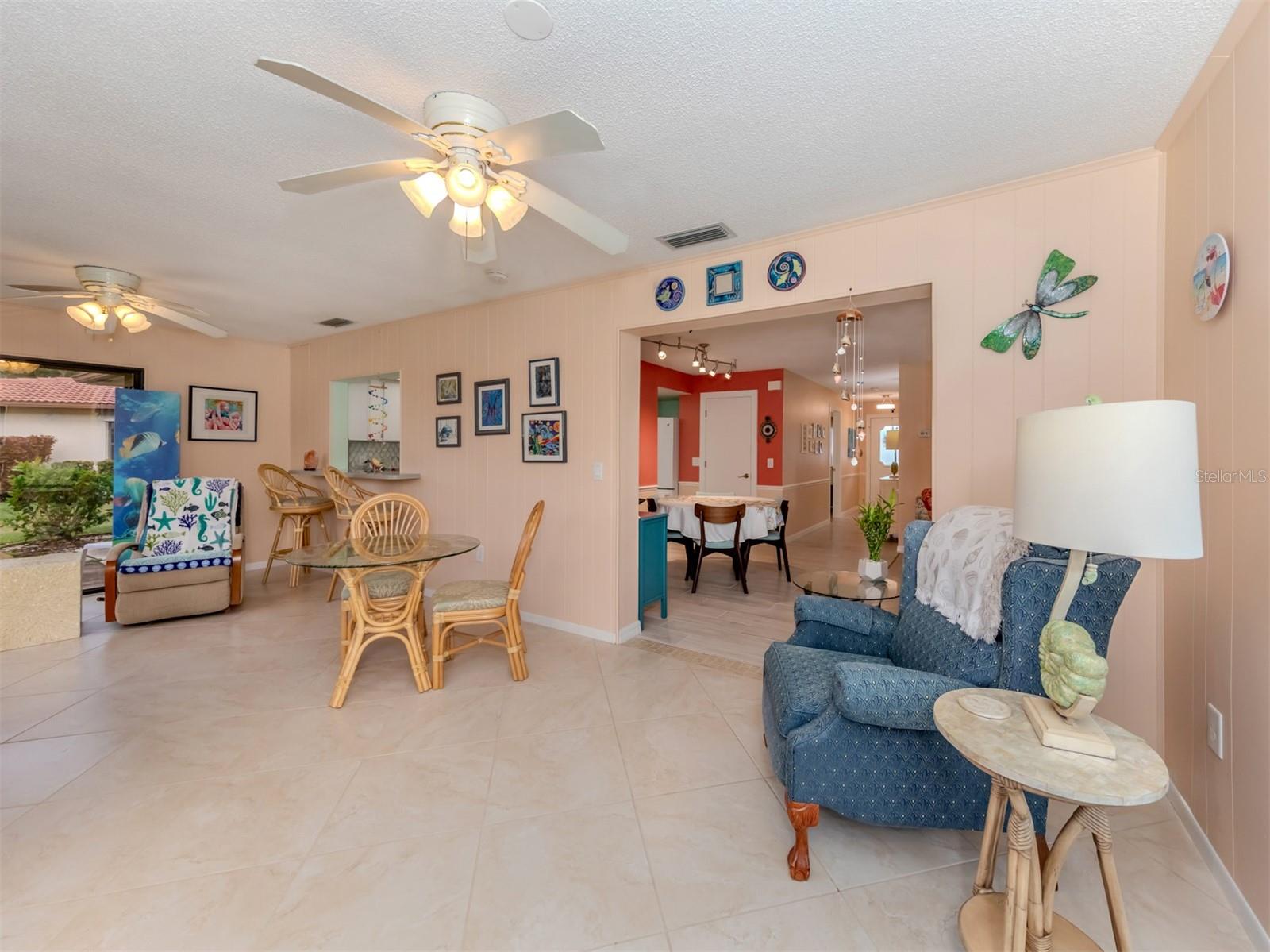Welcome to Vivienda, an exclusive 27-unit enclave designed for 55+ living, located just moments from downtown Venice's shopping, dining, and beautiful beaches. Nestled on a quiet cul-de-sac, this stand-alone condo unit with an attached garage offers both privacy and convenience. Step inside to a light and bright coastal ambiance, with tile flooring throughout. The living room features a cozy fireplace, perfect for relaxing evenings. The spacious kitchen boasts a stainless steel sink, a new backsplash, solid surface counters, updated cabinets, and a pantry. This home includes two en-suite bedrooms, each with remodeled bathrooms. One suite features a walk-in closet and a high-end mirror/medicine cabinet with interior outlets, along with a walk-in shower. The second suite offers dual sinks and another walk-in shower. A versatile den/office includes an interior laundry closet with a sink. Enjoy the Florida lifestyle in the large Florida room with a garden view, featuring glass windows and sliders at each end—one leading to the enclosed lanai and the other to a patio area perfect for grilling. Additional updates include new garage, exterior, laundry, and interior doors with lever handles, whole-house hurricane panels, a new A/C and hot water heater (replaced in 2023), and a replumbed system (completed in 2015). The tile roof was installed in 2011. Roof and exterior stucco are covered in the monthly HOA fee. Just steps away from the community pool, this home offers the perfect blend of comfort, style, and convenience. Discover your new coastal retreat at Vivienda.