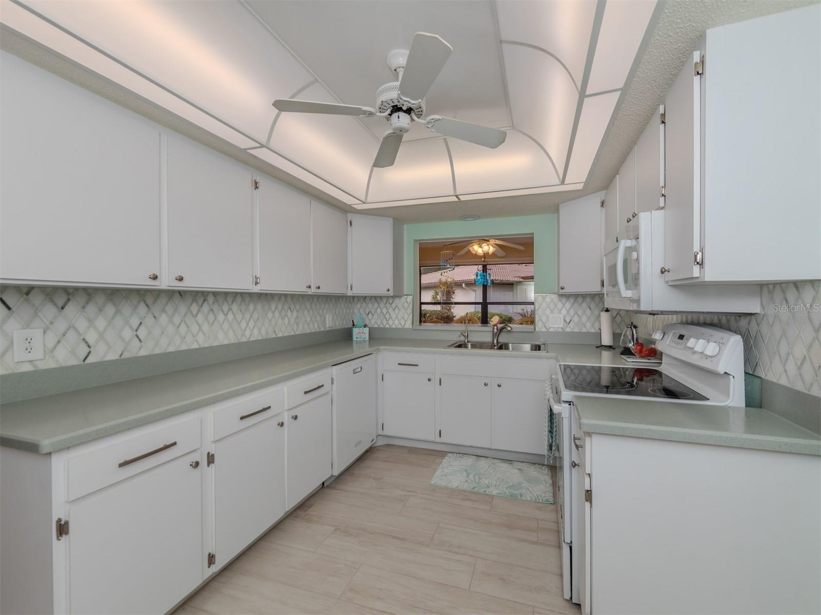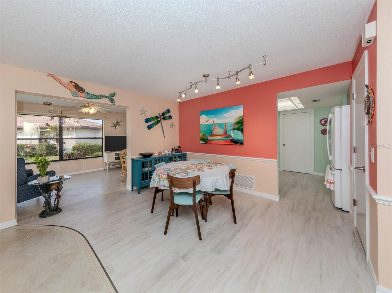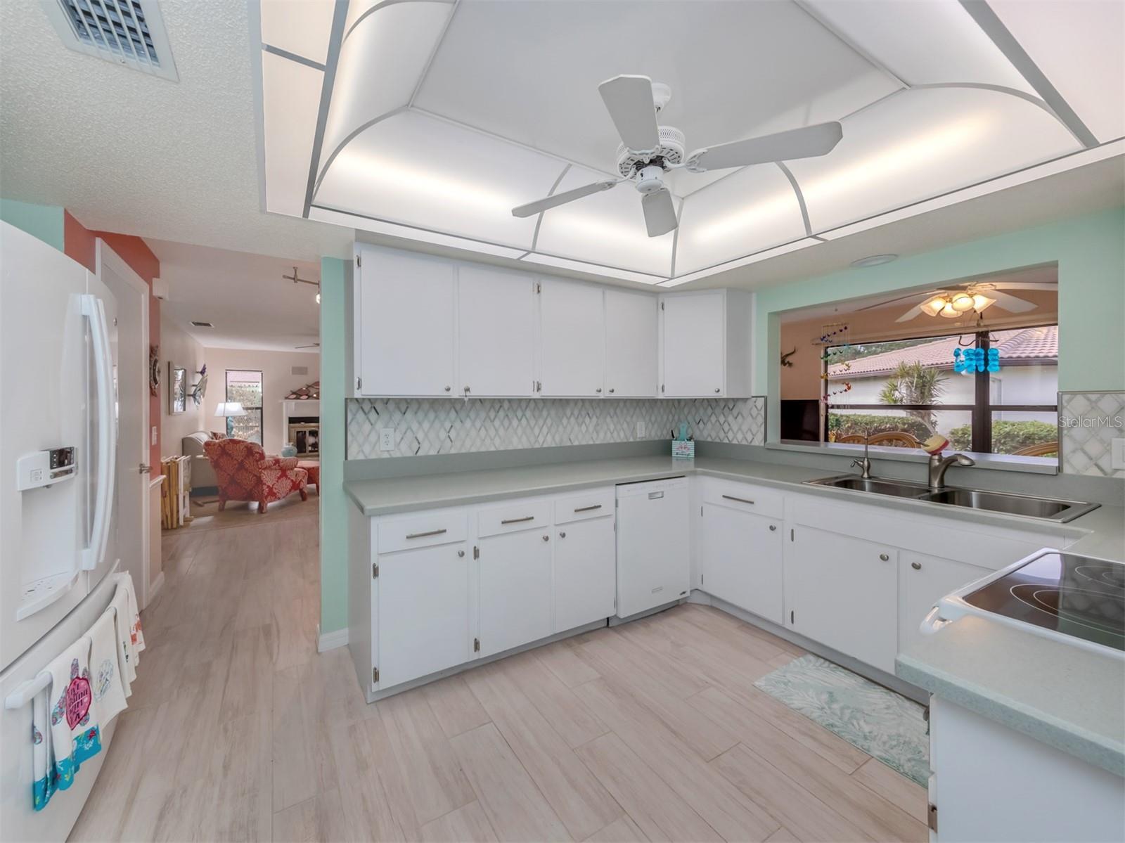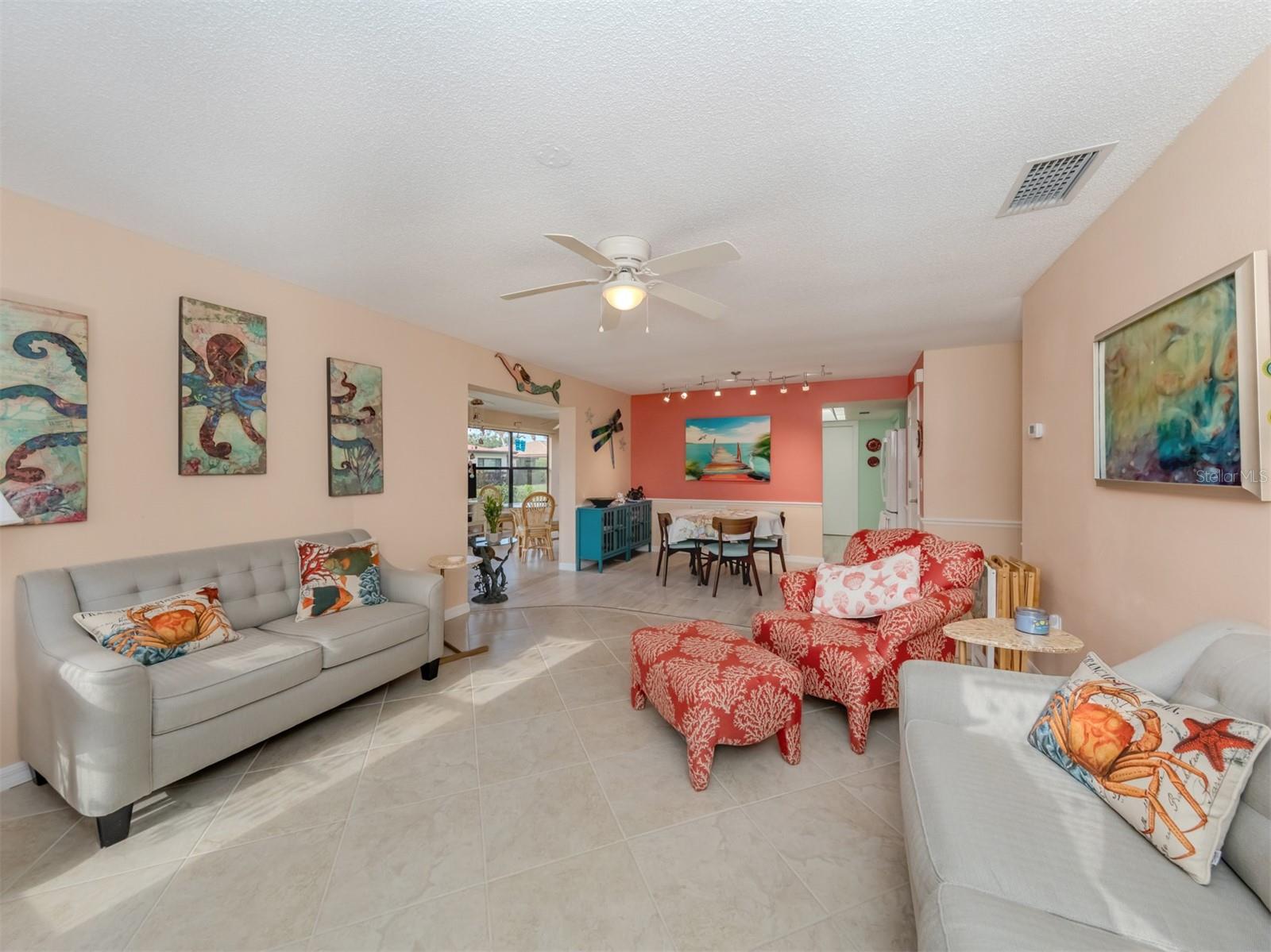 Welcome to Vivienda, an exclusive 27-unit enclave designed for 55+ living, located just moments from downtown Venice's shopping, dining, and beautiful beaches. Nestled on a quiet cul-de-sac, this stand-alone condo unit with an attached garage offers both privacy and convenience. Step inside to a light and bright coastal ambiance, with tile flooring throughout. The living room features a cozy fireplace, perfect for relaxing evenings. The spacious kitchen boasts a stainless steel sink, a new backsplash, solid surface counters, updated cabinets, and a pantry. This home includes two en-suite bedrooms, each with remodeled bathrooms. One suite features a walk-in closet and a high-end mirror/medicine cabinet with interior outlets, along with a walk-in shower. The second suite offers dual sinks and another walk-in shower. A versatile den/office includes an interior laundry closet with a sink. Enjoy the Florida lifestyle in the large Florida room with a garden view, featuring glass windows and sliders at each end—one leading to the enclosed lanai and the other to a patio area perfect for grilling. Additional updates include new garage, exterior, laundry, and interior doors with lever handles, whole-house hurricane panels, a new A/C and hot water heater (replaced in 2023), and a replumbed system (completed in 2015). The tile roof was installed in 2011. Roof and exterior stucco are covered in the monthly HOA fee. Just steps away from the community pool, this home offers the perfect blend of comfort, style, and convenience. Discover your new coastal retreat at Vivienda.