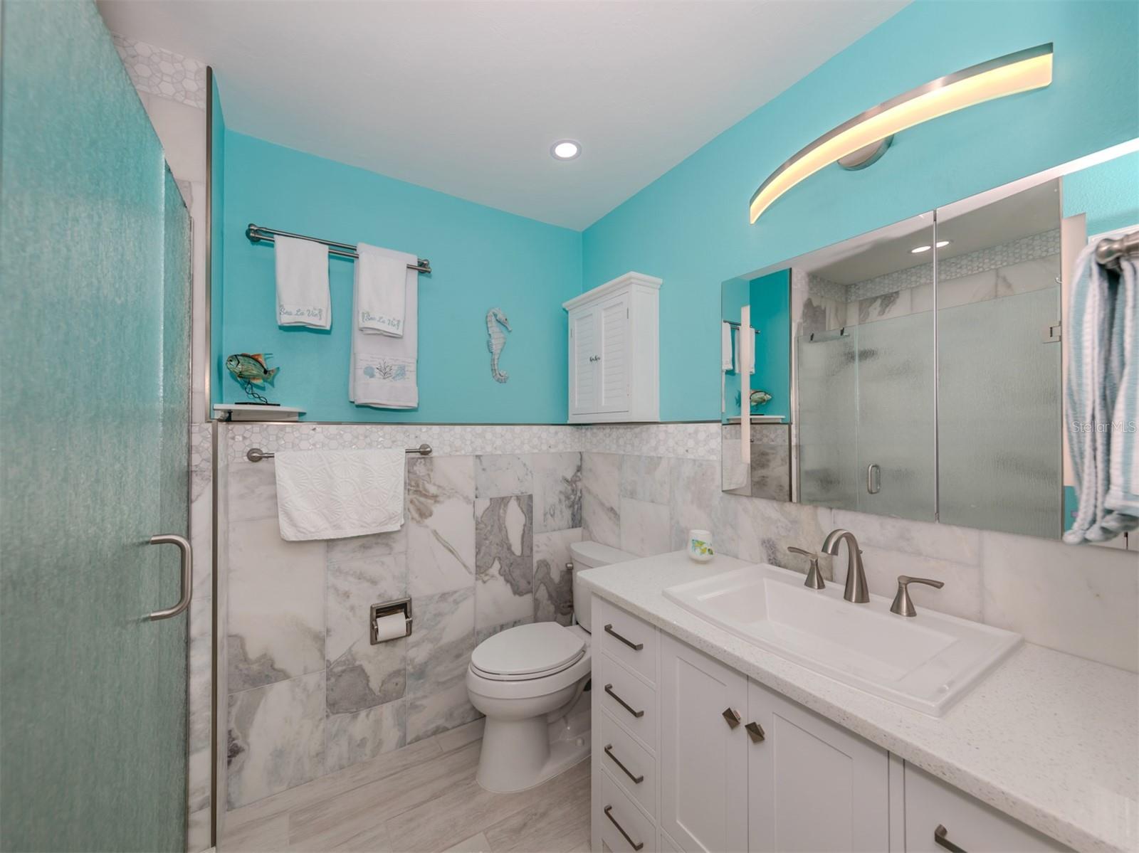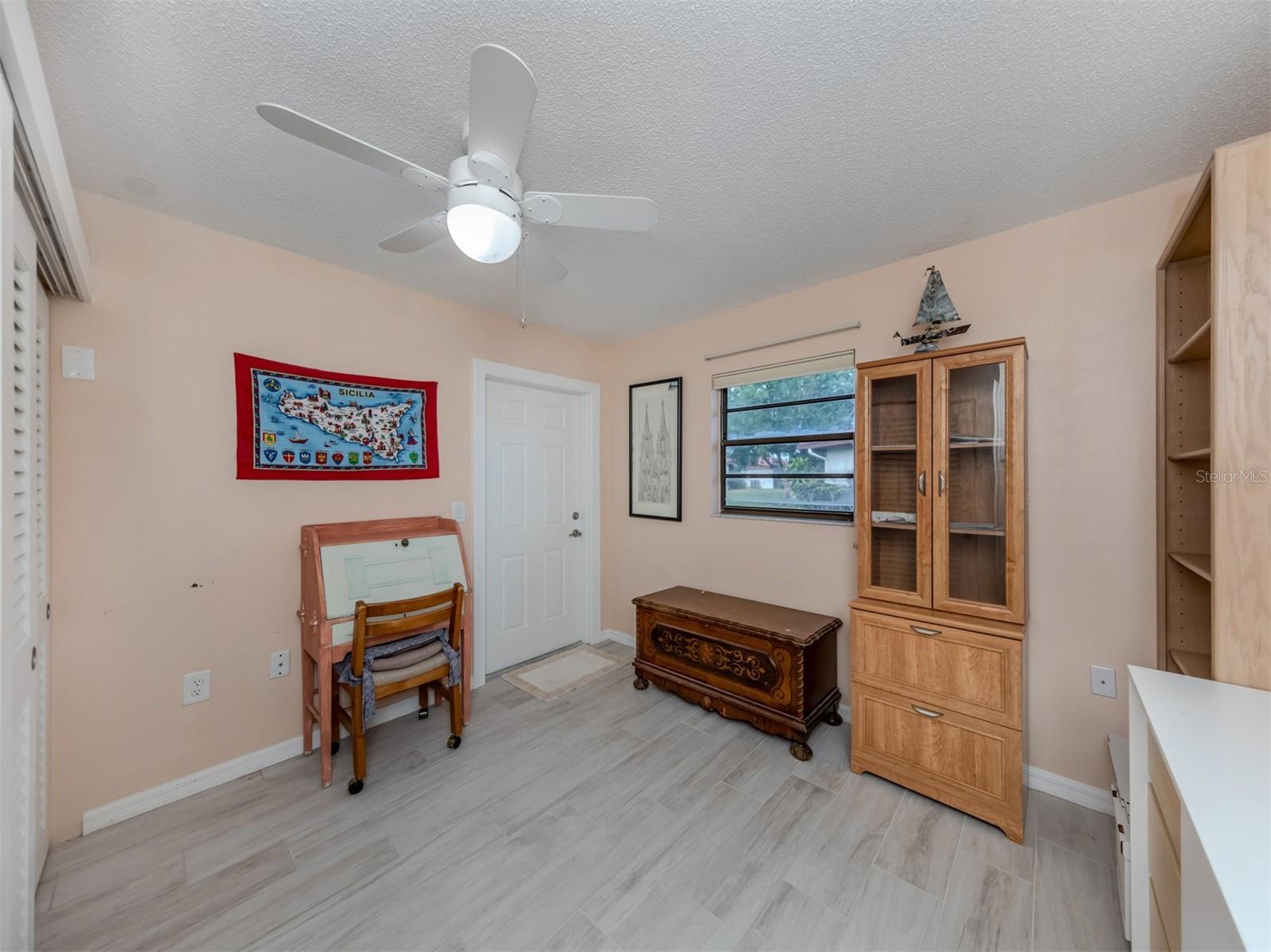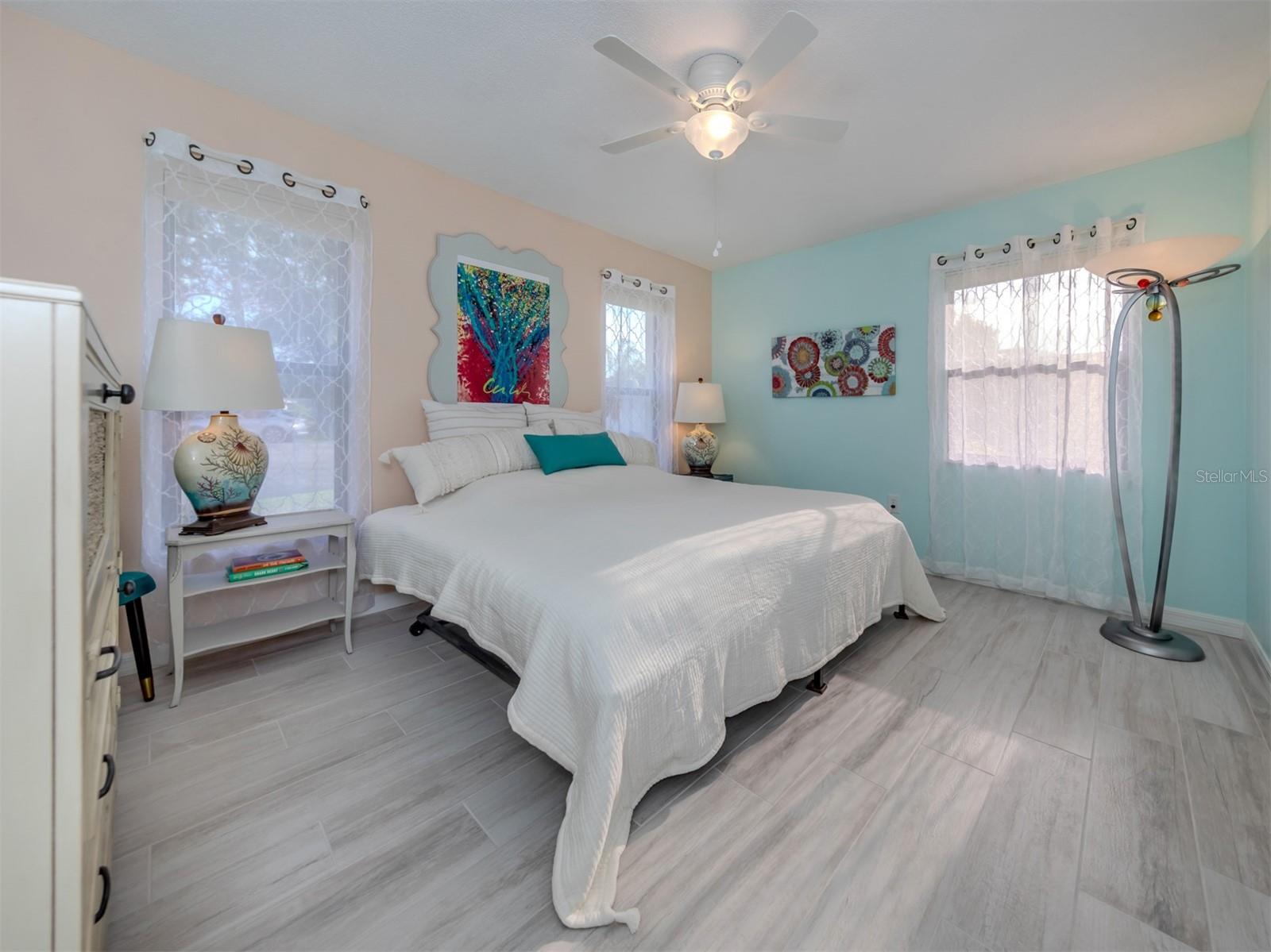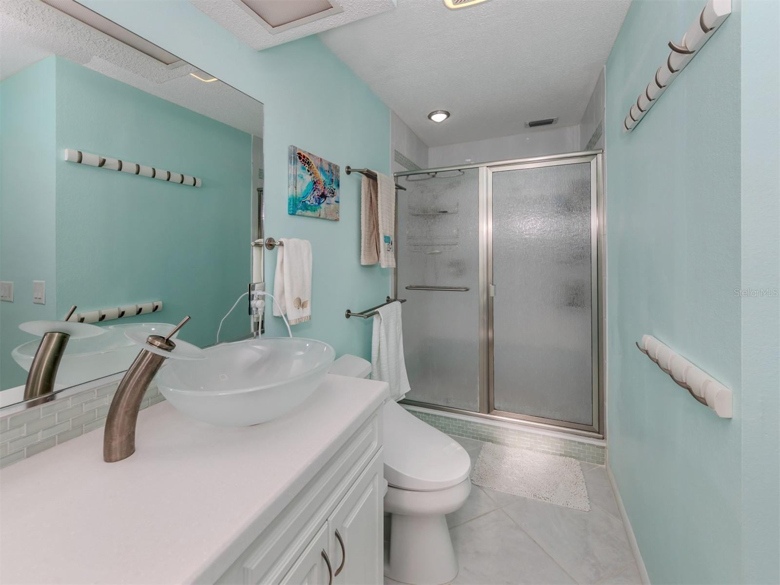 Welcome to Vivienda, an exclusive 27-unit enclave designed for 55+ living, located just moments from downtown Venice's shopping, dining, and beautiful beaches. Nestled on a quiet cul-de-sac, this stand-alone condo unit with an attached garage offers both privacy and convenience. Step inside to a light and bright coastal ambiance, with tile flooring throughout. The living room features a cozy fireplace, perfect for relaxing evenings. The spacious kitchen boasts a stainless steel sink, a new backsplash, solid surface counters, updated cabinets, and a pantry. This home includes two en-suite bedrooms, each with remodeled bathrooms. One suite features a walk-in closet and a high-end mirror/medicine cabinet with interior outlets, along with a walk-in shower. The second suite offers dual sinks and another walk-in shower. A versatile den/office includes an interior laundry closet with a sink. Enjoy the Florida lifestyle in the large Florida room with a garden view, featuring glass windows and sliders at each end—one leading to the enclosed lanai and the other to a patio area perfect for grilling. Additional updates include new garage, exterior, laundry, and interior doors with lever handles, whole-house hurricane panels, a new A/C and hot water heater (replaced in 2023), and a replumbed system (completed in 2015). The tile roof was installed in 2011. Roof and exterior stucco are covered in the monthly HOA fee. Just steps away from the community pool, this home offers the perfect blend of comfort, style, and convenience. Discover your new coastal retreat at Vivienda.