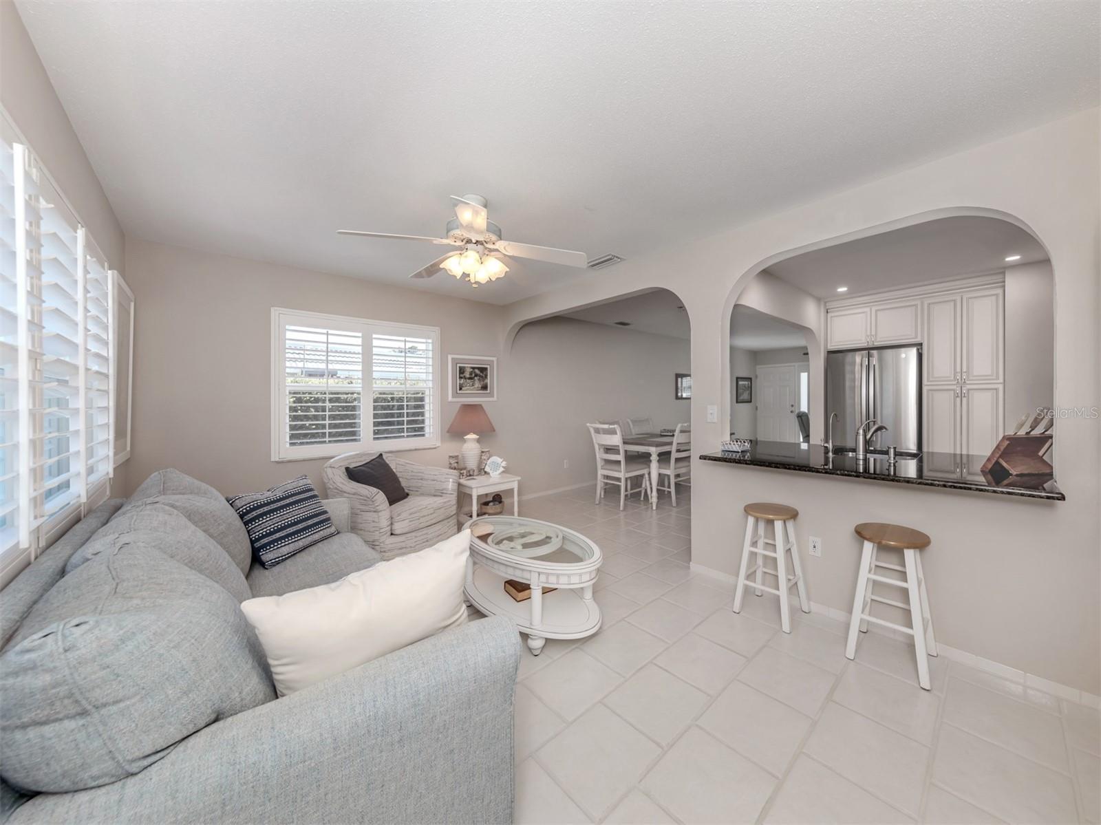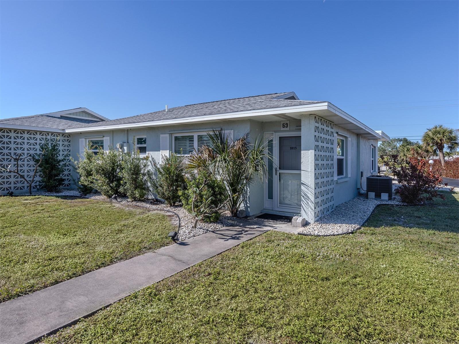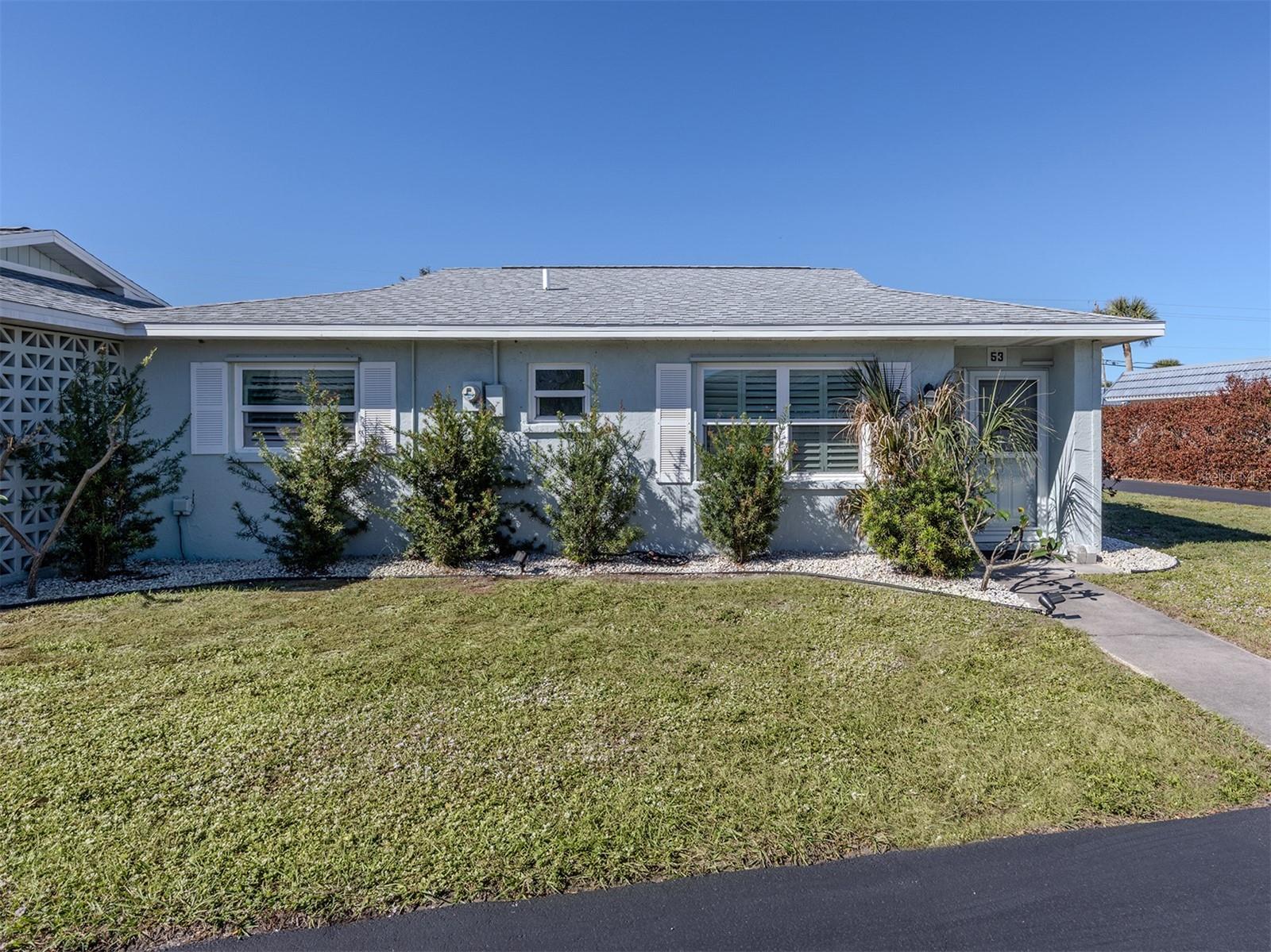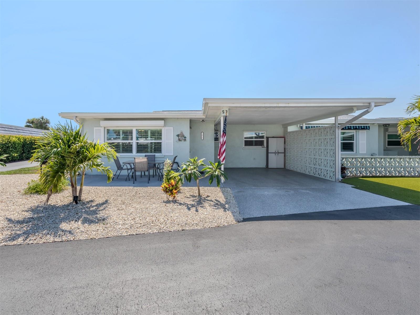 Get ready to fall in love with this adorable two bedroom one and a half bath Villa in the heart of Venice Island. You will love this villa that sets it apart from the others as it offers end unit views from additional windows that allow for natural lighting to shine right through and brighten the villa. New homeowners will have peace of mind, knowing hurricane windows are already in place, including the enhancement of plantation shutters that add timeless, elegance, and charm to this Villa. Feel right at home with the all new kitchen transformation of modern enhancements with updates, including new soft closed French country cabinets and drawers, durable and long, lasting granite countertops, crisp, and clean, glass tile backsplash, stainless steel, backsplash, all new GE stainless steel appliances, recessed kitchen lighting and under sink reverse osmosis for better quality drinking or cooking water. Decorating this home into your own dream Villa will be easy when homeowners take advantage of the neutral soothing interior paint color throughout the home. Primary bedroom offers a nice size walk-in closet and an en suite half bath. Main full bathroom has brand new glass shower doors on walk-in shower. Two separate living area spaces provide the options and freedoms to create a living room space and sitting room space on opposite sides of the home. Owners will appreciate ceiling fans in every room, including the durable Eco friendly, low maintenance tile throughout the entire home. This home has a separate laundry room and epoxy painted flooring on the clean spacious carport. Everything has been taken care of and will make living in this villa a breeze. Enjoy your days and spend time outdoors on the patio outback living in this maintenance free 55 and over community. Don’t leave your pet behind as this is a pet friendly community. Community amenities include a community clubhouse with a full kitchen, tables and chairs, bathrooms, a community pool, shuffleboard, and laundry facility. Get ready to live your life in paradise as this is a prime location, situated less than 1 mile from the beaches, 1.3 miles from the pier next to the restaurants, golfing and 1.8 miles away from historic downtown Venice. Shopping, dining, theater, parks, boating, tennis, and Humphries Park South jetty are all within 3 miles or less away. This Villa is moving ready. Live the lifestyle. You’ve always wanted on the island of Venice. Reserve your appointment today to come see this beautiful villa and be prepared to call this your home.