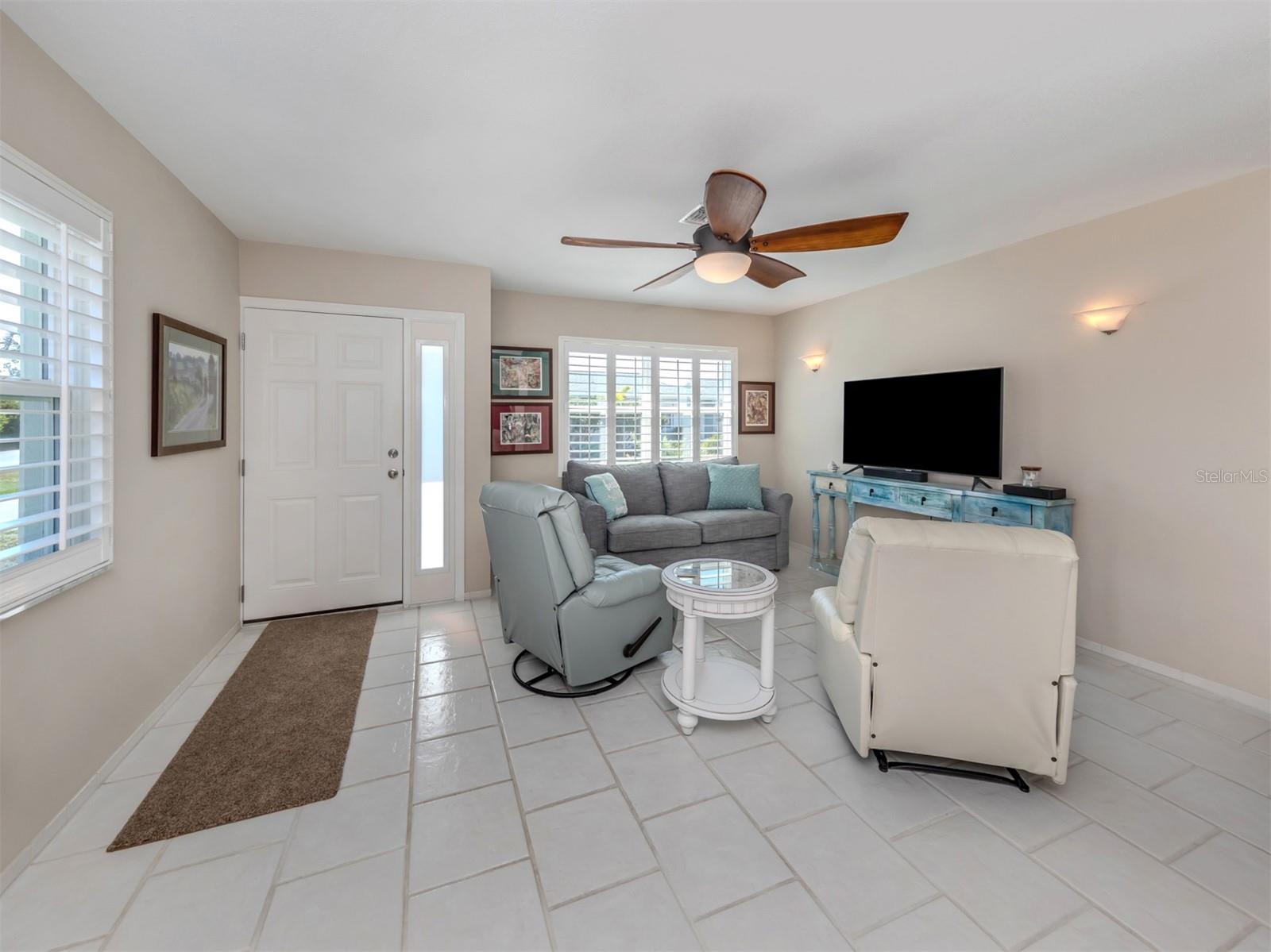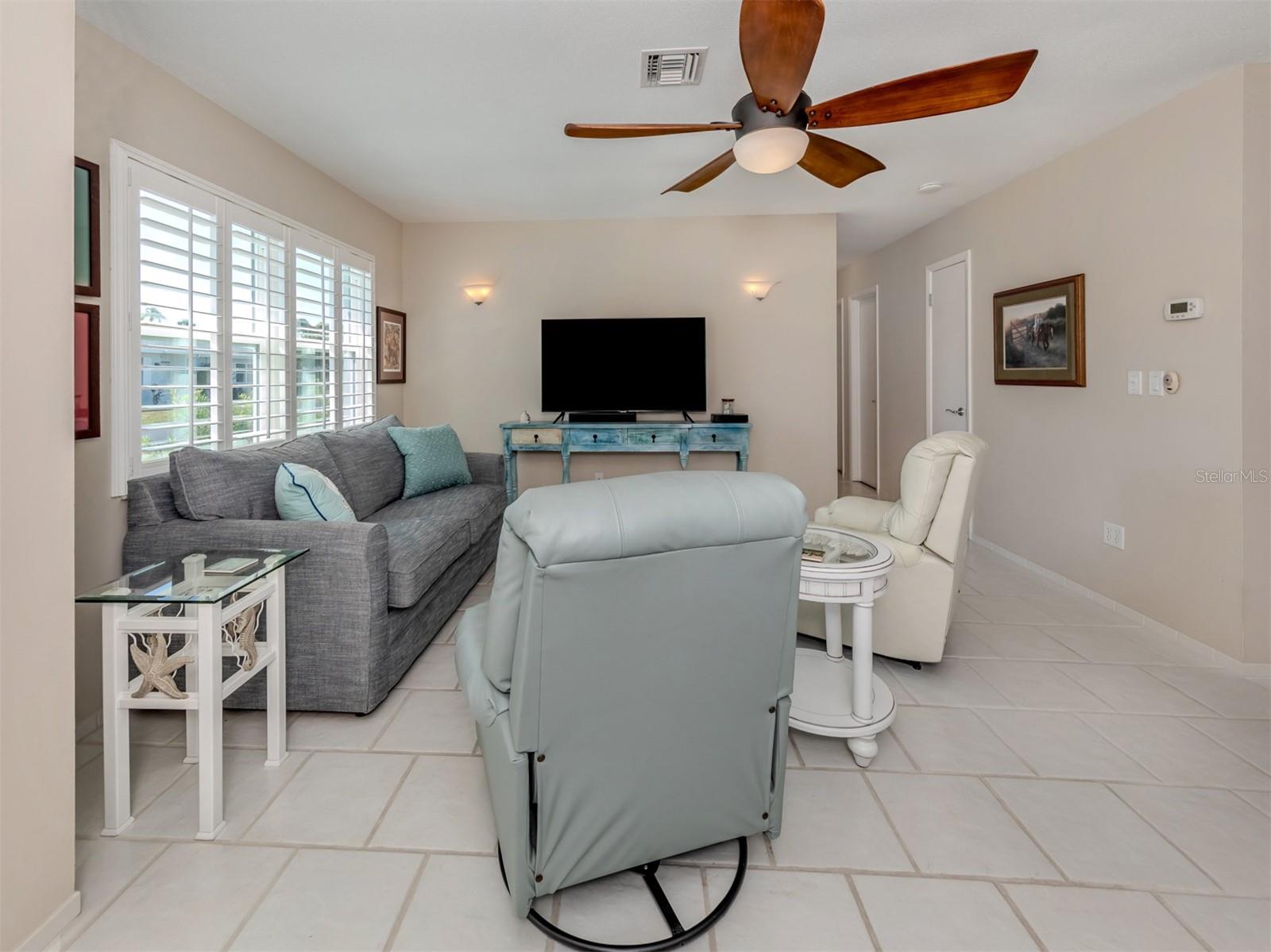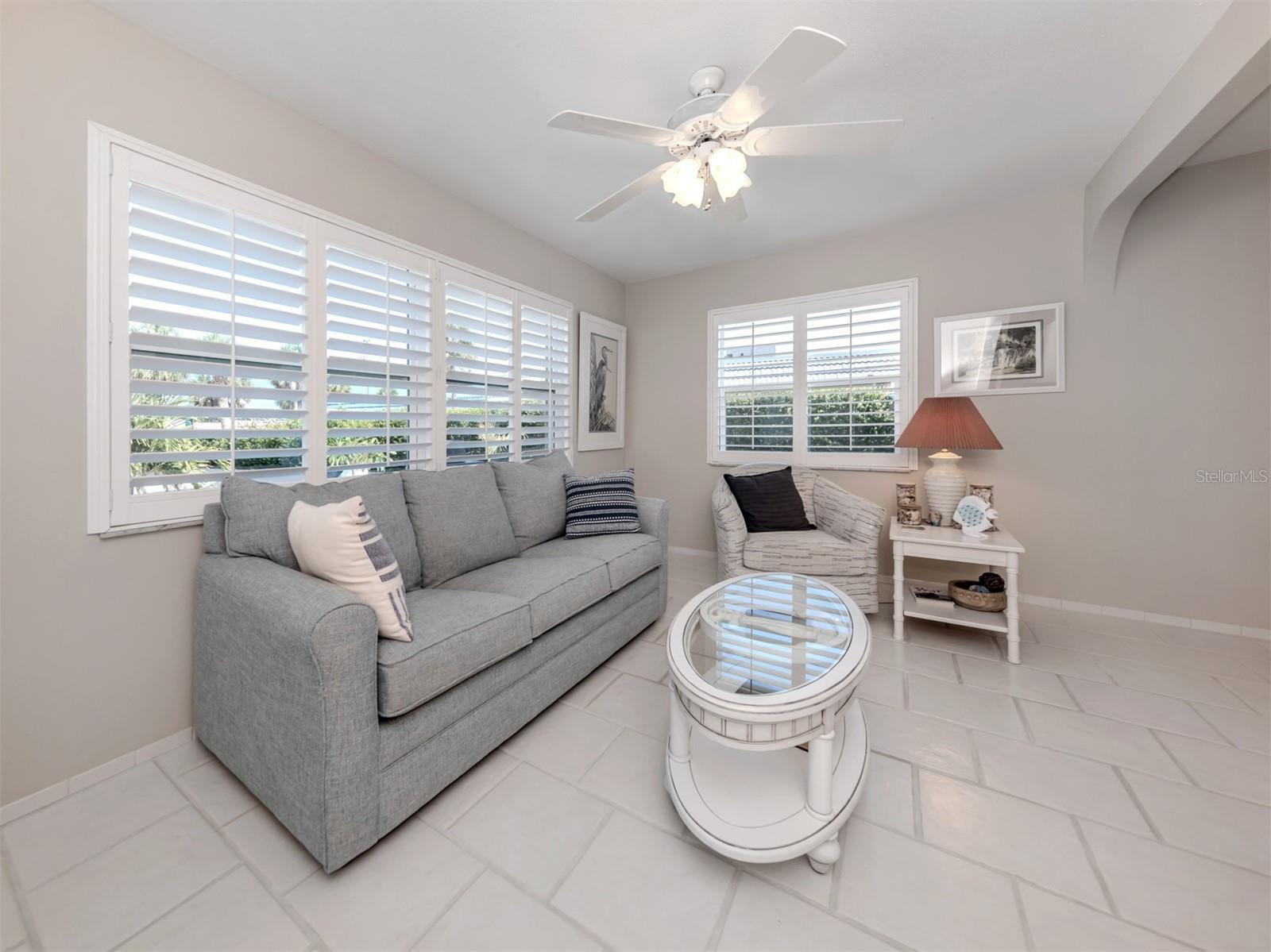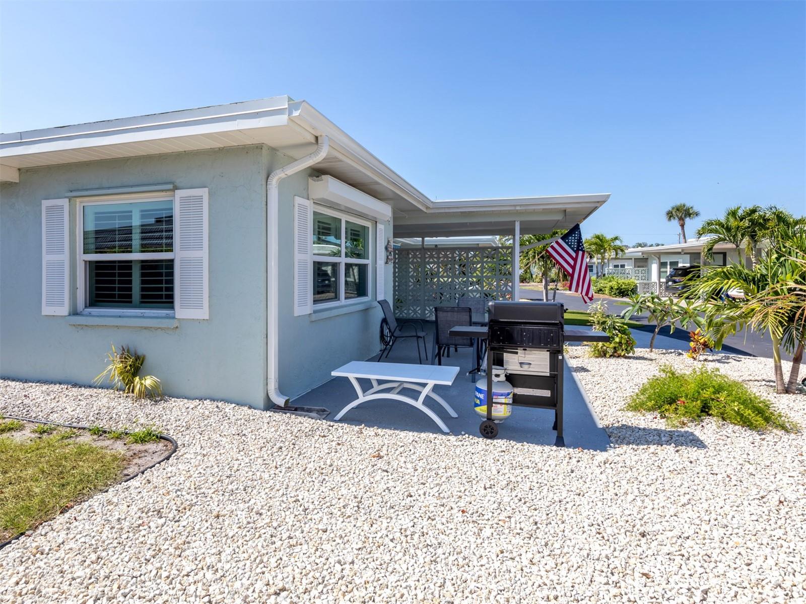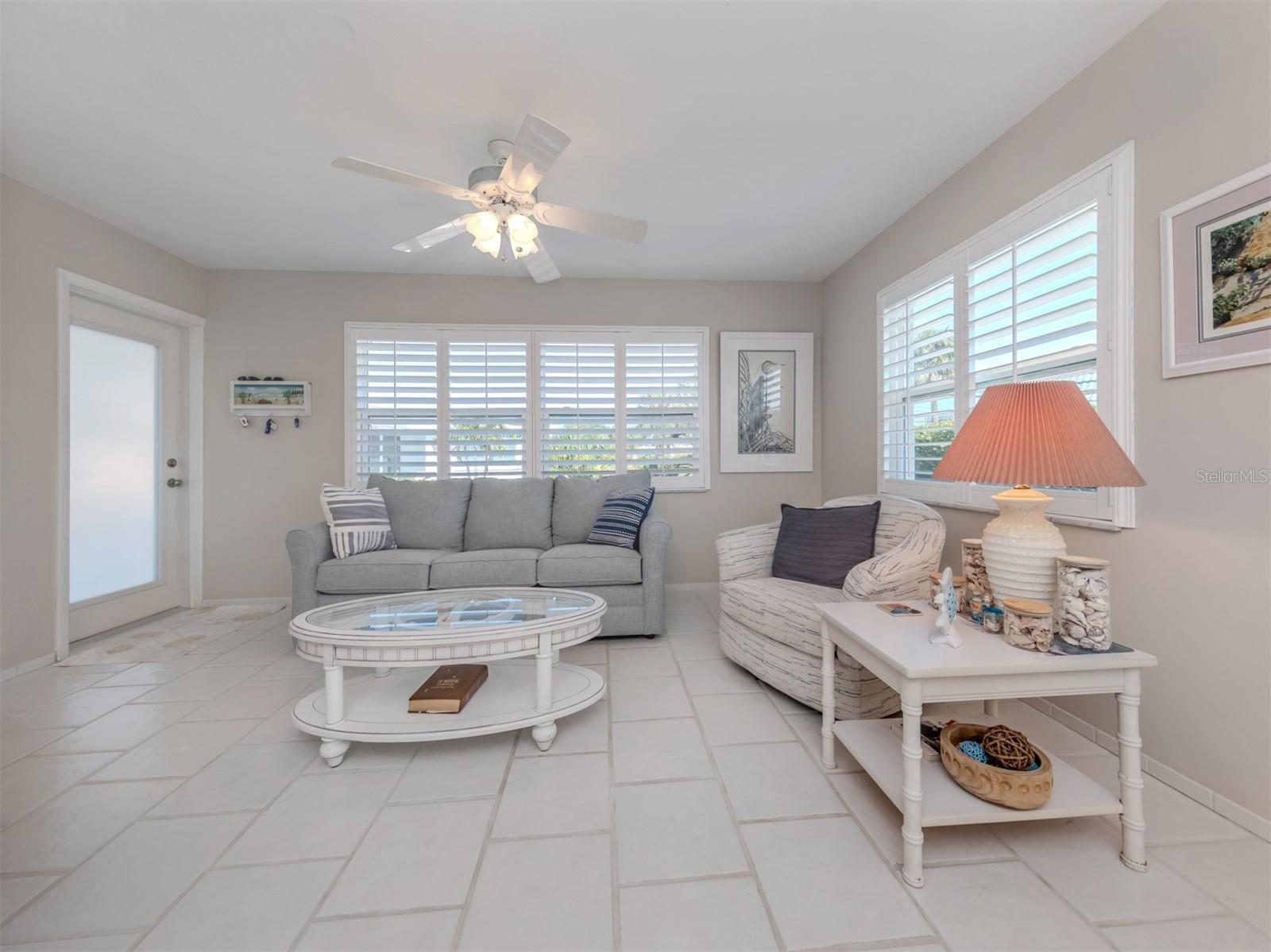 Get ready to fall in love with this adorable two bedroom one and a half bath Villa in the heart of Venice Island. You will love this villa that sets it apart from the others as it offers end unit views from additional windows that allow for natural lighting to shine right through and brighten the villa. New homeowners will have peace of mind, knowing hurricane windows are already in place, including the enhancement of plantation shutters that add timeless, elegance, and charm to this Villa. Feel right at home with the all new kitchen transformation of modern enhancements with updates, including new soft closed French country cabinets and drawers, durable and long, lasting granite countertops, crisp, and clean, glass tile backsplash, stainless steel, backsplash, all new GE stainless steel appliances, recessed kitchen lighting and under sink reverse osmosis for better quality drinking or cooking water. Decorating this home into your own dream Villa will be easy when homeowners take advantage of the neutral soothing interior paint color throughout the home. Primary bedroom offers a nice size walk-in closet and an en suite half bath. Main full bathroom has brand new glass shower doors on walk-in shower. Two separate living area spaces provide the options and freedoms to create a living room space and sitting room space on opposite sides of the home. Owners will appreciate ceiling fans in every room, including the durable Eco friendly, low maintenance tile throughout the entire home. This home has a separate laundry room and epoxy painted flooring on the clean spacious carport. Everything has been taken care of and will make living in this villa a breeze. Enjoy your days and spend time outdoors on the patio outback living in this maintenance free 55 and over community. Don’t leave your pet behind as this is a pet friendly community. Community amenities include a community clubhouse with a full kitchen, tables and chairs, bathrooms, a community pool, shuffleboard, and laundry facility. Get ready to live your life in paradise as this is a prime location, situated less than 1 mile from the beaches, 1.3 miles from the pier next to the restaurants, golfing and 1.8 miles away from historic downtown Venice. Shopping, dining, theater, parks, boating, tennis, and Humphries Park South jetty are all within 3 miles or less away. This Villa is moving ready. Live the lifestyle. You’ve always wanted on the island of Venice. Reserve your appointment today to come see this beautiful villa and be prepared to call this your home.