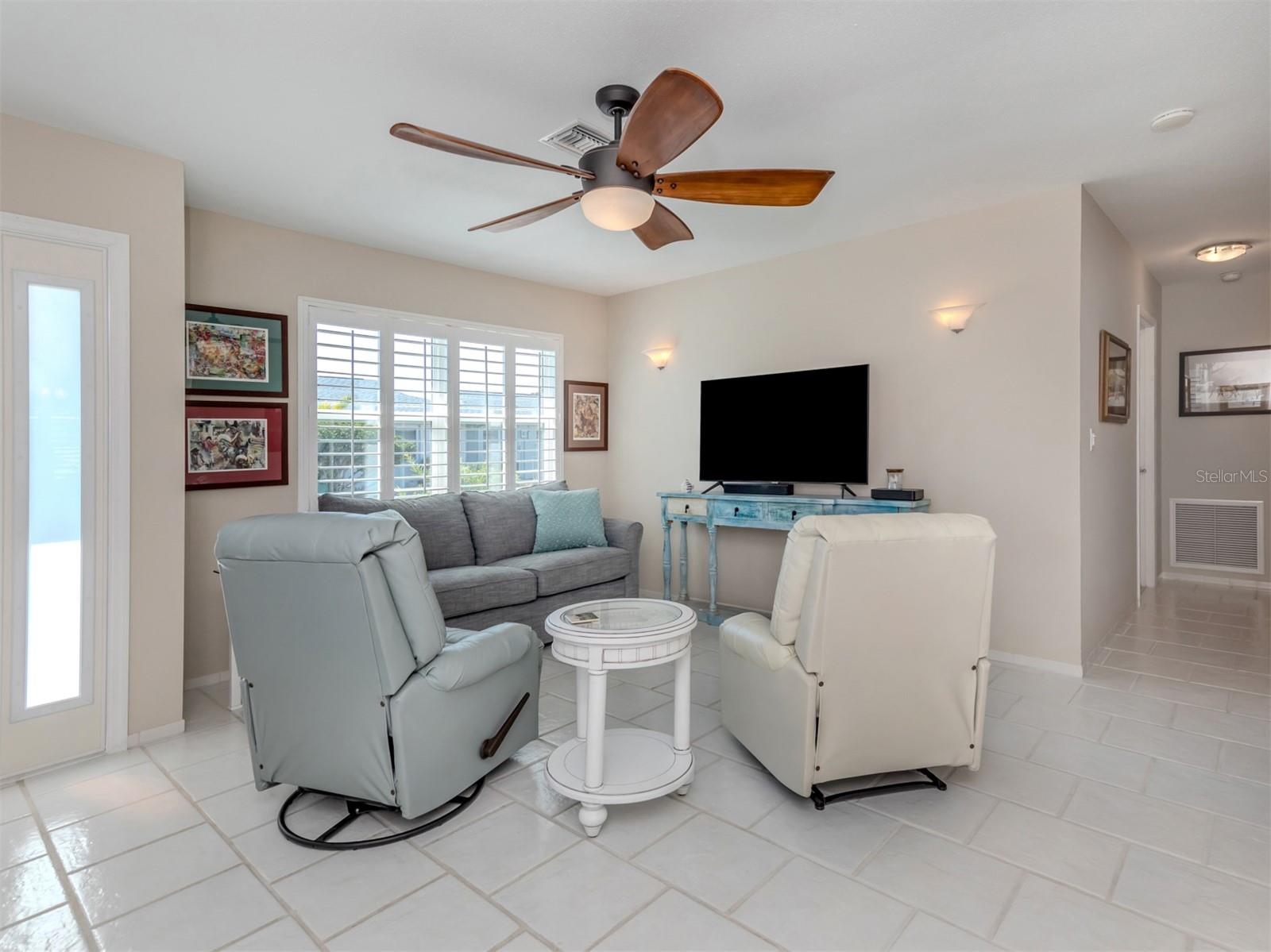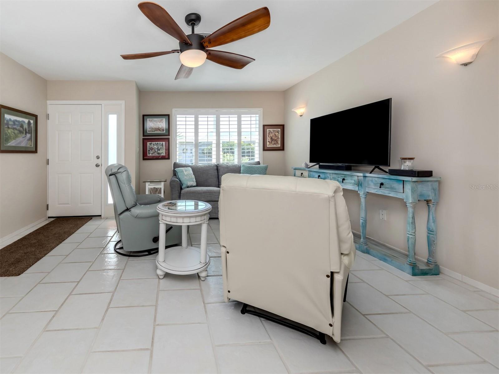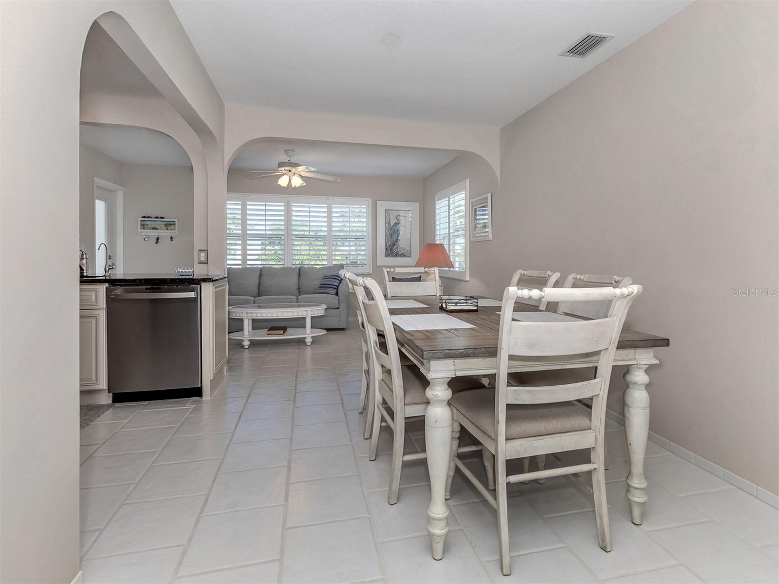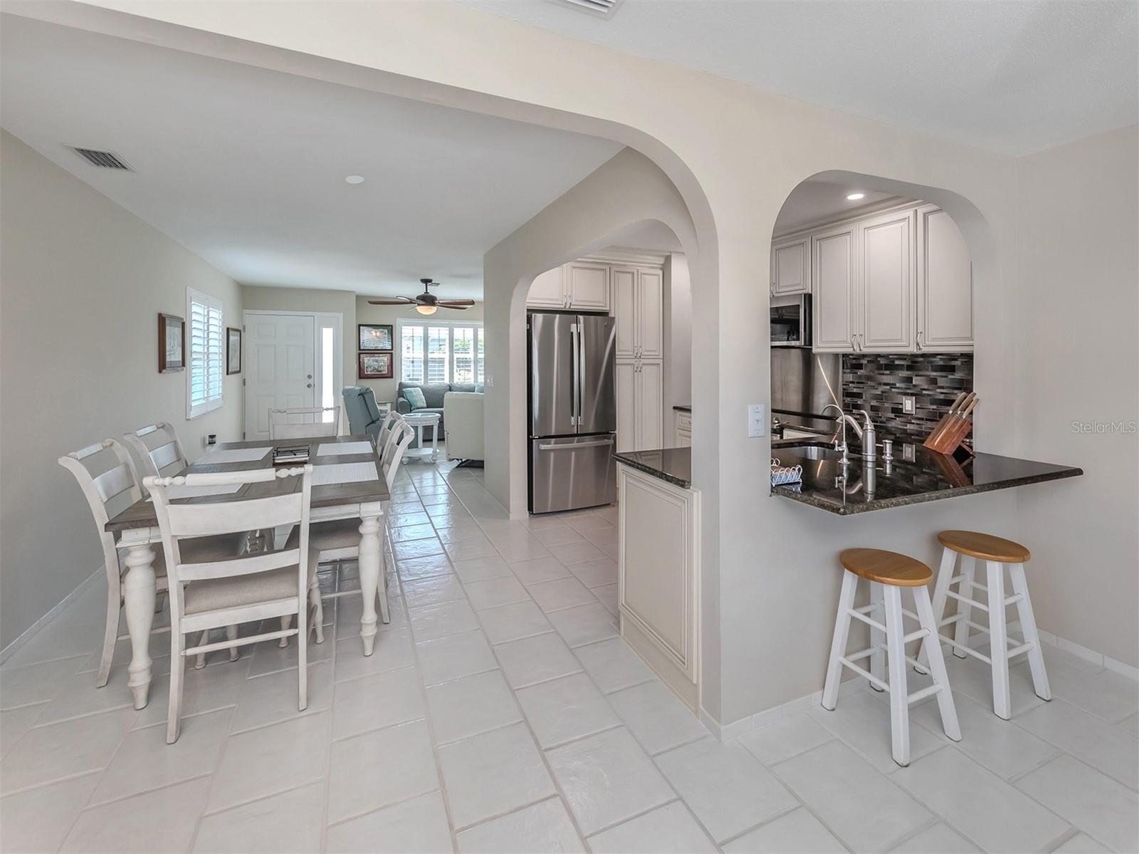 Get ready to fall in love with this adorable two bedroom one and a half bath Villa in the heart of Venice Island. You will love this villa that sets it apart from the others as it offers end unit views from additional windows that allow for natural lighting to shine right through and brighten the villa. New homeowners will have peace of mind, knowing hurricane windows are already in place, including the enhancement of plantation shutters that add timeless, elegance, and charm to this Villa. Feel right at home with the all new kitchen transformation of modern enhancements with updates, including new soft closed French country cabinets and drawers, durable and long, lasting granite countertops, crisp, and clean, glass tile backsplash, stainless steel, backsplash, all new GE stainless steel appliances, recessed kitchen lighting and under sink reverse osmosis for better quality drinking or cooking water. Decorating this home into your own dream Villa will be easy when homeowners take advantage of the neutral soothing interior paint color throughout the home. Primary bedroom offers a nice size walk-in closet and an en suite half bath. Main full bathroom has brand new glass shower doors on walk-in shower. Two separate living area spaces provide the options and freedoms to create a living room space and sitting room space on opposite sides of the home. Owners will appreciate ceiling fans in every room, including the durable Eco friendly, low maintenance tile throughout the entire home. This home has a separate laundry room and epoxy painted flooring on the clean spacious carport. Everything has been taken care of and will make living in this villa a breeze. Enjoy your days and spend time outdoors on the patio outback living in this maintenance free 55 and over community. Don’t leave your pet behind as this is a pet friendly community. Community amenities include a community clubhouse with a full kitchen, tables and chairs, bathrooms, a community pool, shuffleboard, and laundry facility. Get ready to live your life in paradise as this is a prime location, situated less than 1 mile from the beaches, 1.3 miles from the pier next to the restaurants, golfing and 1.8 miles away from historic downtown Venice. Shopping, dining, theater, parks, boating, tennis, and Humphries Park South jetty are all within 3 miles or less away. This Villa is moving ready. Live the lifestyle. You’ve always wanted on the island of Venice. Reserve your appointment today to come see this beautiful villa and be prepared to call this your home.