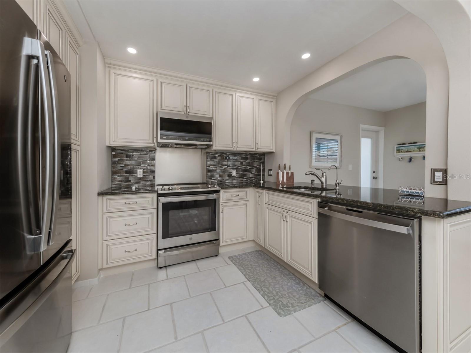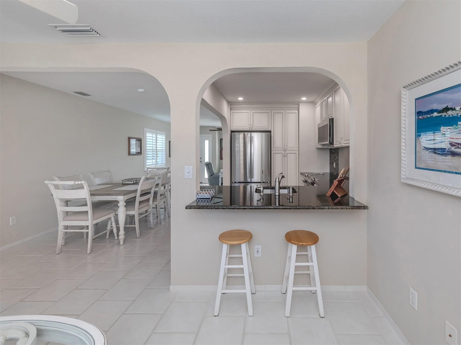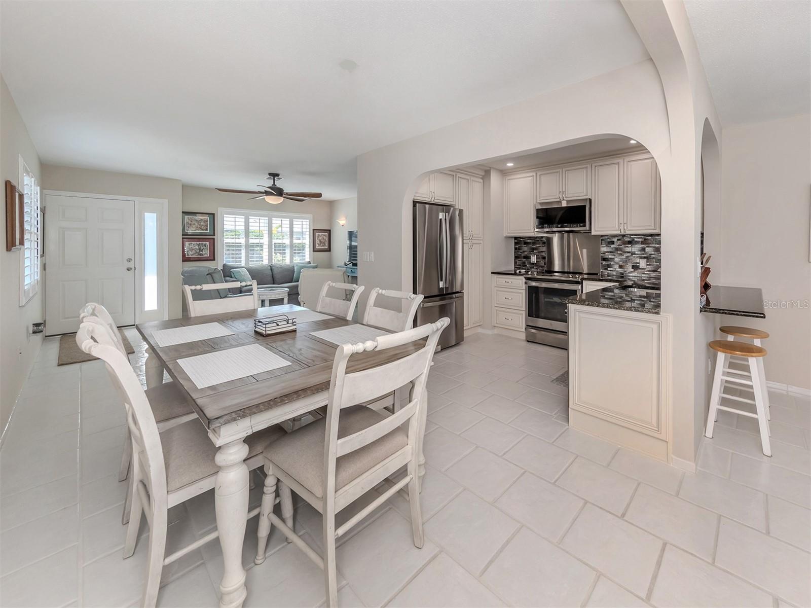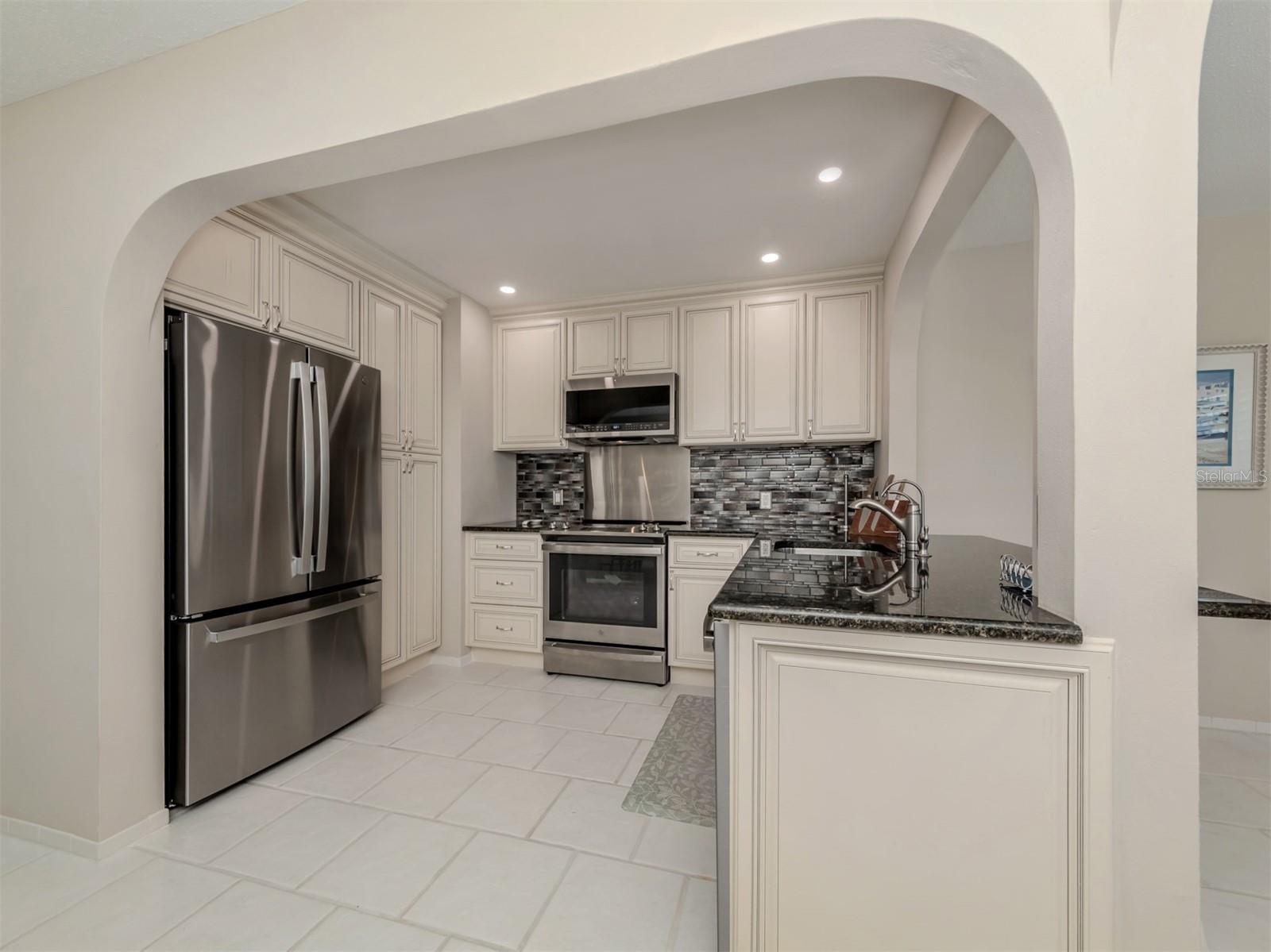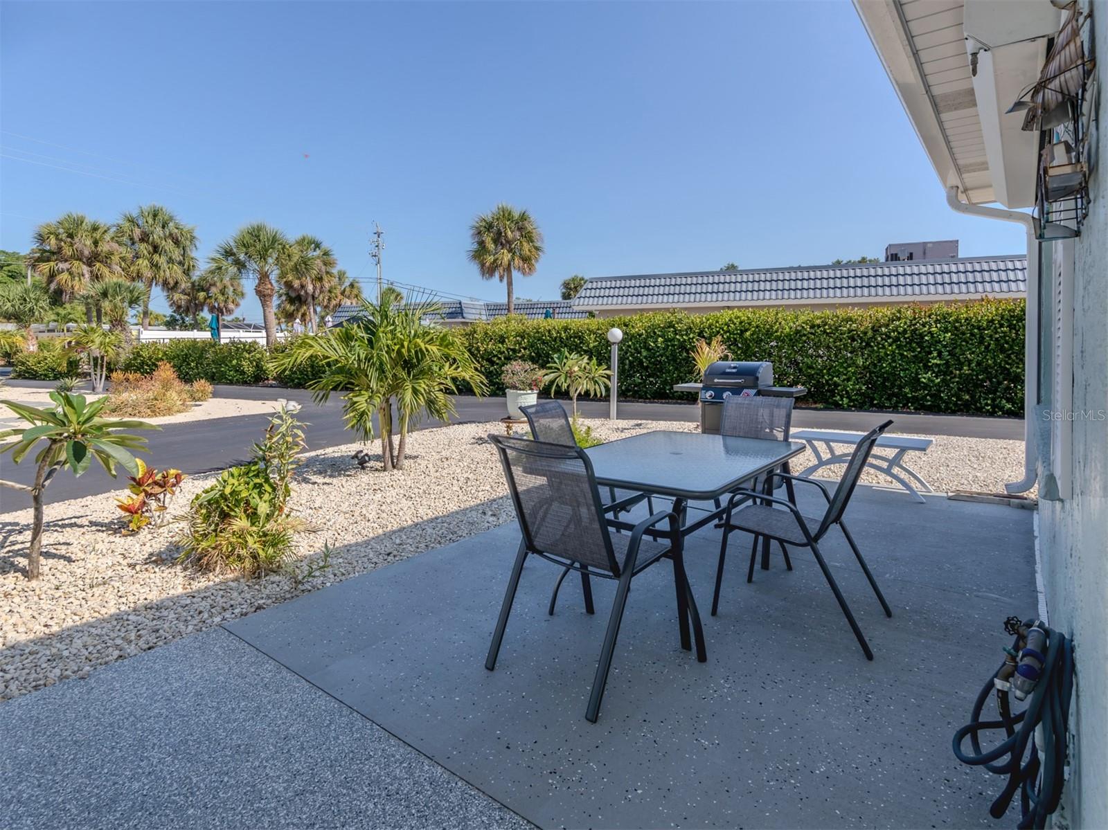 Get ready to fall in love with this adorable two bedroom one and a half bath Villa in the heart of Venice Island. You will love this villa that sets it apart from the others as it offers end unit views from additional windows that allow for natural lighting to shine right through and brighten the villa. New homeowners will have peace of mind, knowing hurricane windows are already in place, including the enhancement of plantation shutters that add timeless, elegance, and charm to this Villa. Feel right at home with the all new kitchen transformation of modern enhancements with updates, including new soft closed French country cabinets and drawers, durable and long, lasting granite countertops, crisp, and clean, glass tile backsplash, stainless steel, backsplash, all new GE stainless steel appliances, recessed kitchen lighting and under sink reverse osmosis for better quality drinking or cooking water. Decorating this home into your own dream Villa will be easy when homeowners take advantage of the neutral soothing interior paint color throughout the home. Primary bedroom offers a nice size walk-in closet and an en suite half bath. Main full bathroom has brand new glass shower doors on walk-in shower. Two separate living area spaces provide the options and freedoms to create a living room space and sitting room space on opposite sides of the home. Owners will appreciate ceiling fans in every room, including the durable Eco friendly, low maintenance tile throughout the entire home. This home has a separate laundry room and epoxy painted flooring on the clean spacious carport. Everything has been taken care of and will make living in this villa a breeze. Enjoy your days and spend time outdoors on the patio outback living in this maintenance free 55 and over community. Don’t leave your pet behind as this is a pet friendly community. Community amenities include a community clubhouse with a full kitchen, tables and chairs, bathrooms, a community pool, shuffleboard, and laundry facility. Get ready to live your life in paradise as this is a prime location, situated less than 1 mile from the beaches, 1.3 miles from the pier next to the restaurants, golfing and 1.8 miles away from historic downtown Venice. Shopping, dining, theater, parks, boating, tennis, and Humphries Park South jetty are all within 3 miles or less away. This Villa is moving ready. Live the lifestyle. You’ve always wanted on the island of Venice. Reserve your appointment today to come see this beautiful villa and be prepared to call this your home.