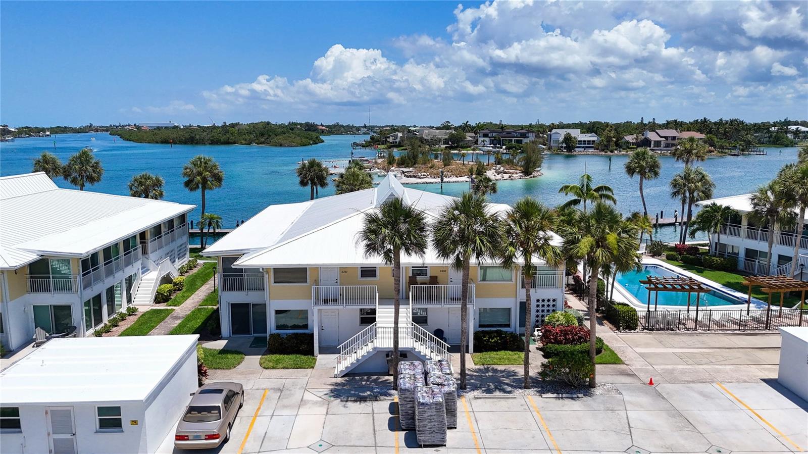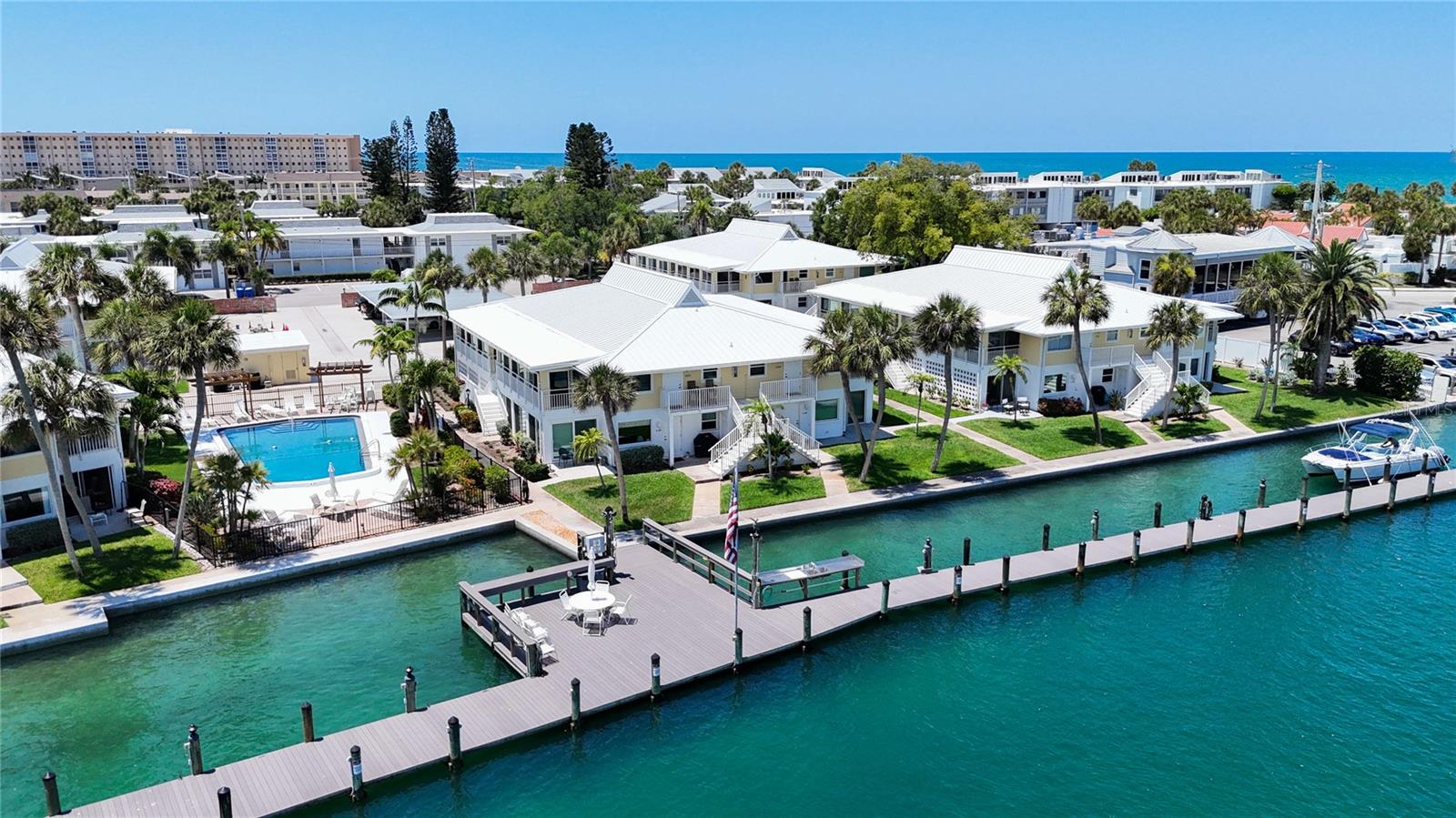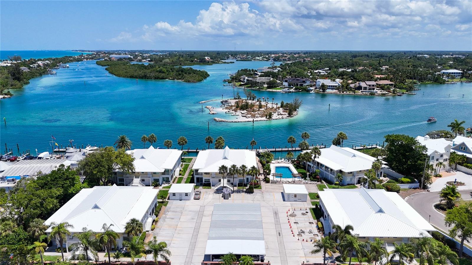 Just Reduced ! Sellers Super Motivated. Live the Island Life! The one you've been waiting for is now available with very motivated sellers . This totally turnkey ,2 bedroom . 2 bath condo is located in the Beautiful Bahia Vista Club On the North end of Venice Island. The sellers have many newly replaced items , New AC/ Heat System 2022, New Range 2018, New Vinyl Plank Flooring throughout interior of home 2019, New Water Heater 2022 and Installed 3 New sliding doors and Living room window in 2016. The location is without doubt the epitome of perfection. Just walk out your door to the pool , the dock, your boat or walk across the street and swim in the Gulf of Mexico. This unit has excellent rental history if you are considering it as an investor. Construction is almost completed there with just the carports being done this summer. All assessments are paid and Condo fees will be paid up for all of 2024.
