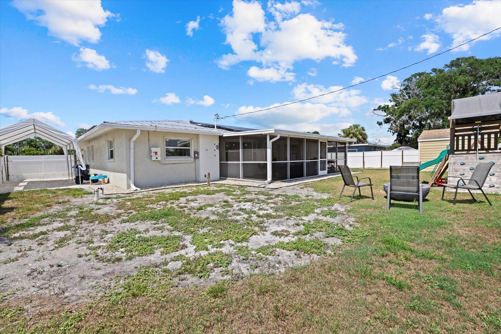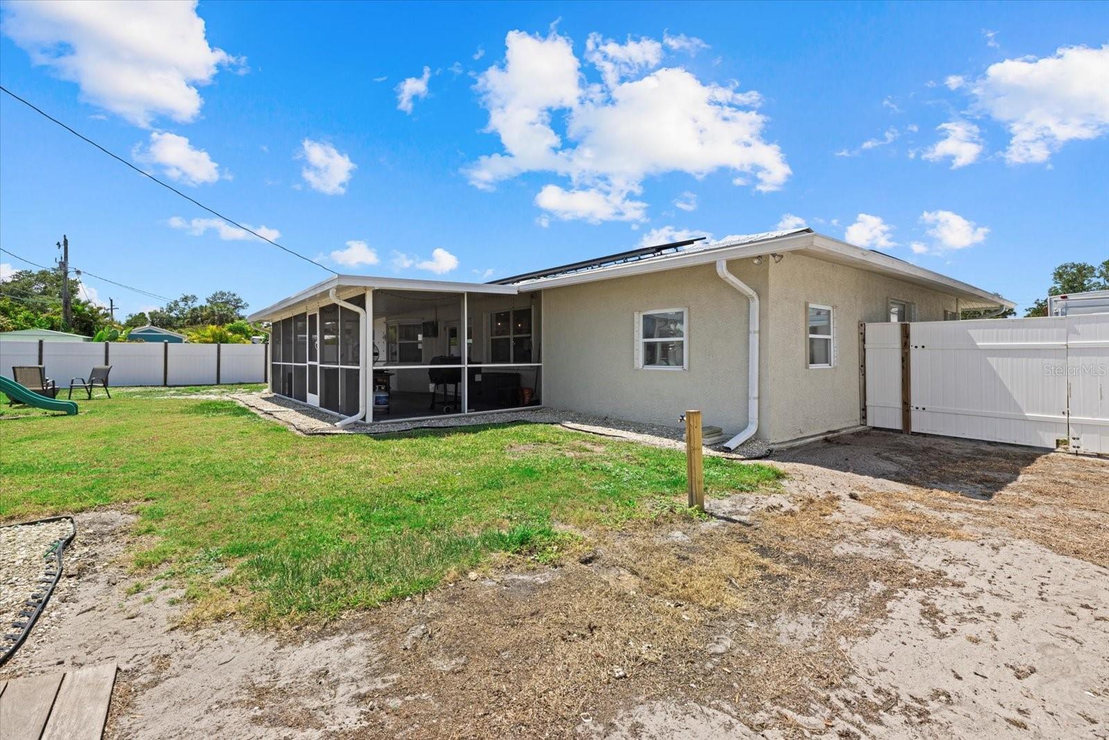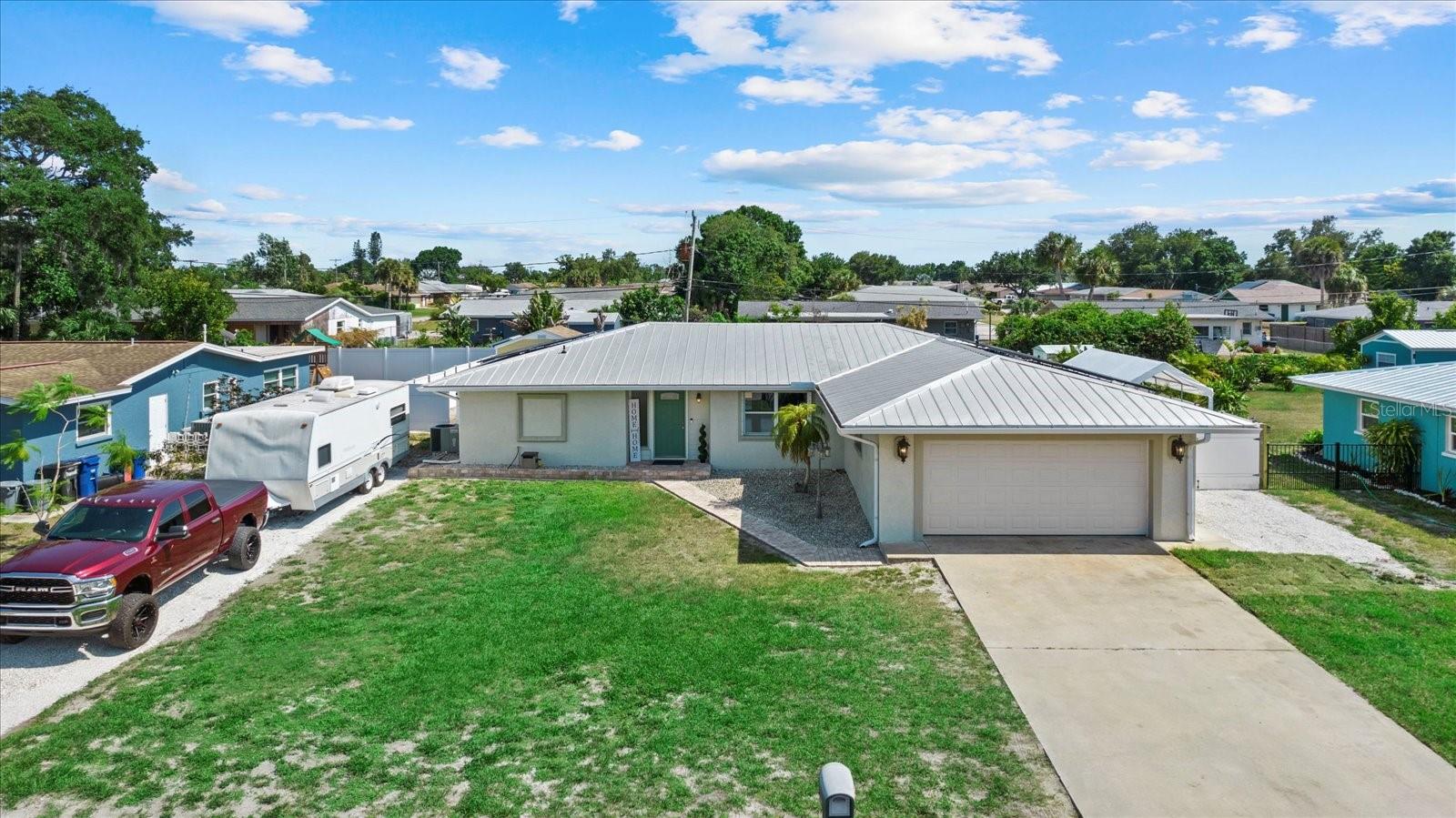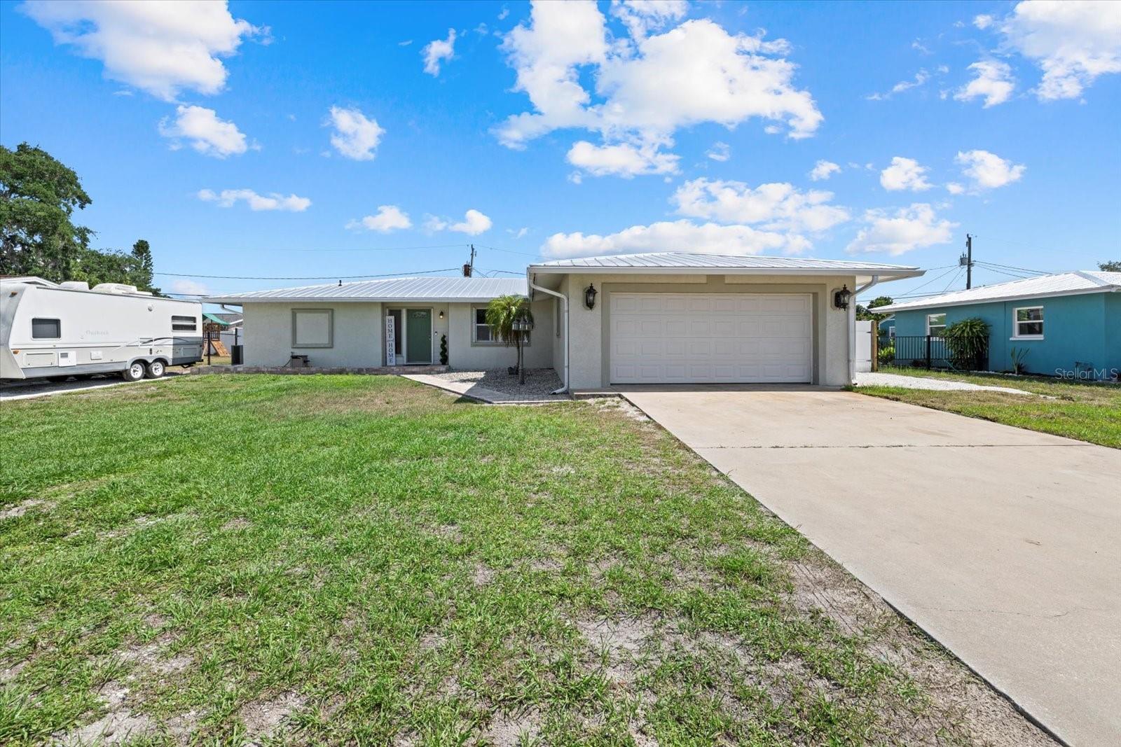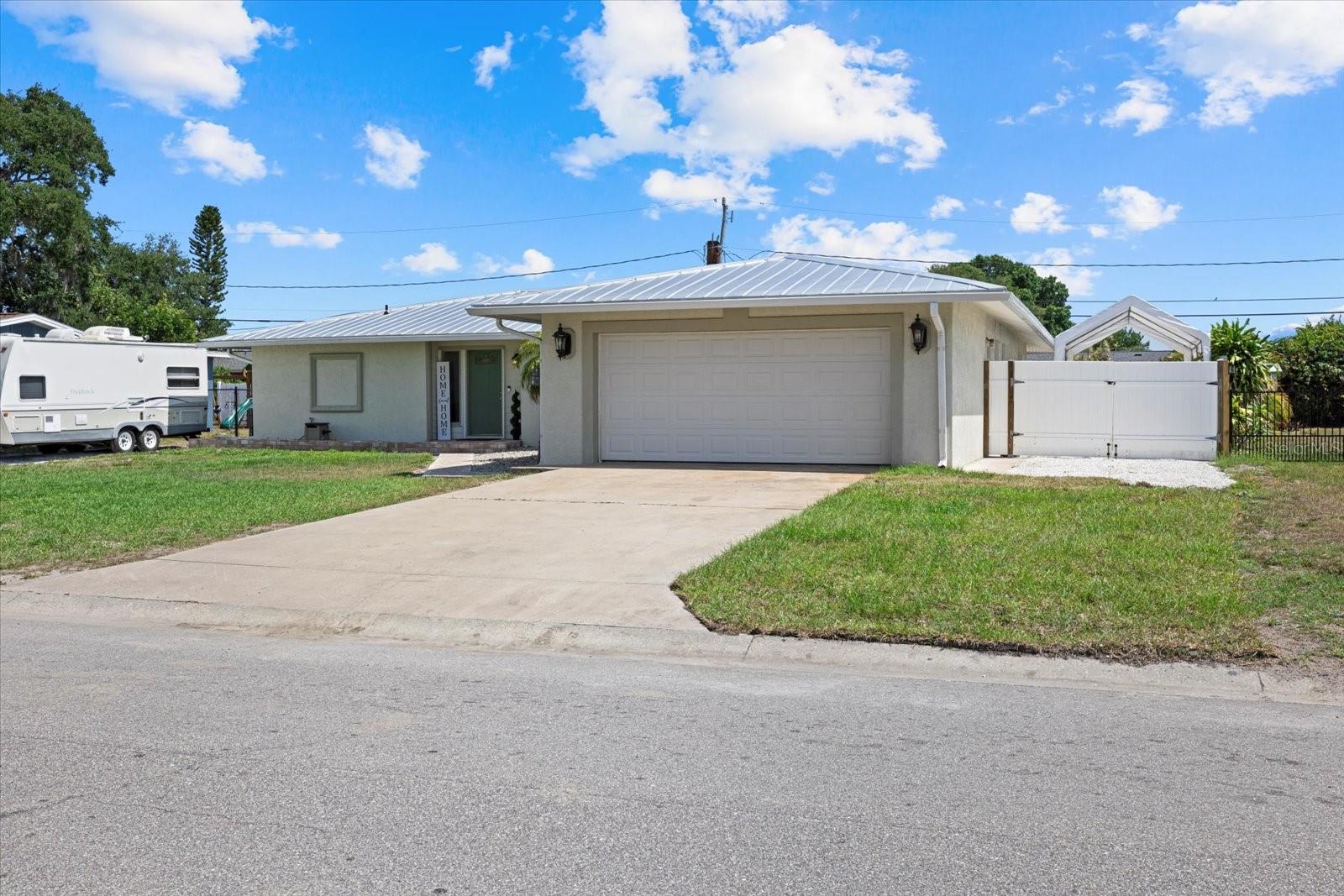 NEW METAL ROOF! 3 BEDROOM/ 2 BATHROOM! NO HOA! DOUBLE EXTERIOR DRIVEWAY! This beautifully updated 3-bedroom, 2-bathroom residence offers a perfect blend of comfort, style, and functionality. Nestled in the serene neighborhood of Venice East with no HOA, this property has numerous features designed to enhance your living experience. Inside, you'll find engineered hardwood and ceramic tile wood-look flooring throughout. The large living room and dining room combination provides an open and inviting space for gatherings and entertaining. The recently remodeled kitchen is a delight, featuring white shaker style cabinets, a stylish backsplash, a pantry, and a breakfast bar. Stainless steel appliances, just 2 years old, add a modern touch. Retreat to the spacious primary bedroom, complete with two closets, including a walk-in closet, for ample storage. The remodeled primary bathroom offers dual vanity sinks, a garden tub, and a beautifully tiled walk-in shower. The guest bathroom is equally impressive, with dual vanity sinks and a shower tub combination enhanced by a charming shiplap ceiling. Relax on the large screened-in lanai, perfect for enjoying Florida's beautiful weather. A shed with electricity provides extra storage or a workshop space, all within a fenced-in yard with vinyl fencing and reinforced wooden posts. The recently re-shelled side driveway offers convenient RV parking, complemented by wide gate openings on either side of the property. The brand-new metal roof and leased solar panels help keep electricity bills low and maintenance minimal. The 2-car garage features a new door, and the home is equipped with spray foam insulation in the attic, has been re-plumbed from the meter to the house, includes recessed lighting, and has a new meter can from FPL. This home is truly a gem, offering modern amenities and thoughtful upgrades throughout. Located 1 mile from Venice East Golf Club, 6.2 miles from Manasota Beach, 8 miles from the Island of Venice, 5 miles from Cool Today Park and Downtown Wellen Park, this home is a must see!