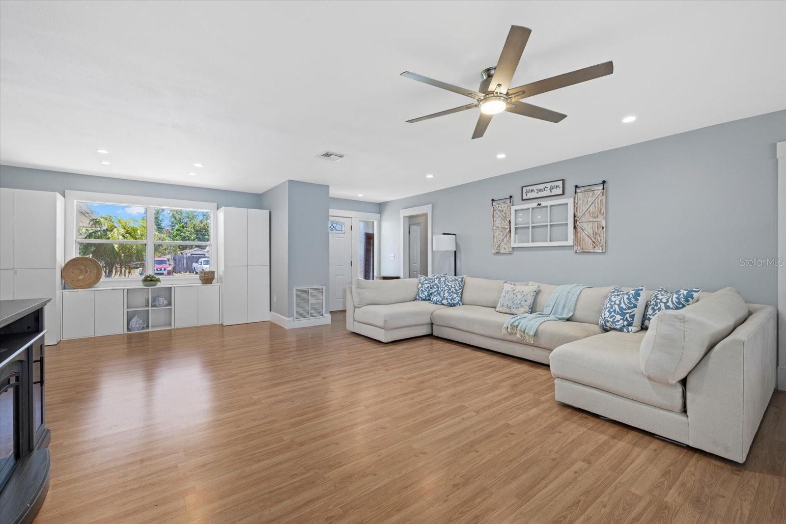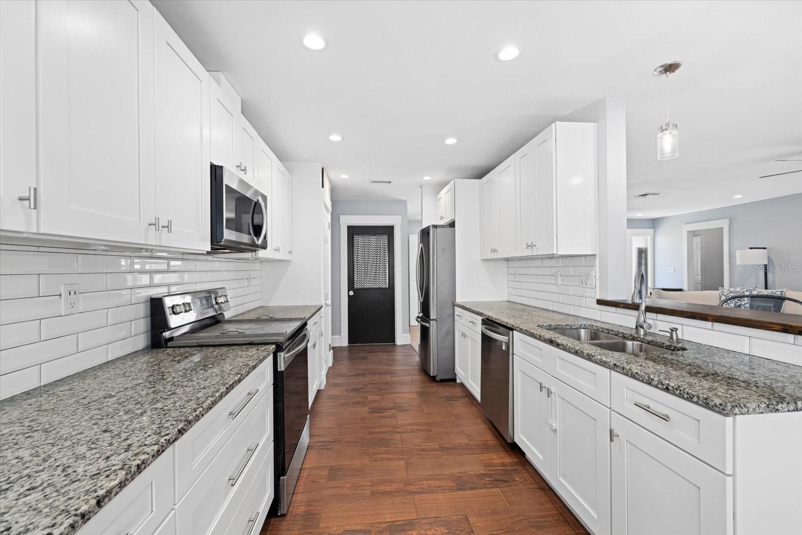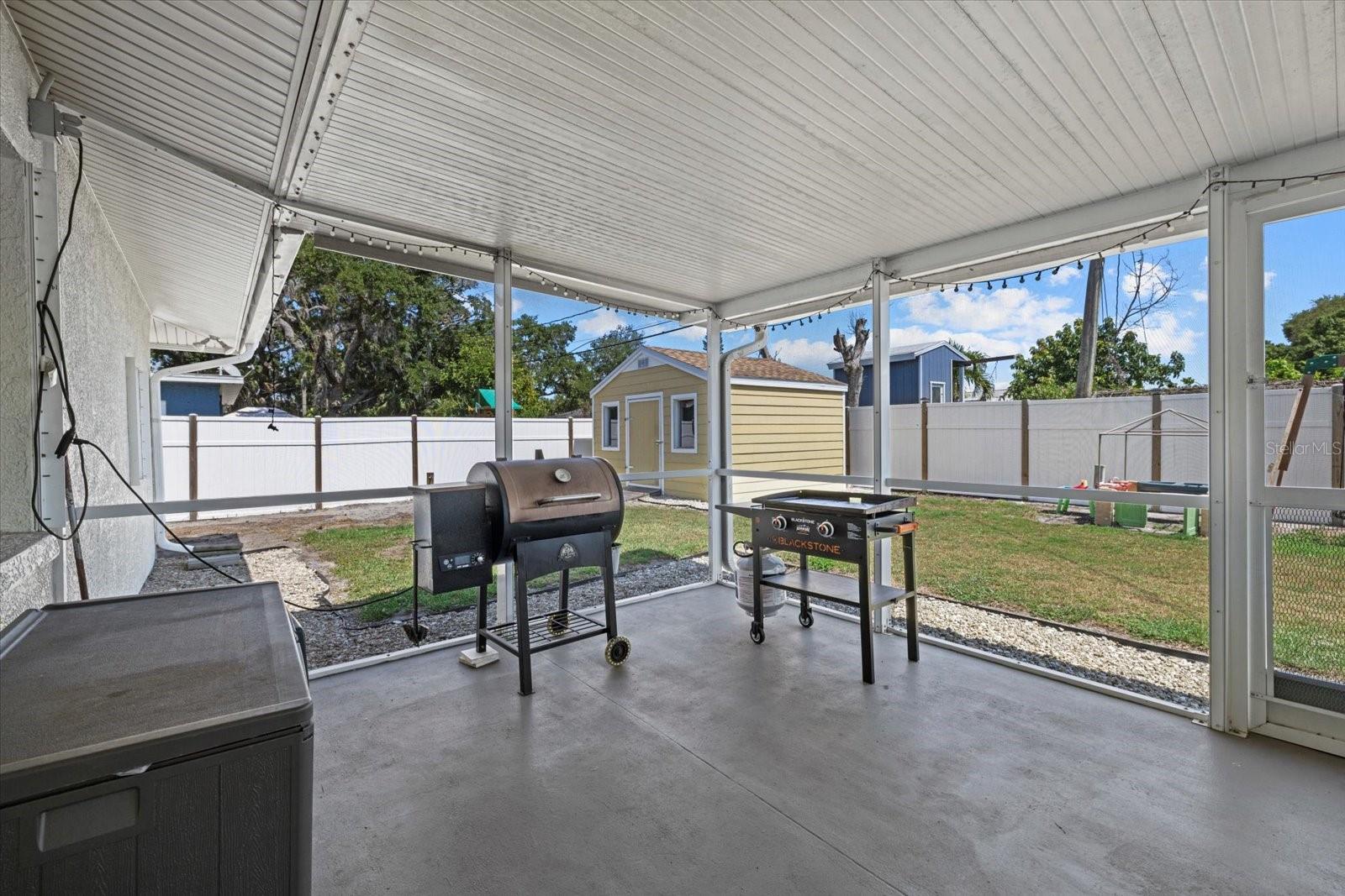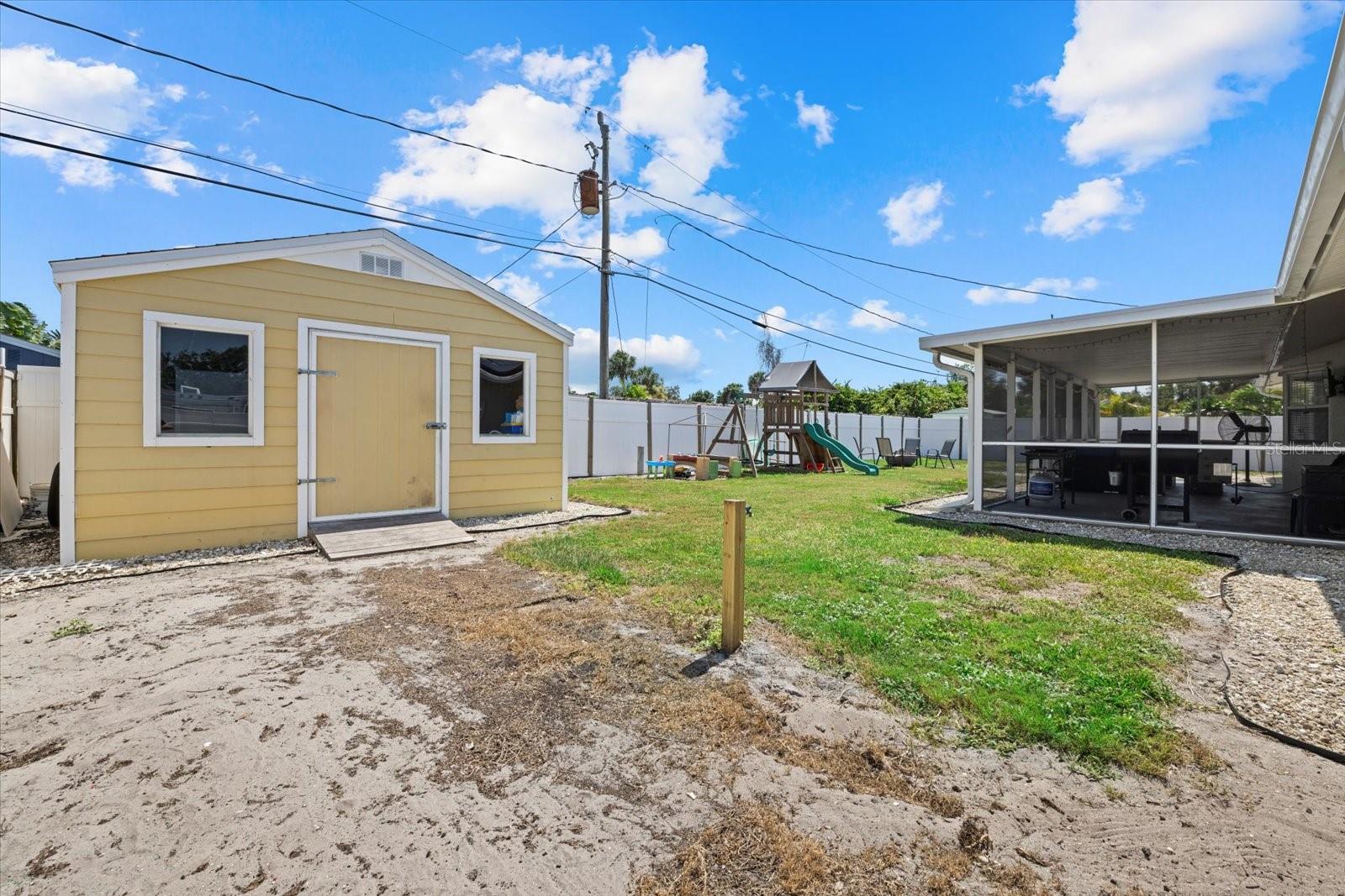 NEW METAL ROOF! 3 BEDROOM/ 2 BATHROOM! NO HOA! DOUBLE EXTERIOR DRIVEWAY! This beautifully updated 3-bedroom, 2-bathroom residence offers a perfect blend of comfort, style, and functionality. Nestled in the serene neighborhood of Venice East with no HOA, this property has numerous features designed to enhance your living experience. Inside, you'll find engineered hardwood and ceramic tile wood-look flooring throughout. The large living room and dining room combination provides an open and inviting space for gatherings and entertaining. The recently remodeled kitchen is a delight, featuring white shaker style cabinets, a stylish backsplash, a pantry, and a breakfast bar. Stainless steel appliances, just 2 years old, add a modern touch. Retreat to the spacious primary bedroom, complete with two closets, including a walk-in closet, for ample storage. The remodeled primary bathroom offers dual vanity sinks, a garden tub, and a beautifully tiled walk-in shower. The guest bathroom is equally impressive, with dual vanity sinks and a shower tub combination enhanced by a charming shiplap ceiling. Relax on the large screened-in lanai, perfect for enjoying Florida's beautiful weather. A shed with electricity provides extra storage or a workshop space, all within a fenced-in yard with vinyl fencing and reinforced wooden posts. The recently re-shelled side driveway offers convenient RV parking, complemented by wide gate openings on either side of the property. The brand-new metal roof and leased solar panels help keep electricity bills low and maintenance minimal. The 2-car garage features a new door, and the home is equipped with spray foam insulation in the attic, has been re-plumbed from the meter to the house, includes recessed lighting, and has a new meter can from FPL. This home is truly a gem, offering modern amenities and thoughtful upgrades throughout. Located 1 mile from Venice East Golf Club, 6.2 miles from Manasota Beach, 8 miles from the Island of Venice, 5 miles from Cool Today Park and Downtown Wellen Park, this home is a must see!