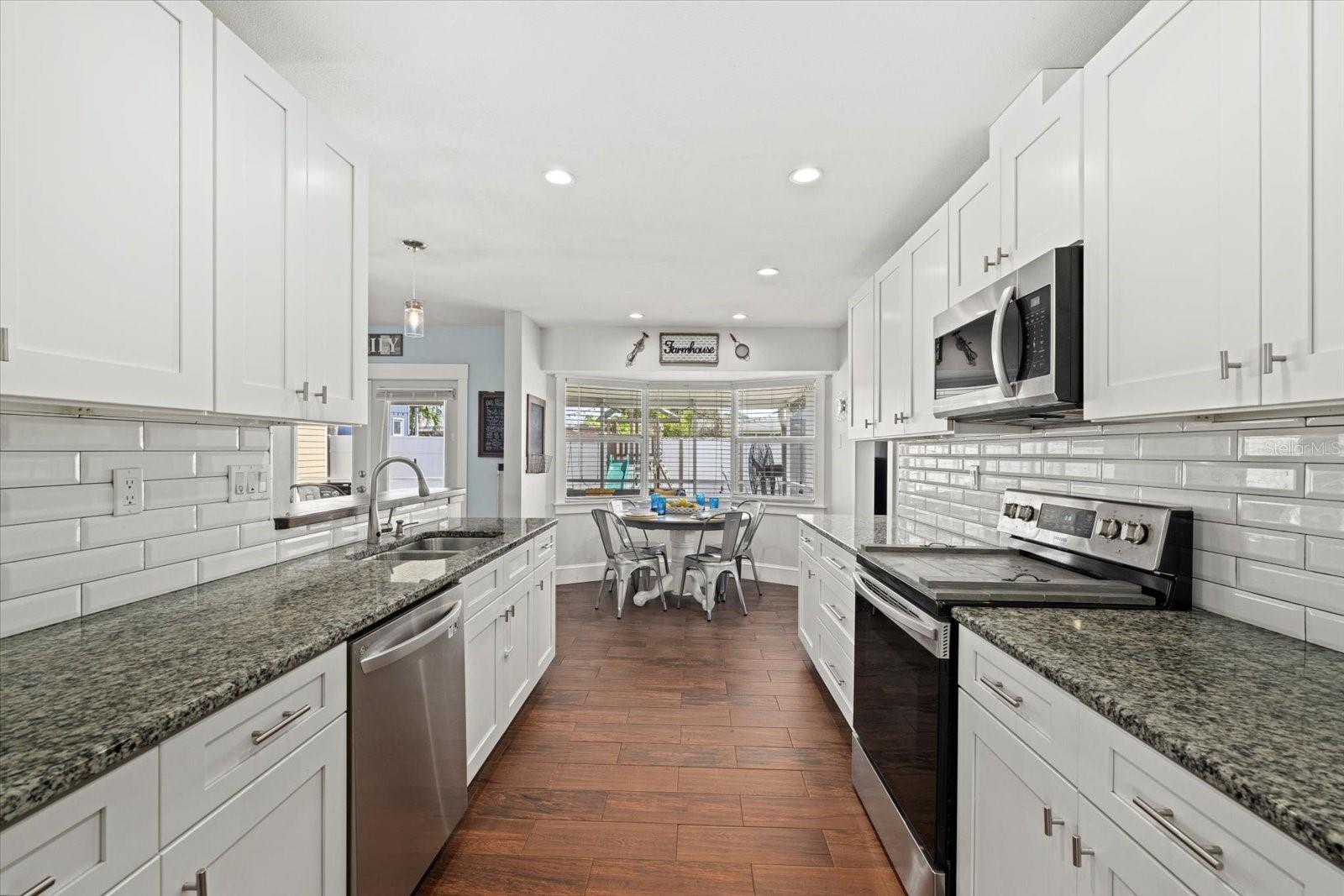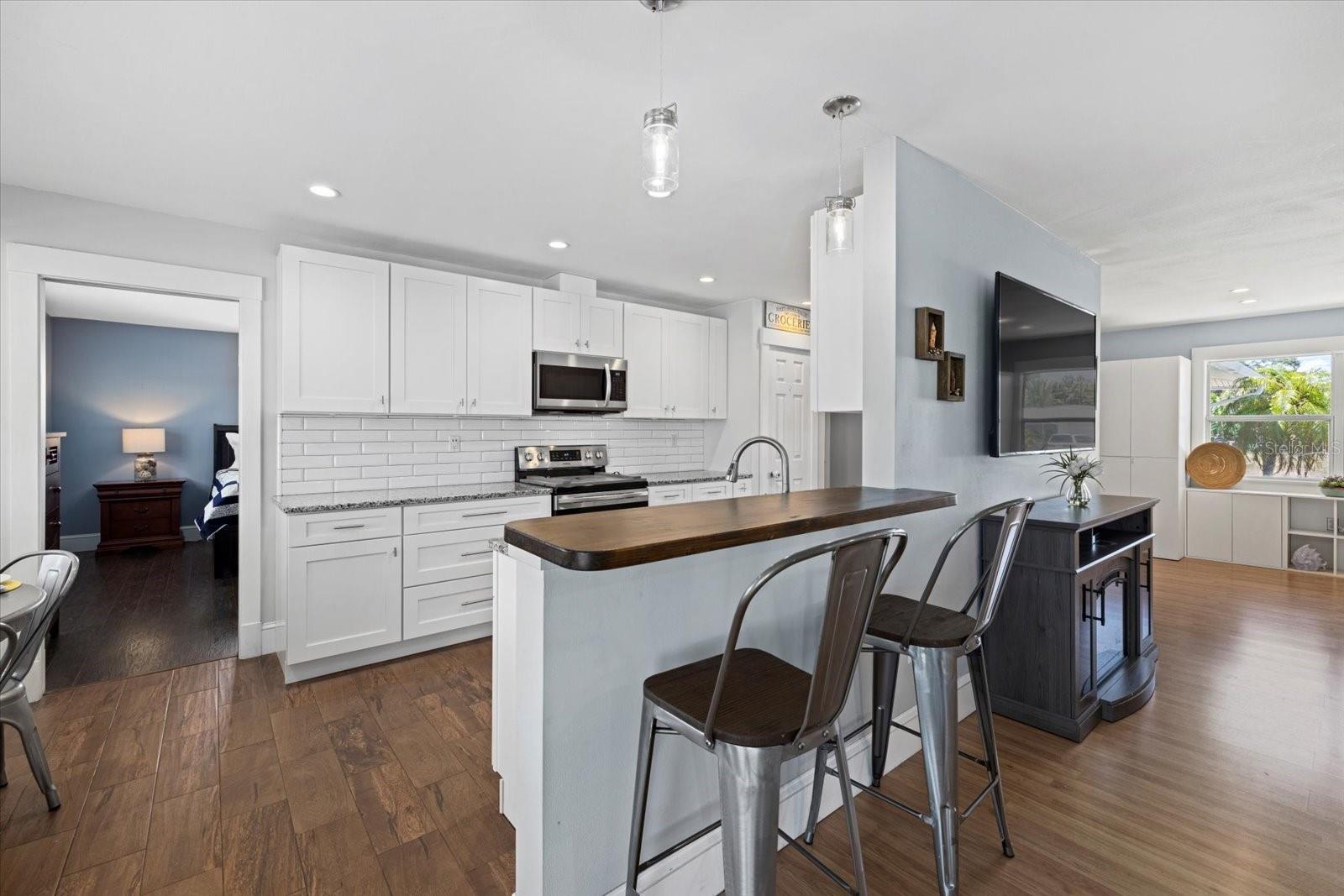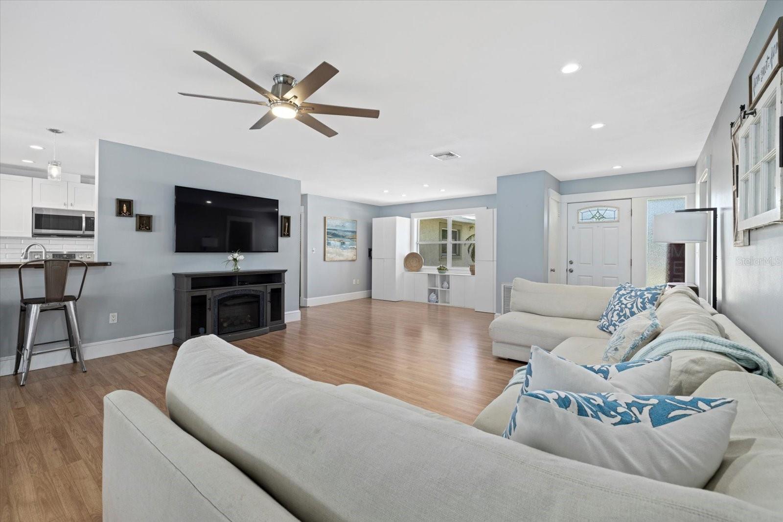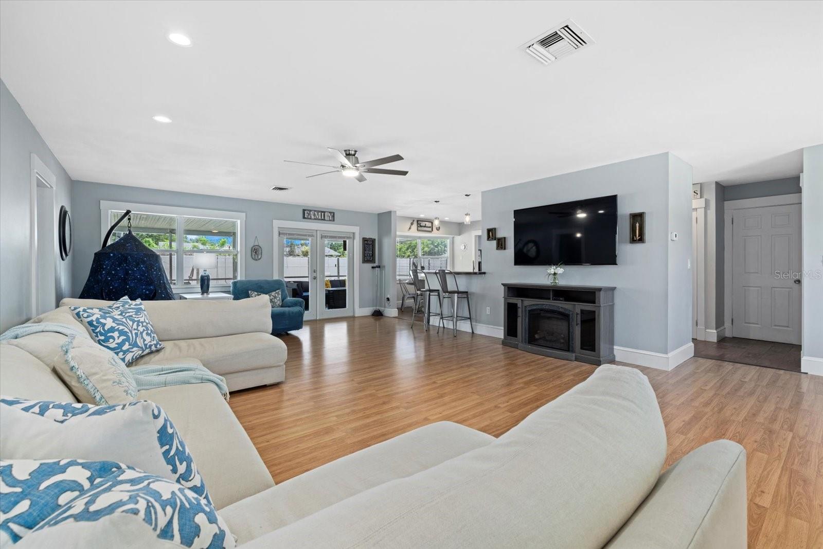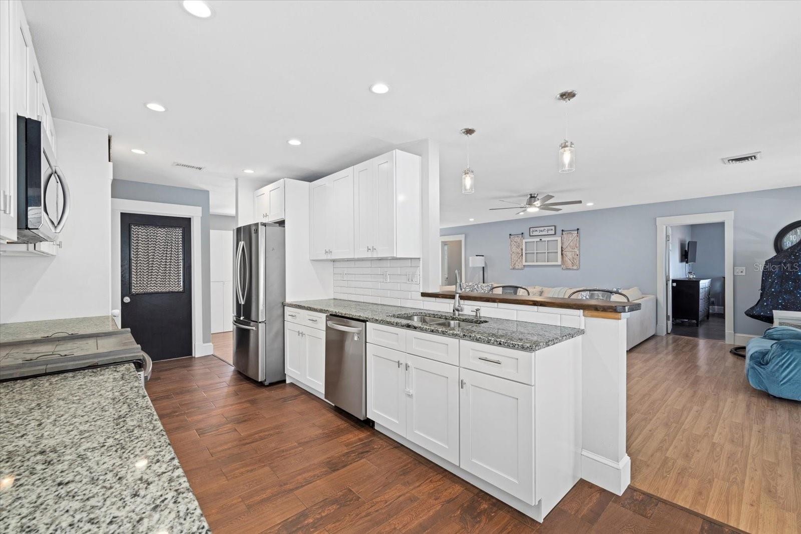 NEW METAL ROOF! 3 BEDROOM/ 2 BATHROOM! NO HOA! DOUBLE EXTERIOR DRIVEWAY! This beautifully updated 3-bedroom, 2-bathroom residence offers a perfect blend of comfort, style, and functionality. Nestled in the serene neighborhood of Venice East with no HOA, this property has numerous features designed to enhance your living experience. Inside, you'll find engineered hardwood and ceramic tile wood-look flooring throughout. The large living room and dining room combination provides an open and inviting space for gatherings and entertaining. The recently remodeled kitchen is a delight, featuring white shaker style cabinets, a stylish backsplash, a pantry, and a breakfast bar. Stainless steel appliances, just 2 years old, add a modern touch. Retreat to the spacious primary bedroom, complete with two closets, including a walk-in closet, for ample storage. The remodeled primary bathroom offers dual vanity sinks, a garden tub, and a beautifully tiled walk-in shower. The guest bathroom is equally impressive, with dual vanity sinks and a shower tub combination enhanced by a charming shiplap ceiling. Relax on the large screened-in lanai, perfect for enjoying Florida's beautiful weather. A shed with electricity provides extra storage or a workshop space, all within a fenced-in yard with vinyl fencing and reinforced wooden posts. The recently re-shelled side driveway offers convenient RV parking, complemented by wide gate openings on either side of the property. The brand-new metal roof and leased solar panels help keep electricity bills low and maintenance minimal. The 2-car garage features a new door, and the home is equipped with spray foam insulation in the attic, has been re-plumbed from the meter to the house, includes recessed lighting, and has a new meter can from FPL. This home is truly a gem, offering modern amenities and thoughtful upgrades throughout. Located 1 mile from Venice East Golf Club, 6.2 miles from Manasota Beach, 8 miles from the Island of Venice, 5 miles from Cool Today Park and Downtown Wellen Park, this home is a must see!