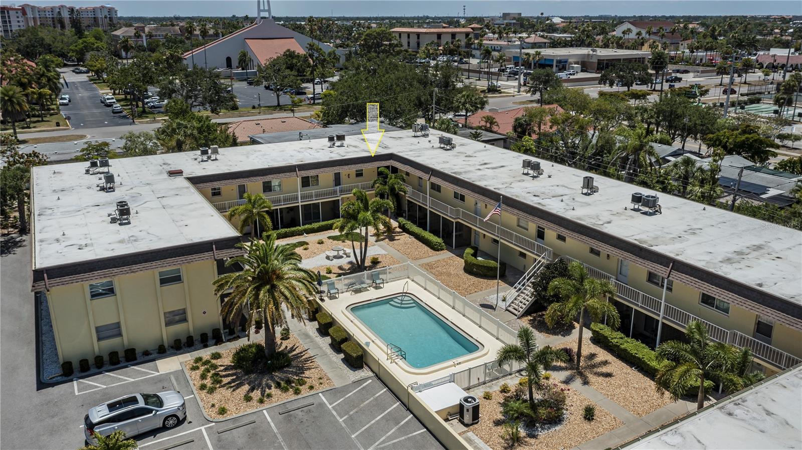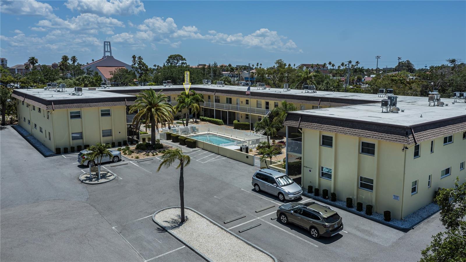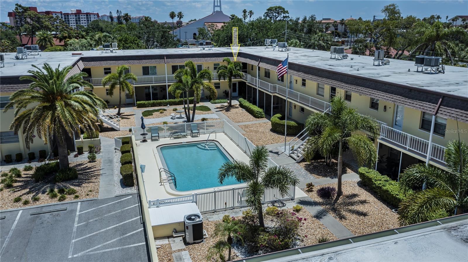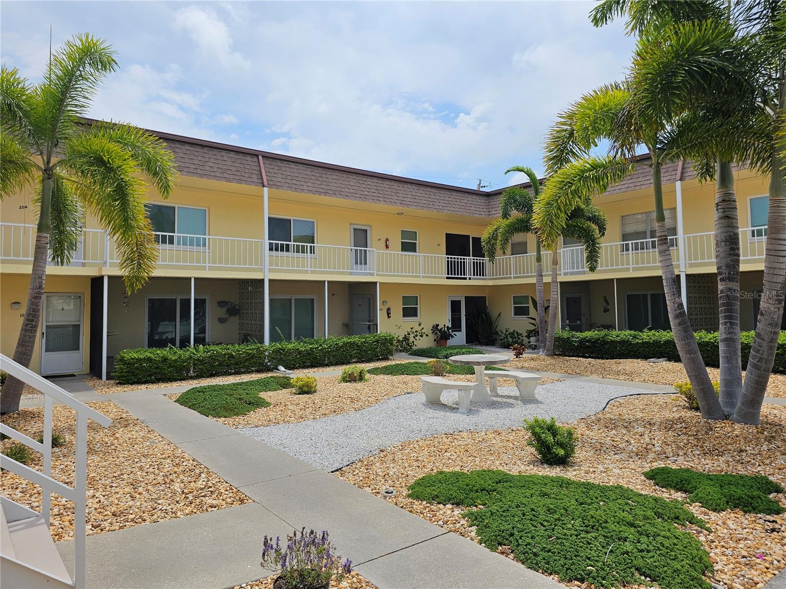 ISLAND OF VENICE LOCATION in the heart of it all, 2 blocks to downtown Venice and tennis courts, about 6 blocks to Venice Beach, 2 bedroom, 2 bath condominium across from Prentiss French Park, 2nd floor corner unit with screen porch entry, no pets allowed, community swimming pool is heated, plenty of parking, ceramic tile floors set in the diagonal pattern, coin laundry and storage on the ground floor, an area of high ground on the island of Venice with very good drainage, enjoy this pied-a-terre in the heart of Venice, a good value for this location! the owners have completed some recent updates:kitchen counter tops, kitchen backsplash, replaced dishwasher, replaced hot water heater, replaced disposal, replaced toilet in hall bath room, replaced door knobs with lever style handles.