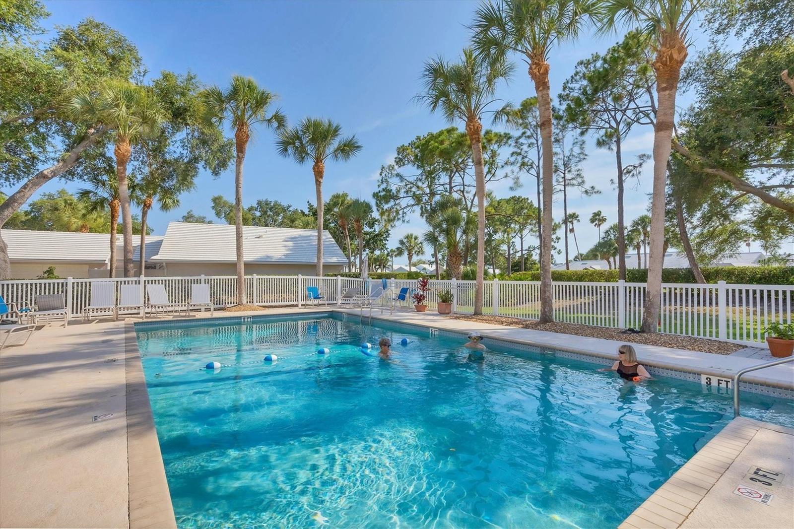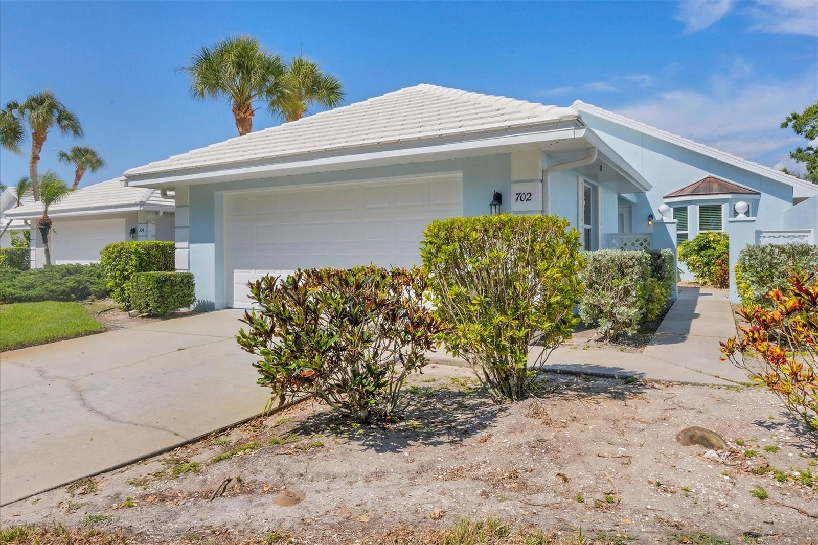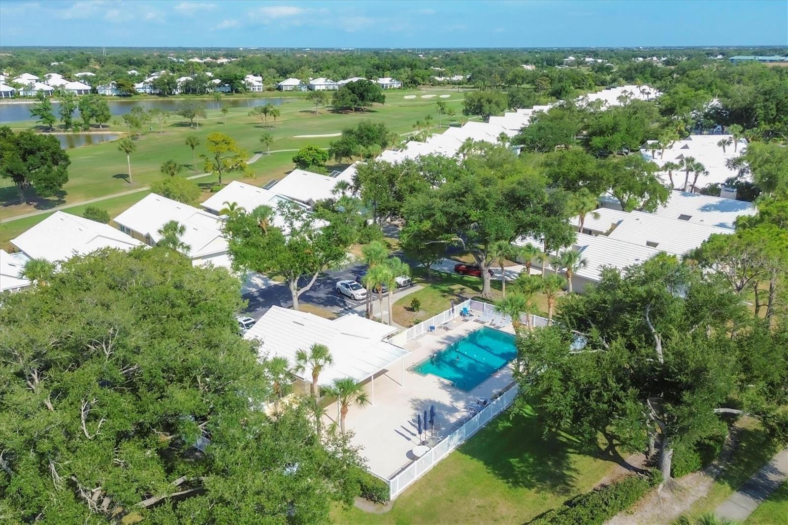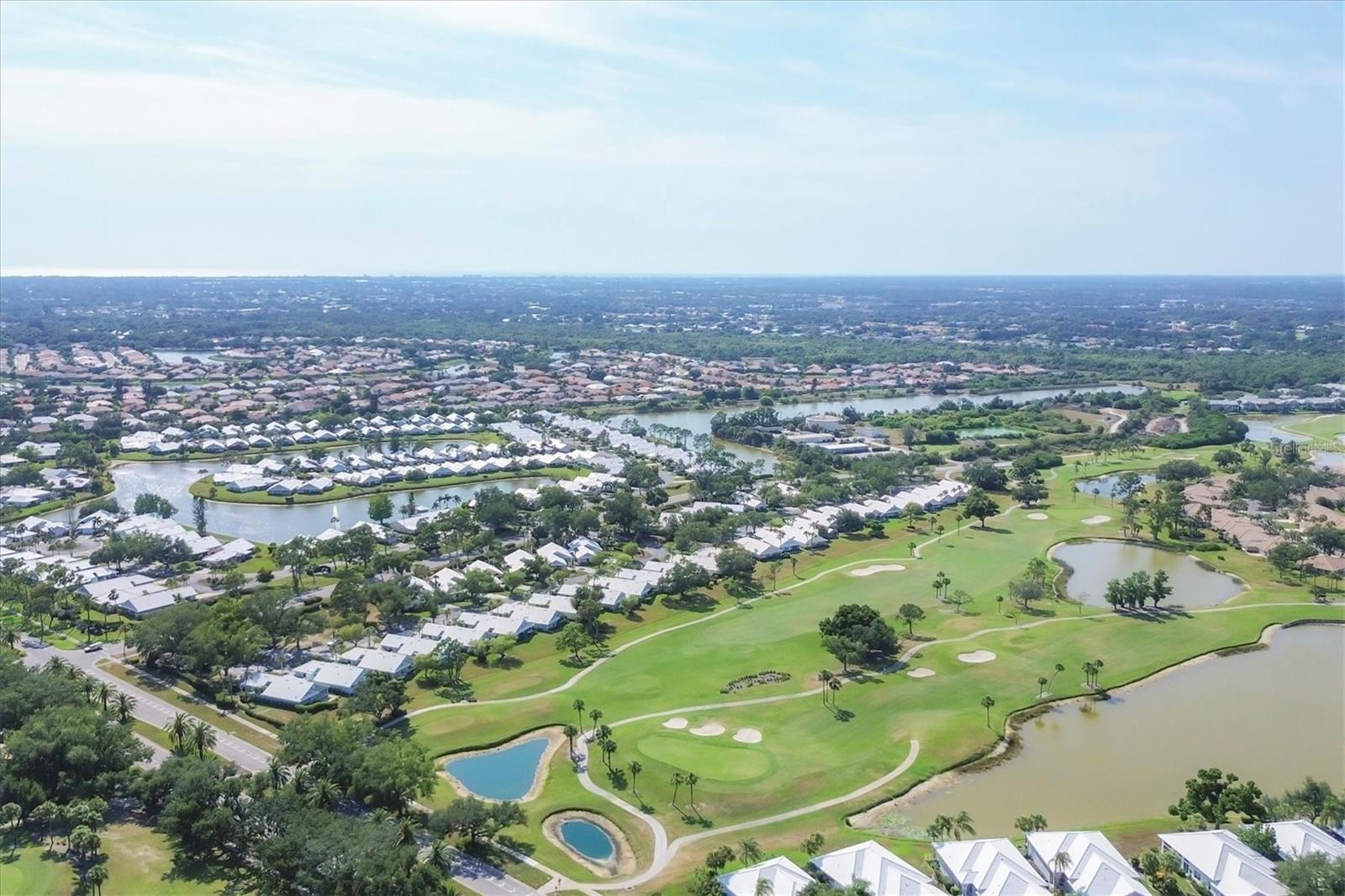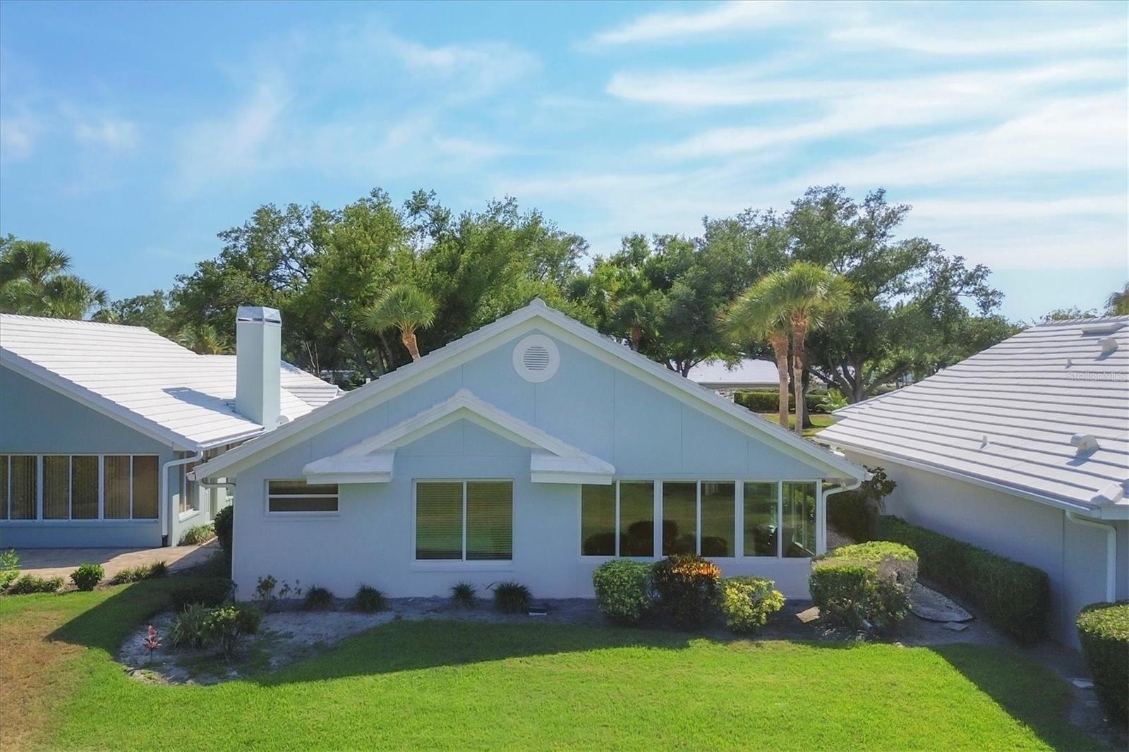Wake up to sunrise across the verdant fairway from the 2 bedroom/2 bath patio home. Enter into a great room that opens to the Florida room and the view beyond. An eat-in kitchen will delight the chef in the family. The desirable split bedroom plan provides privacy for all. An attached two car garage house the laundry area, storage and a place to keep you vehicle out of the sun. The exterior has a fresh coat of paint. This home is ready for a new owner to make it their own. This 40 unit community has its own pool and clubhouse where you can relax and socialize. Fee includes all exterior building and grounds maintenance, insurance on the building, pest control and basic cable. NO CDD FEES. Membership in the private golf & country club is optional.