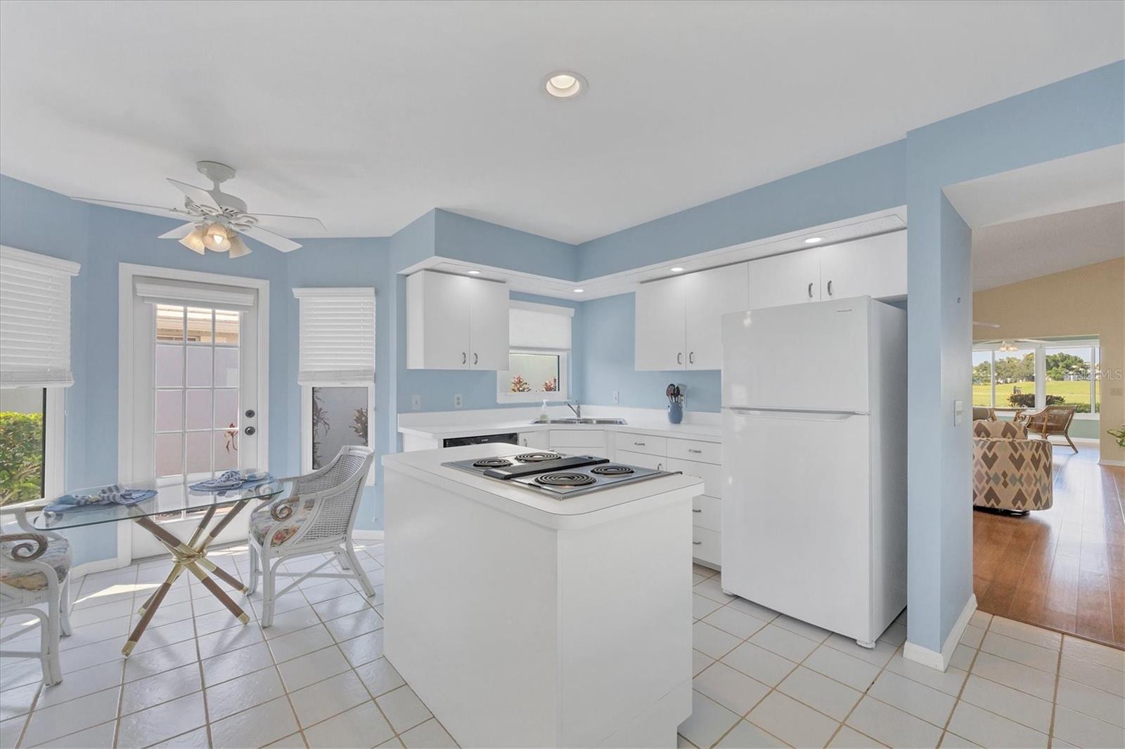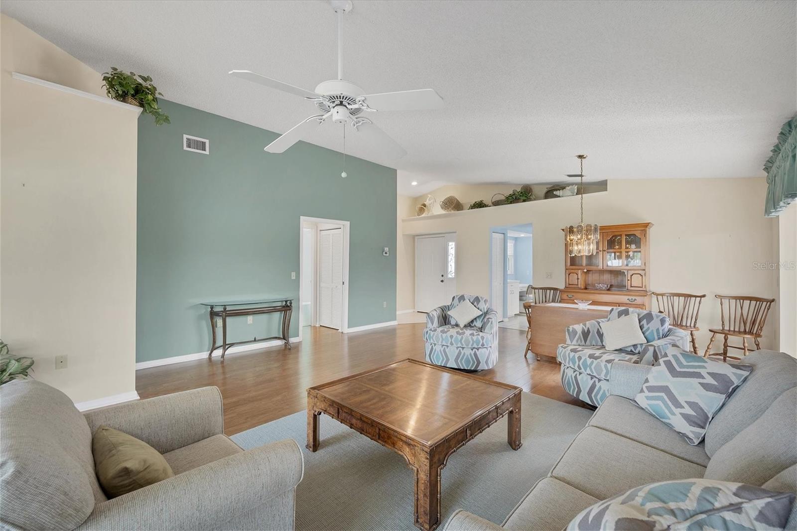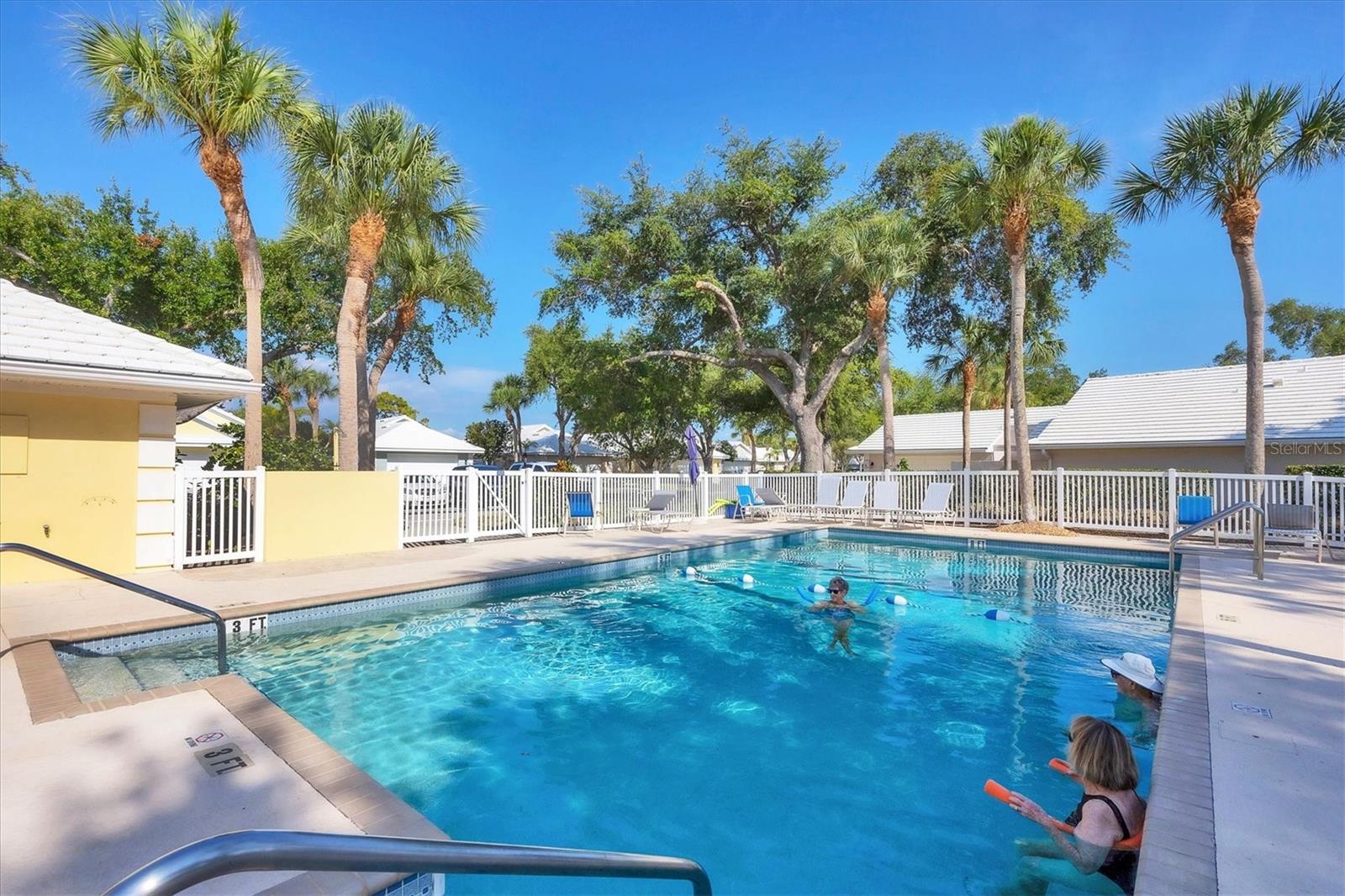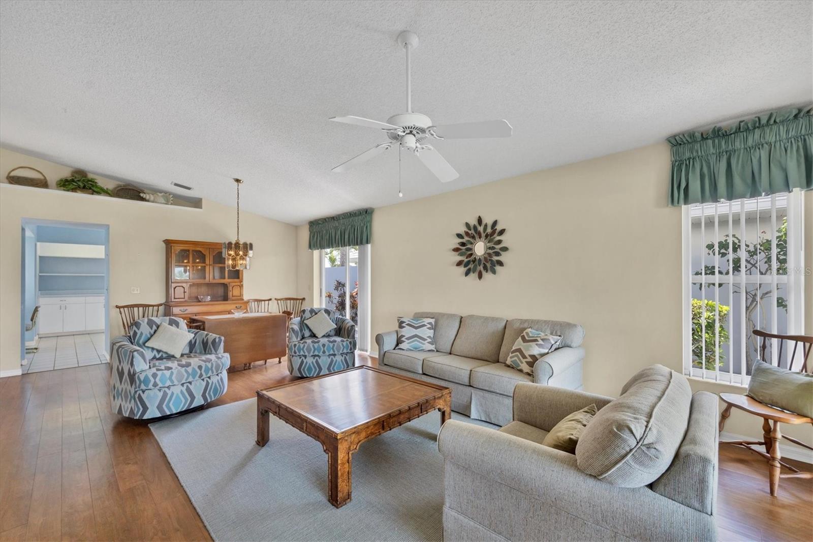 Wake up to sunrise across the verdant fairway from the 2 bedroom/2 bath patio home. Enter into a great room that opens to the Florida room and the view beyond. An eat-in kitchen will delight the chef in the family. The desirable split bedroom plan provides privacy for all. An attached two car garage house the laundry area, storage and a place to keep you vehicle out of the sun. The exterior has a fresh coat of paint. This home is ready for a new owner to make it their own. This 40 unit community has its own pool and clubhouse where you can relax and socialize. Fee includes all exterior building and grounds maintenance, insurance on the building, pest control and basic cable. NO CDD FEES. Membership in the private golf & country club is optional.
