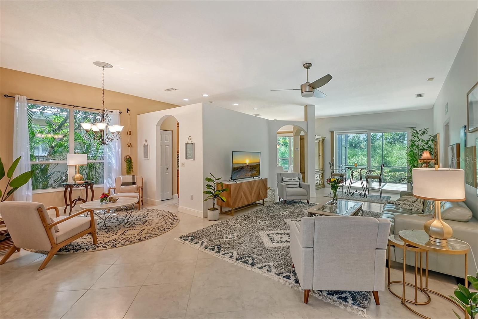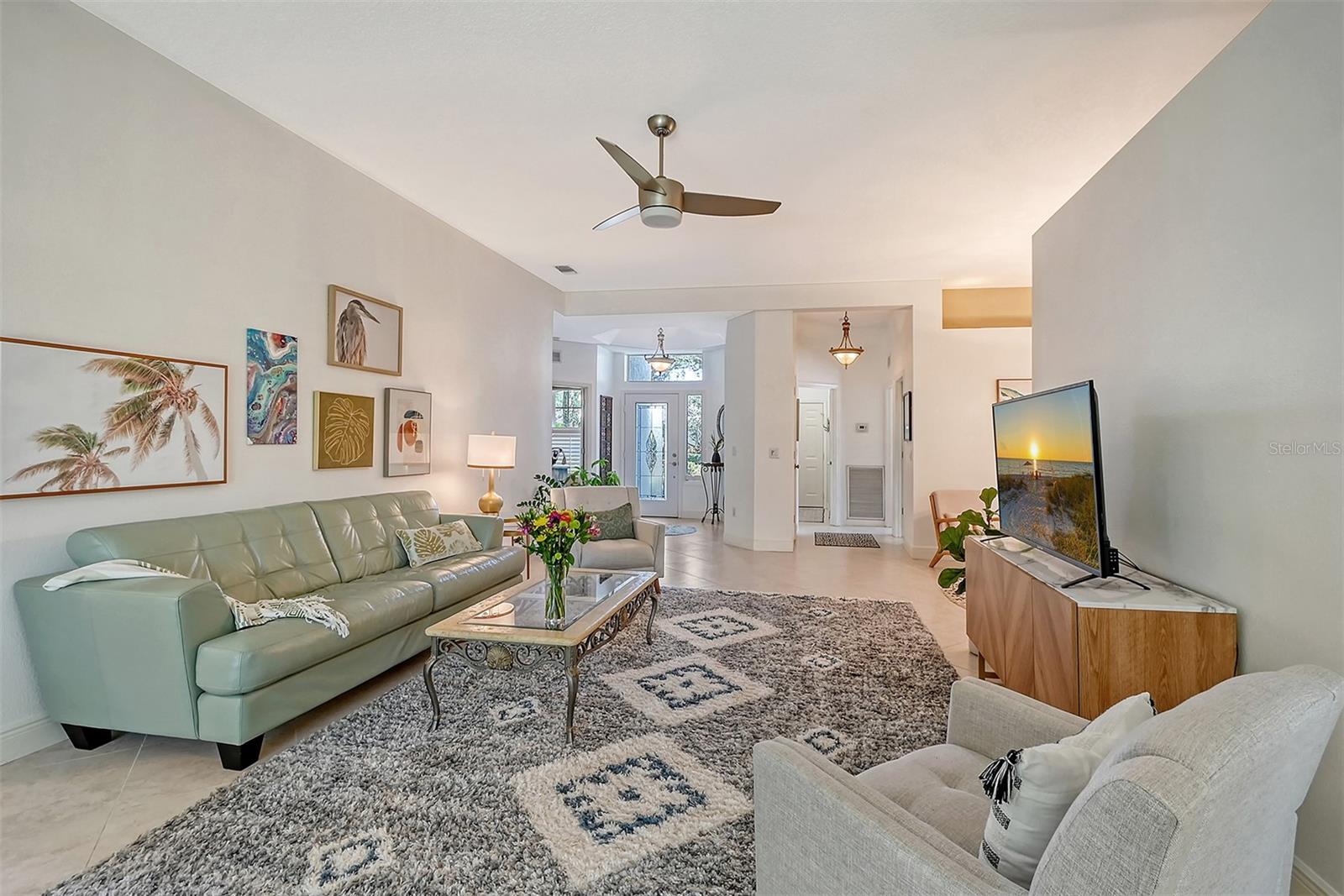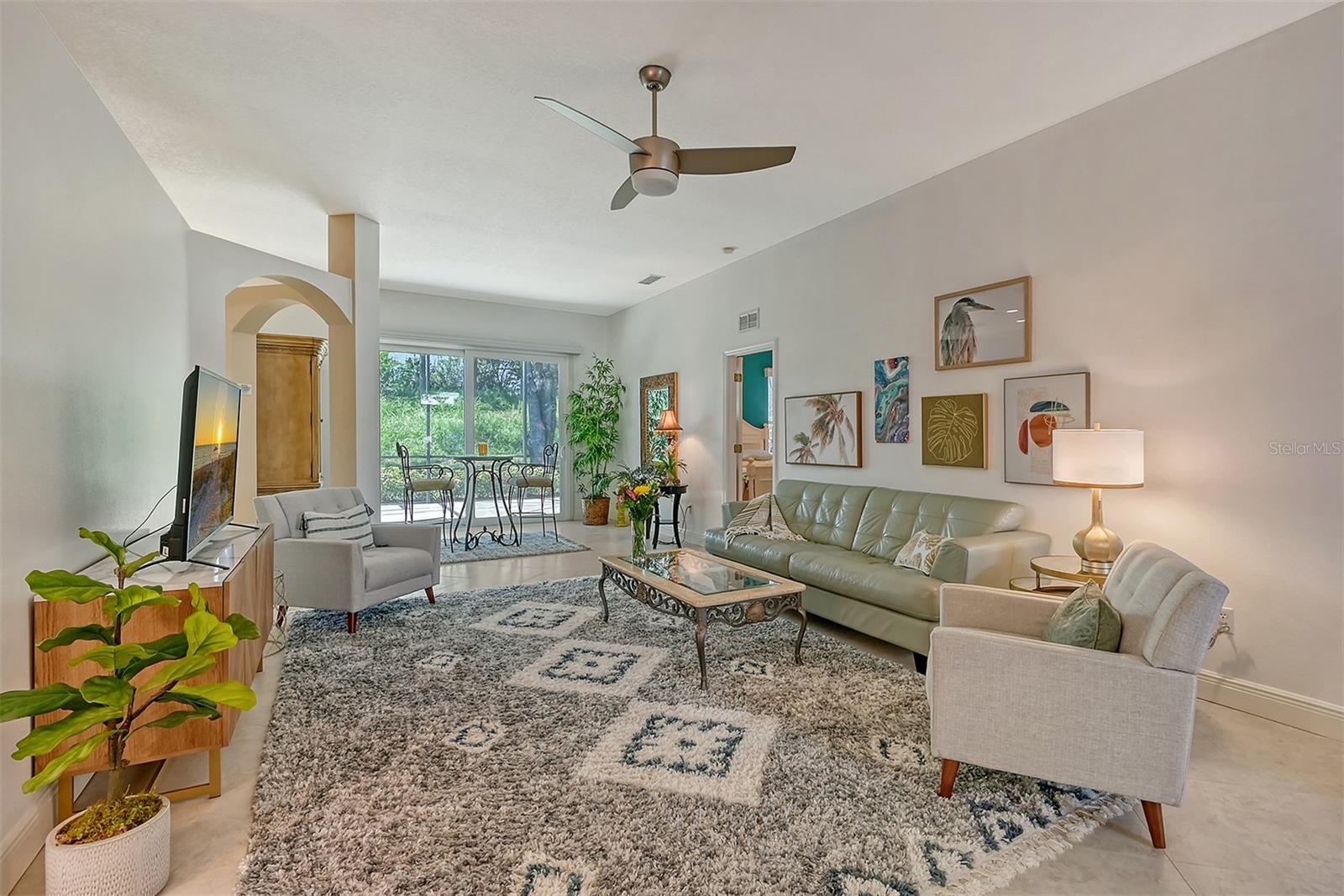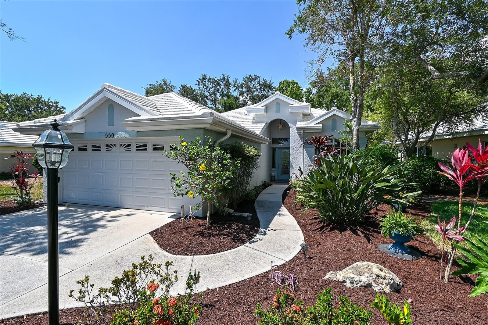 Welcome to this charming, tastefully decorated, 3 bedroom 2 bath home that is being offered TURNKEY. It is located on a quiet cul-de-sac in desirable Venice Golf and Country Club (VGCC). If you are looking for a second home, look no farther! Downsizing? It makes a wonderful primary residence too! After entering VGCC through the gatehouse you will appreciate the canopy of oak trees, the 26 ponds, the 13 natural preserves, and the curved tree lined streets. Arrive at 550 Fallbrook, located in the maintained neighborhood of Wentworth which provides lawn mowing and fertilization, annual mulch, tree and shrub trimming, lawn irrigation, roof cleaning and a private neighborhood pool. Enter into the foyer which opens into a spacious living room and dining room that the current owners are using as a reading area. A secondary bedroom which can also be used as a Den is off the floyer on the left. The large lanai with travertine floor and IMPACT HURRICANE sliding glass doors from the living room provides additional living space for entertaiing friends or just quietly enjoying the outdoors. The kitchen has granite countertops, attractive cabinets with lots of storage space, stainless steel appliances including a GAS STOVE. The cozy dinette has 6 IMPACT HURRICANE windows bringing the sunshine in and provides a view of the private back yard. The split floor plan affords privacy when entertaining overnight guests. The primary bedroom has a walk-in closet and private en suite bath with separate his and her vanities. This home offers plenty of space to entertain friends and family. The ROOF was replaced in 2016 and the home has been re-piped. A buried propane tank supports both the gas stove and the TANKLESS HOT WATER HEATER. VGCC is a member owned community with 587 homes and sound financials. MEMBERSHIP IS MANDATORY. The members experience a very active social life. Enjoy both casual and formal dining in the newly renovated Clubhouse. There are a wide variety of activities in addition to golf including tennis, bocce, bridge, mah-jongg, the ''U'' with its educational and social events, wine club, special club events, and much MORE. Pickleball is also available. Take one of the many classes or work out in the newly renovated Wellness Center with state-of-the-art equipment. VGCC is an Audubon Geo-Certified community and is just 5 miles from the historic town of Venice, several beaches, and just 20 miles south of Sarasota. The SELLER IS OFFERING A $10,000 CREDIT AT CLOSING TOWARD THE ONE-TIME ENTRY FEE FOR CLUB MEMBERSHIP.