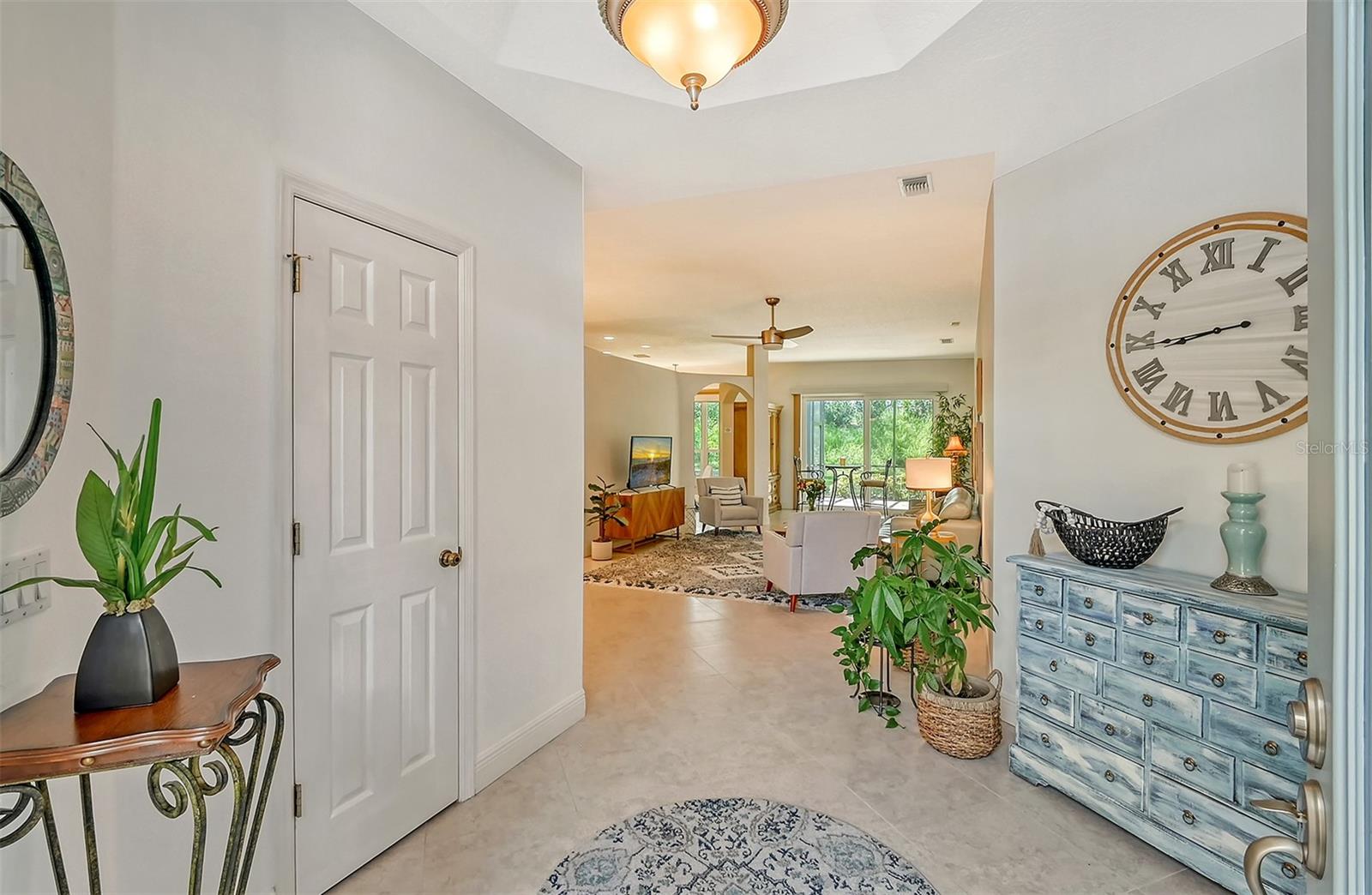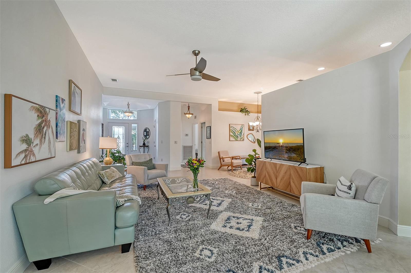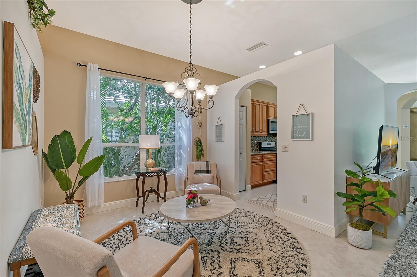 Welcome to this charming, tastefully decorated, 3 bedroom 2 bath home that is being offered TURNKEY. It is located on a quiet cul-de-sac in desirable Venice Golf and Country Club (VGCC). If you are looking for a second home, look no farther! Downsizing? It makes a wonderful primary residence too! After entering VGCC through the gatehouse you will appreciate the canopy of oak trees, the 26 ponds, the 13 natural preserves, and the curved tree lined streets. Arrive at 550 Fallbrook, located in the maintained neighborhood of Wentworth which provides lawn mowing and fertilization, annual mulch, tree and shrub trimming, lawn irrigation, roof cleaning and a private neighborhood pool. Enter into the foyer which opens into a spacious living room and dining room that the current owners are using as a reading area. A secondary bedroom which can also be used as a Den is off the floyer on the left. The large lanai with travertine floor and IMPACT HURRICANE sliding glass doors from the living room provides additional living space for entertaiing friends or just quietly enjoying the outdoors. The kitchen has granite countertops, attractive cabinets with lots of storage space, stainless steel appliances including a GAS STOVE. The cozy dinette has 6 IMPACT HURRICANE windows bringing the sunshine in and provides a view of the private back yard. The split floor plan affords privacy when entertaining overnight guests. The primary bedroom has a walk-in closet and private en suite bath with separate his and her vanities. This home offers plenty of space to entertain friends and family. The ROOF was replaced in 2016 and the home has been re-piped. A buried propane tank supports both the gas stove and the TANKLESS HOT WATER HEATER. VGCC is a member owned community with 587 homes and sound financials. MEMBERSHIP IS MANDATORY. The members experience a very active social life. Enjoy both casual and formal dining in the newly renovated Clubhouse. There are a wide variety of activities in addition to golf including tennis, bocce, bridge, mah-jongg, the ''U'' with its educational and social events, wine club, special club events, and much MORE. Pickleball is also available. Take one of the many classes or work out in the newly renovated Wellness Center with state-of-the-art equipment. VGCC is an Audubon Geo-Certified community and is just 5 miles from the historic town of Venice, several beaches, and just 20 miles south of Sarasota. The SELLER IS OFFERING A $10,000 CREDIT AT CLOSING TOWARD THE ONE-TIME ENTRY FEE FOR CLUB MEMBERSHIP.
