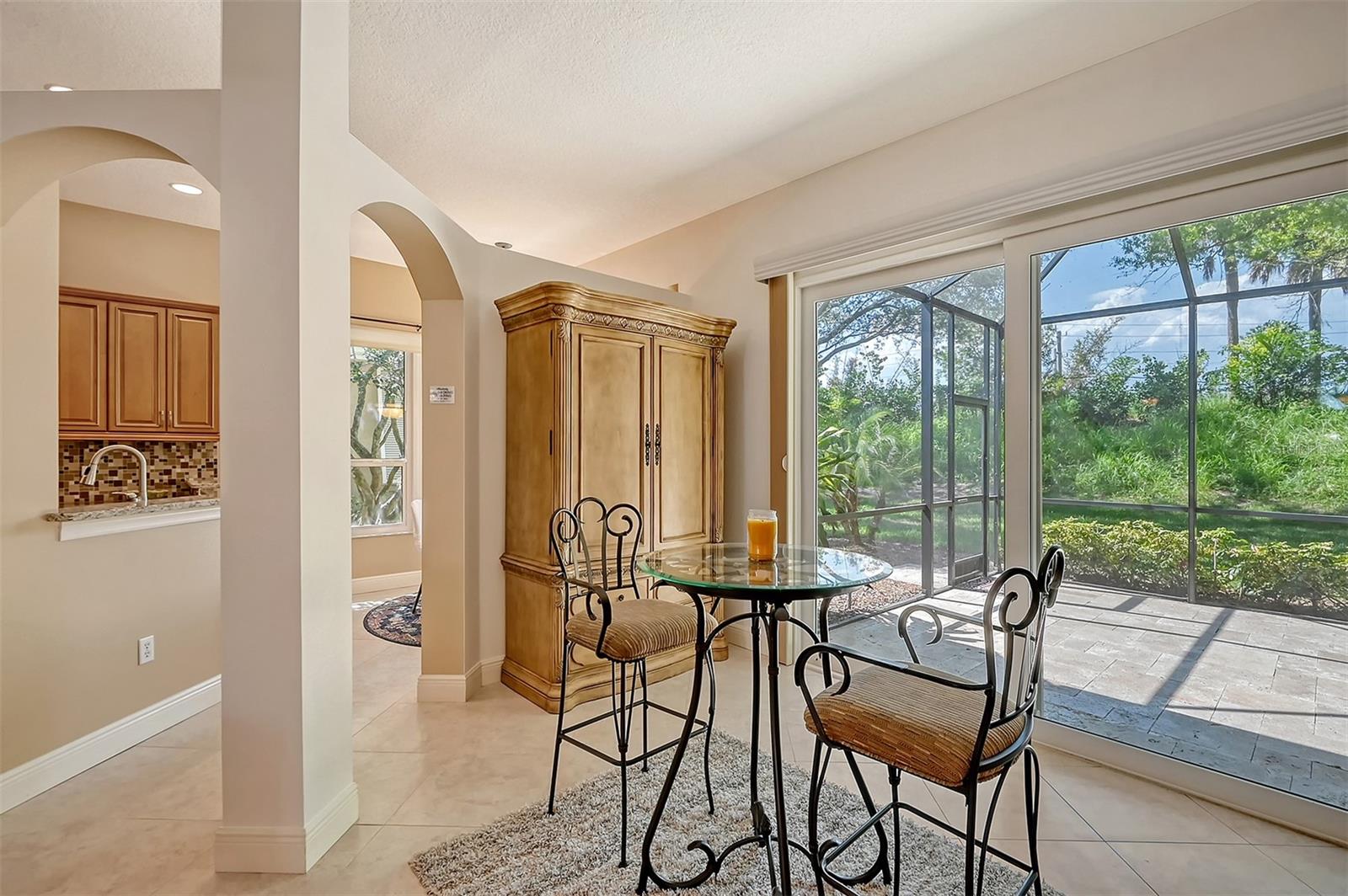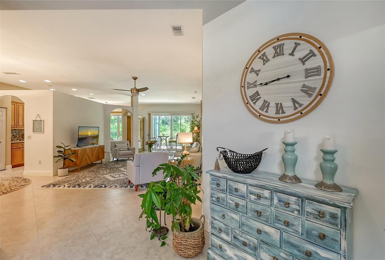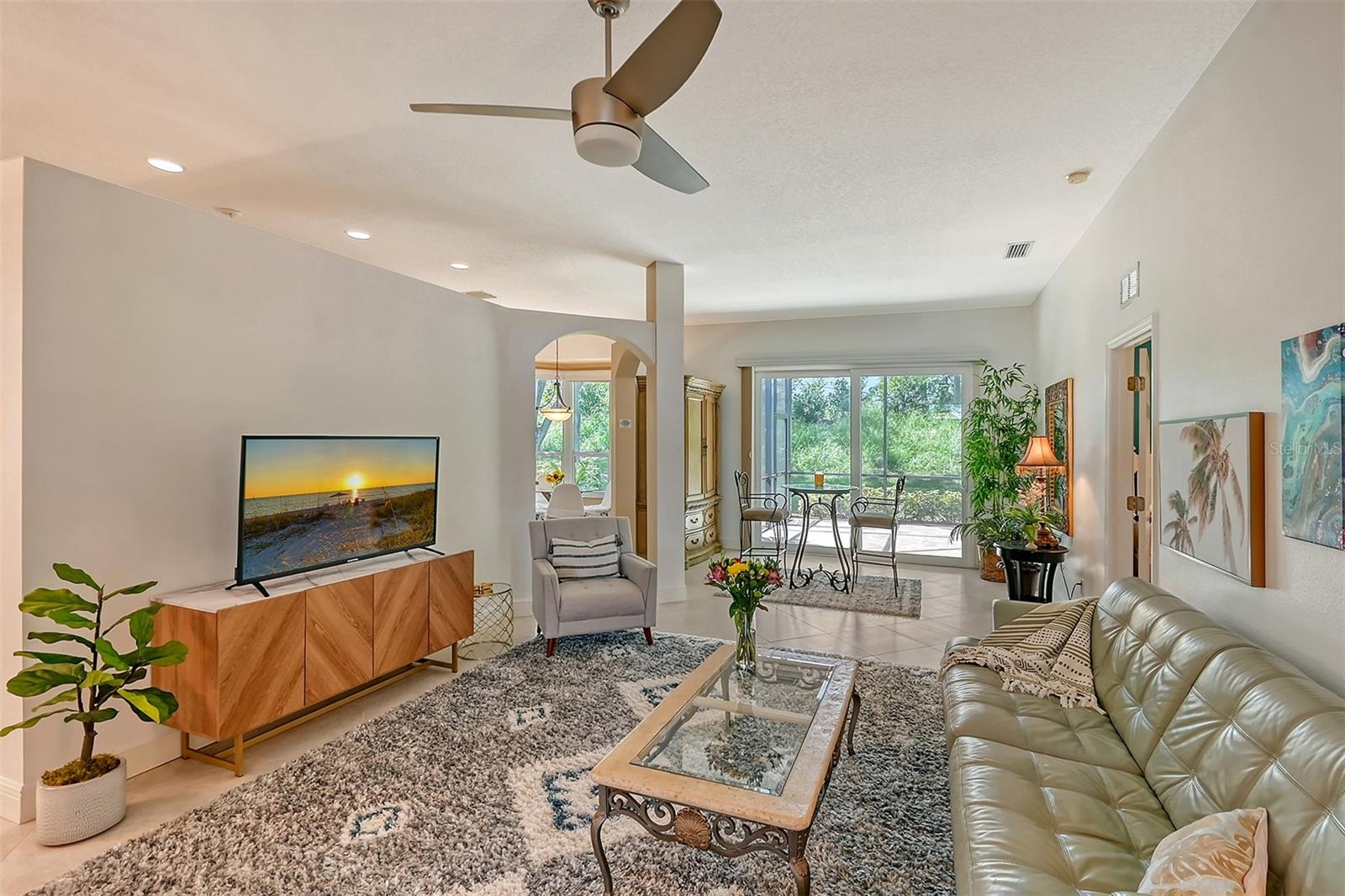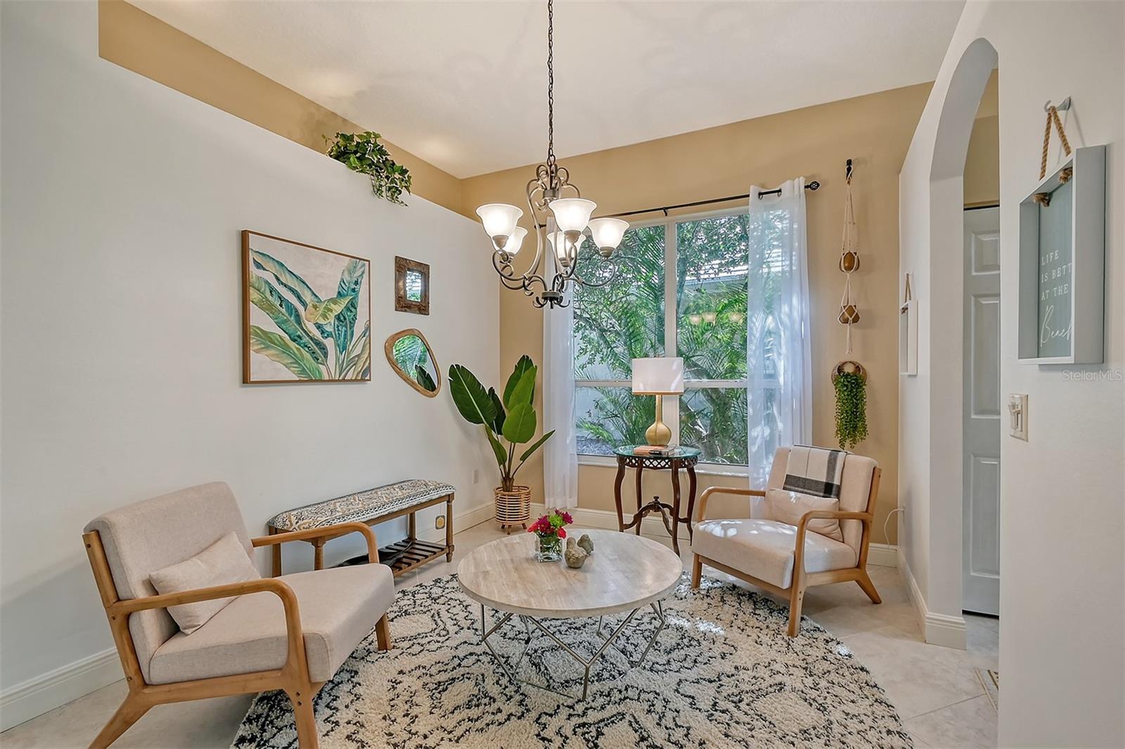 Welcome to this charming, tastefully decorated, 3 bedroom 2 bath home that is being offered TURNKEY. It is located on a quiet cul-de-sac in desirable Venice Golf and Country Club (VGCC). If you are looking for a second home, look no farther! Downsizing? It makes a wonderful primary residence too! After entering VGCC through the gatehouse you will appreciate the canopy of oak trees, the 26 ponds, the 13 natural preserves, and the curved tree lined streets. Arrive at 550 Fallbrook, located in the maintained neighborhood of Wentworth which provides lawn mowing and fertilization, annual mulch, tree and shrub trimming, lawn irrigation, roof cleaning and a private neighborhood pool. Enter into the foyer which opens into a spacious living room and dining room that the current owners are using as a reading area. A secondary bedroom which can also be used as a Den is off the floyer on the left. The large lanai with travertine floor and IMPACT HURRICANE sliding glass doors from the living room provides additional living space for entertaiing friends or just quietly enjoying the outdoors. The kitchen has granite countertops, attractive cabinets with lots of storage space, stainless steel appliances including a GAS STOVE. The cozy dinette has 6 IMPACT HURRICANE windows bringing the sunshine in and provides a view of the private back yard. The split floor plan affords privacy when entertaining overnight guests. The primary bedroom has a walk-in closet and private en suite bath with separate his and her vanities. This home offers plenty of space to entertain friends and family. The ROOF was replaced in 2016 and the home has been re-piped. A buried propane tank supports both the gas stove and the TANKLESS HOT WATER HEATER. VGCC is a member owned community with 587 homes and sound financials. MEMBERSHIP IS MANDATORY. The members experience a very active social life. Enjoy both casual and formal dining in the newly renovated Clubhouse. There are a wide variety of activities in addition to golf including tennis, bocce, bridge, mah-jongg, the ''U'' with its educational and social events, wine club, special club events, and much MORE. Pickleball is also available. Take one of the many classes or work out in the newly renovated Wellness Center with state-of-the-art equipment. VGCC is an Audubon Geo-Certified community and is just 5 miles from the historic town of Venice, several beaches, and just 20 miles south of Sarasota. The SELLER IS OFFERING A $10,000 CREDIT AT CLOSING TOWARD THE ONE-TIME ENTRY FEE FOR CLUB MEMBERSHIP.