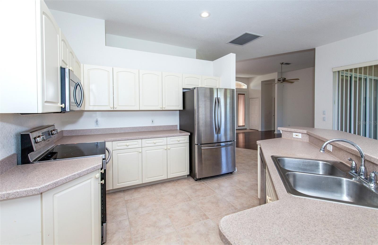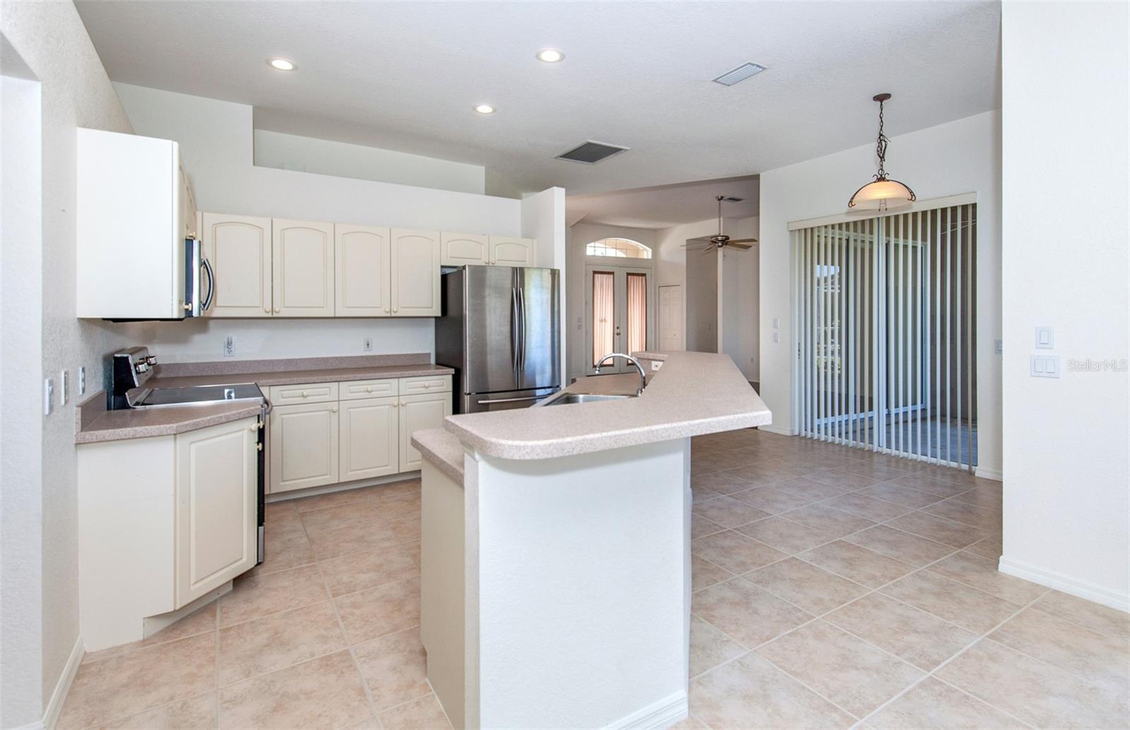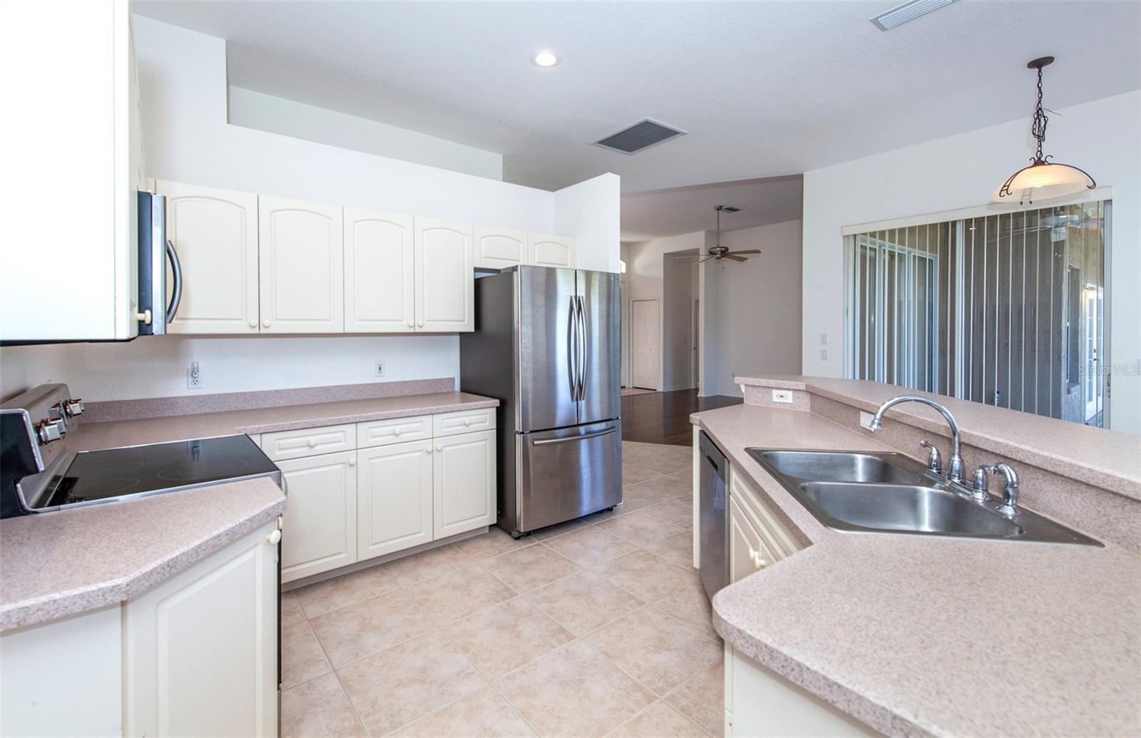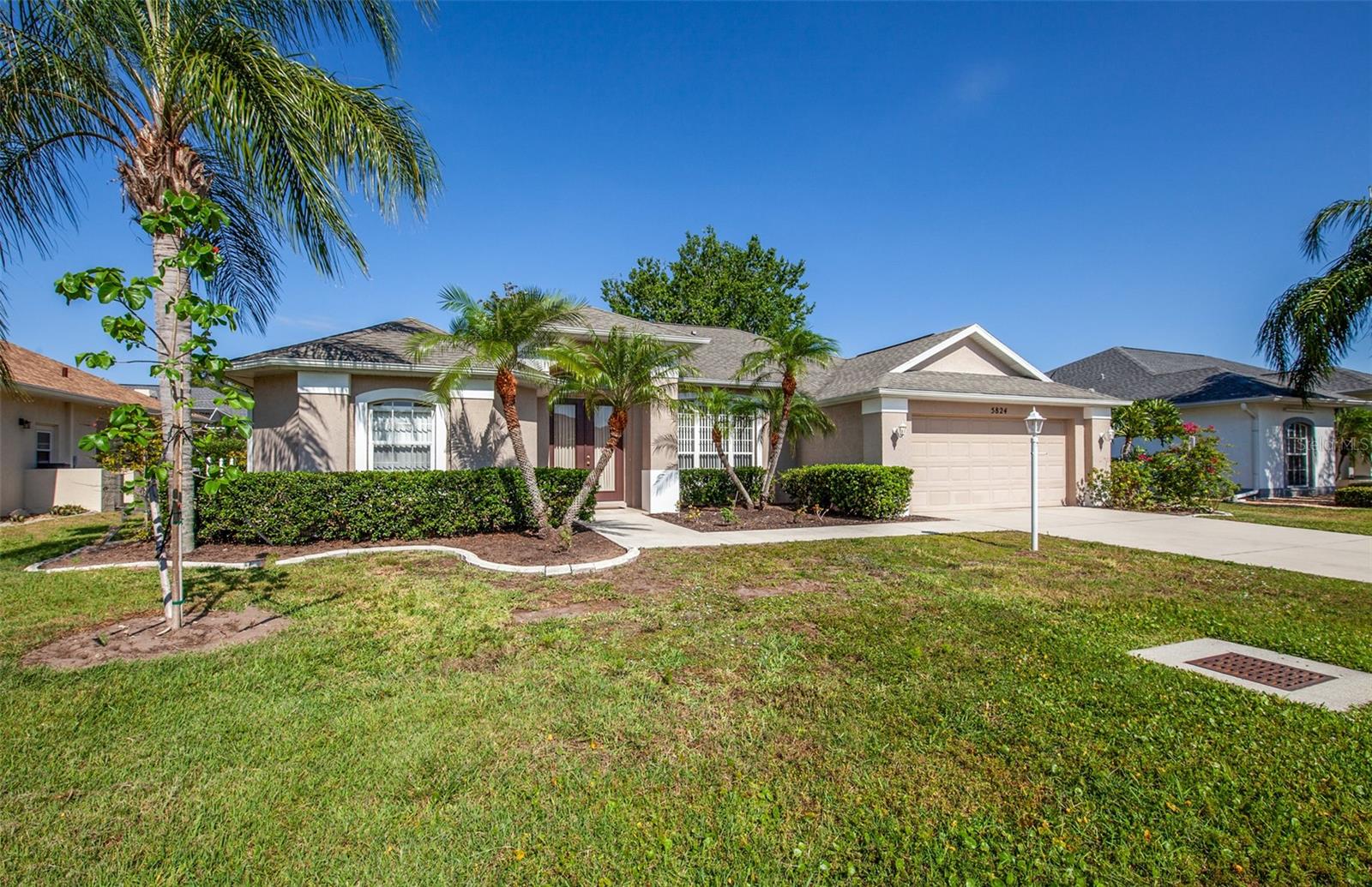 Beautiful over 1,800 square foot, three-bedroom, two-bath, two-car garage, NEWLY screened lanai home minutes away from Manasota Key Beach with NEWER AC, NO CDD, and LOW ANNUAL HOA within Gulf View Estates in Venice is awaiting new owners! The open floorplan is enhanced by high ceilings, double front entry doors, neutral paint, ceramic tile and luxury vinyl flooring in the main living area, and a plethora of windows, including an aquarium glass window in the eat in area in the kitchen to allow natural light to filter through. The well-appointed kitchen presents plenty of counter and cabinetry, stainless steel appliances, and a breakfast bar that look into family and living rooms, each providing slider access to either the backyard or the screened lanai. The primary suite has a lovely tray ceiling, french doors provide entry to the lanai, a nicely appointed walk-in closet, and a en-suite bath with a dual sink stone counter vanity and an enormous, walk-in tiled shower, soaking tub, and a water closet. On the other end of the home is the sizeable guest bedrooms and a guest bath with a stone counter vanity and a tub and shower combo. Additional features include a multitude of ceiling fans, an inside laundry with extra storage shelves that could be used as a pantry, gutters and downspouts, water heater, and garage door opener. Everything is pristine! This home is near the gorgeous historic downtown Venice Island and downtown Englewood, various gulf beaches, shopping, restaurants, golf courses, and marinas! Call for your private showing today and check out the virtual tour link https://my.matterport.com/show/?m=ZHDeVCb9Dcu&mls=1