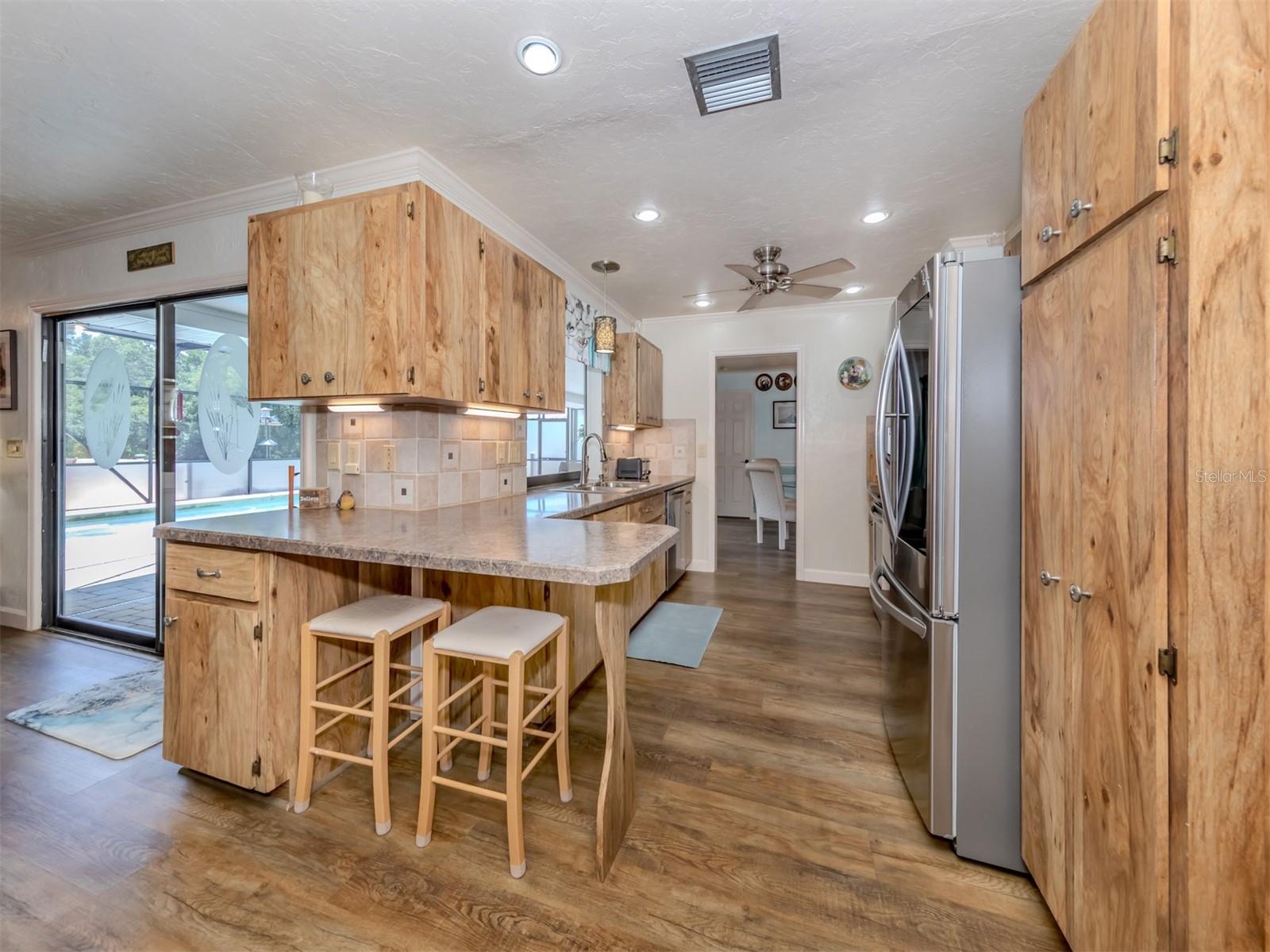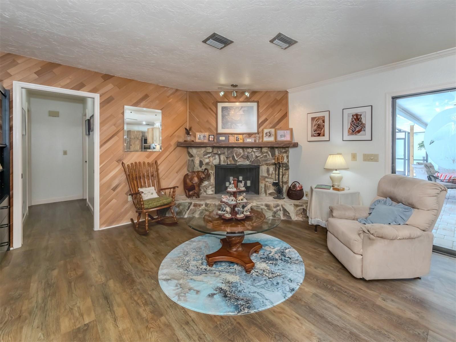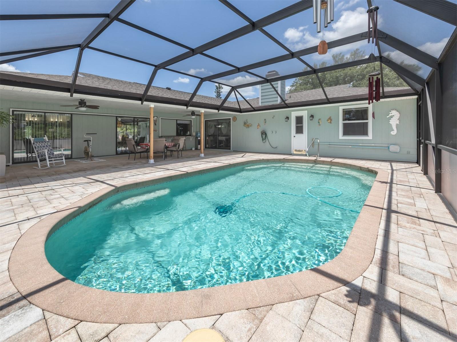 PRICE REDUCTION! A true 5 bedroom, 3 bath pool home on over an acre. The original owner had the home built to provide everyone in the family a private bedroom. Two of the bedrooms, one with an attached bath, have a hallway that can be closed off to provide the perfect in-law suite or privacy for guests. The main home has a living room and dining room, kitchen and family room with a wood burning fireplace. There is additional dining space off the kitchen. Sliders open to the covered lanai and an enclosed pool. Beyond is an outside wood deck and an expanse of yard ready for games and outdoor equipment. A shed in the yard is wired for electricity and offers room for extra storage or an additional work space. There is an exterior trailer plug with 30 amp power and an additional plug if needed. The home is equipped with a 9.86kW /solar system with 34 panels to cut down on electric costs. The roof was replaced in 2023. The home is well maintained and welcoming. There is much to offer in this home that has been only owned by the original owner and family. This large home is located the desirable Venice Acres neighborhood with easy access to Historical downtown Venice and the beautiful Gulf and beaches , shopping, dining, golfing and entertainment and I75. The neighborhood is known for larger land parcels and privacy.