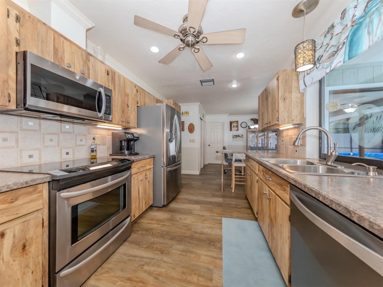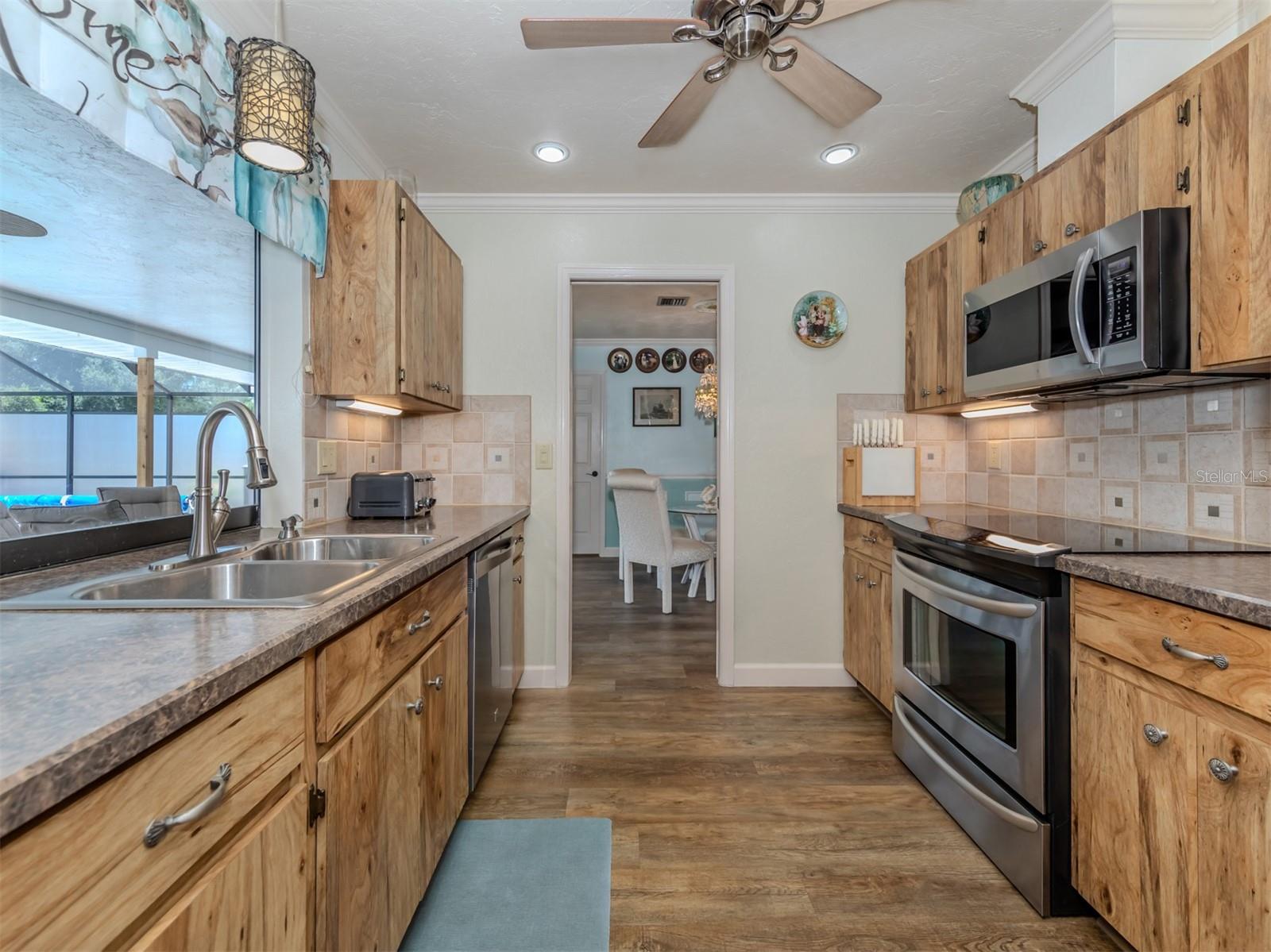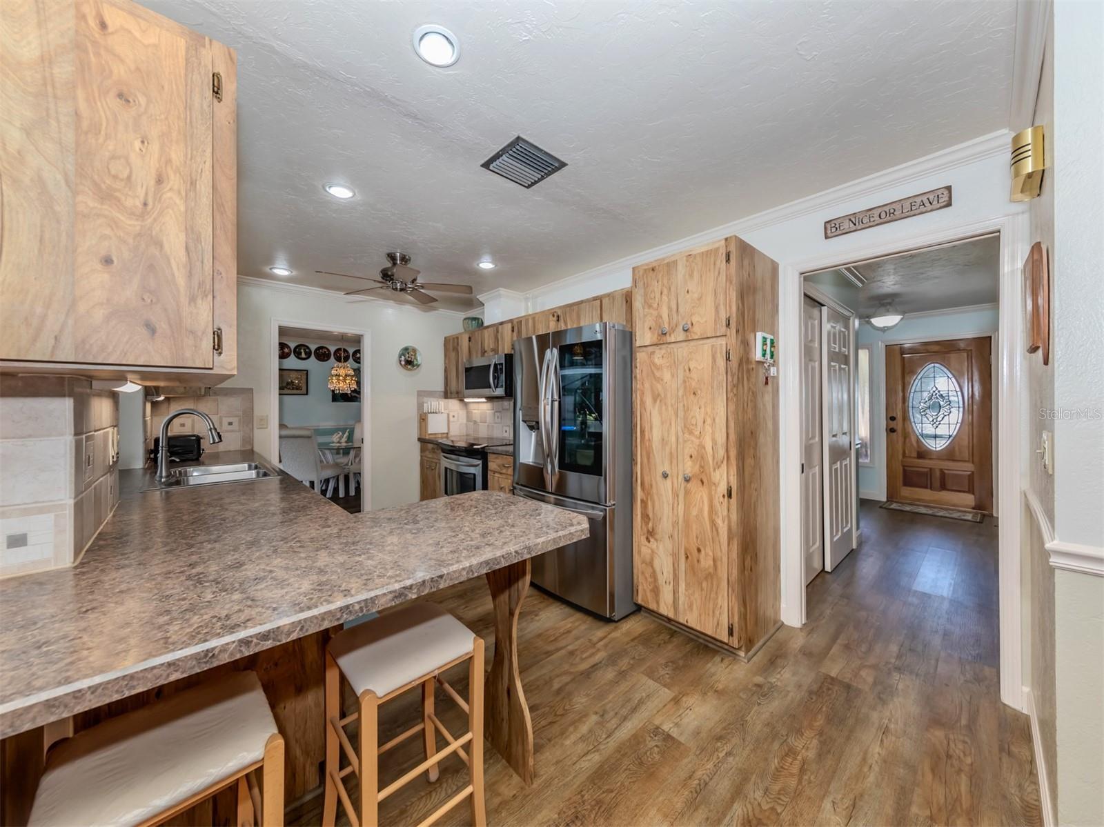 PRICE REDUCTION! A true 5 bedroom, 3 bath pool home on over an acre. The original owner had the home built to provide everyone in the family a private bedroom. Two of the bedrooms, one with an attached bath, have a hallway that can be closed off to provide the perfect in-law suite or privacy for guests. The main home has a living room and dining room, kitchen and family room with a wood burning fireplace. There is additional dining space off the kitchen. Sliders open to the covered lanai and an enclosed pool. Beyond is an outside wood deck and an expanse of yard ready for games and outdoor equipment. A shed in the yard is wired for electricity and offers room for extra storage or an additional work space. There is an exterior trailer plug with 30 amp power and an additional plug if needed. The home is equipped with a 9.86kW /solar system with 34 panels to cut down on electric costs. The roof was replaced in 2023. The home is well maintained and welcoming. There is much to offer in this home that has been only owned by the original owner and family. This large home is located the desirable Venice Acres neighborhood with easy access to Historical downtown Venice and the beautiful Gulf and beaches , shopping, dining, golfing and entertainment and I75. The neighborhood is known for larger land parcels and privacy.