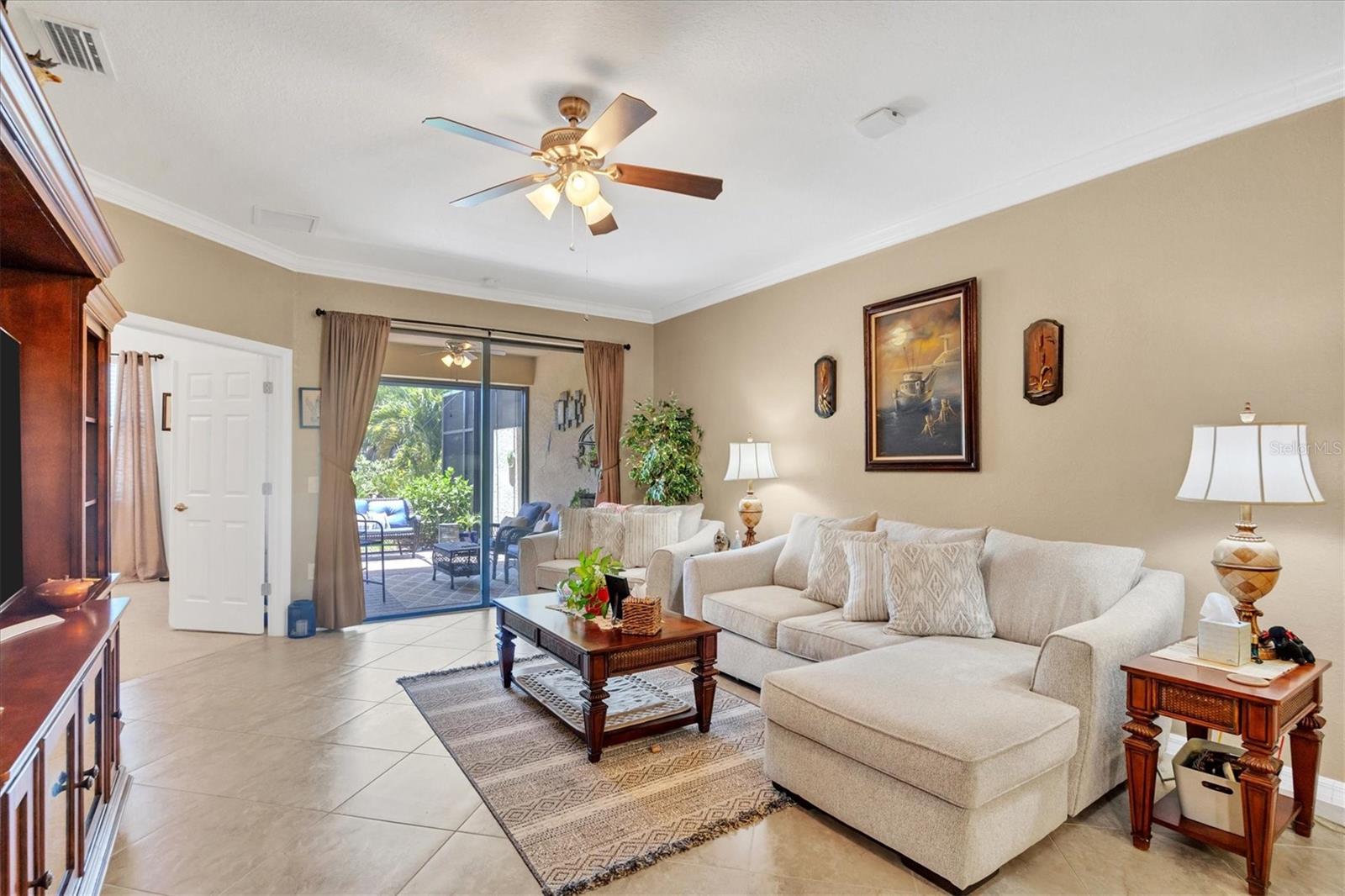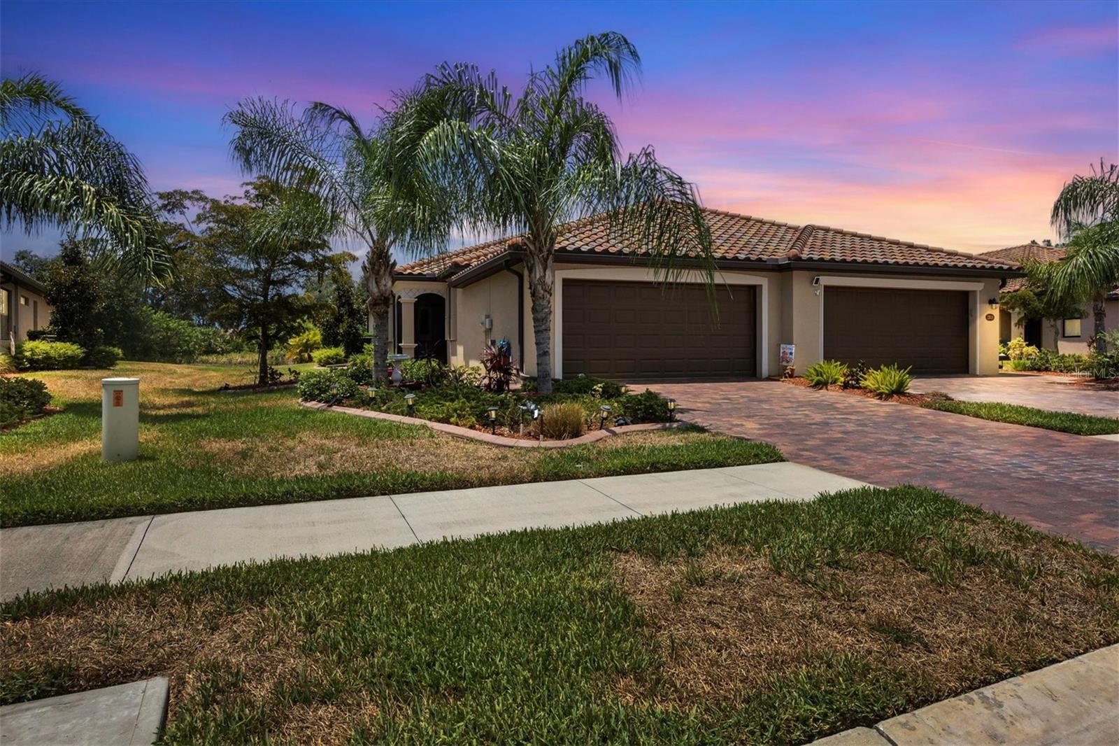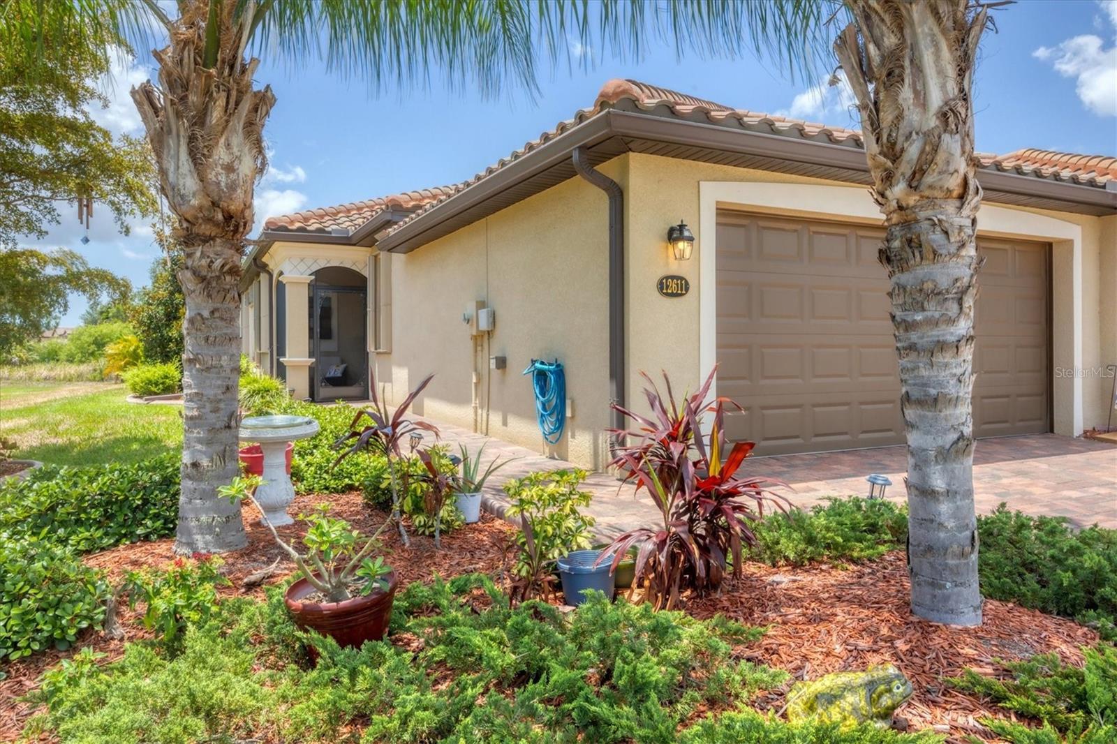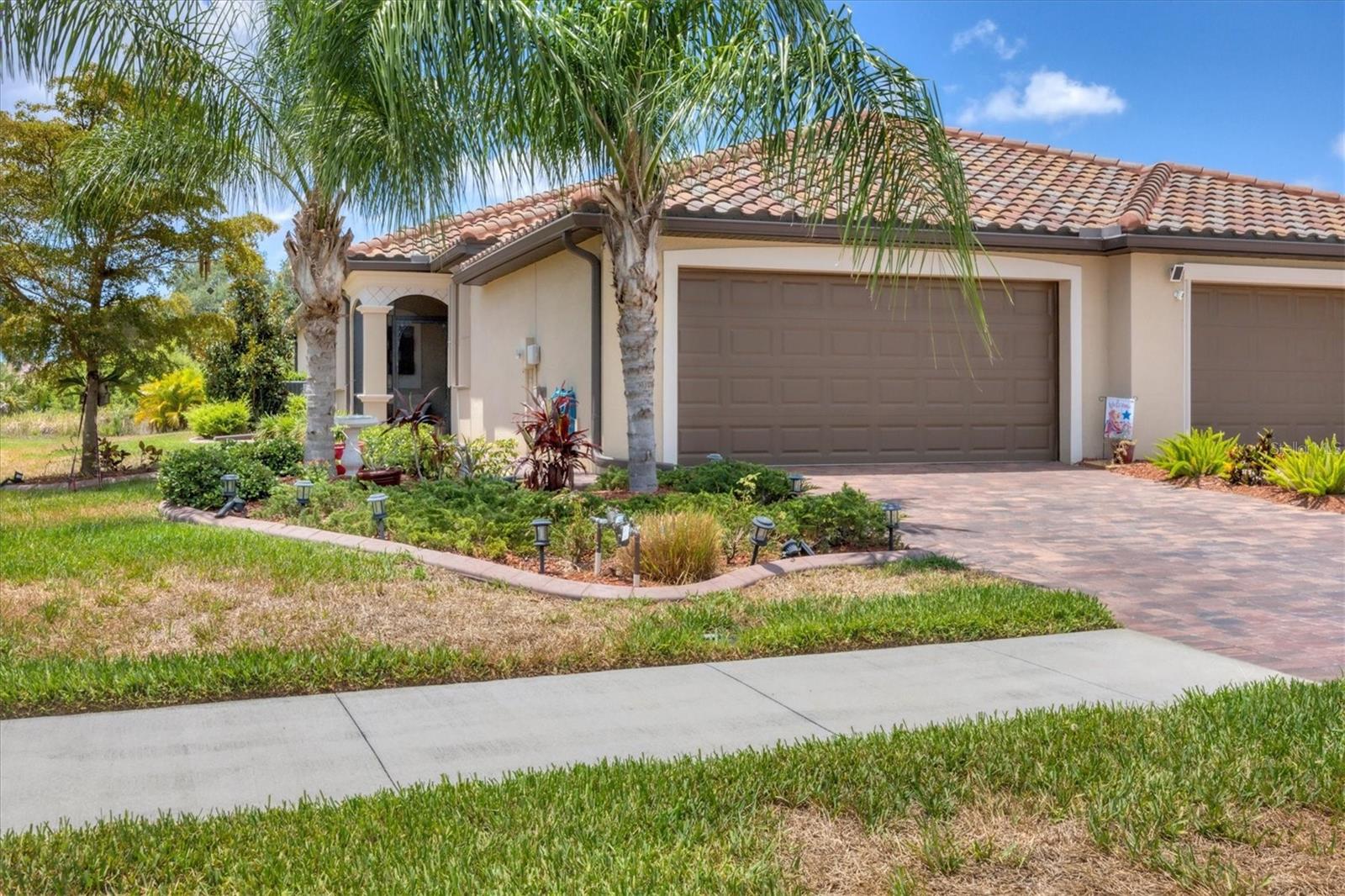 Discover this stunning 2-bedroom plus den, 2-bath, 2-car garage villa in the highly desirable Gran Paradiso community. This meticulously maintained home features an inviting open floor plan with high ceilings, crown molding, ceramic tile flooring, and cozy carpeted bedrooms. The bonus den/office with French doors offers a private retreat. The updated kitchen boasts granite counters, stainless steel appliances, ample cabinetry, and a convenient breakfast bar. The main bedroom includes an ensuite with double sinks, a soaking tub, and a spacious walk-in closet. The garage is roomy with plenty of room for storage. The exterior is beautifully landscaped with an irrigation system and features a screened entryway and an extended covered lanai, perfect for enjoying your morning coffee or evening views. Newly installed electric shade and hurricane shutters add an extra layer of security. This home provides maintenance-free, resort-style living! Gran Paradiso is an active social community offering 24-hour gated security and a wealth of amenities, including a stunning clubhouse, fitness center, heated community pool, tennis courts, pickleball, and scenic walking and biking trails. Conveniently located, you’re just moments away from shopping, dining, the new Wellan Park, historic downtown Venice, the Legacy Bike Trail, and the beautiful Gulf of Mexico beaches. Enjoy world-class boating, fishing, and golfing, all within easy reach. Central to major cities and airports, Gran Paradiso offers easy access to I-75, Sarasota, Punta Gorda, Ft. Myers, St. Pete, and Tampa airports. Embrace the best of Florida's warm climate and year-round sunshine. Schedule your private showing today!