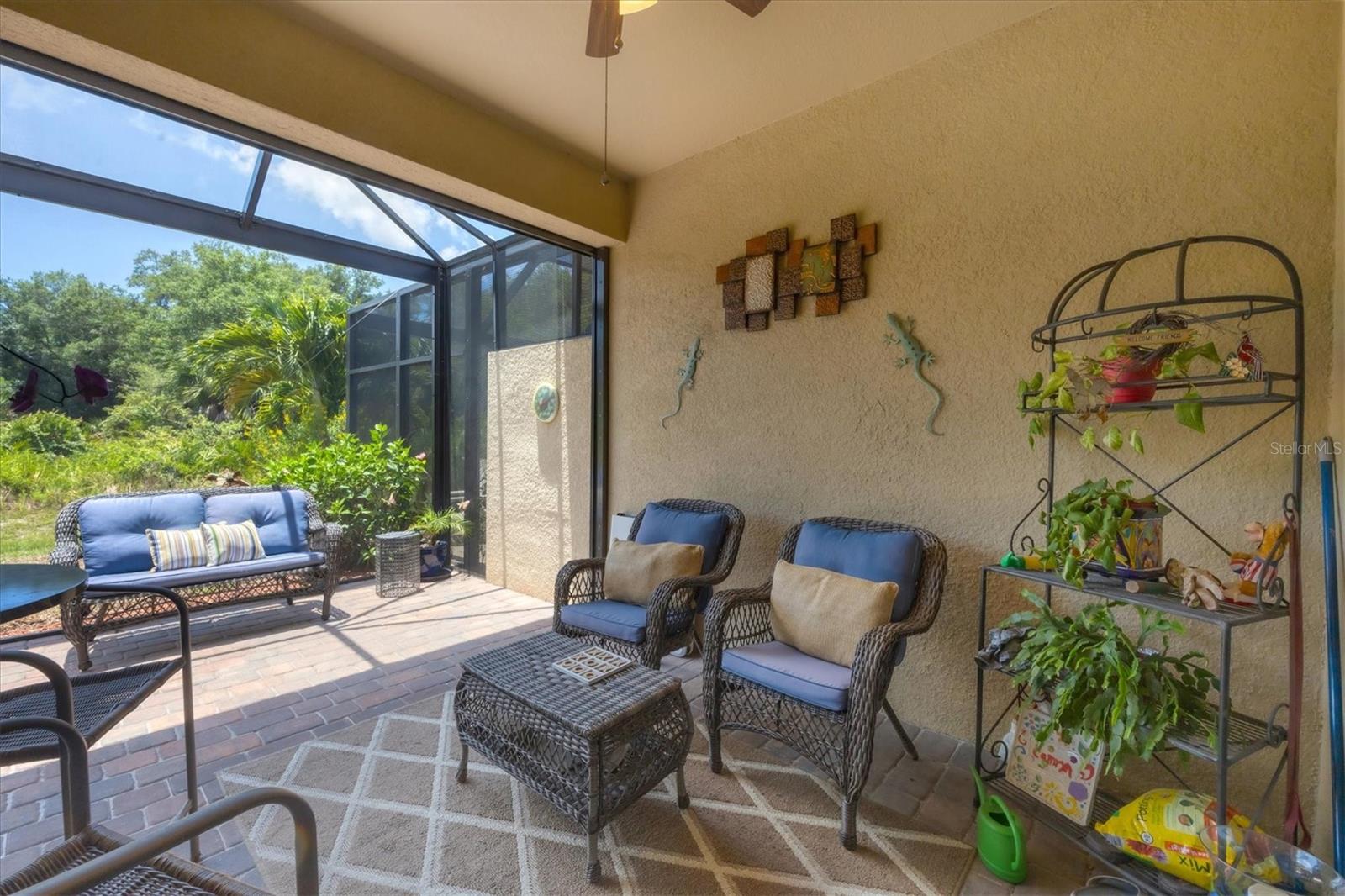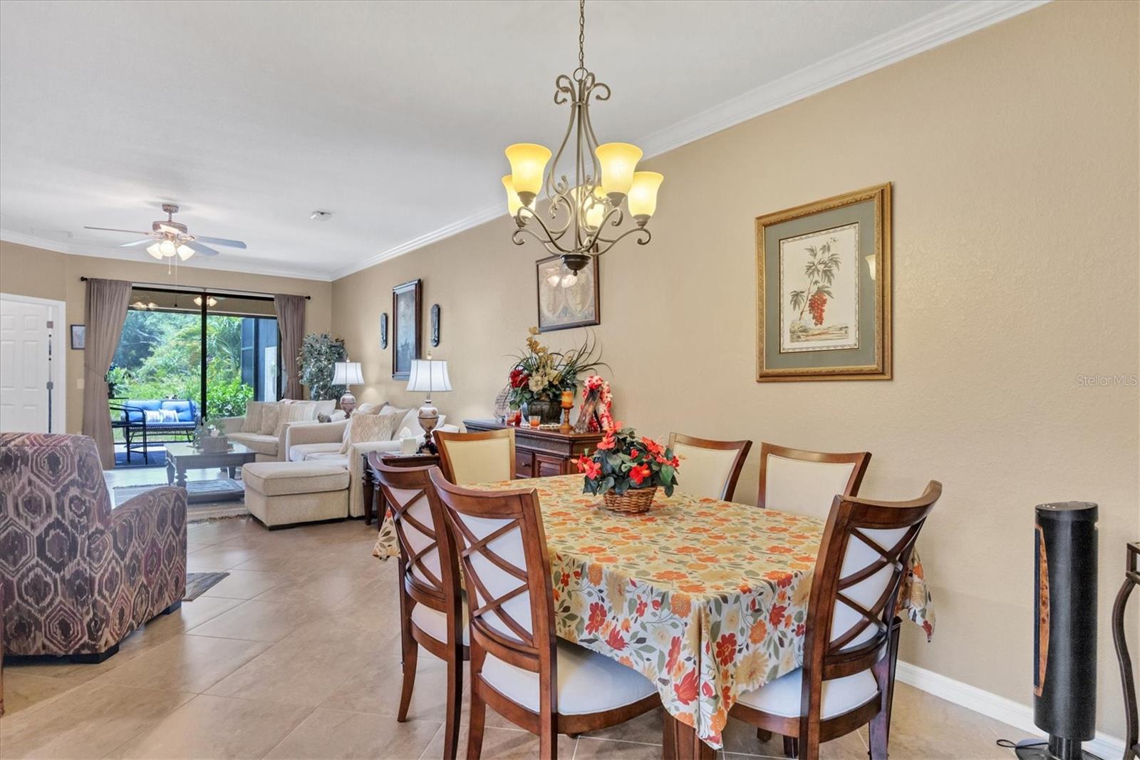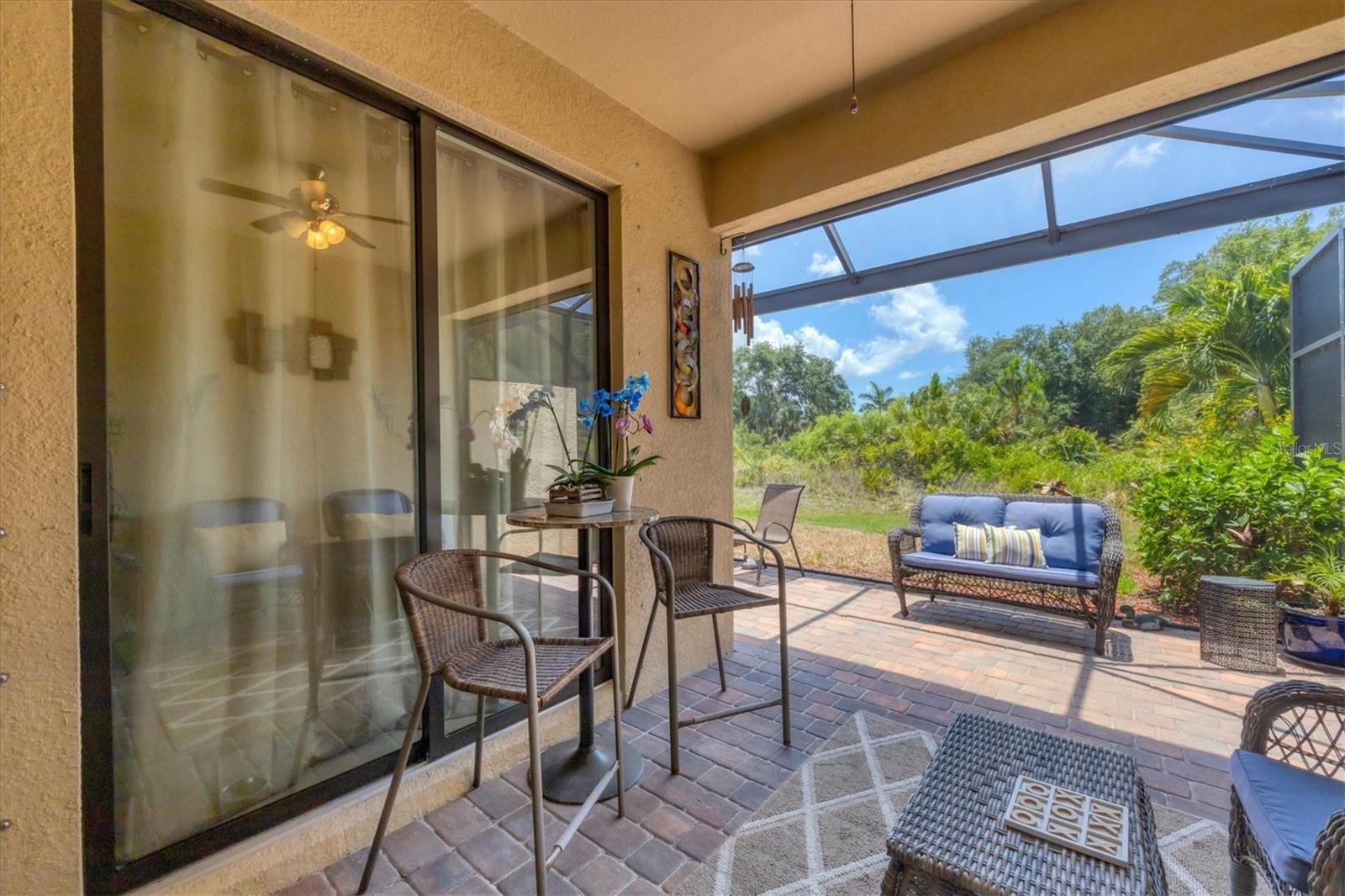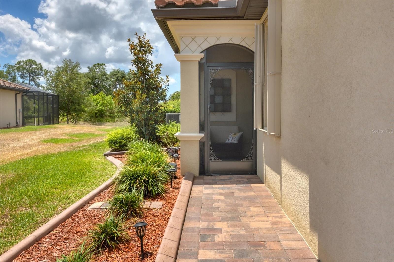 Discover this stunning 2-bedroom plus den, 2-bath, 2-car garage villa in the highly desirable Gran Paradiso community. This meticulously maintained home features an inviting open floor plan with high ceilings, crown molding, ceramic tile flooring, and cozy carpeted bedrooms. The bonus den/office with French doors offers a private retreat. The updated kitchen boasts granite counters, stainless steel appliances, ample cabinetry, and a convenient breakfast bar. The main bedroom includes an ensuite with double sinks, a soaking tub, and a spacious walk-in closet. The garage is roomy with plenty of room for storage. The exterior is beautifully landscaped with an irrigation system and features a screened entryway and an extended covered lanai, perfect for enjoying your morning coffee or evening views. Newly installed electric shade and hurricane shutters add an extra layer of security. This home provides maintenance-free, resort-style living! Gran Paradiso is an active social community offering 24-hour gated security and a wealth of amenities, including a stunning clubhouse, fitness center, heated community pool, tennis courts, pickleball, and scenic walking and biking trails. Conveniently located, you’re just moments away from shopping, dining, the new Wellan Park, historic downtown Venice, the Legacy Bike Trail, and the beautiful Gulf of Mexico beaches. Enjoy world-class boating, fishing, and golfing, all within easy reach. Central to major cities and airports, Gran Paradiso offers easy access to I-75, Sarasota, Punta Gorda, Ft. Myers, St. Pete, and Tampa airports. Embrace the best of Florida's warm climate and year-round sunshine. Schedule your private showing today!